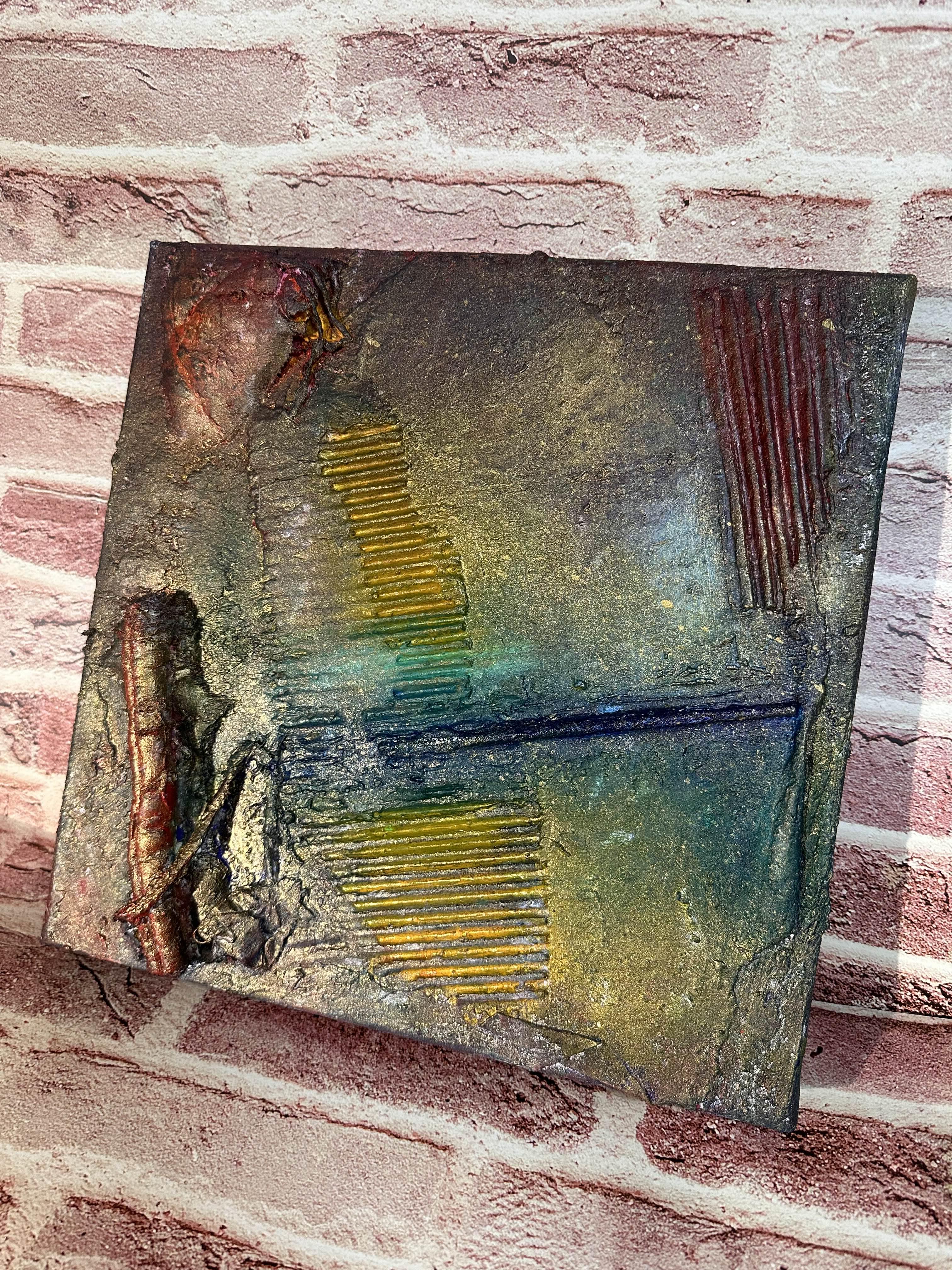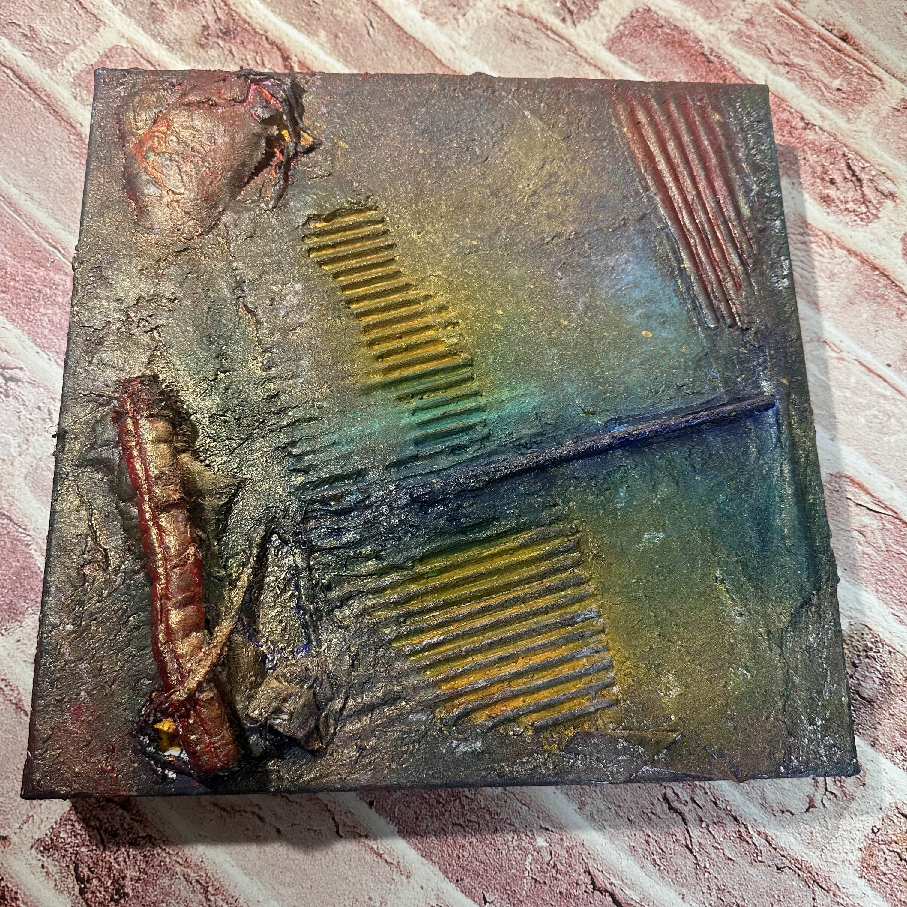 Mediums : acrylic. cardboard, modeling paste. Pillow cover cloth and cotton. air freshener stick
