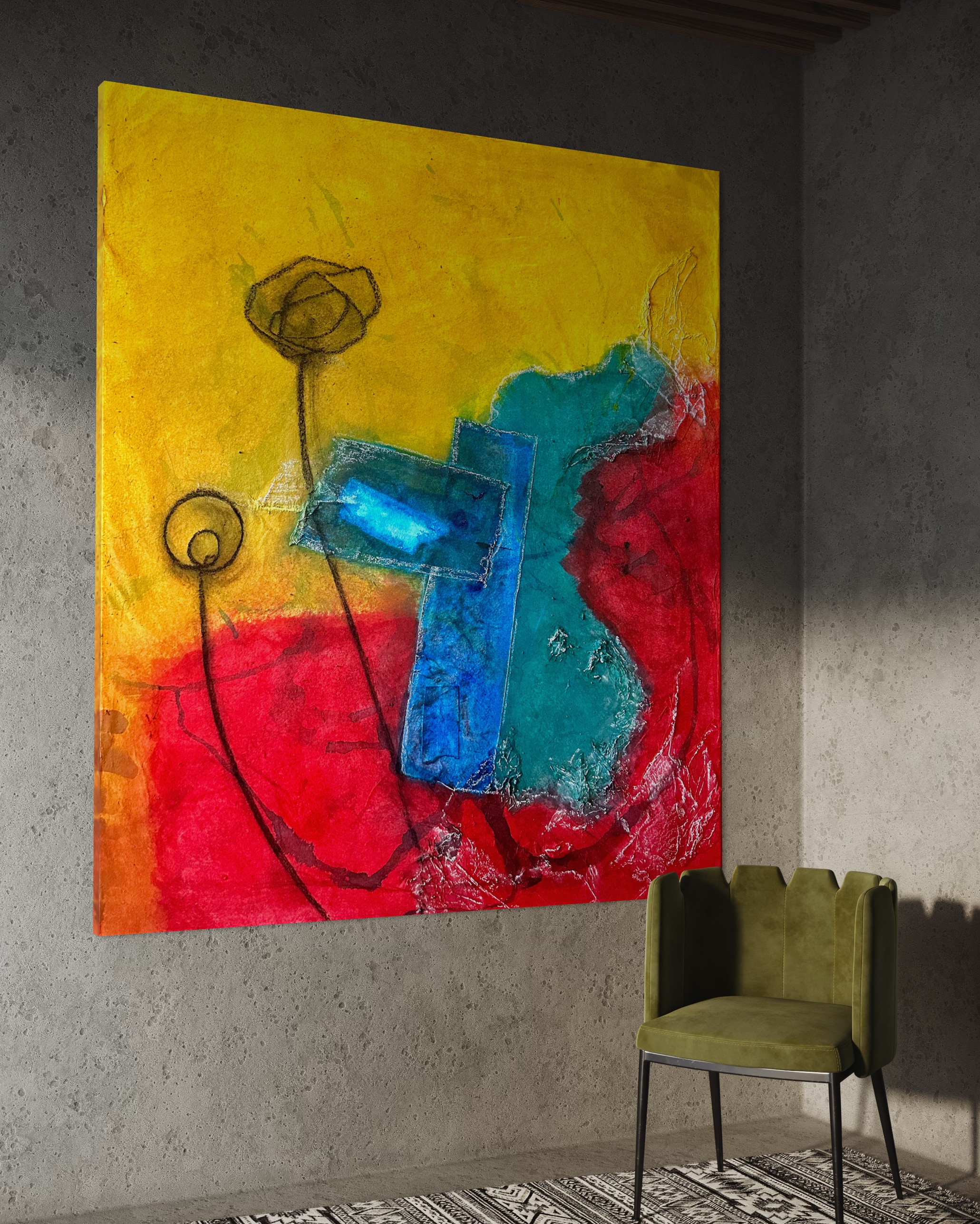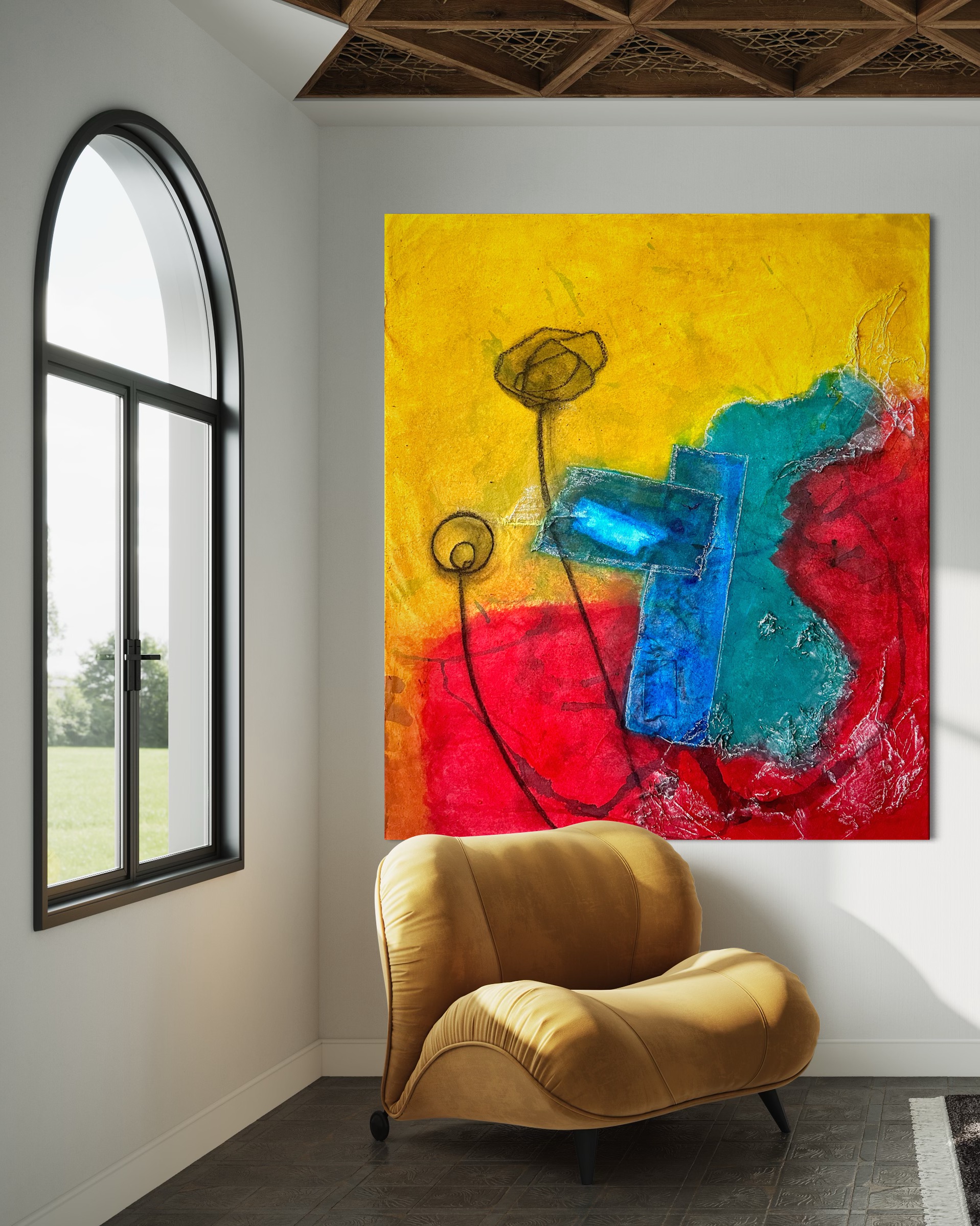 Mixed media on hanji canvas
