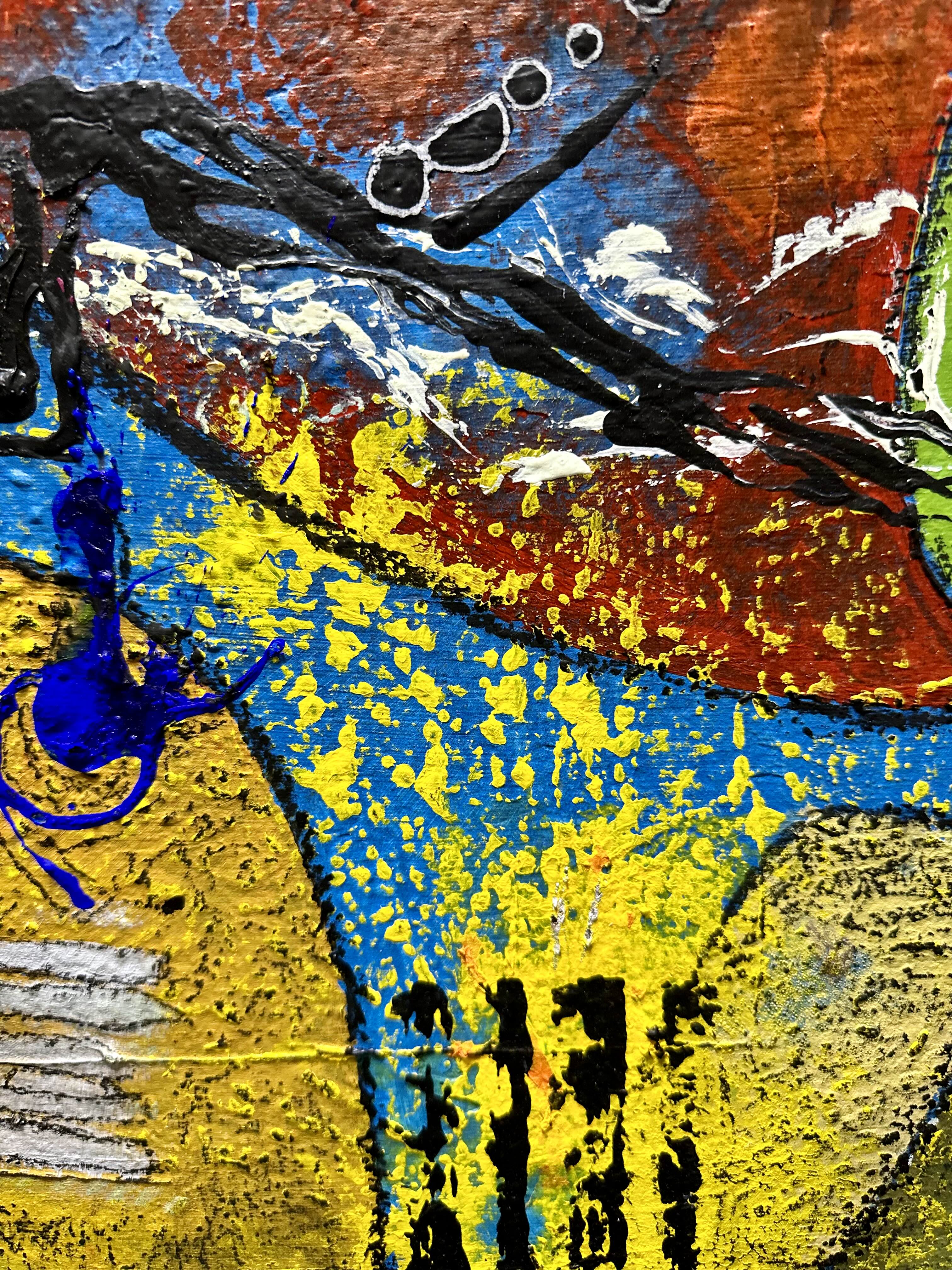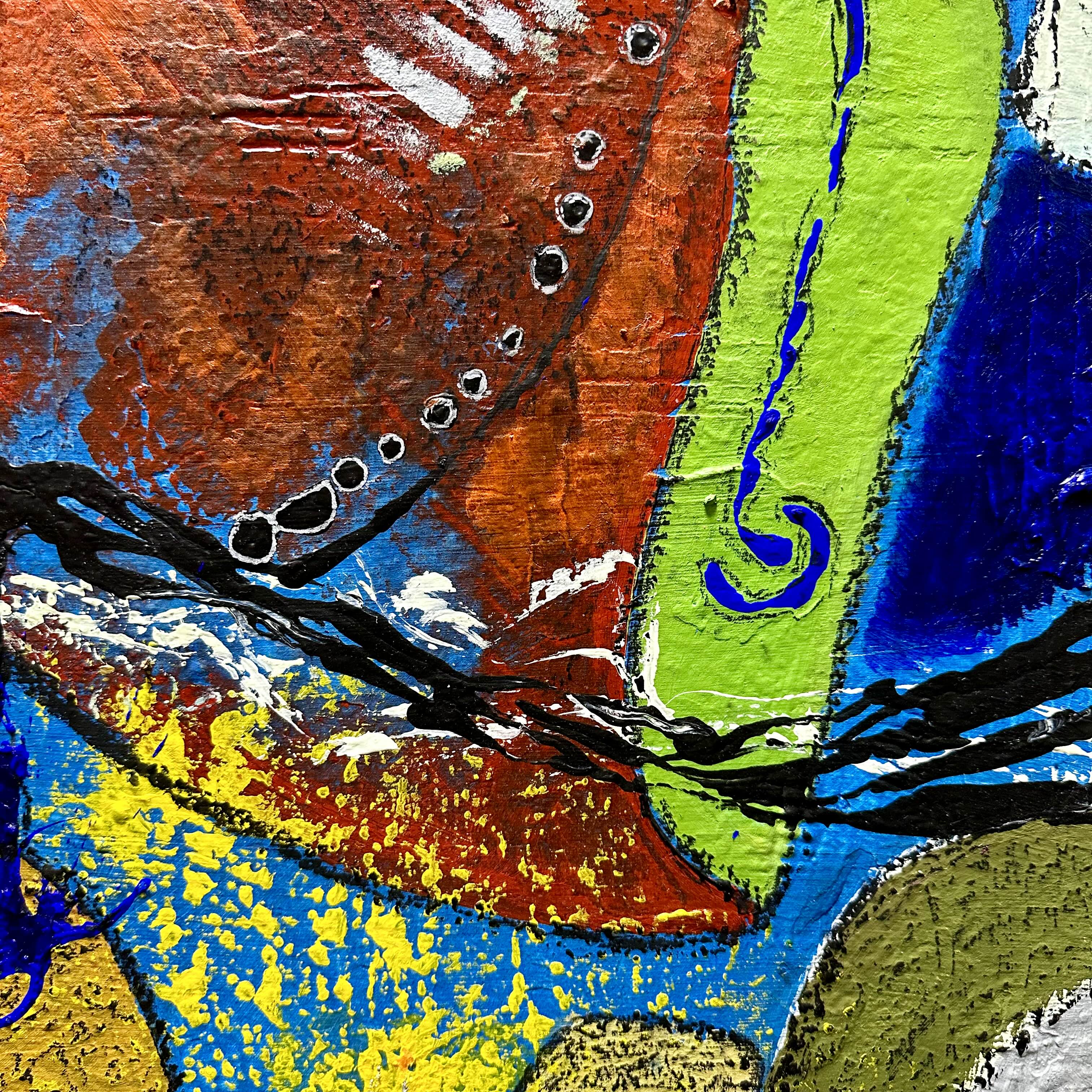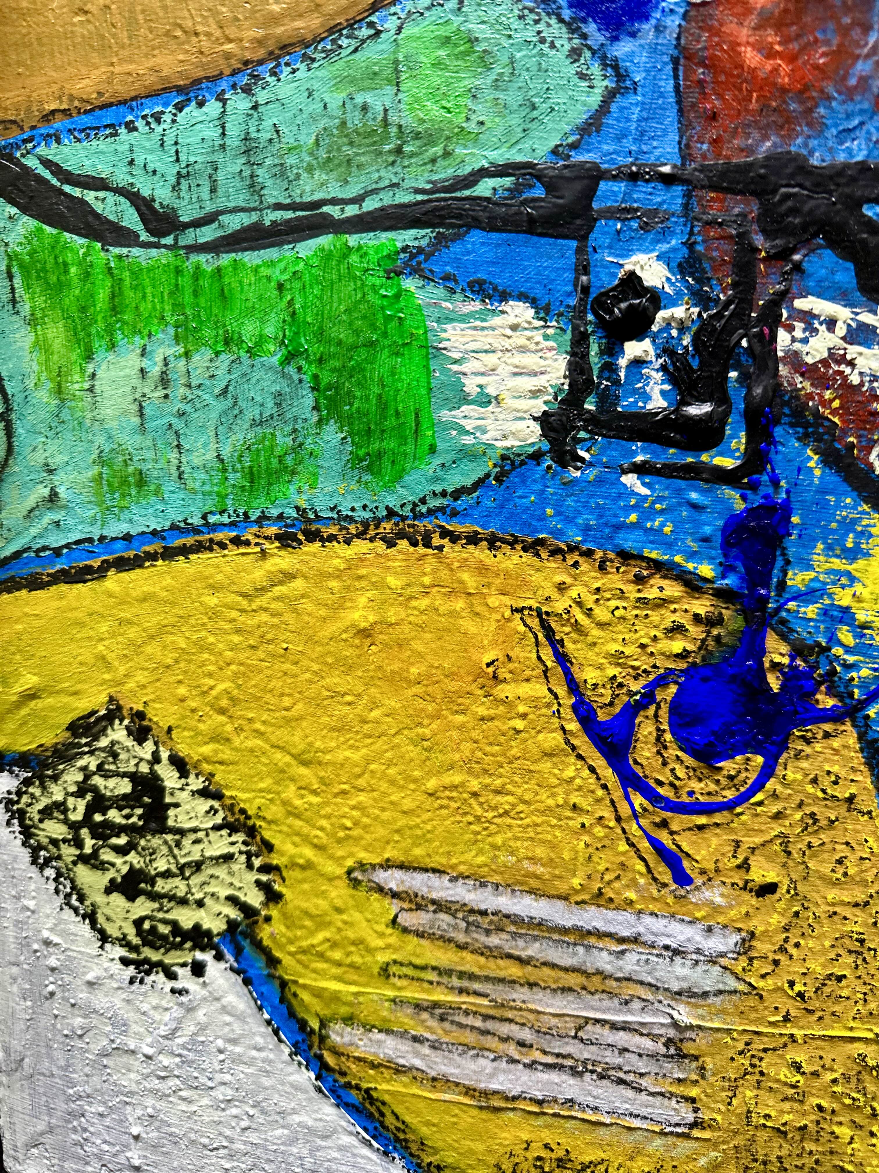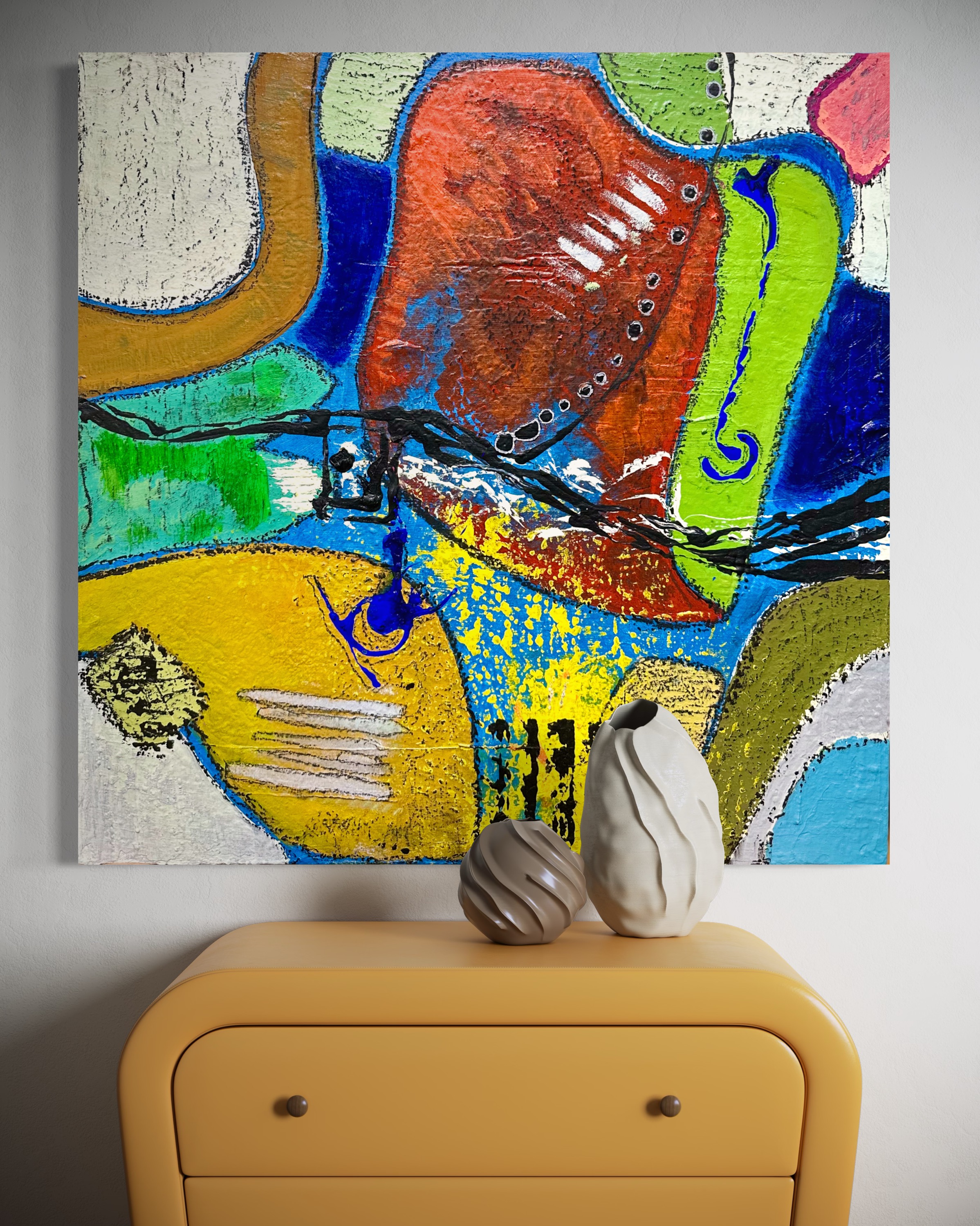 This series emerged from a truth I discovered in my fifties: while we believe we live life according to our plans, it is chance and the unexpected that shape who we are. In this work, I let my brushes fall freely, allowing colors and textures to emerge organically, embracing the unpredictability. Within this spontaneity, I introduced artificial patterns, blurring the boundary between order and chaos. Intention and spontaneity do not merely coexist; they collide and intertwine, creating a space that resists clarity and neat resolution. This piece reflects life—an uncharted territory where symmetry is impossible and no harmonious conclusion is ever reached. I want viewers to feel how these forces, instead of reconciling, remain entangled in a constant state of flux. The materials—acrylic, charcoal, and oil pastel—capture this instability, revealing how beauty arises not from resolution, but from the untidy, unfinished state of being.