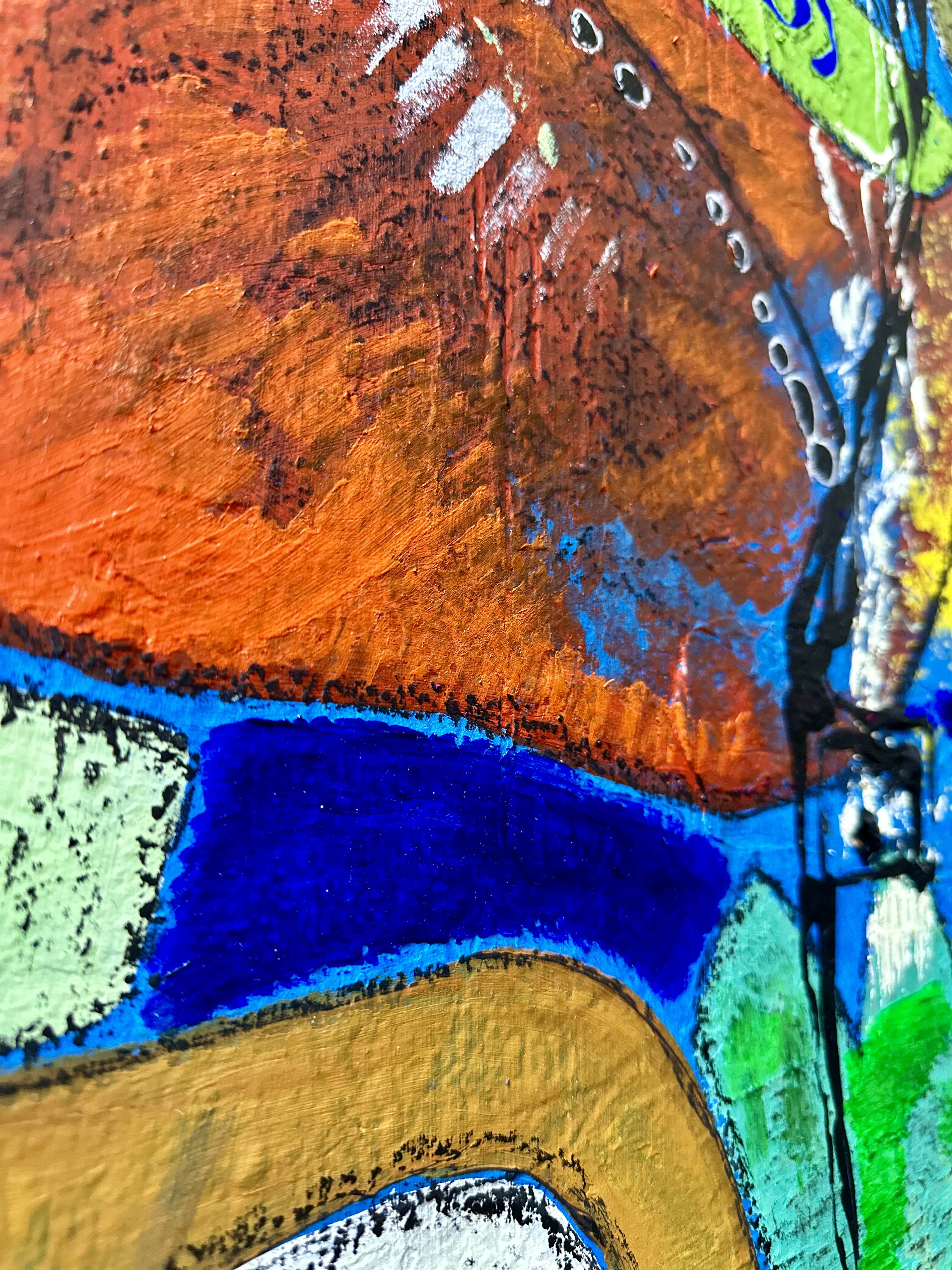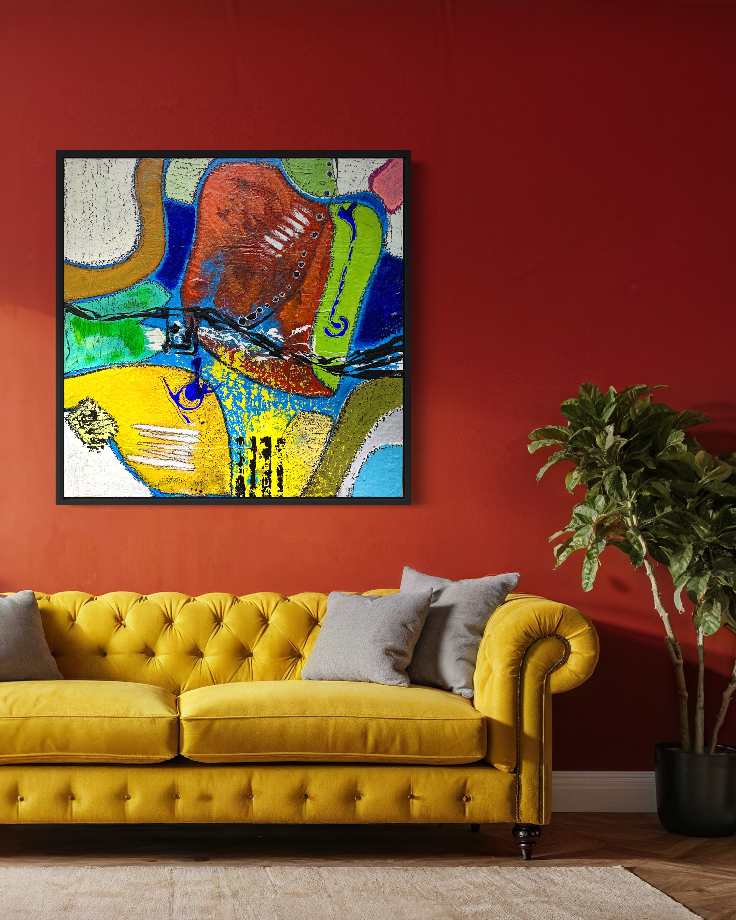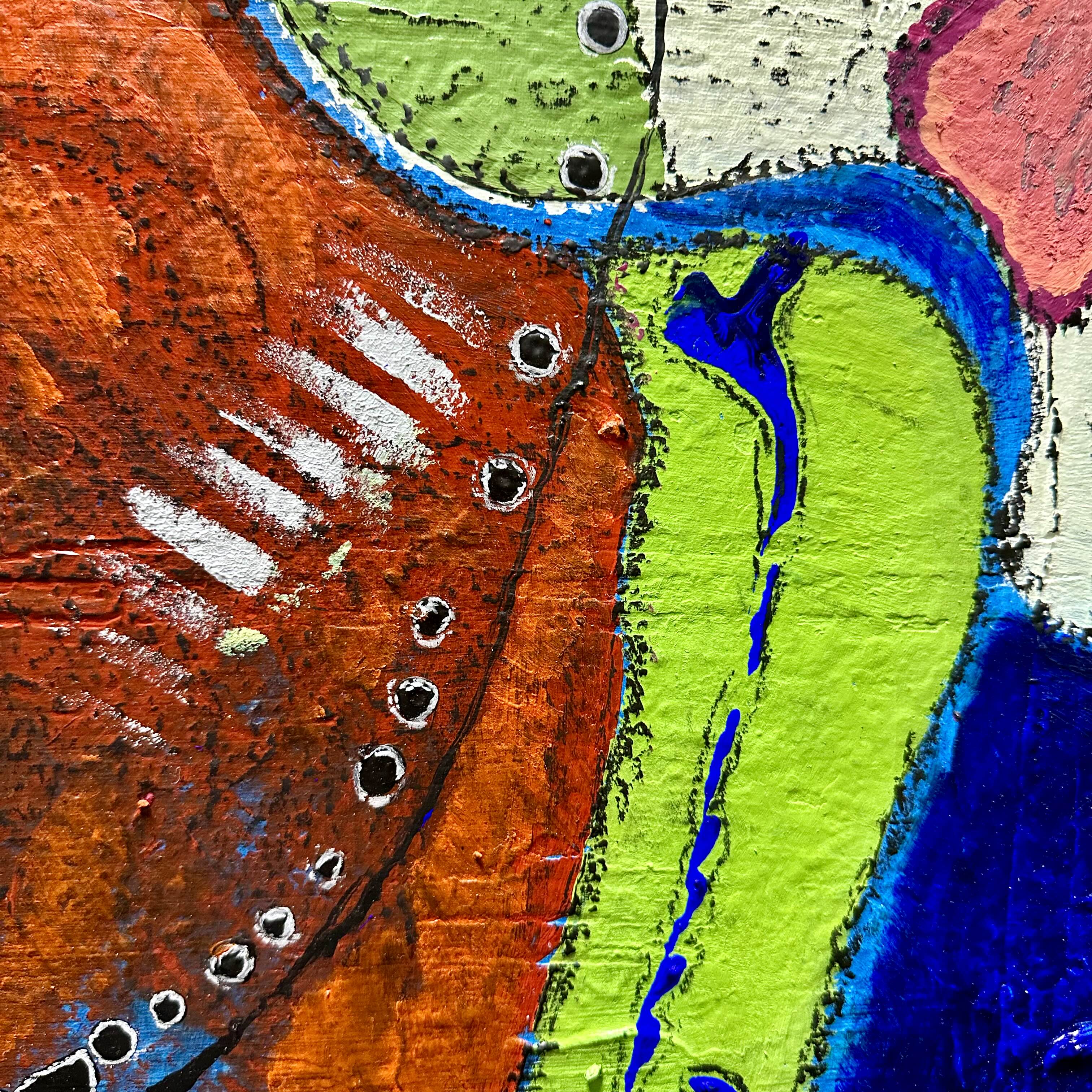 This series emerged from a truth I discovered in my fifties: while we believe we live life according to our plans, it is chance and the unexpected that shape who we are. In this work, I let my brushes fall freely, allowing colors and textures to emerge organically, embracing the unpredictability. Within this spontaneity, I introduced artificial patterns, blurring the boundary between order and chaos. Intention and spontaneity do not merely coexist; they collide and intertwine, creating a space that resists clarity and neat resolution. This piece reflects life—an uncharted territory where symmetry is impossible and no harmonious conclusion is ever reached. I want viewers to feel how these forces, instead of reconciling, remain entangled in a constant state of flux. The materials—acrylic, charcoal, and oil pastel—capture this instability, revealing how beauty arises not from resolution, but from the untidy, unfinished state of being.