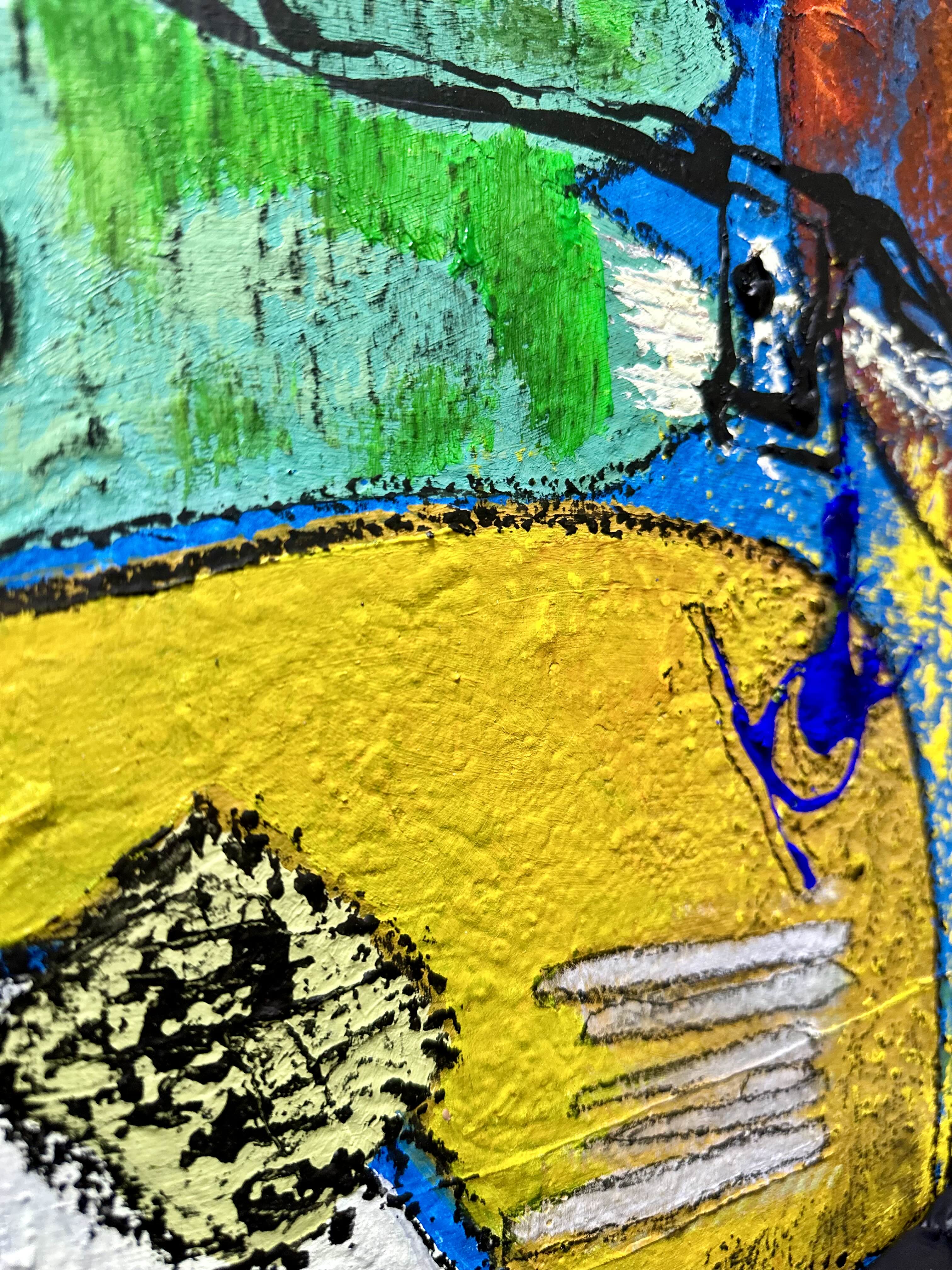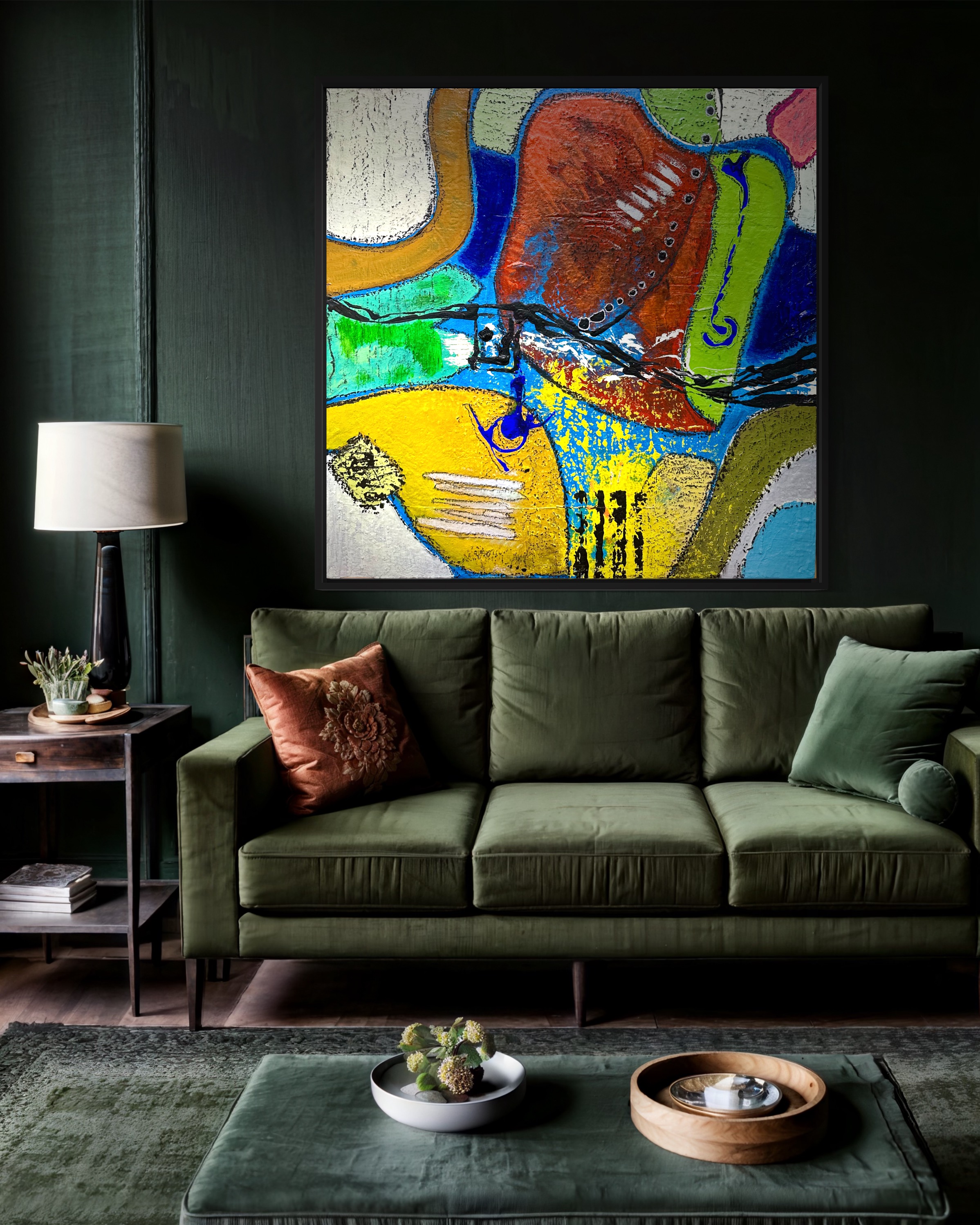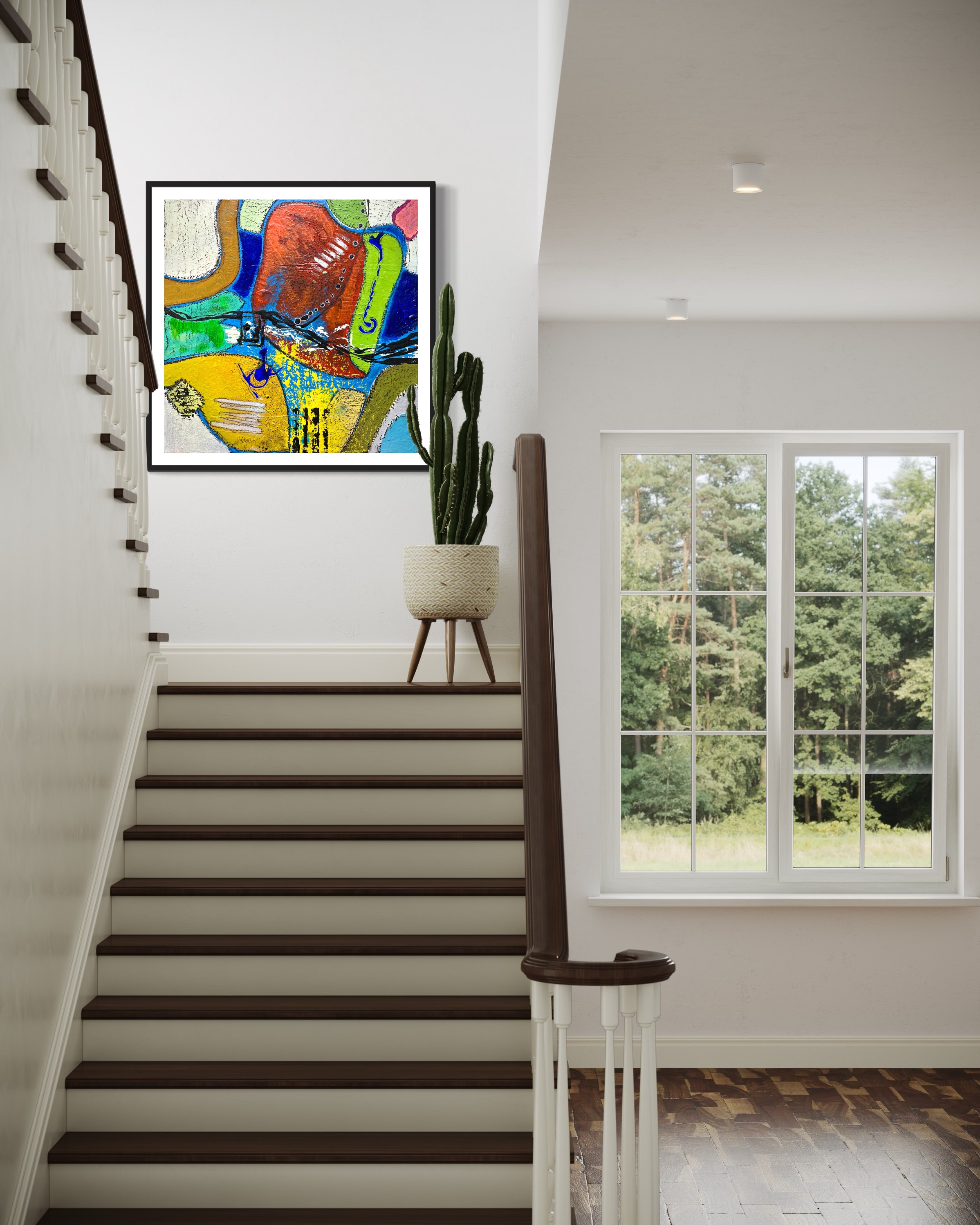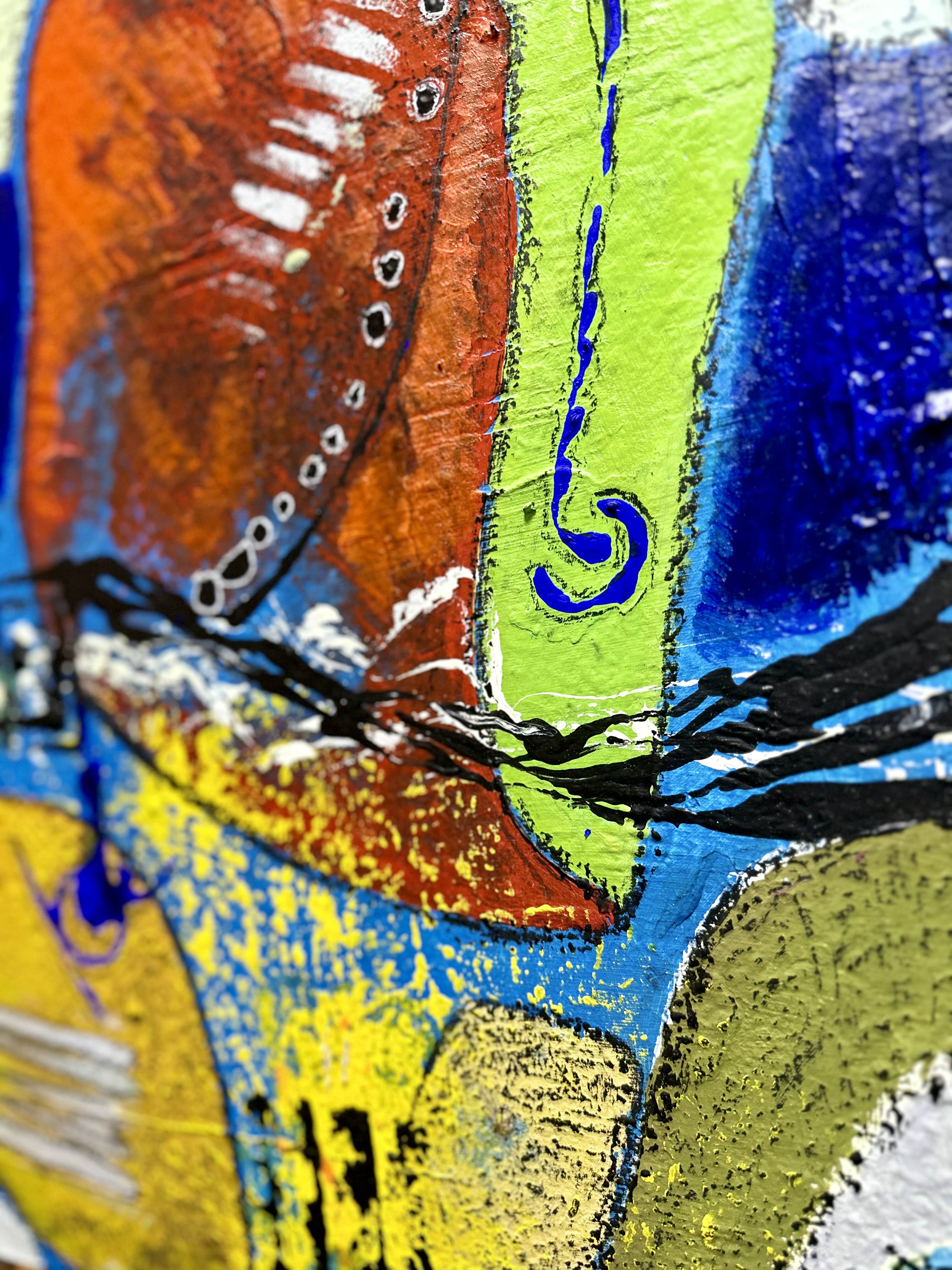 This series emerged from a truth I discovered in my fifties: while we believe we live life according to our plans, it is chance and the unexpected that shape who we are. In this work, I let my brushes fall freely, allowing colors and textures to emerge organically, embracing the unpredictability. Within this spontaneity, I introduced artificial patterns, blurring the boundary between order and chaos. Intention and spontaneity do not merely coexist; they collide and intertwine, creating a space that resists clarity and neat resolution. This piece reflects life—an uncharted territory where symmetry is impossible and no harmonious conclusion is ever reached. I want viewers to feel how these forces, instead of reconciling, remain entangled in a constant state of flux. The materials—acrylic, charcoal, and oil pastel—capture this instability, revealing how beauty arises not from resolution, but from the untidy, unfinished state of being.