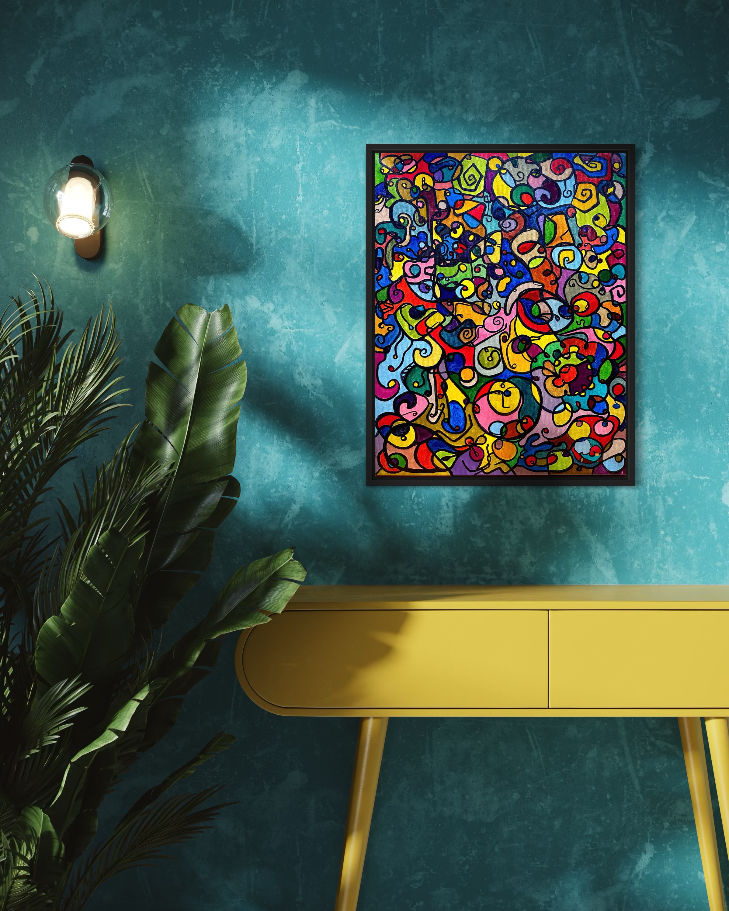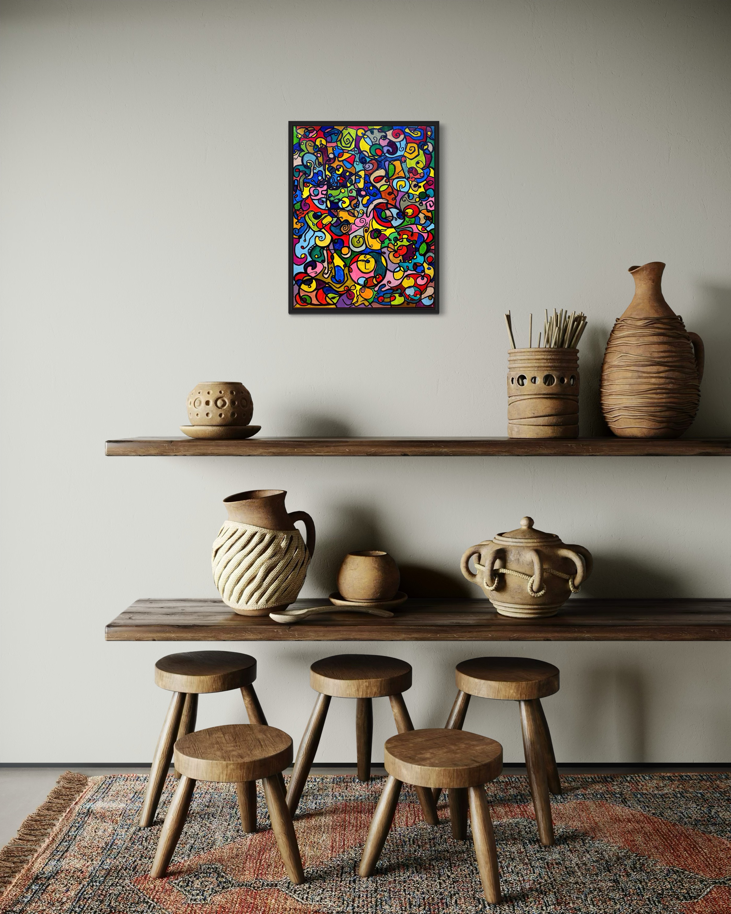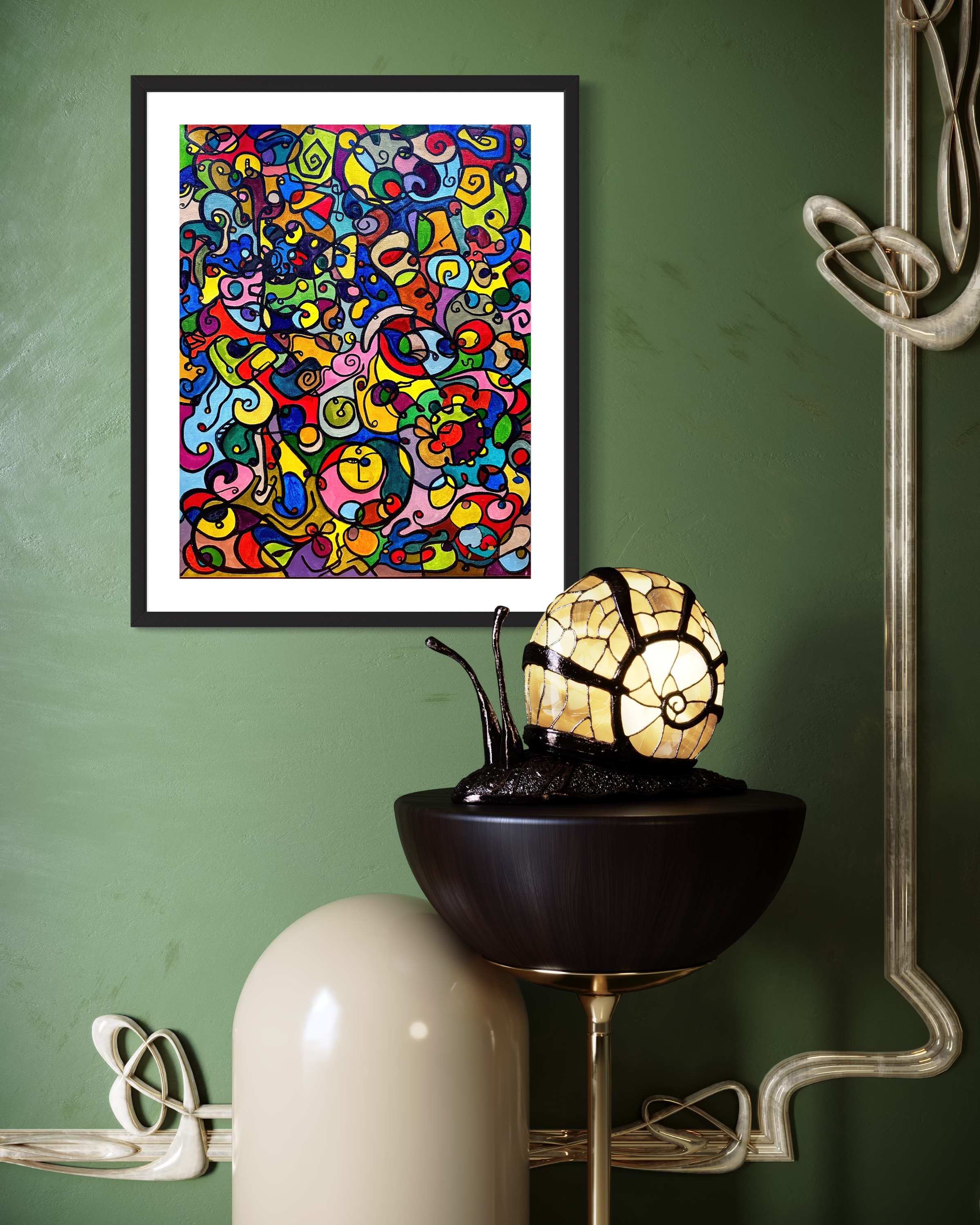 In creating this artwork, I delved deep into the metaphysical realm, using vibrant oriental paint to explore the intersection of emotions and spirituality. The swirling, abstract forms symbolize the complex dance of our innermost thoughts and feelings. Each color and shape intertwines to reflect both harmony and conflict, encouraging a meditative exploration of self. This piece invites you to lose yourself in its depths, sparking introspection and a vibrant energy in your space.