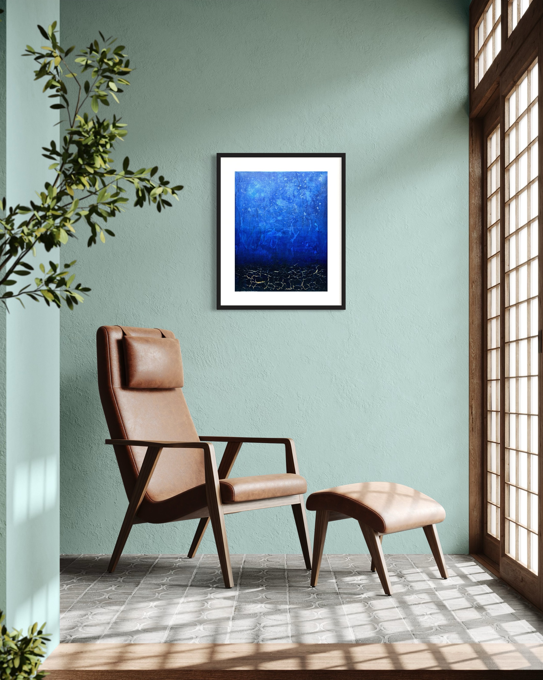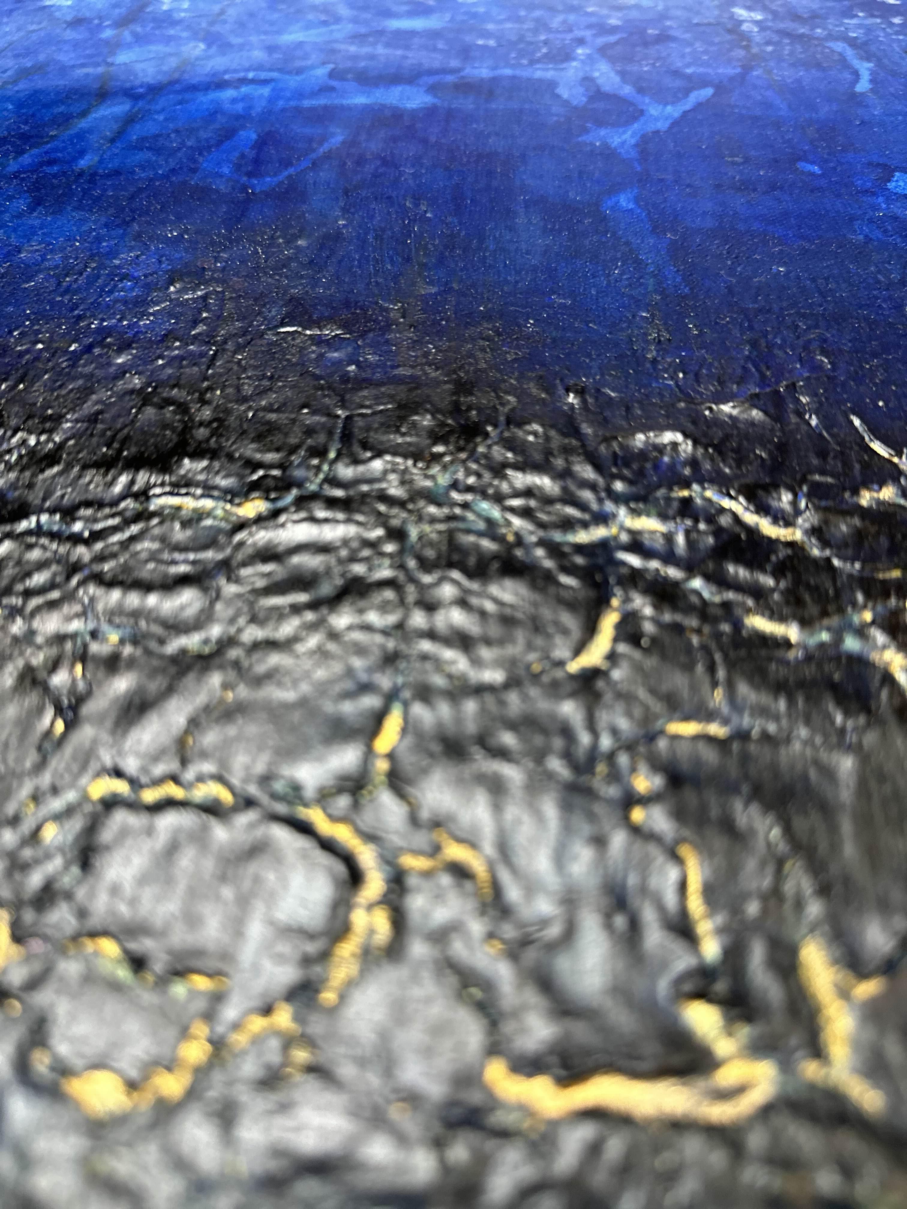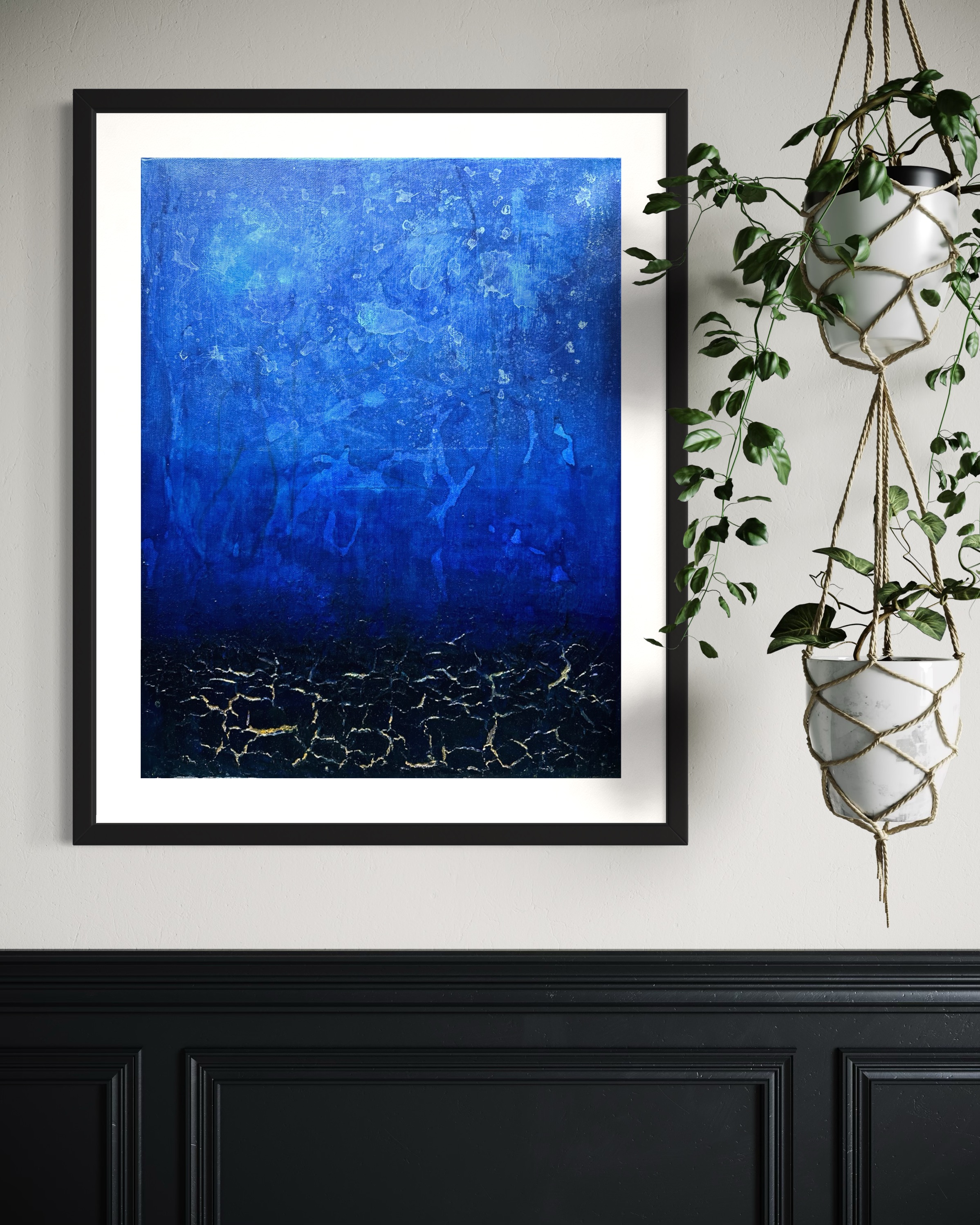 In this piece, I delved into the profound depths of the emotional spectrum, using vibrant shades of blue to evoke a sense of mystery and wonder. The textured, almost ethereal surface represents the complex layers of human experiences, while the vintage touch connects us to a sense of timeless nostalgia. This artwork is crafted to instill a tranquil yet invigorating energy, perfect for enhancing any living space with its profound, contemplative beauty.