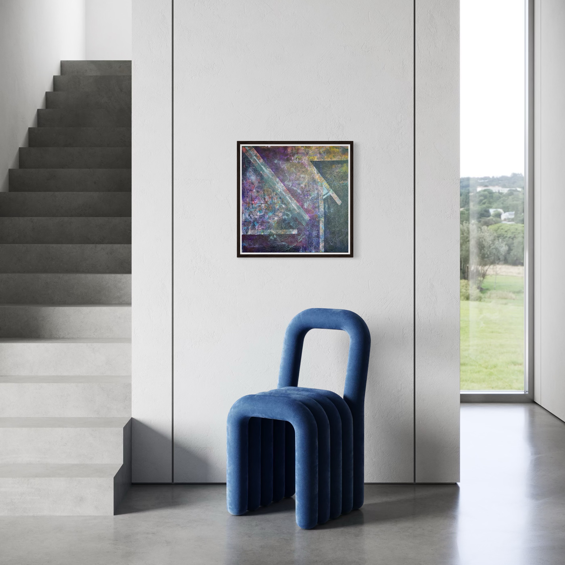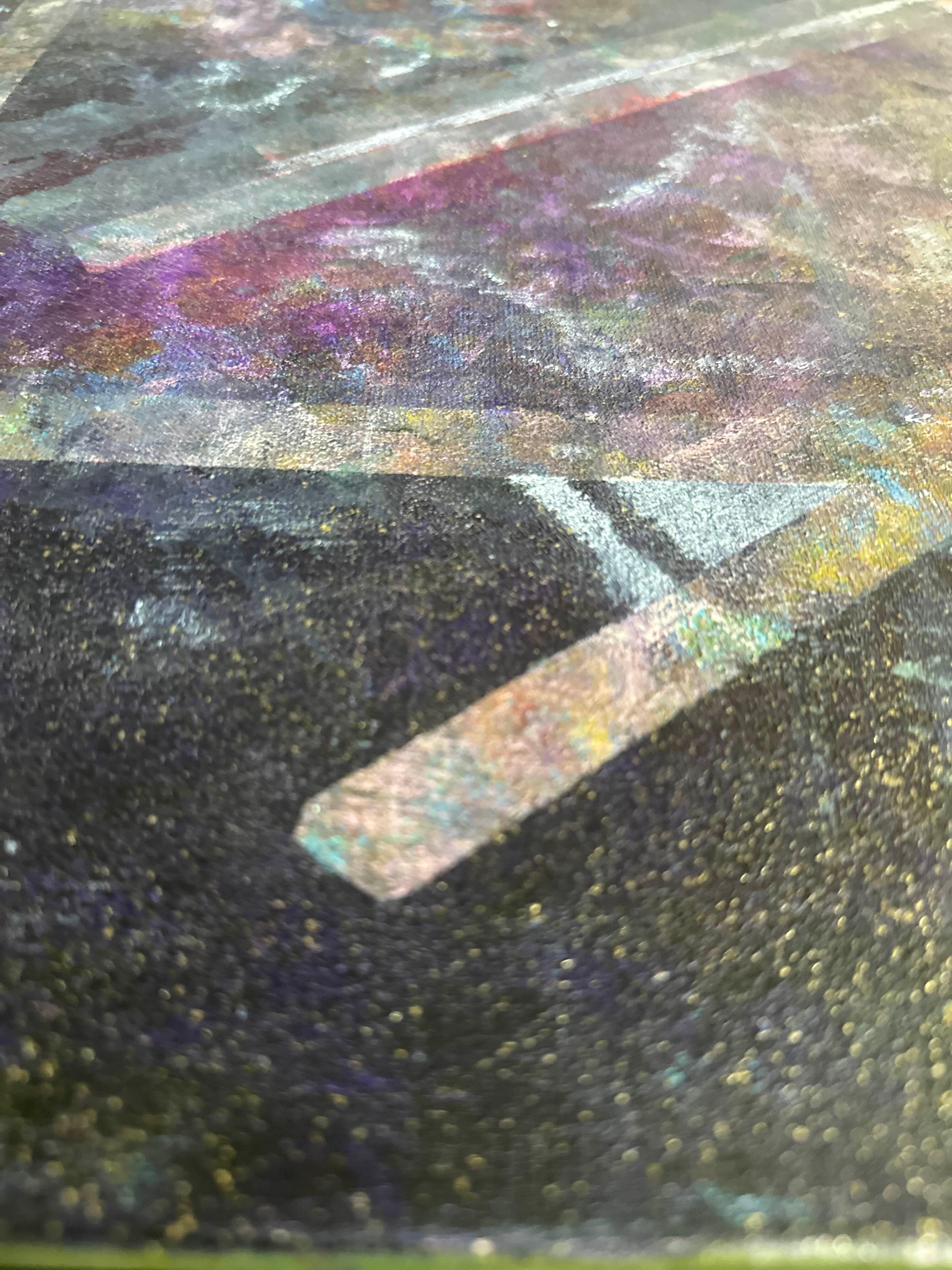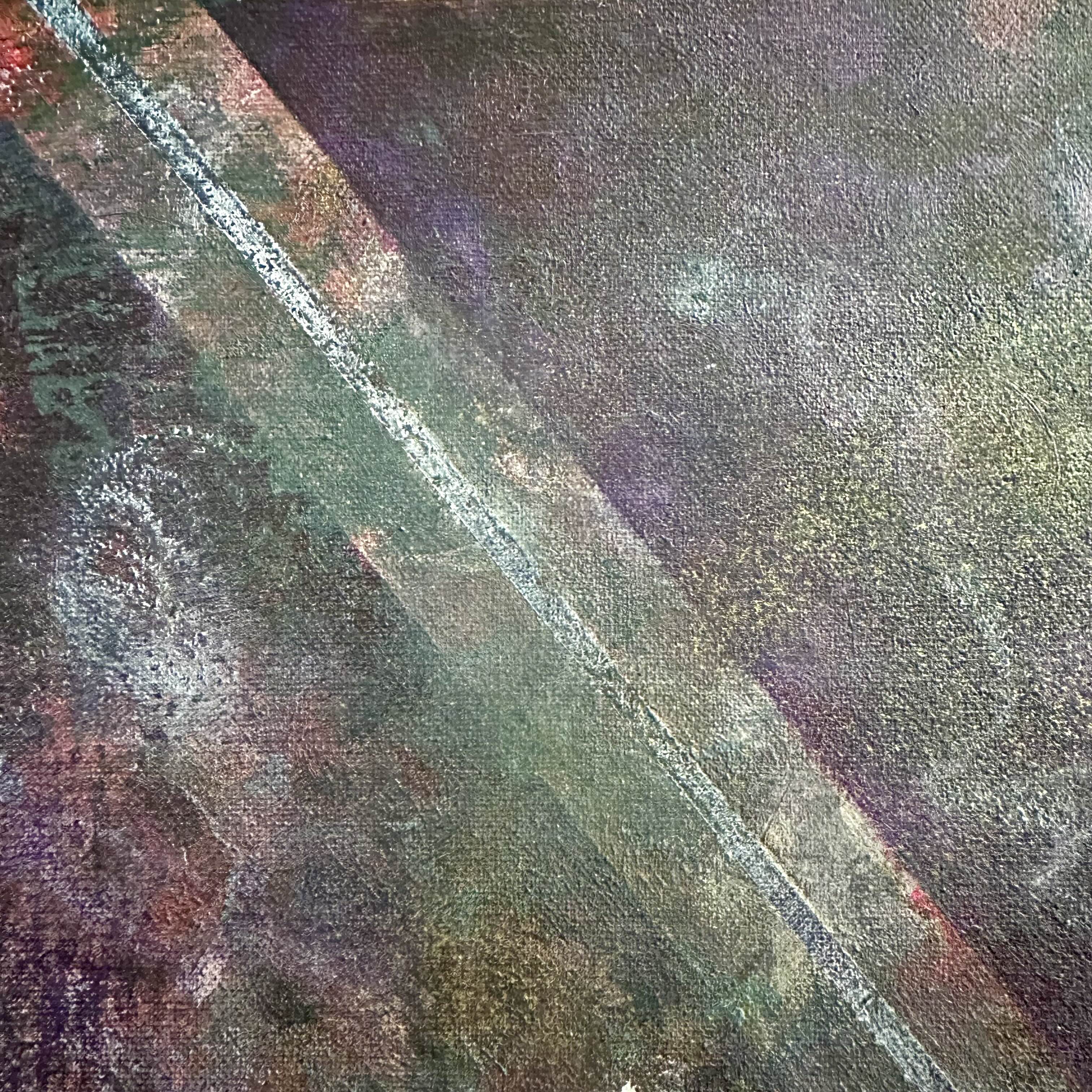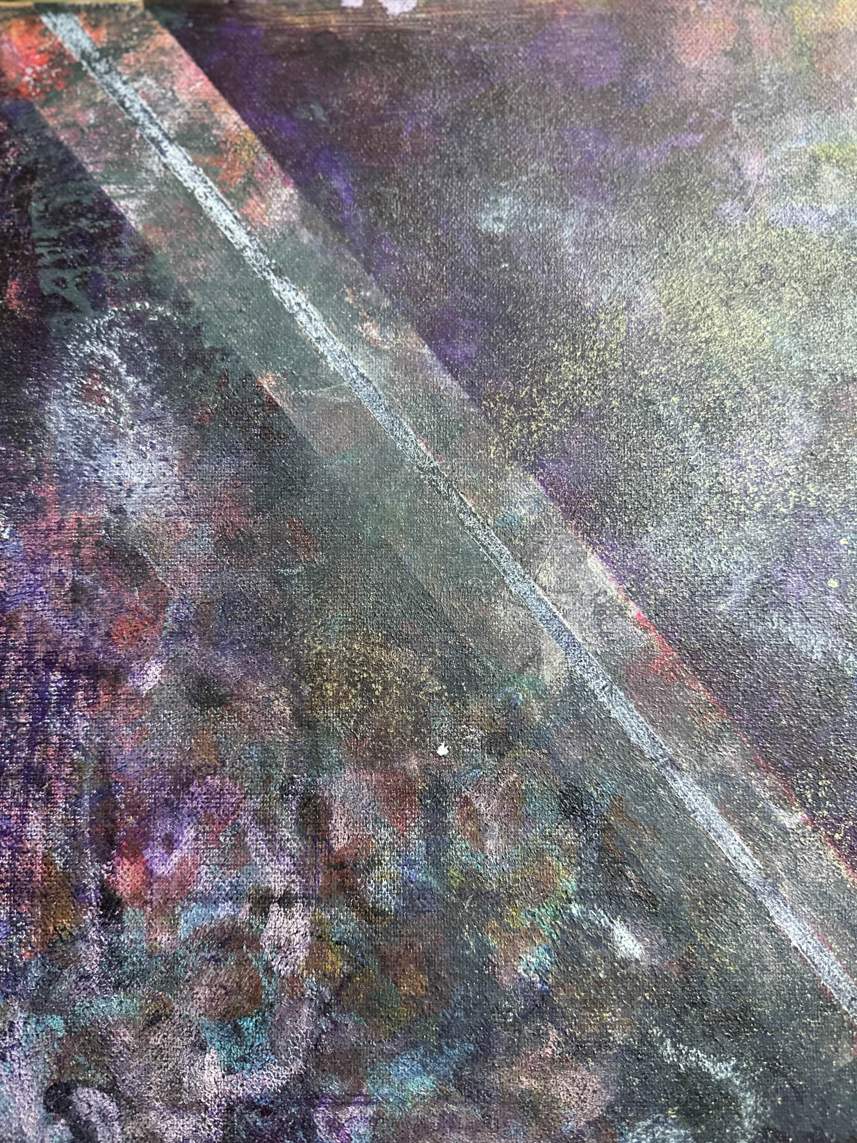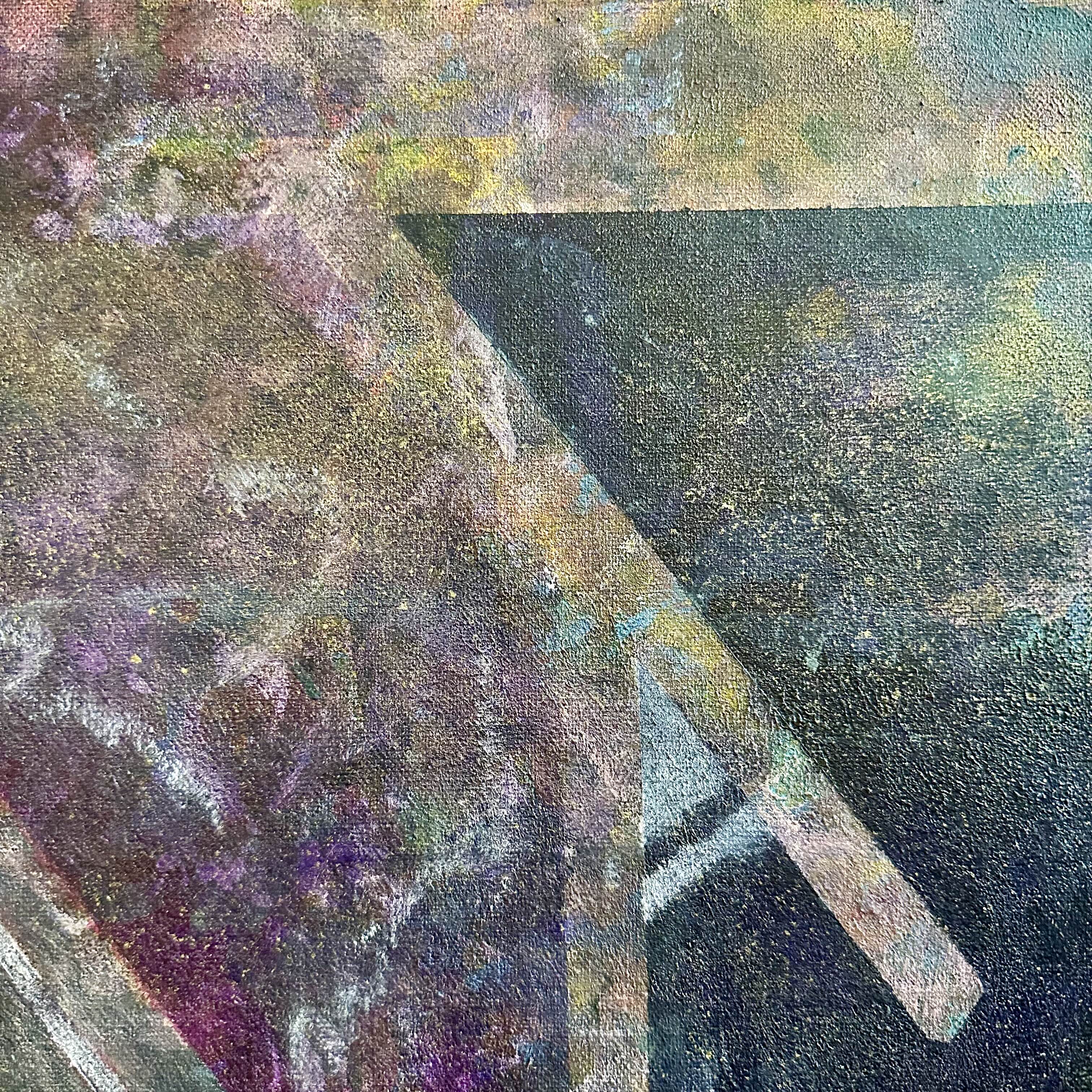 In this piece, I've layered acrylics to create a textured interplay of abstract shapes and symbols, evoking a sense of timelessness and mystique. The deep purples and yellow, contrasted by sharp lines, conjure the resilience and unyielding spirit of human endeavors against historical and cultural currents. It's a spirited reminder of perseverance and the rich tapestry of human experience. This artwork promises to imbue any space with a vibrant, thought-provoking aura.
