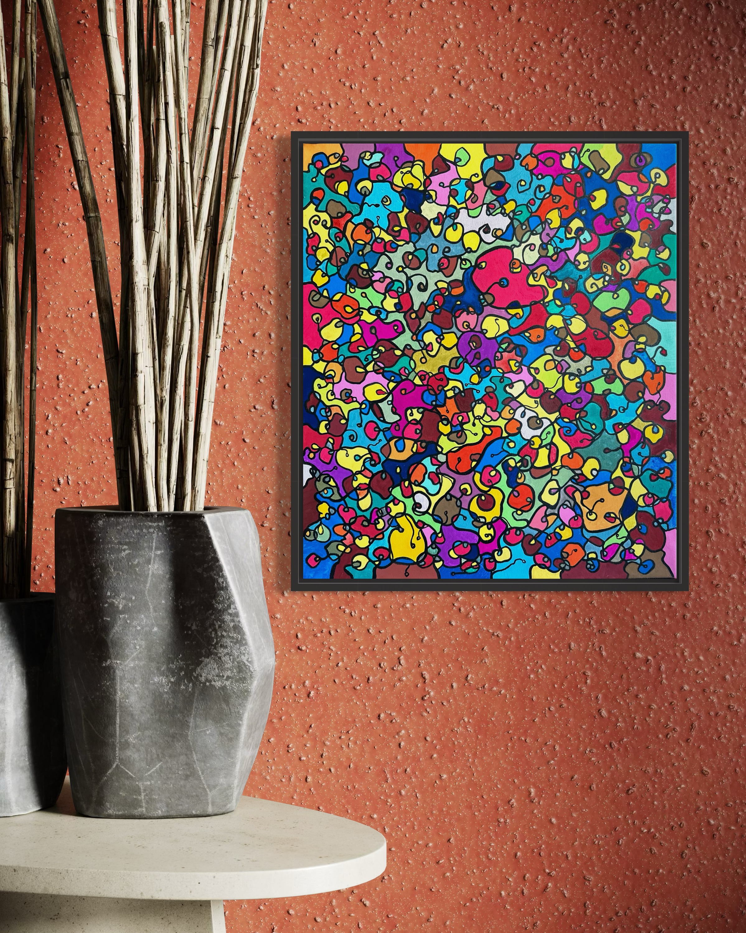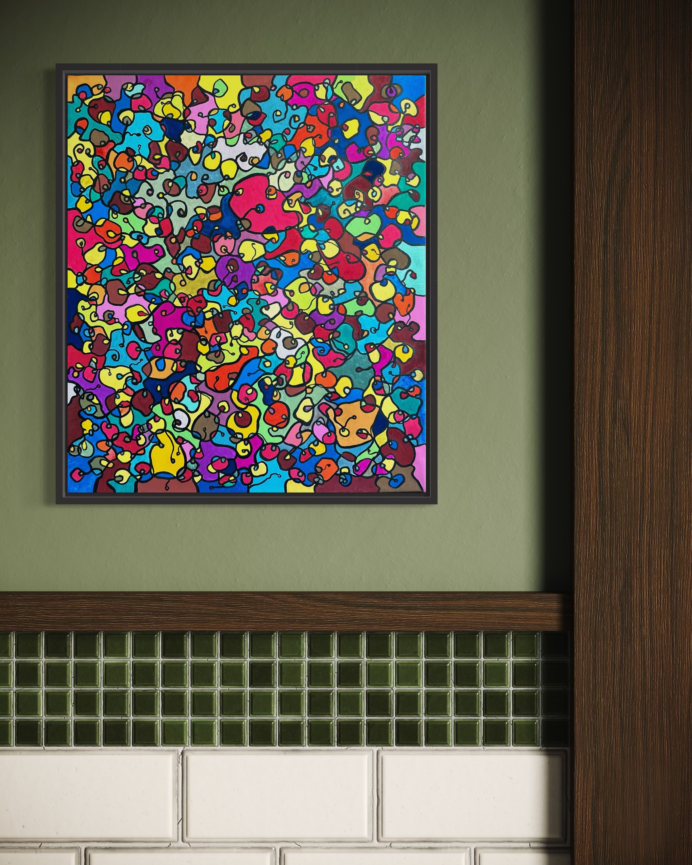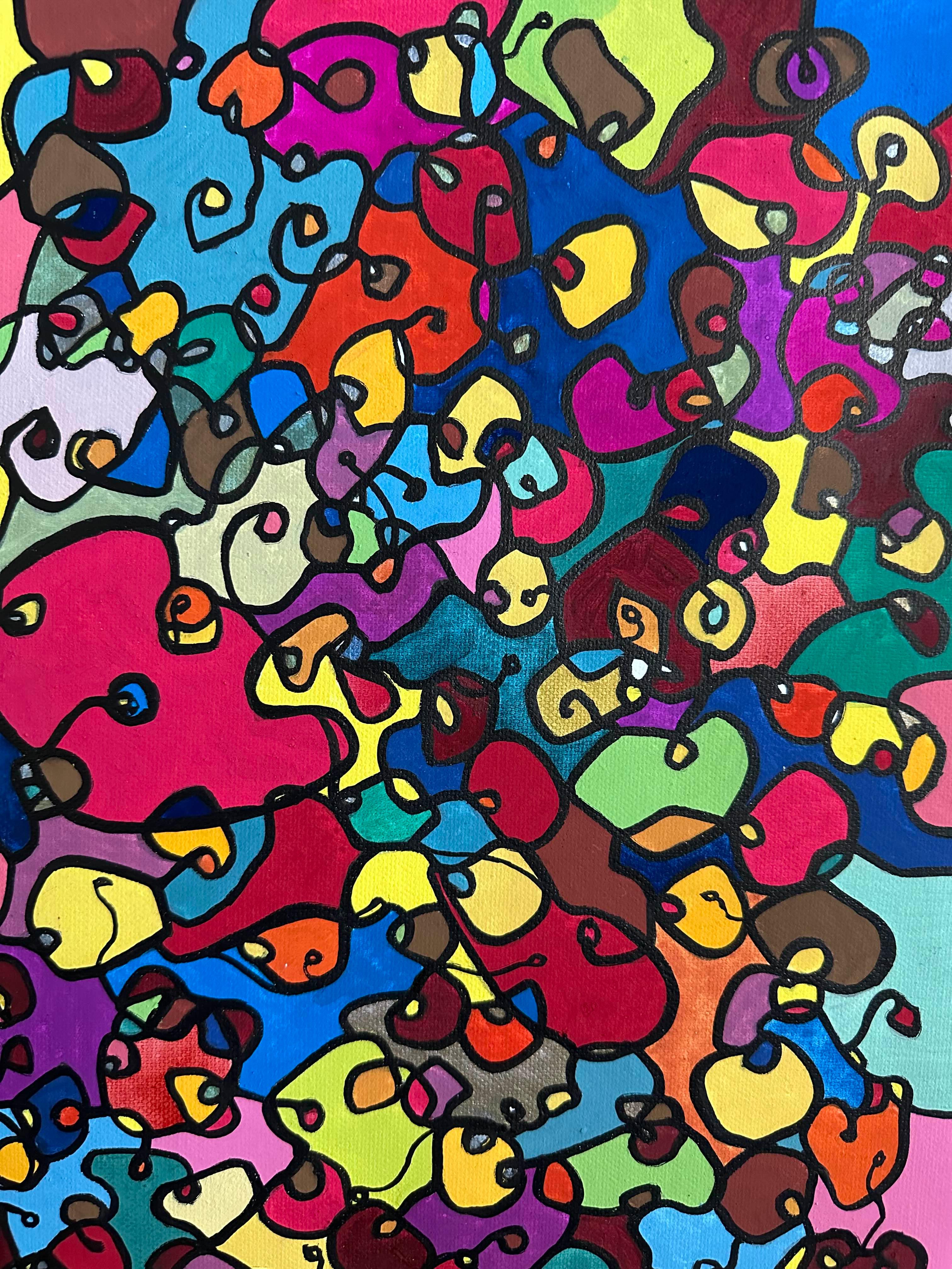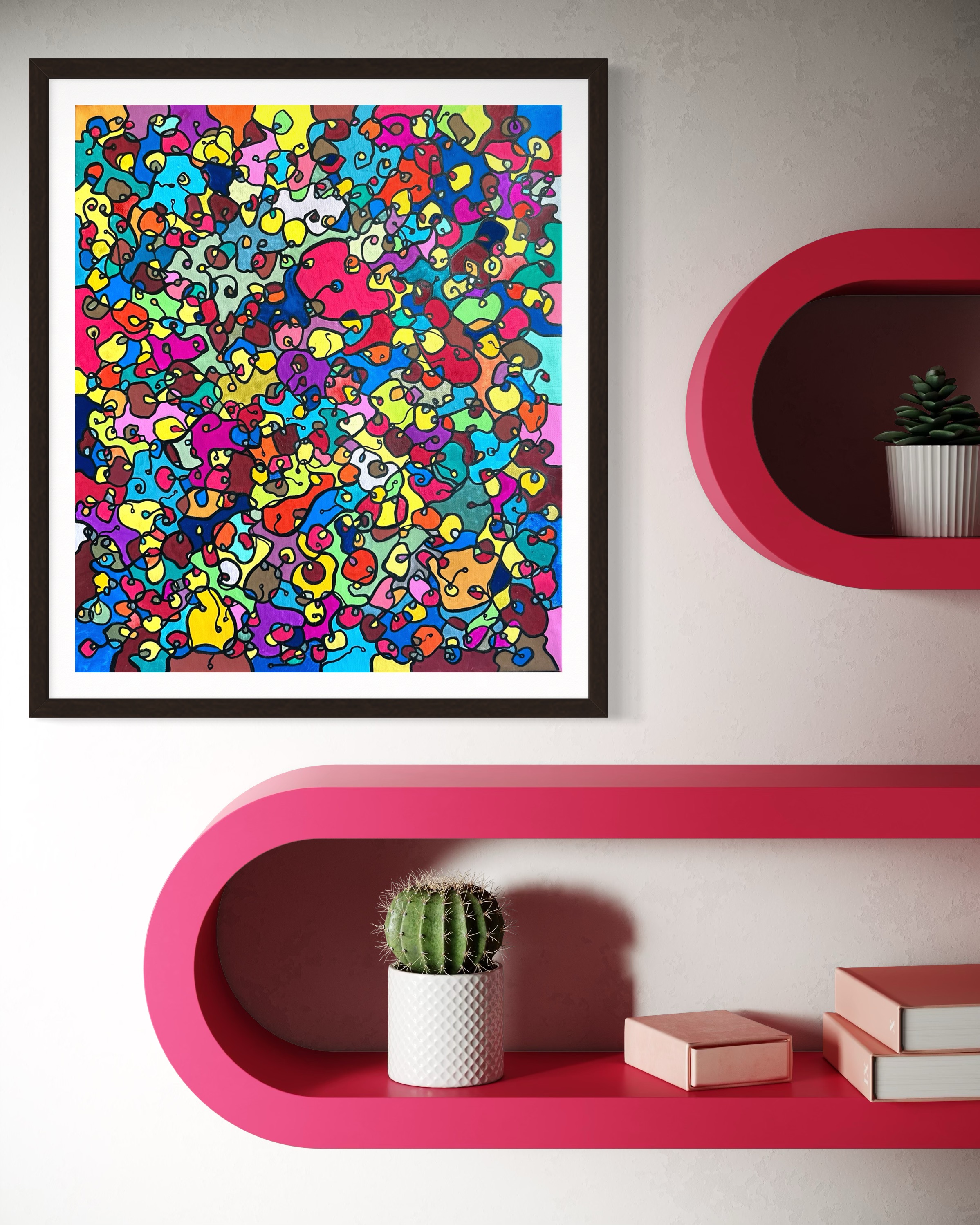 In this painting, I've poured my passion into creating a vibrant, energetic world where organic forms intertwine in a whimsical dance. Inspired by oriental art, each stroke and color captures a spirit of joy and liberation. This artwork isn't just meant to hang on a wall—it's designed to bring a pulse of life and an explosion of color into your space, encouraging everyone who sees it to embrace their most vibrant selves and bloom to their heart's content.