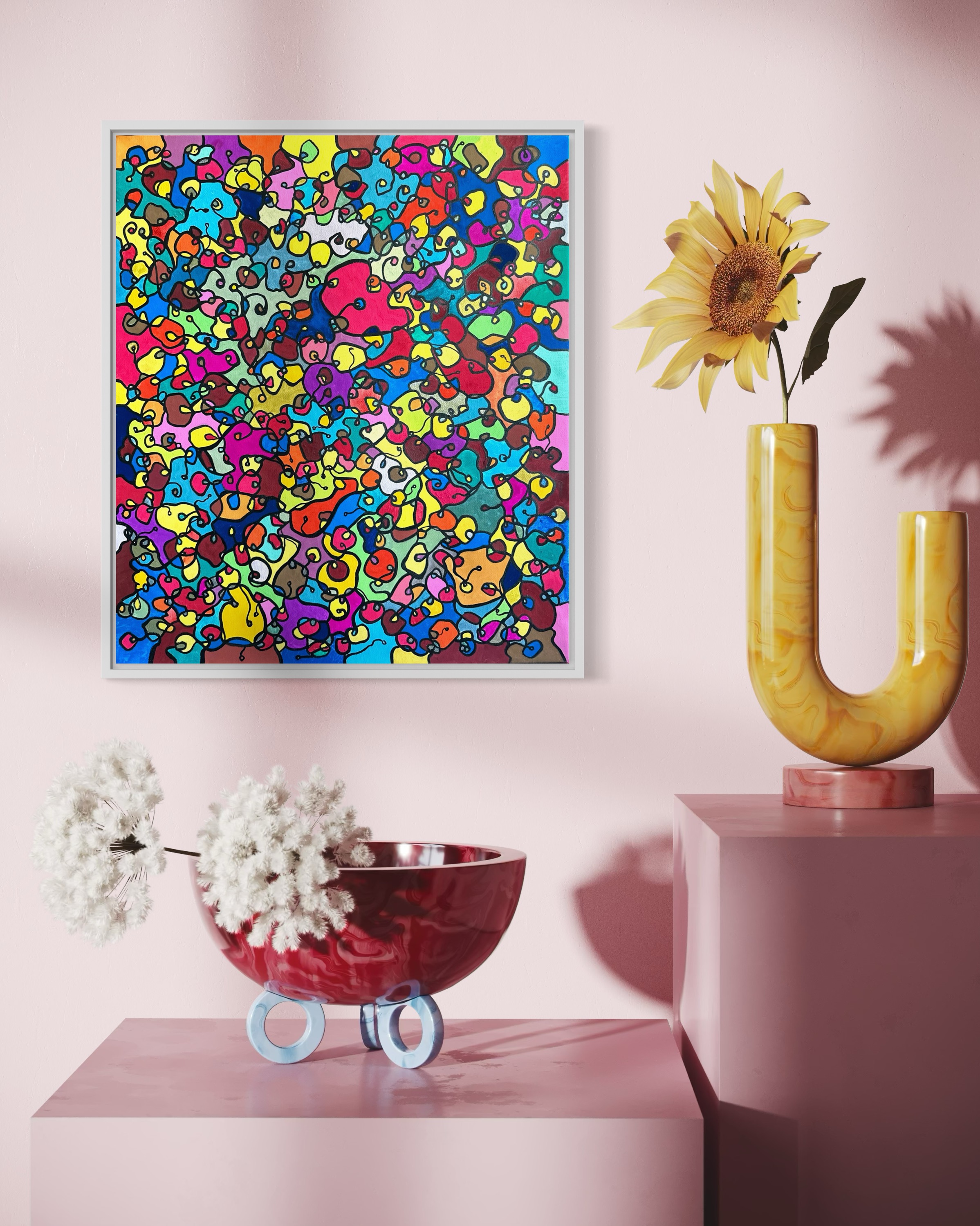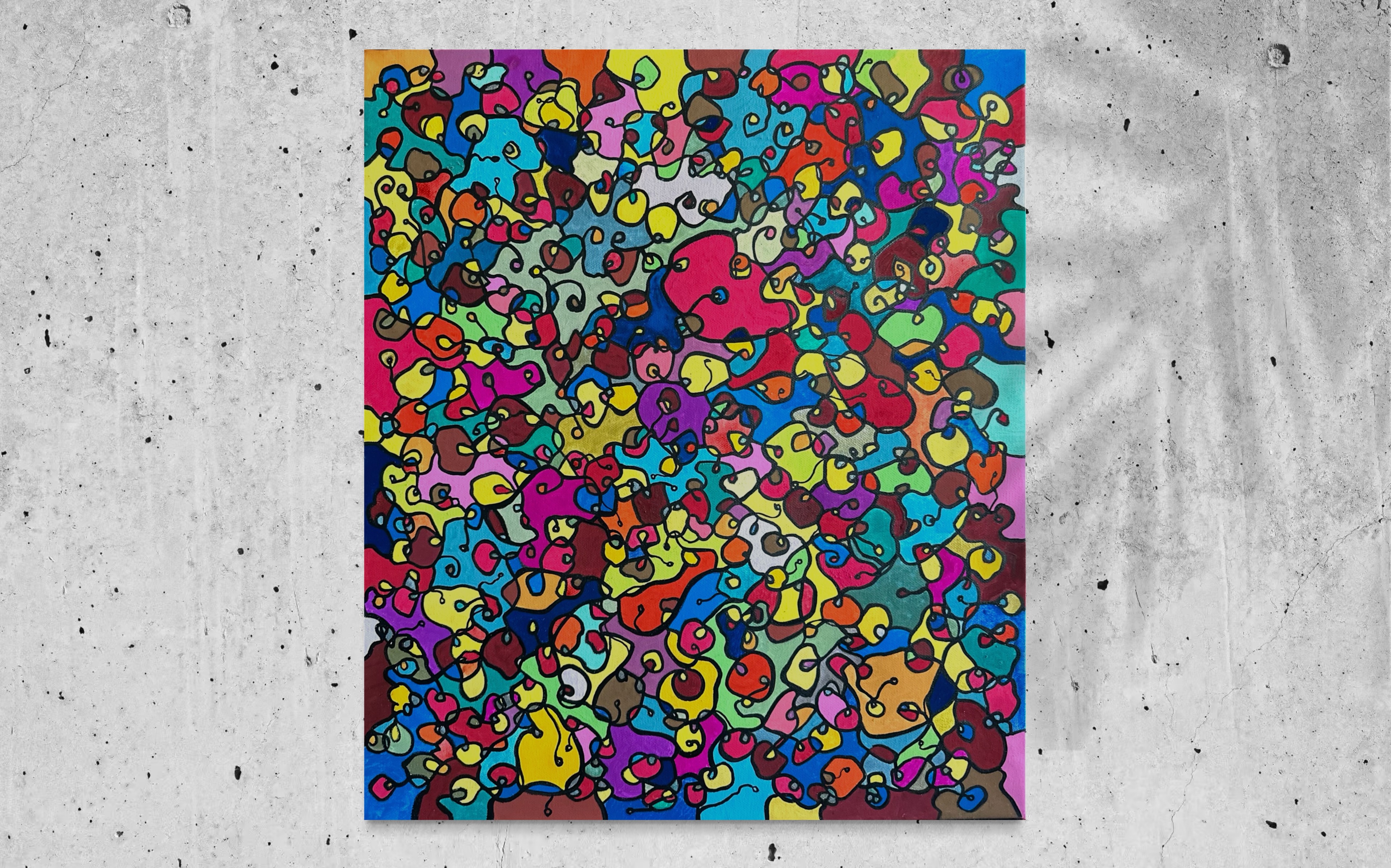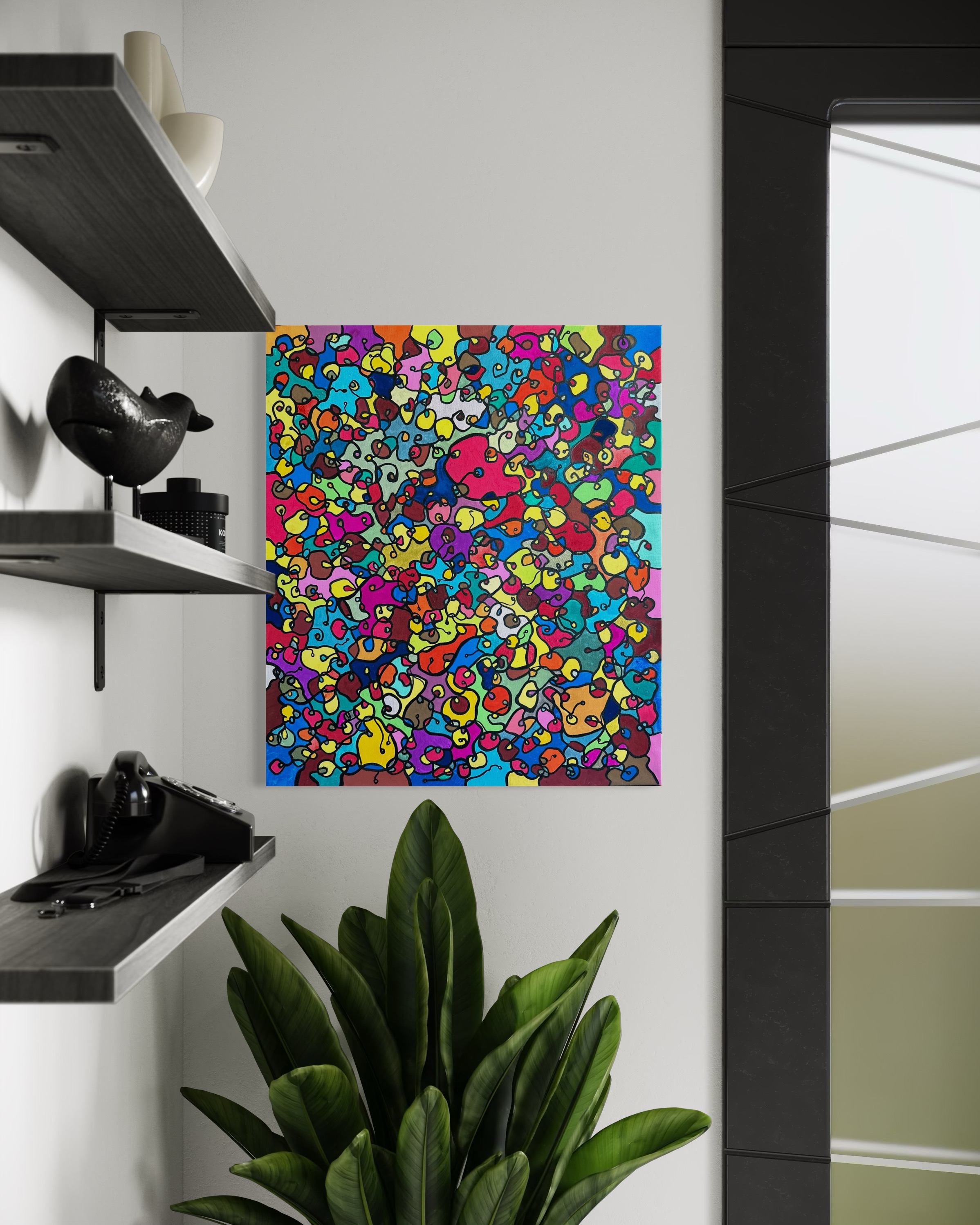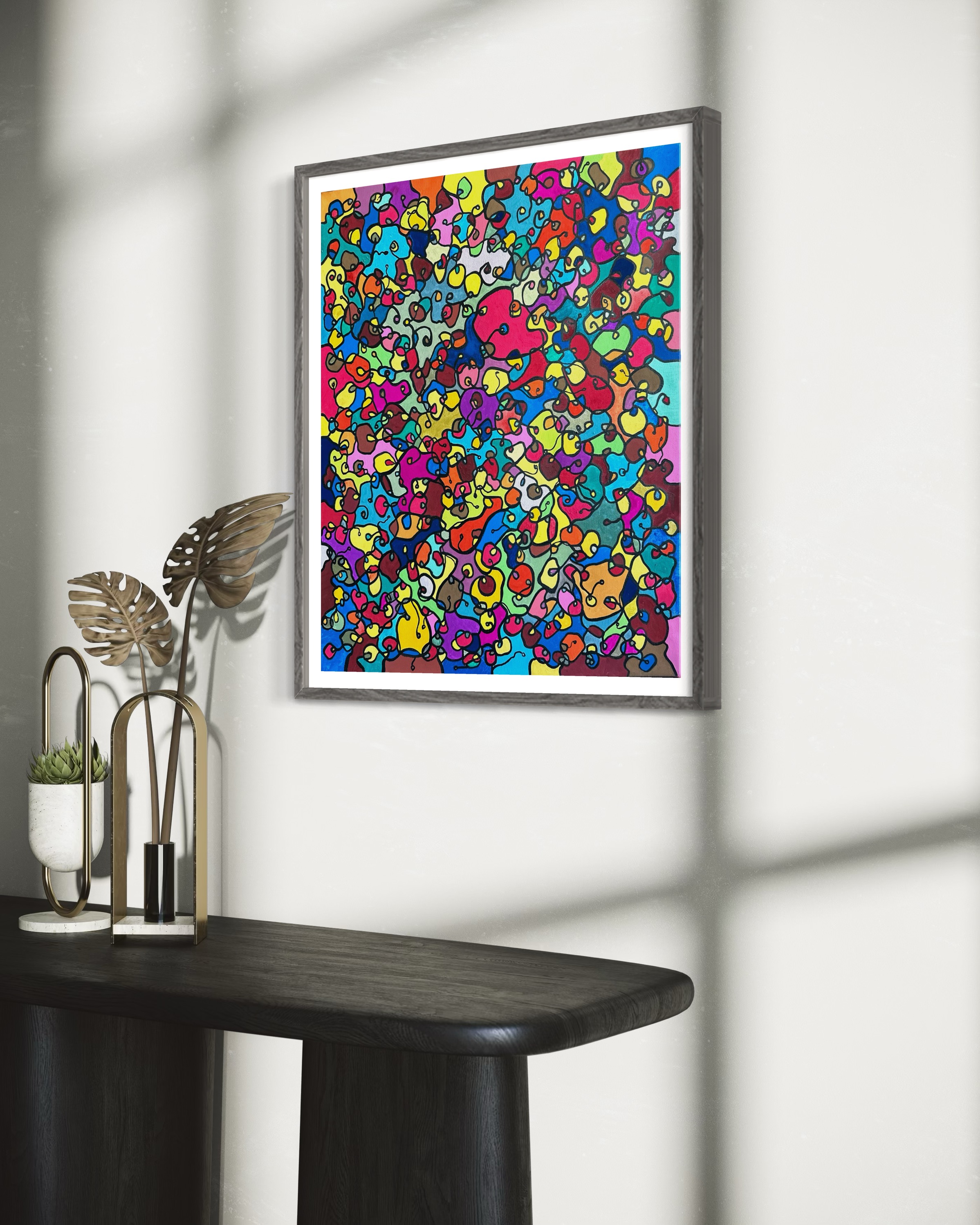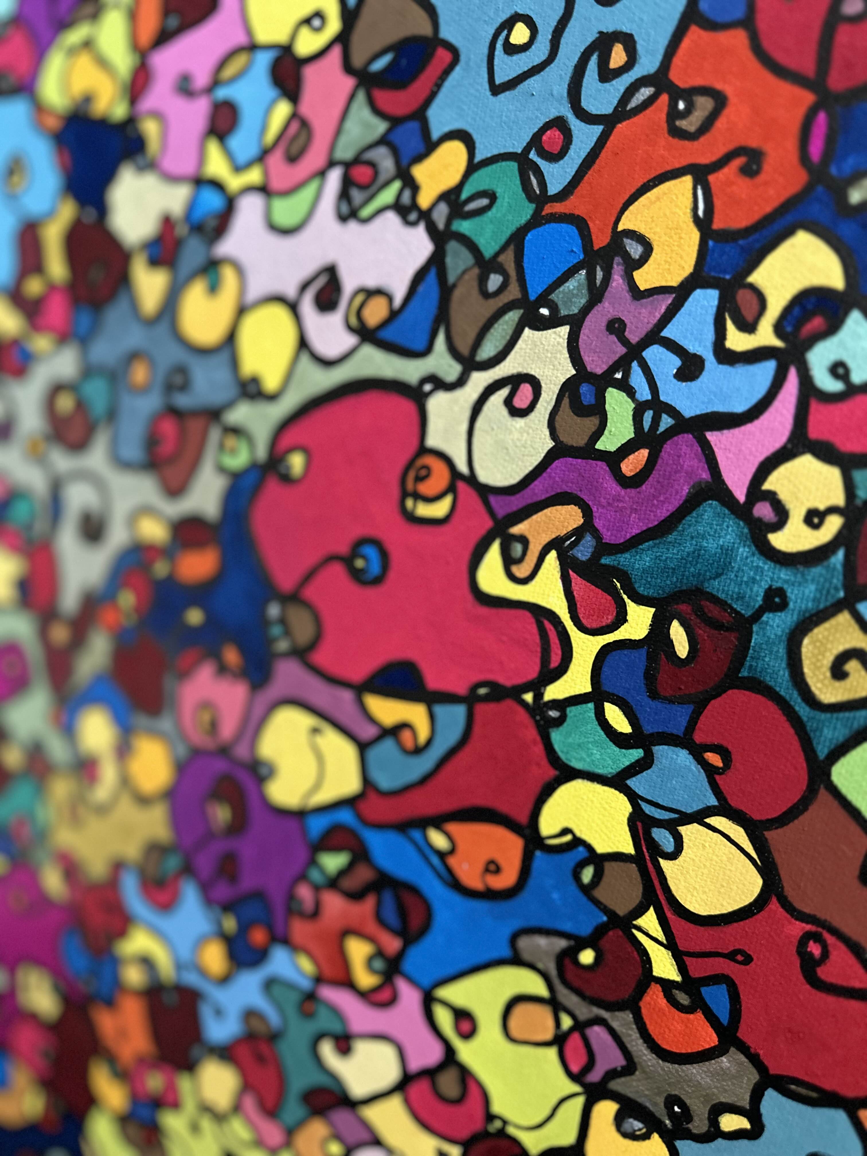 In this painting, I've poured my passion into creating a vibrant, energetic world where organic forms intertwine in a whimsical dance. Inspired by oriental art, each stroke and color captures a spirit of joy and liberation. This artwork isn't just meant to hang on a wall—it's designed to bring a pulse of life and an explosion of color into your space, encouraging everyone who sees it to embrace their most vibrant selves and bloom to their heart's content.