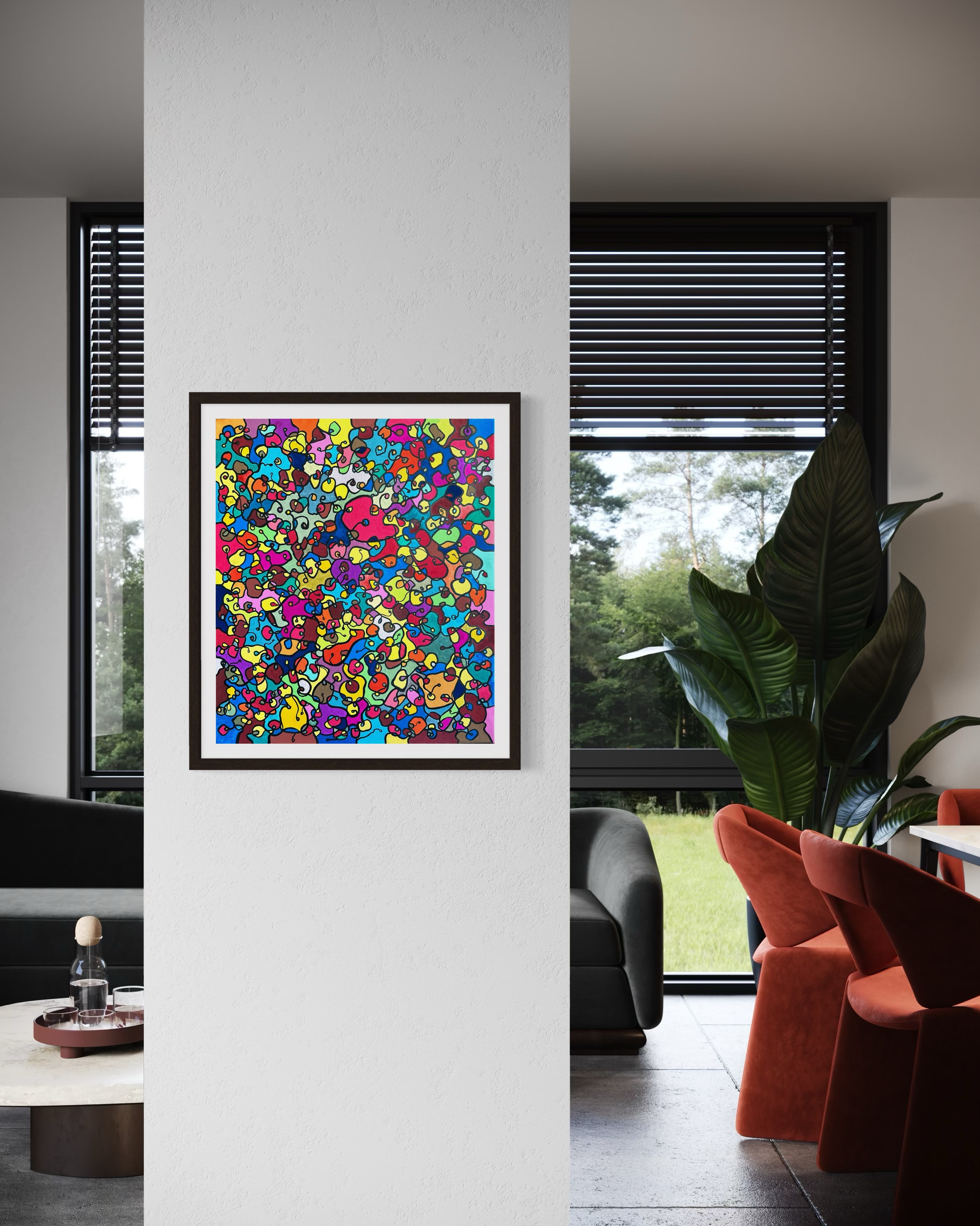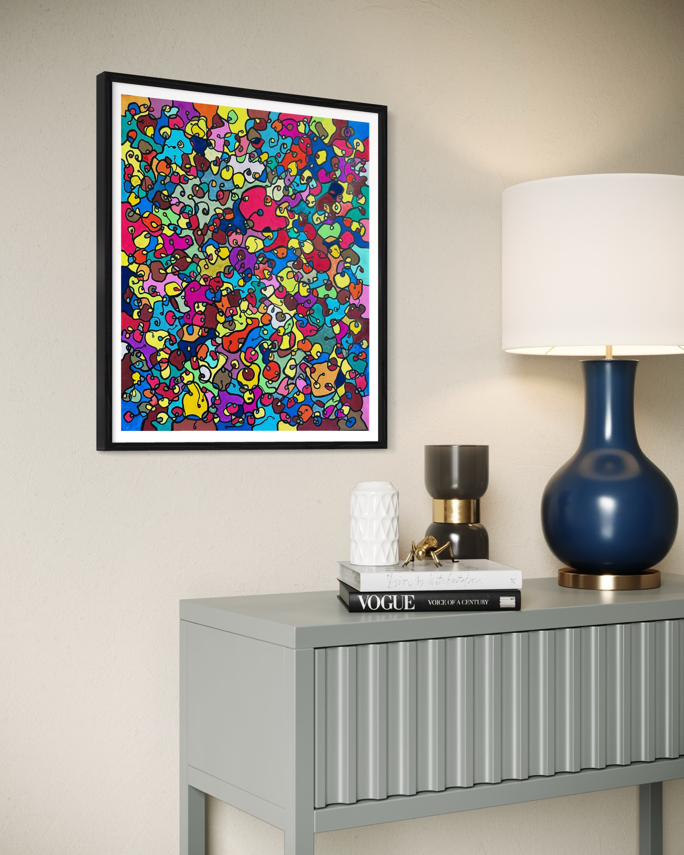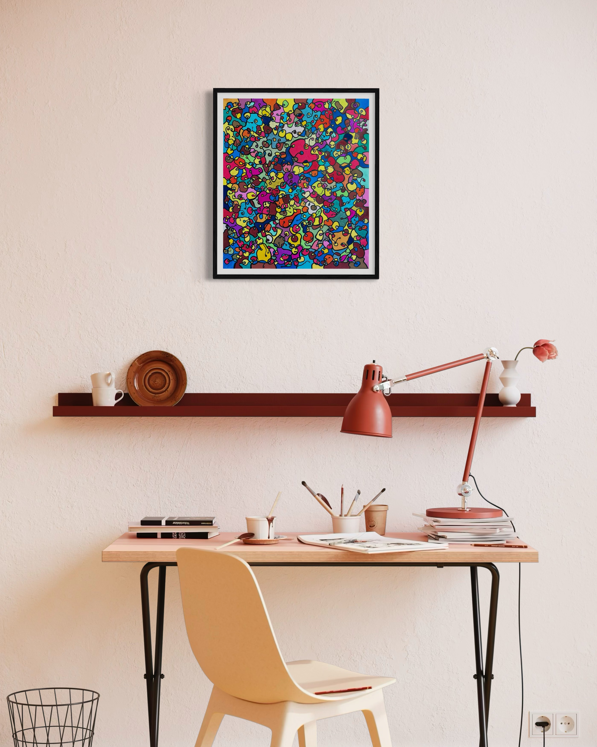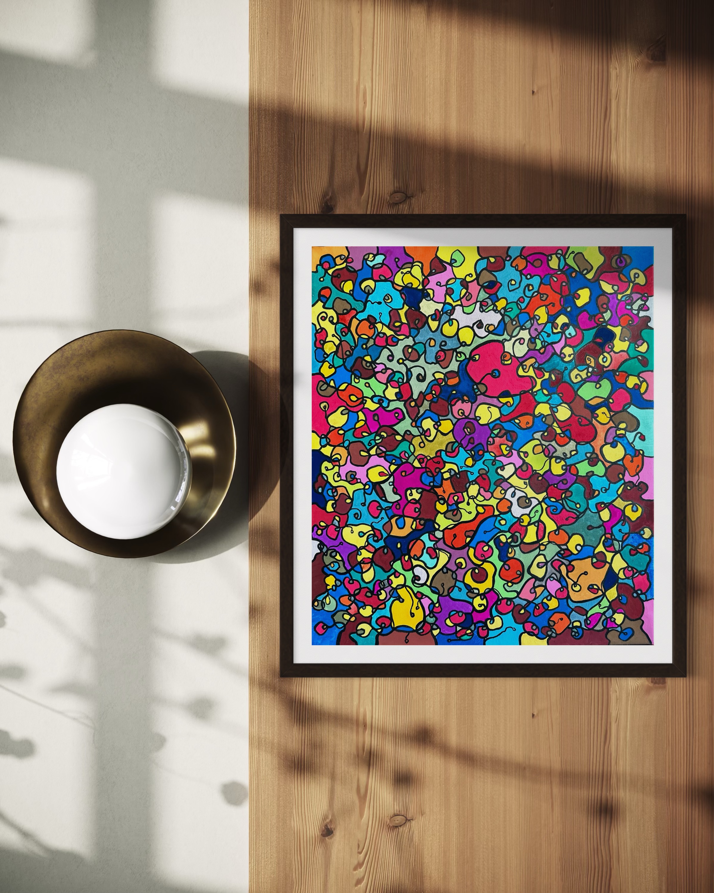 In this painting, I've poured my passion into creating a vibrant, energetic world where organic forms intertwine in a whimsical dance. Inspired by oriental art, each stroke and color captures a spirit of joy and liberation. This artwork isn't just meant to hang on a wall—it's designed to bring a pulse of life and an explosion of color into your space, encouraging everyone who sees it to embrace their most vibrant selves and bloom to their heart's content.