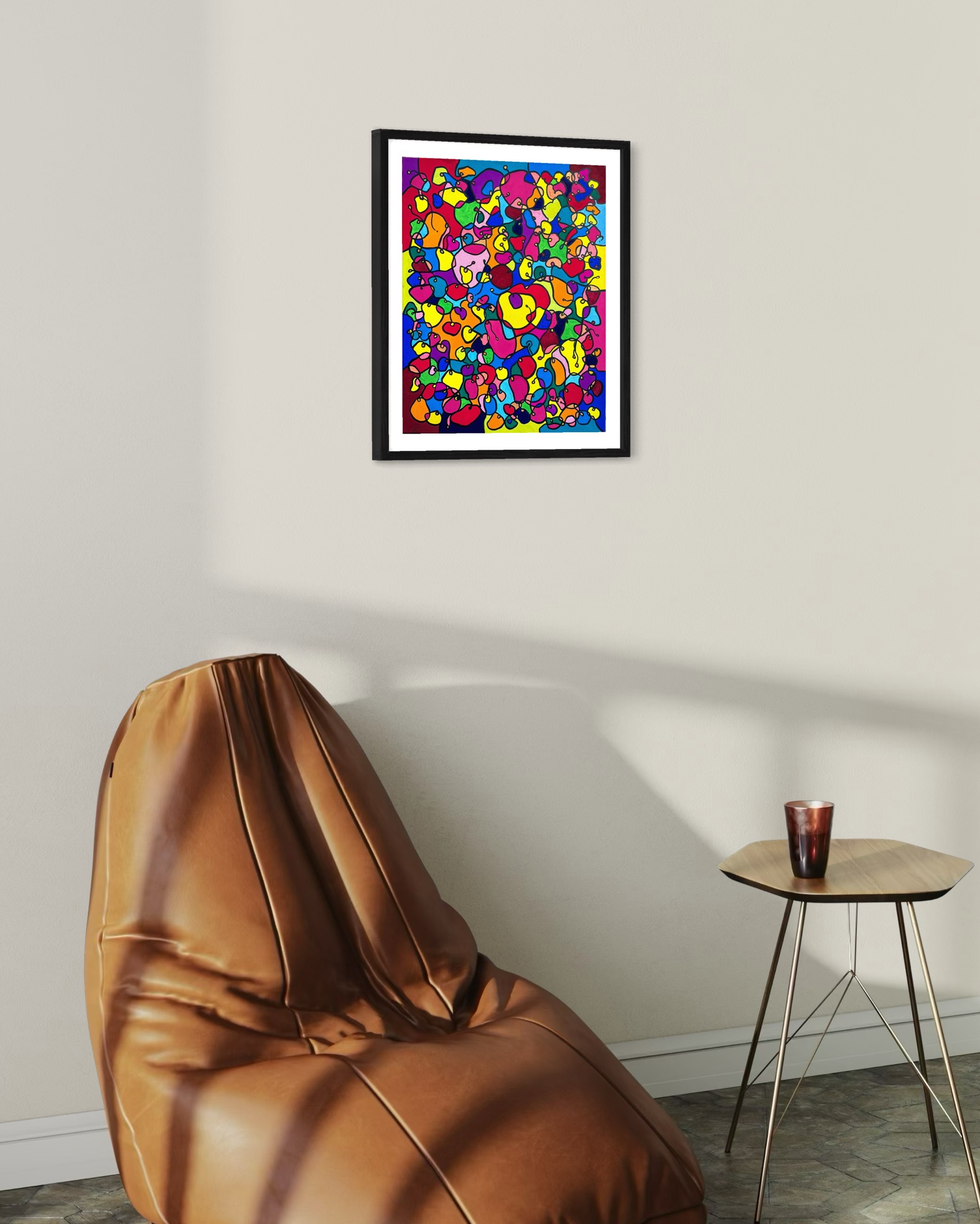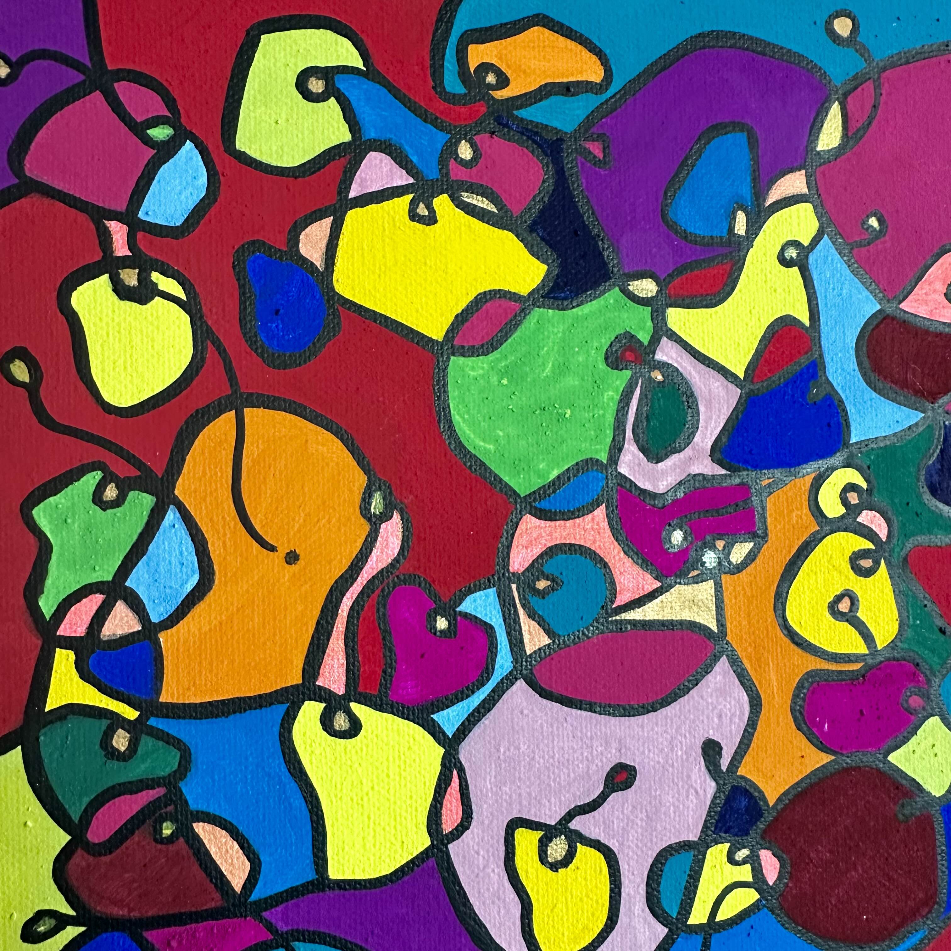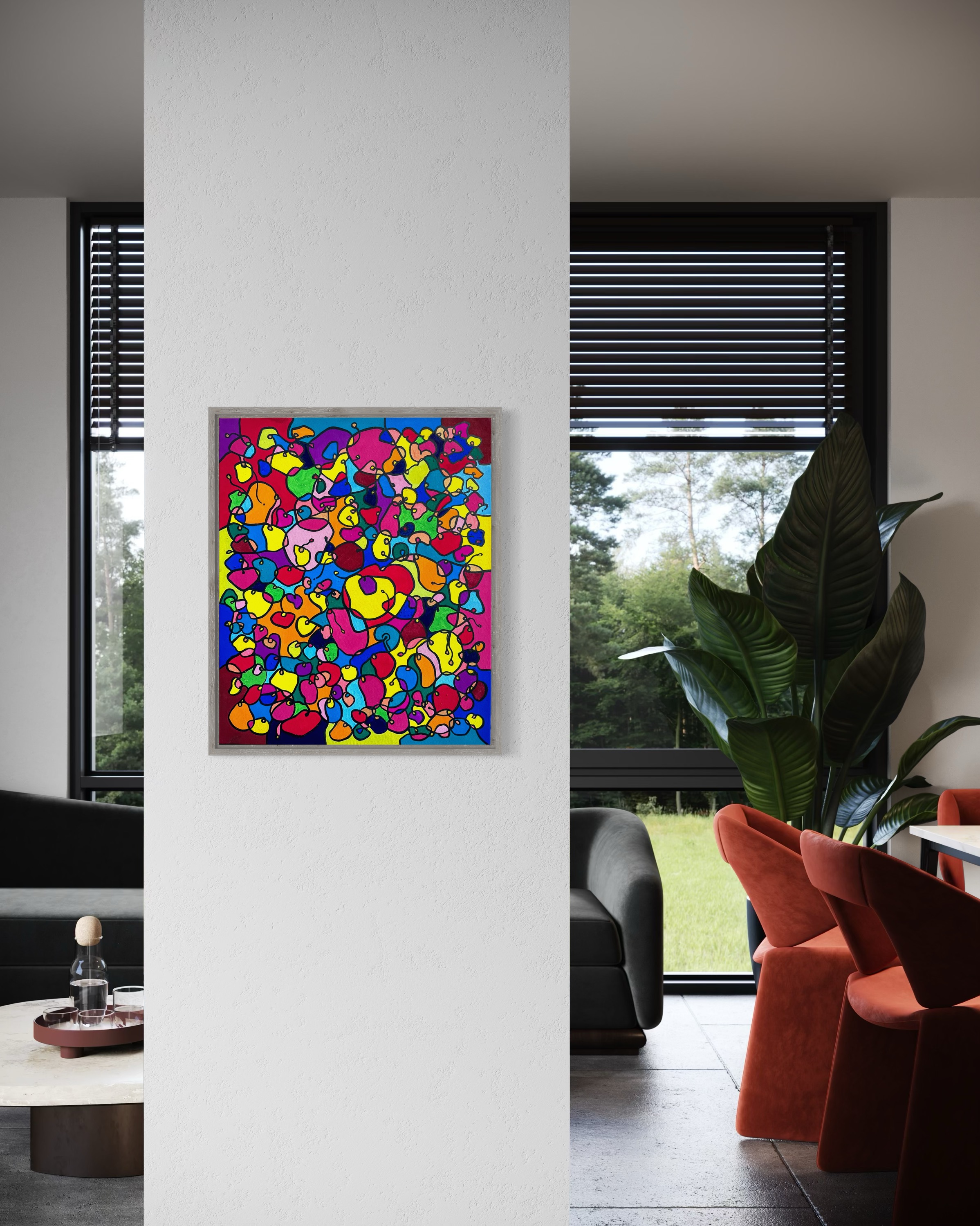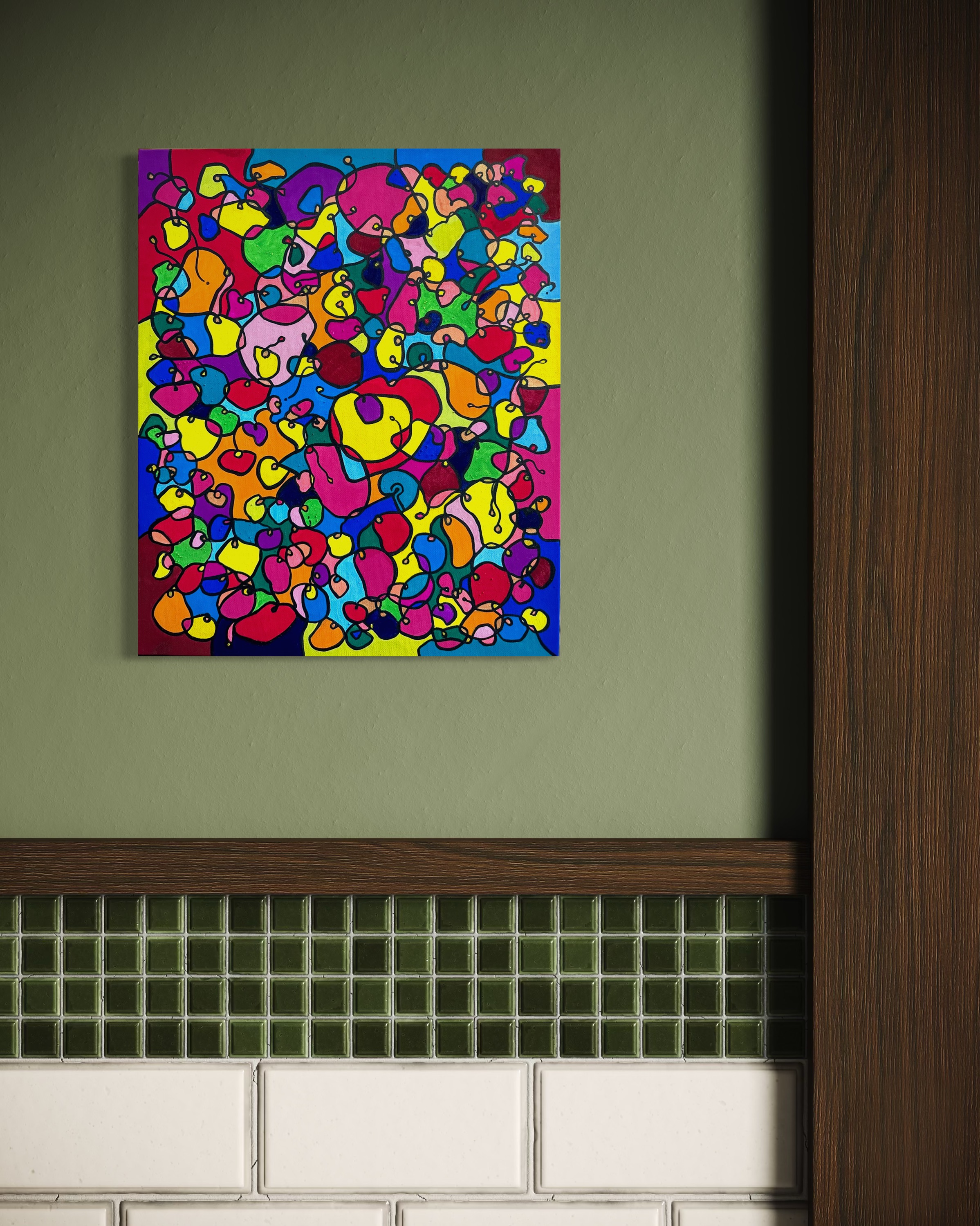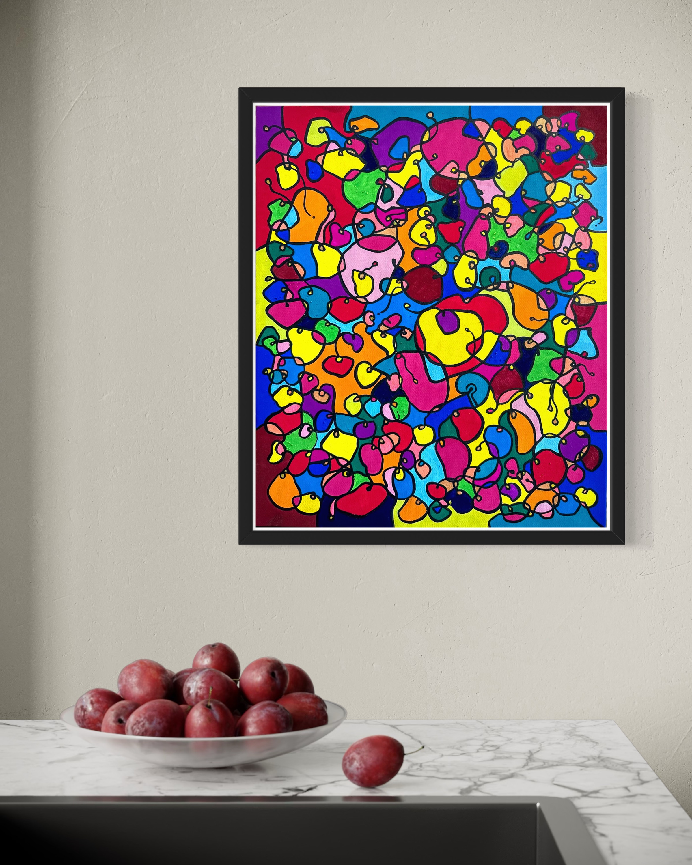 In this painting, I've embraced the vibrancy and fluidity of organic materials, channeling the essence of oriental art through a playful dance of colors and shapes. Each stroke and hue bursts with joy, creating a lively energy that captivates and uplifts. My intention was to weave together tradition and spontaneity, inviting viewers into a world where freedom and harmony coexist brightly on canvas, infusing their space with a spirit of whimsy and inspiration.