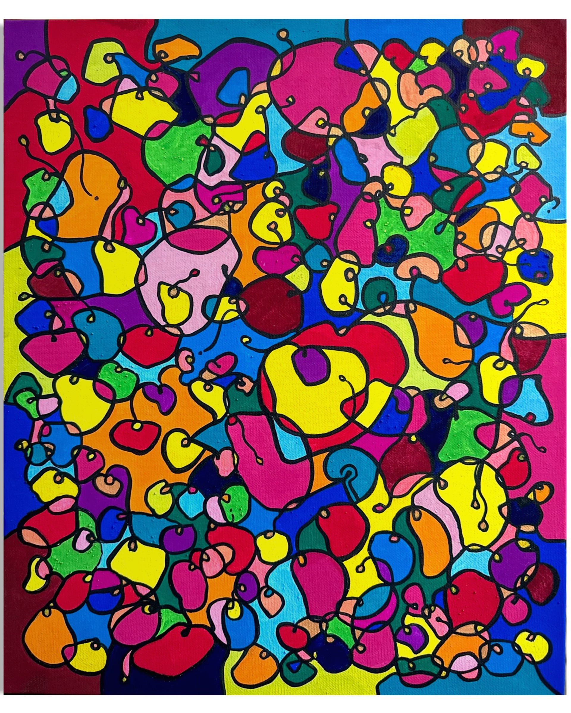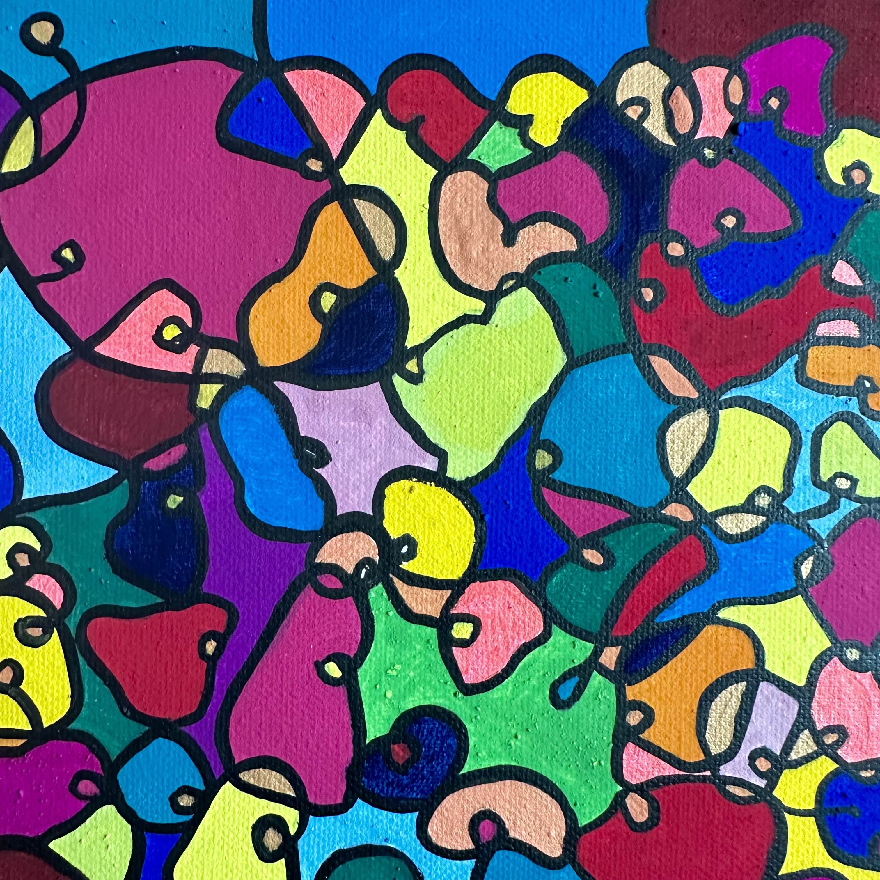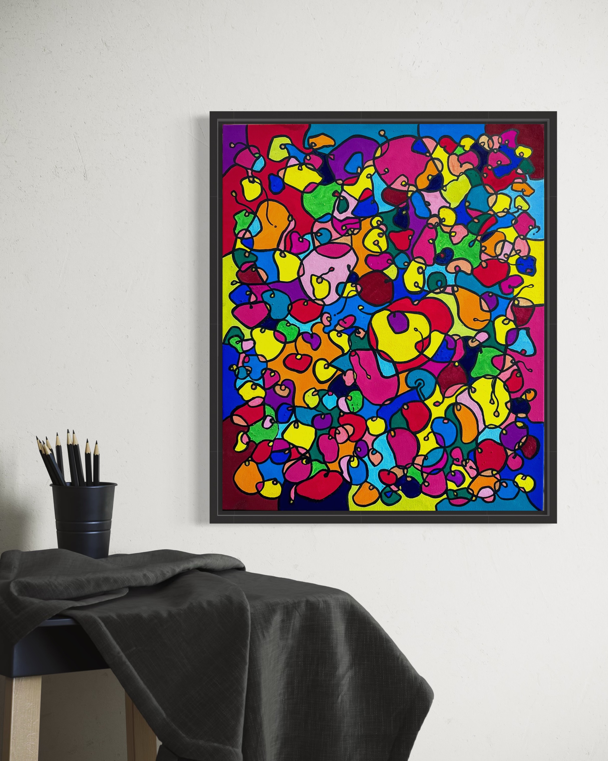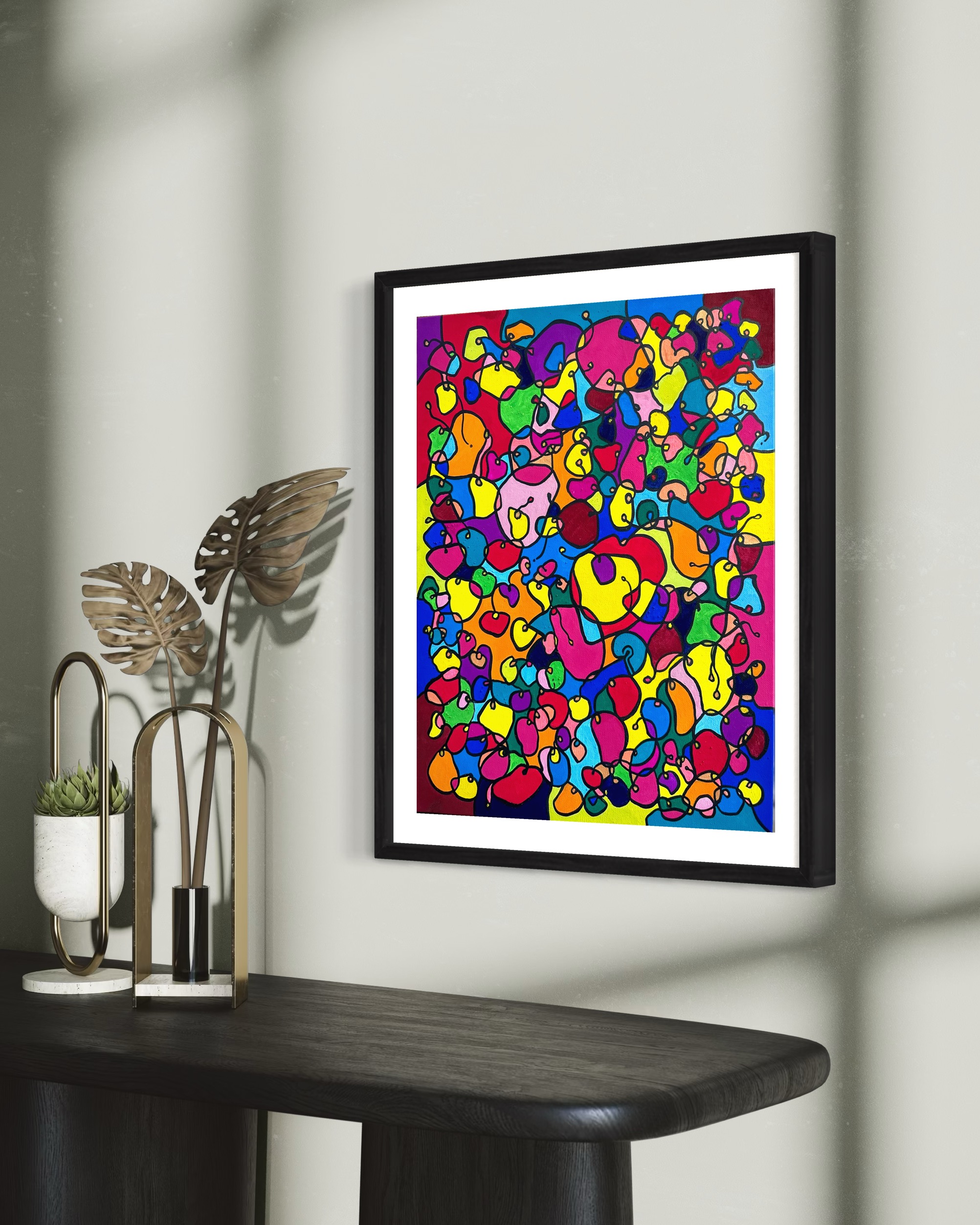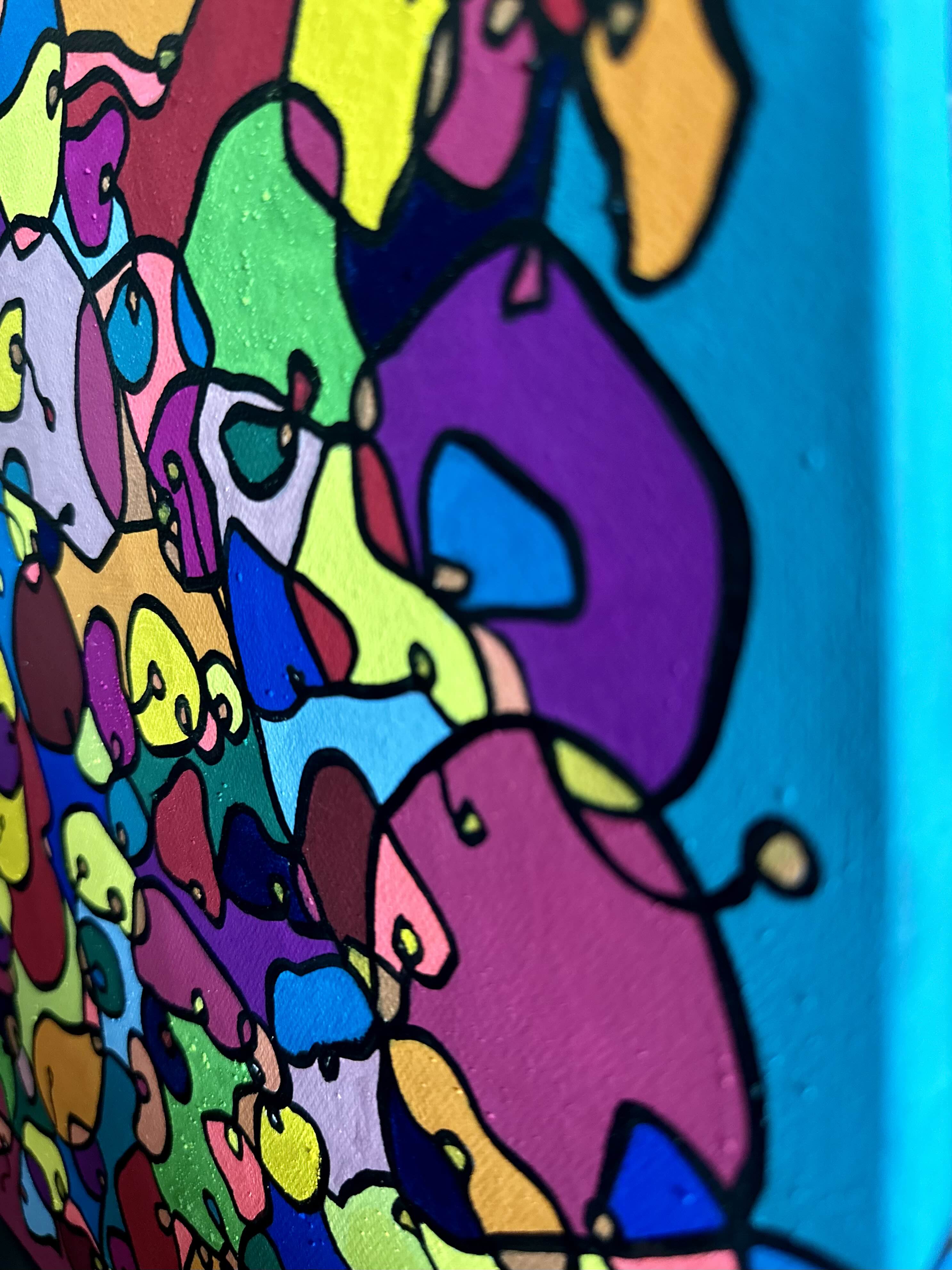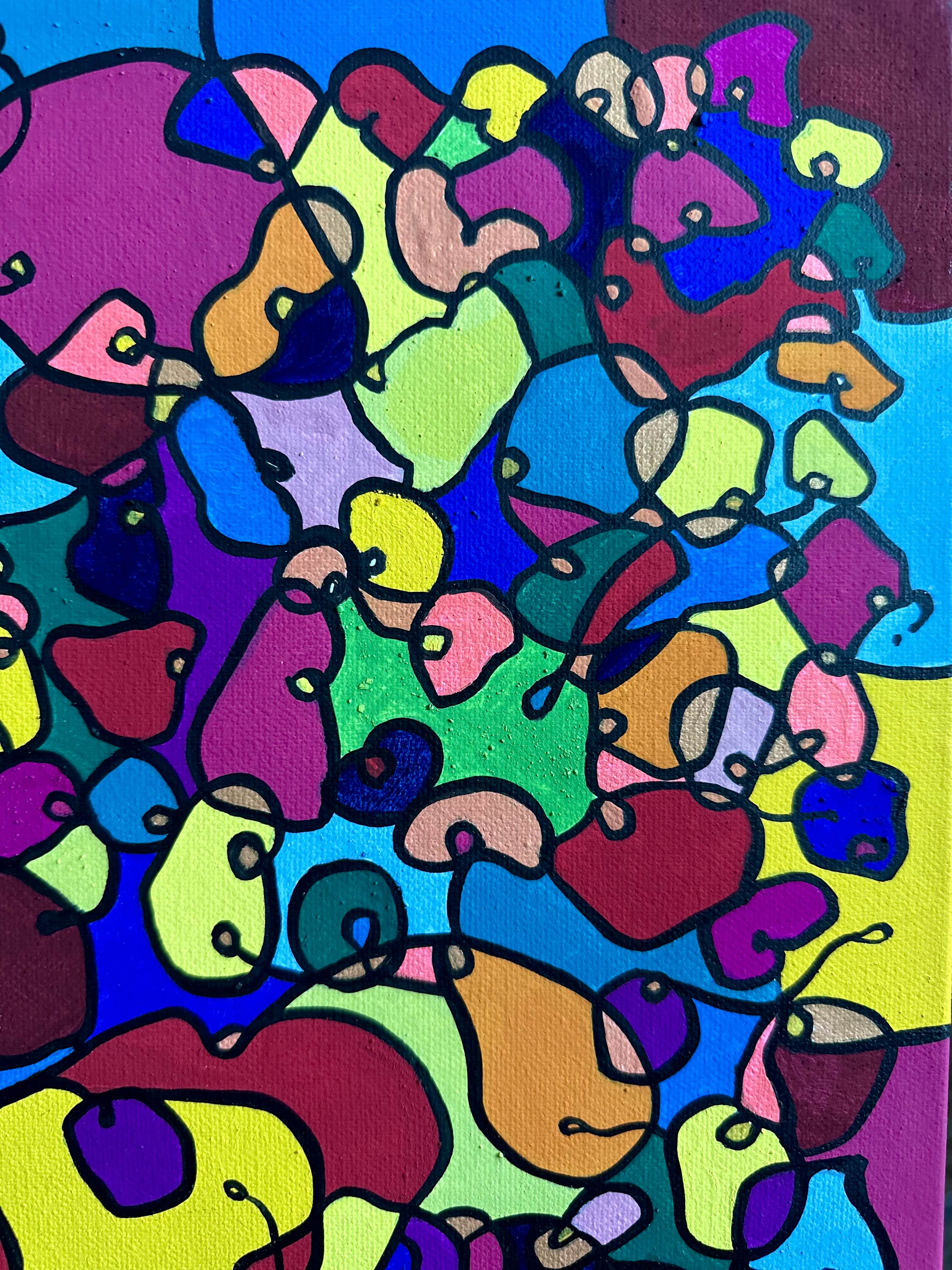 In this painting, I've embraced the vibrancy and fluidity of organic materials, channeling the essence of oriental art through a playful dance of colors and shapes. Each stroke and hue bursts with joy, creating a lively energy that captivates and uplifts. My intention was to weave together tradition and spontaneity, inviting viewers into a world where freedom and harmony coexist brightly on canvas, infusing their space with a spirit of whimsy and inspiration.
