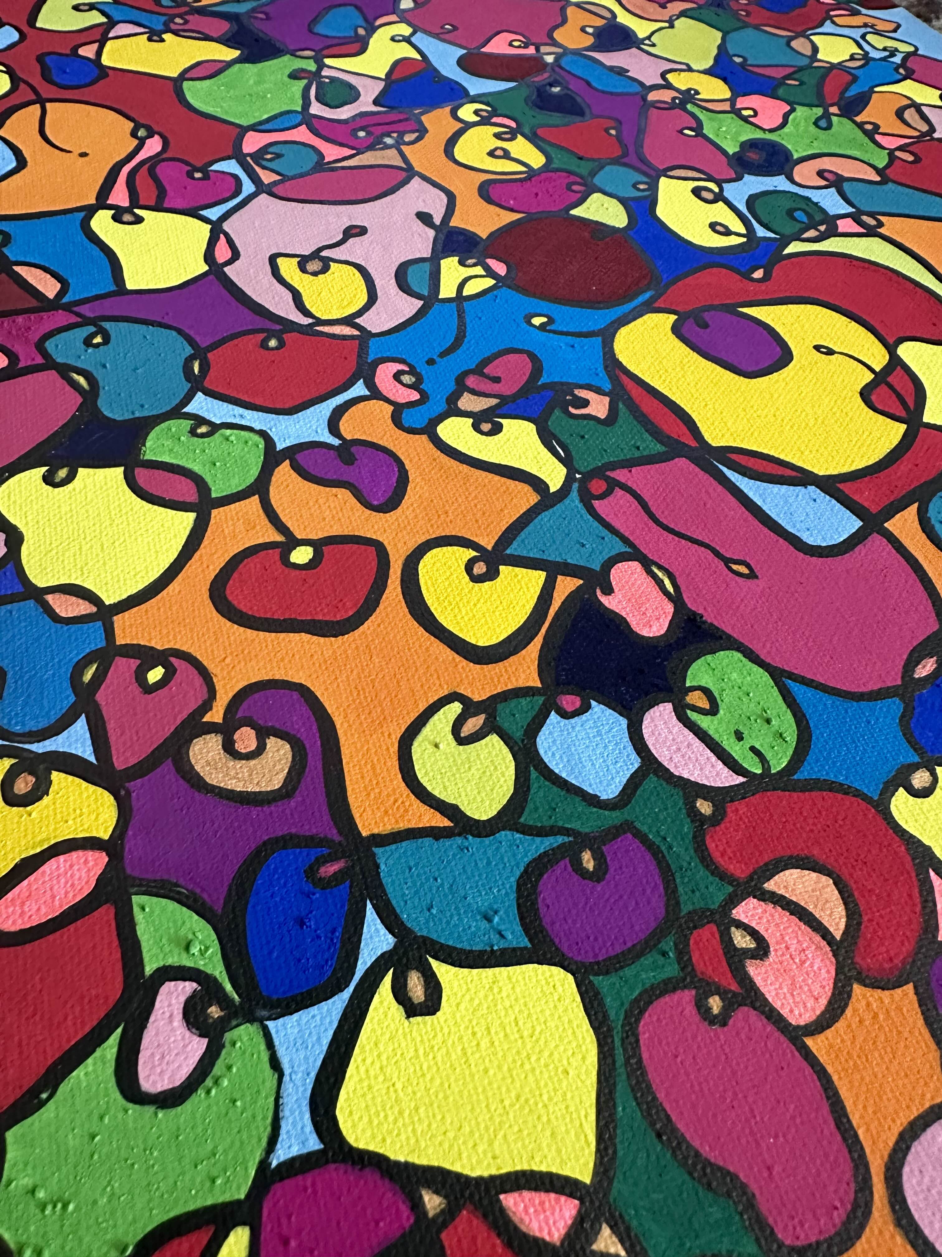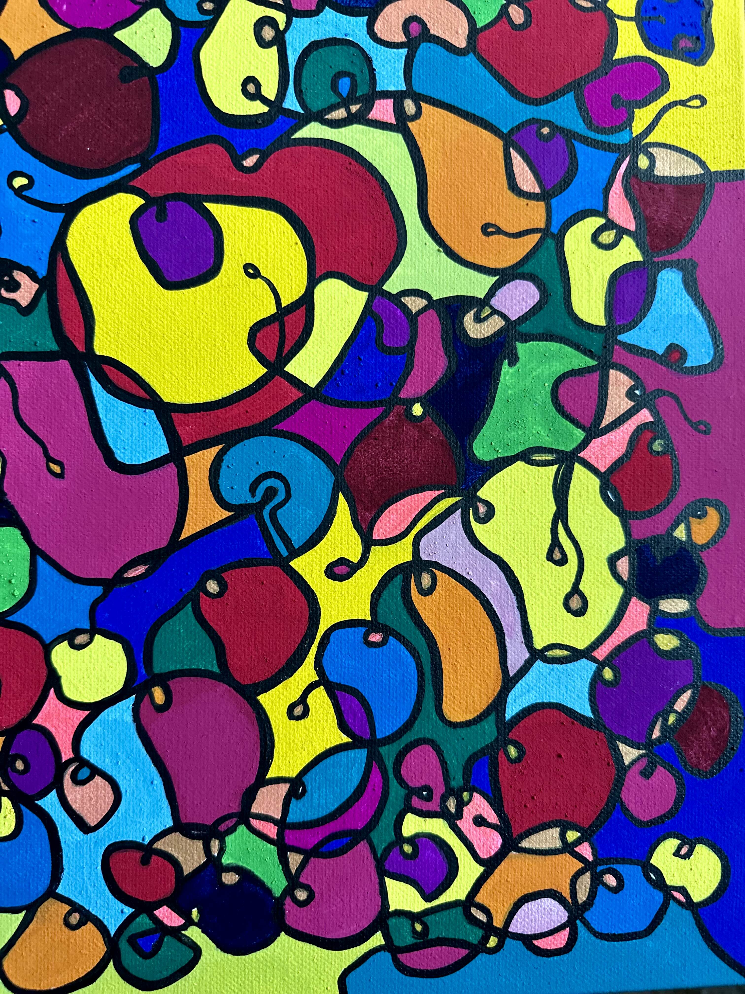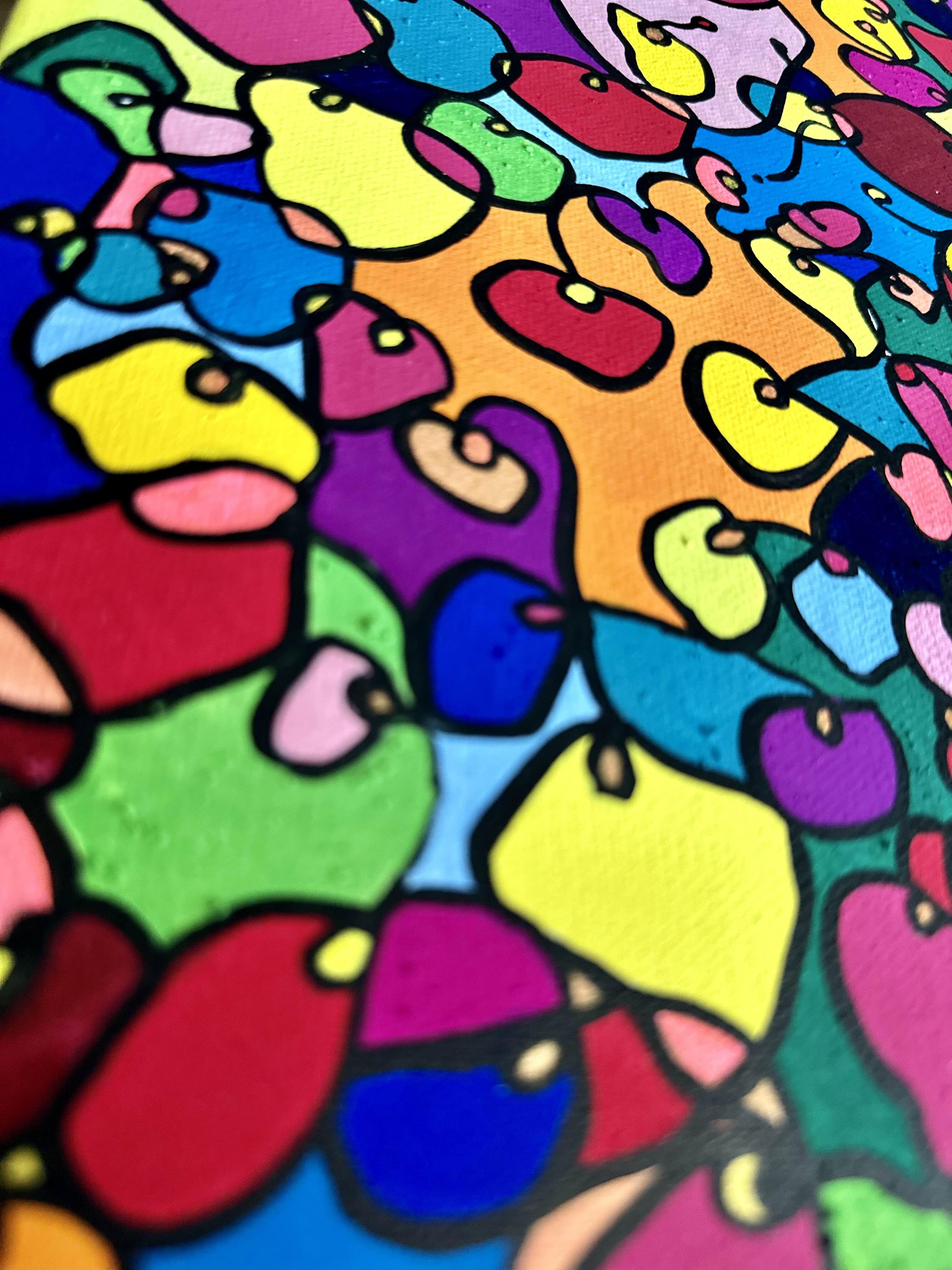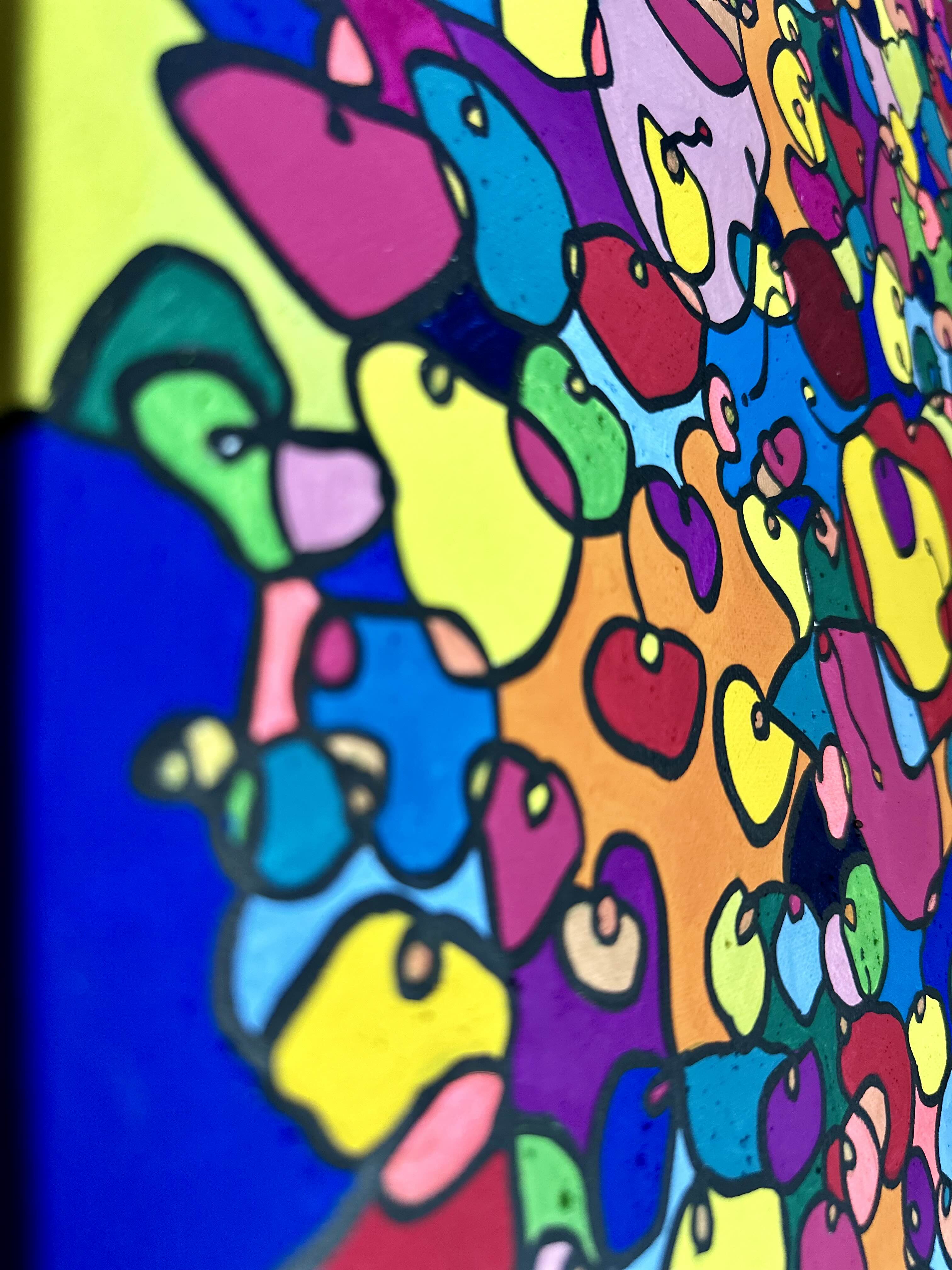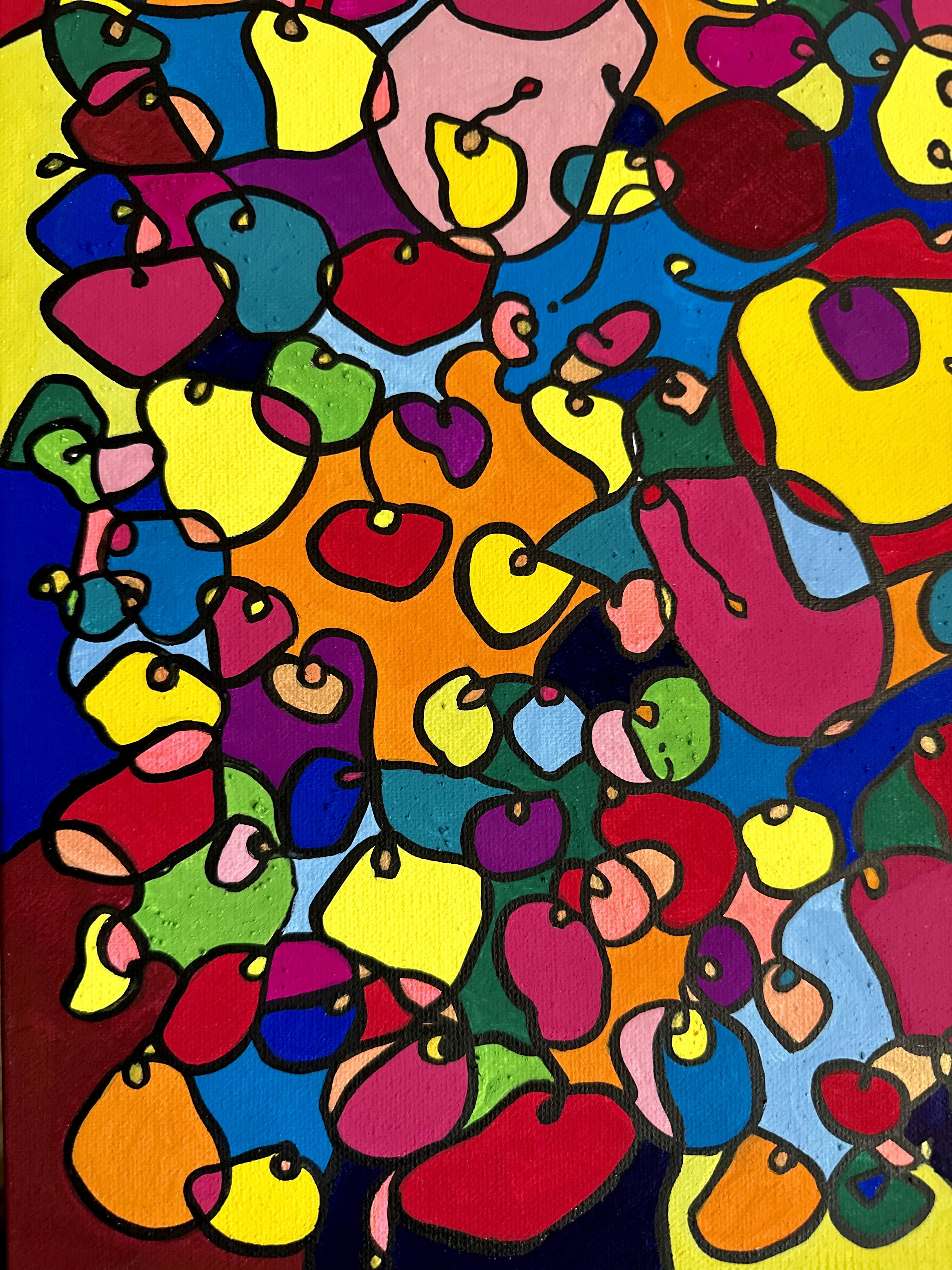 In this painting, I've embraced the vibrancy and fluidity of organic materials, channeling the essence of oriental art through a playful dance of colors and shapes. Each stroke and hue bursts with joy, creating a lively energy that captivates and uplifts. My intention was to weave together tradition and spontaneity, inviting viewers into a world where freedom and harmony coexist brightly on canvas, infusing their space with a spirit of whimsy and inspiration.