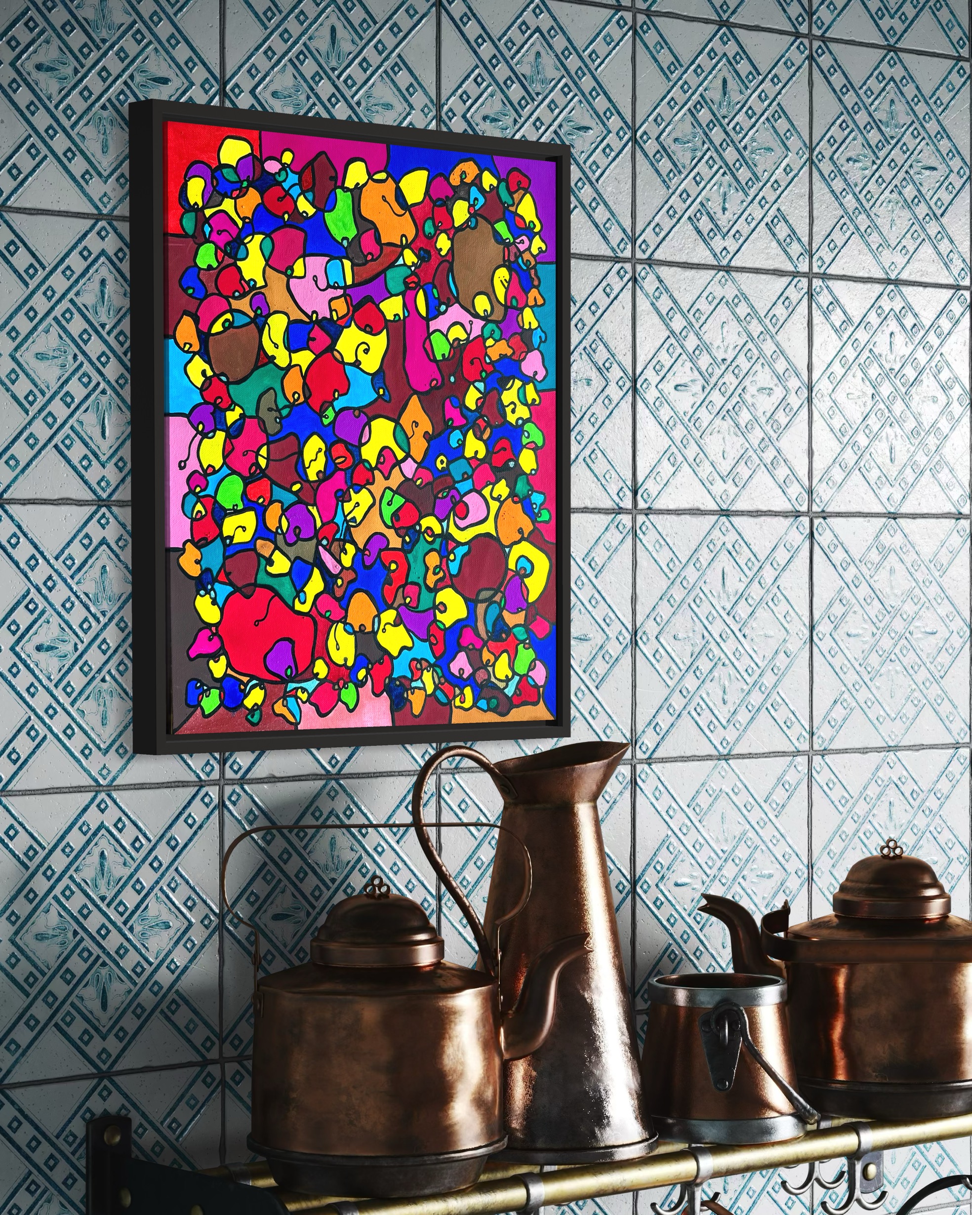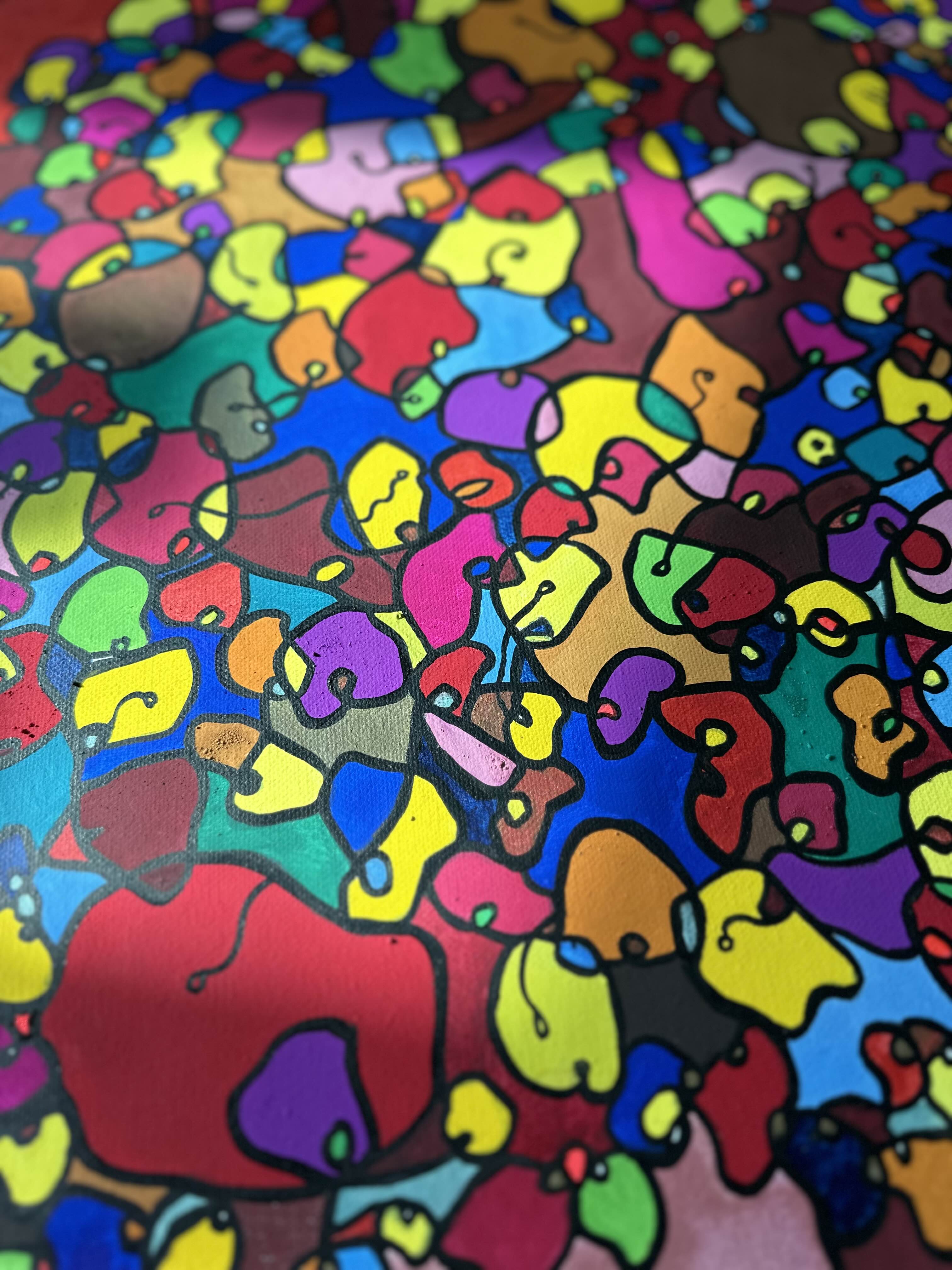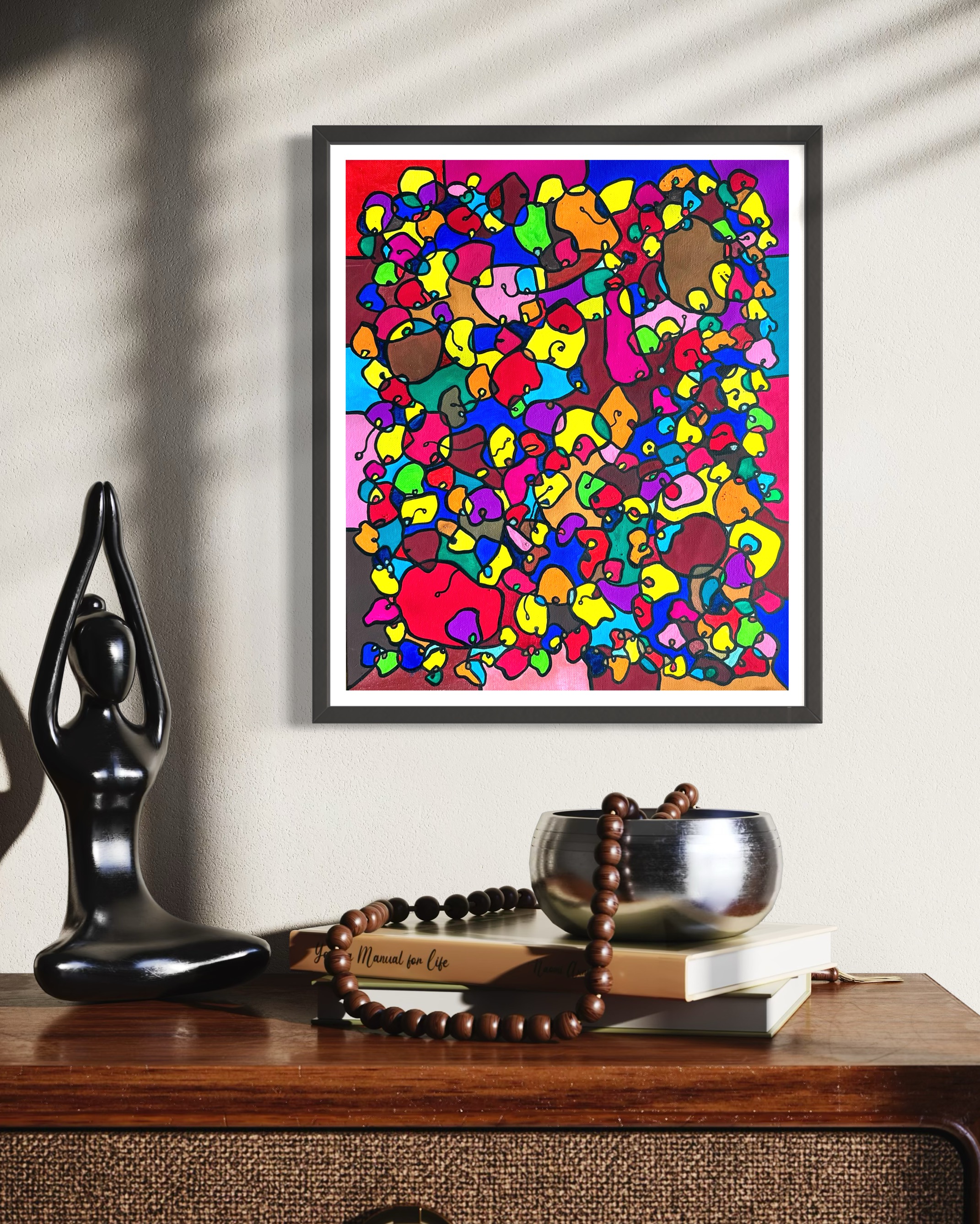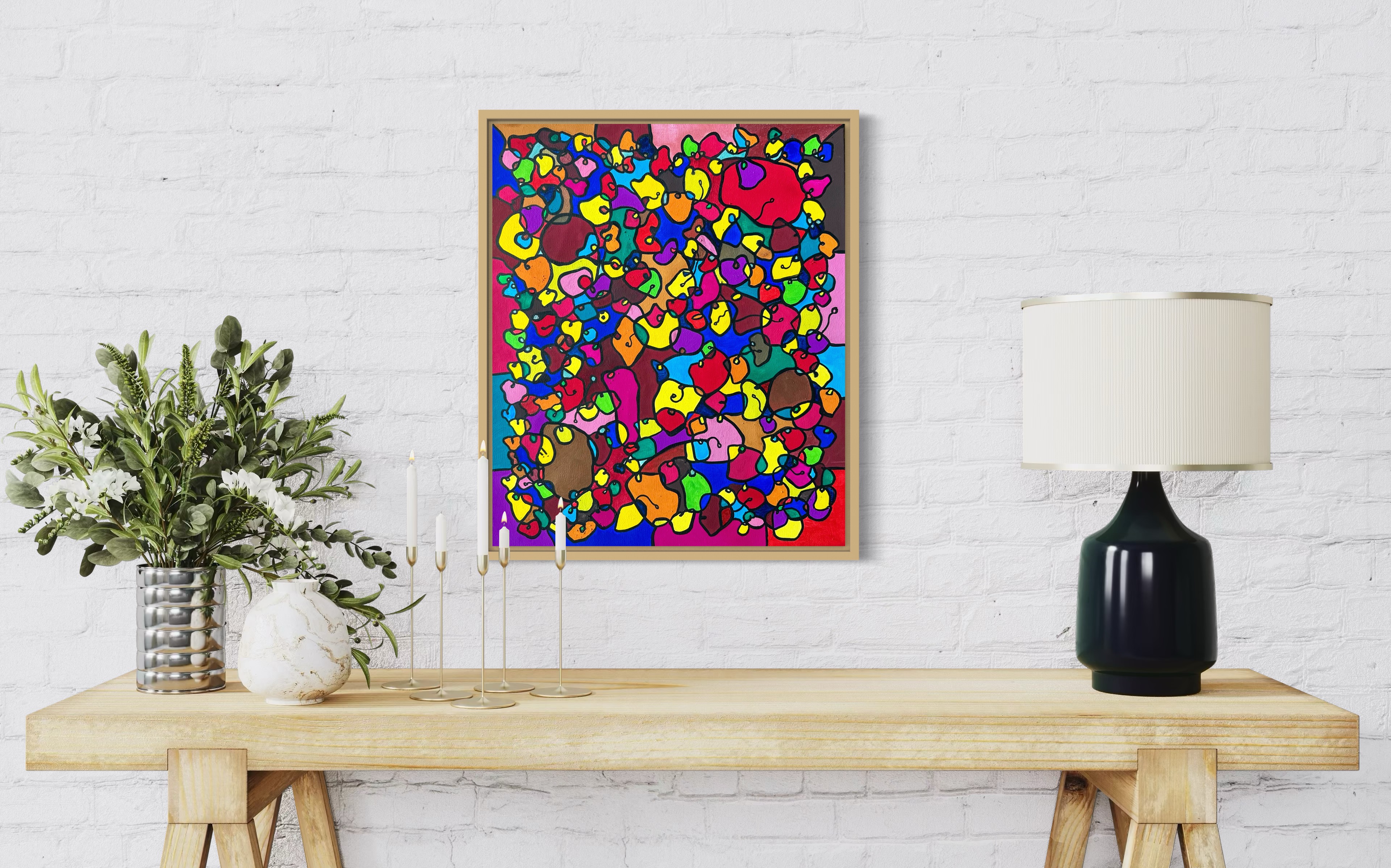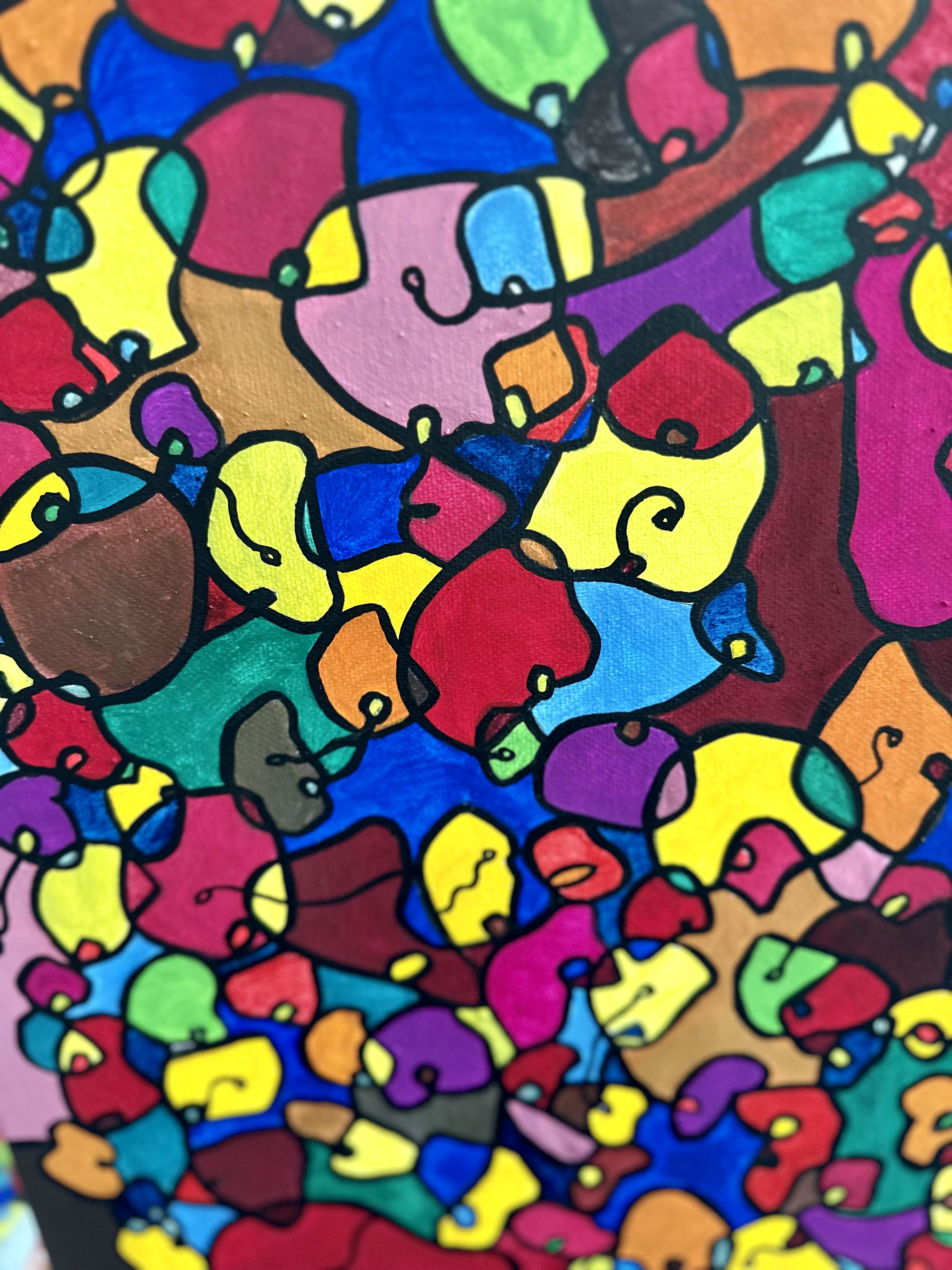 This artwork is a vivid celebration of color and organic flow, deeply inspired by oriental art. I employed organic materials to create a piece that balances the dynamic interaction of forms with serene harmony. Each shape and hue intertwines, symbolizing the interconnectedness of life and the vibrant diversity found in nature. It’s meant to bring a burst of energy and contemplative beauty to any space, engaging viewers in a visual dance of form and color.