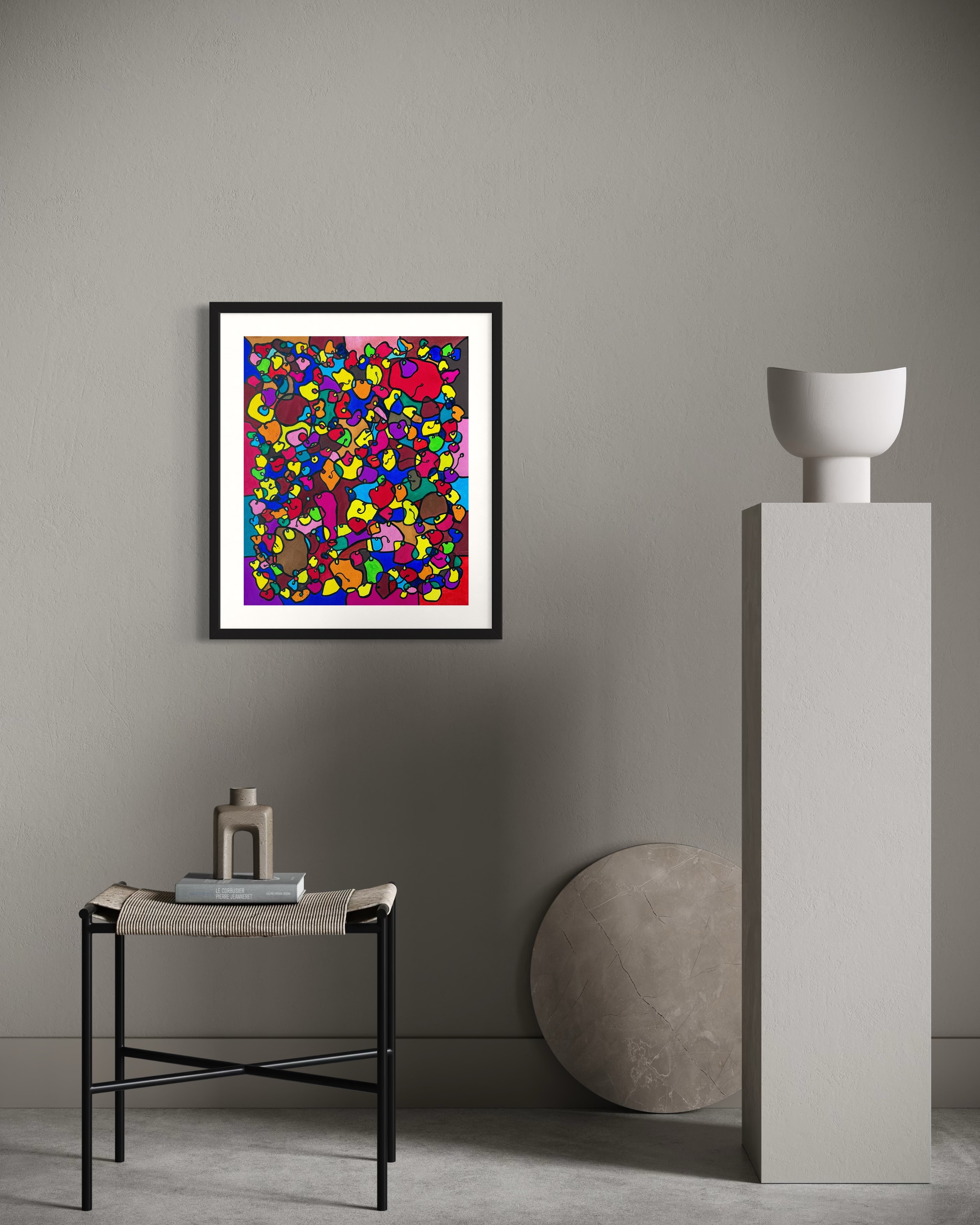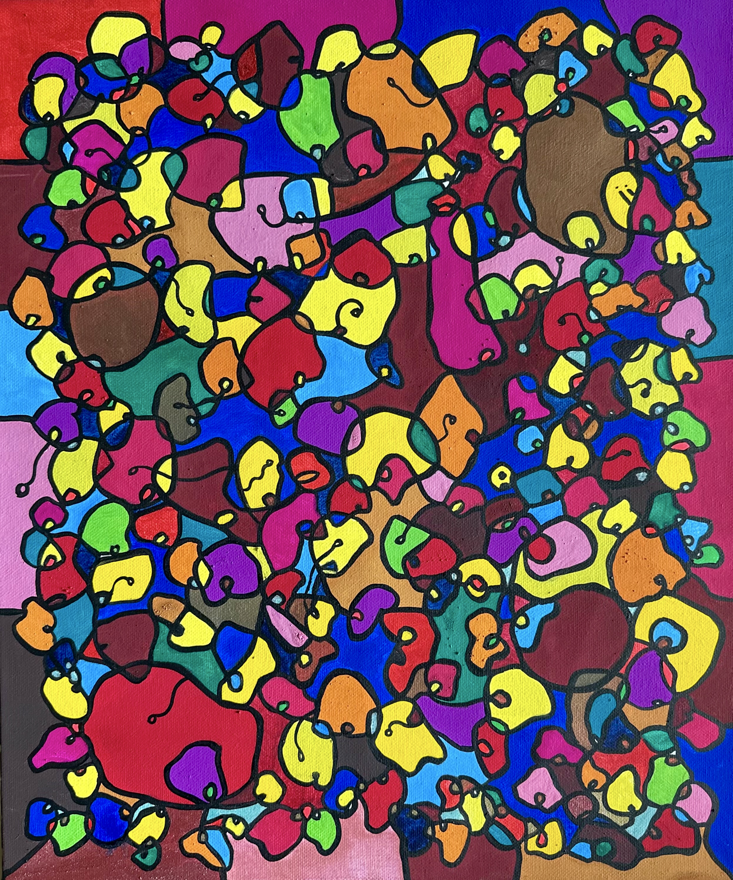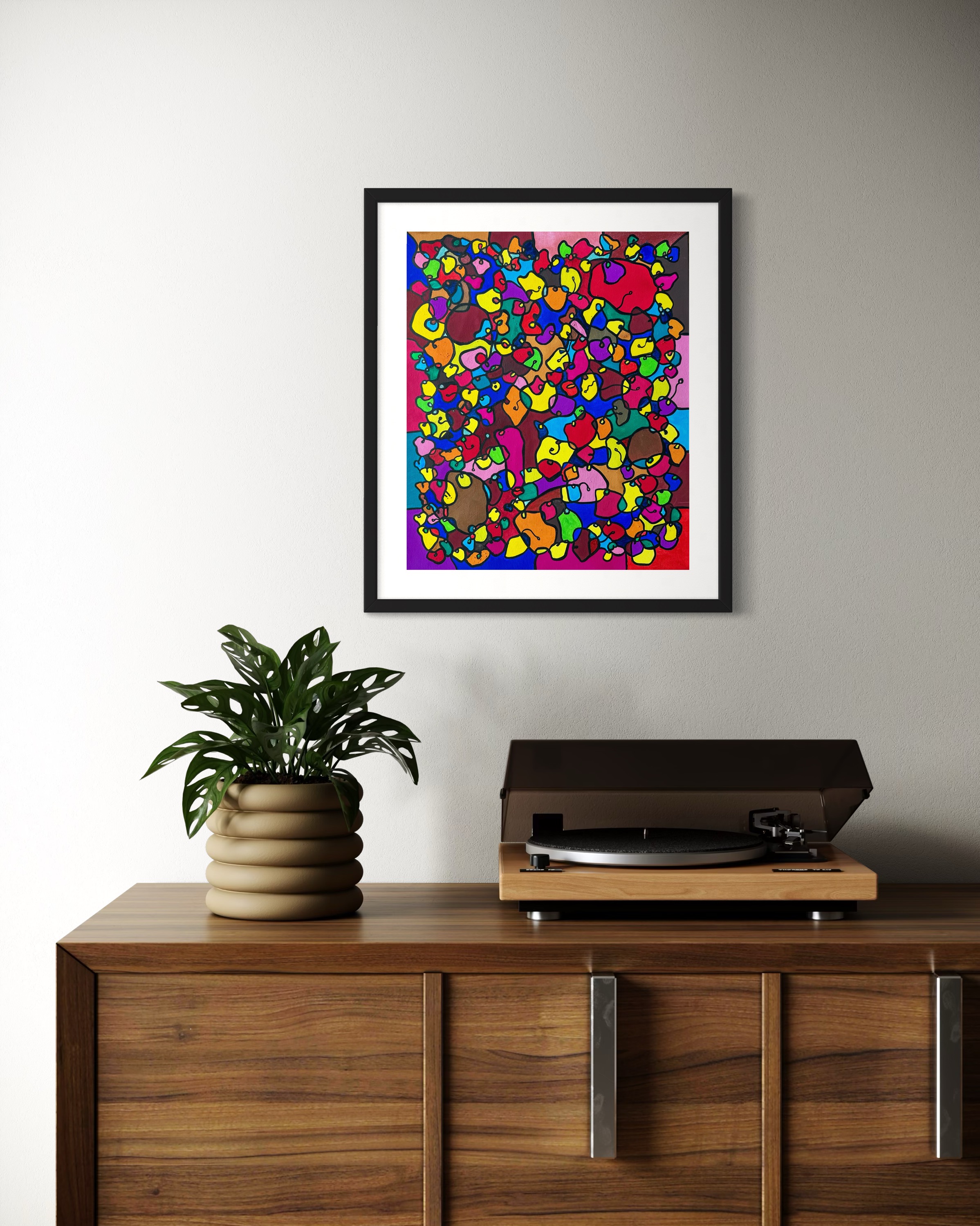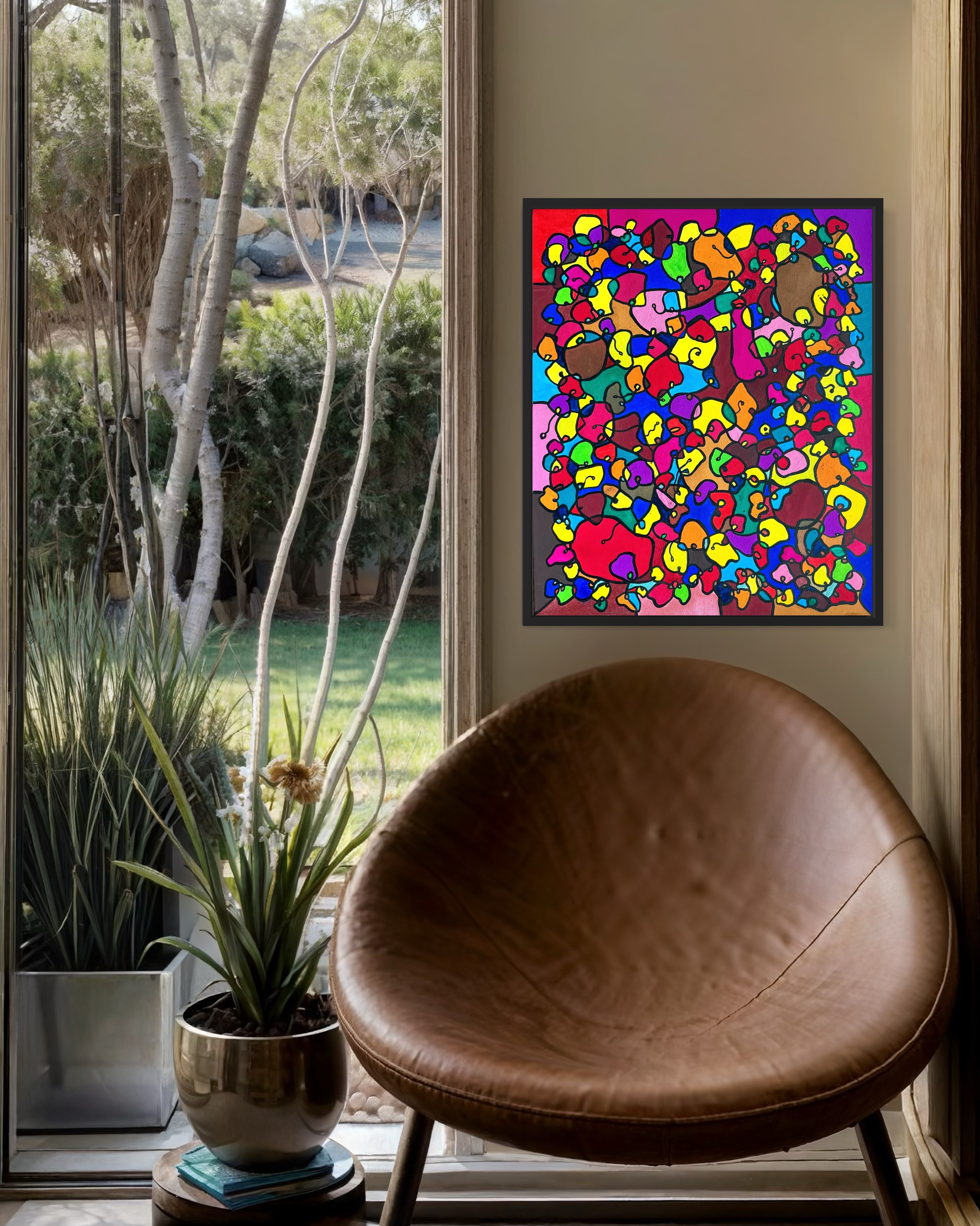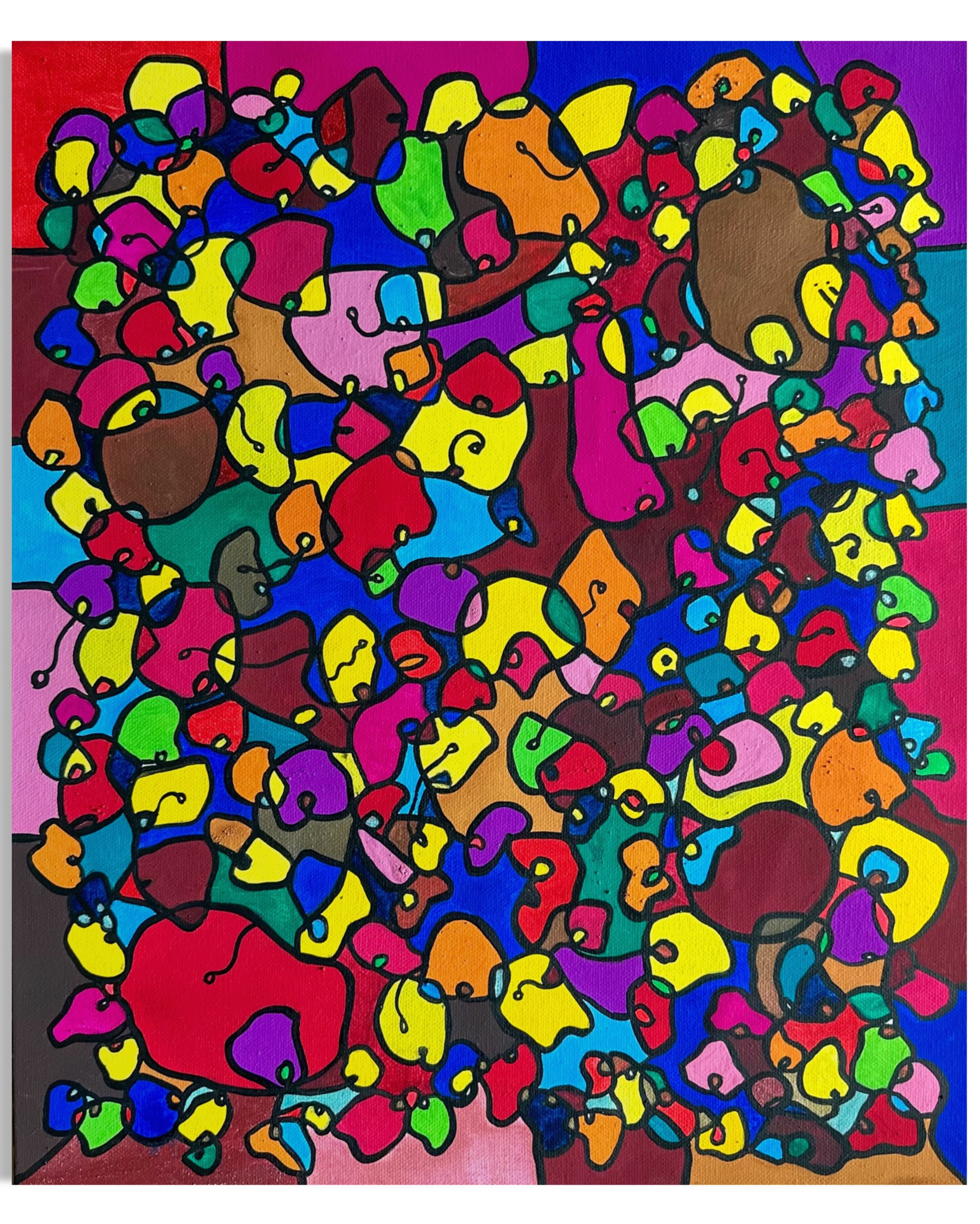 This artwork is a vivid celebration of color and organic flow, deeply inspired by oriental art. I employed organic materials to create a piece that balances the dynamic interaction of forms with serene harmony. Each shape and hue intertwines, symbolizing the interconnectedness of life and the vibrant diversity found in nature. It’s meant to bring a burst of energy and contemplative beauty to any space, engaging viewers in a visual dance of form and color.