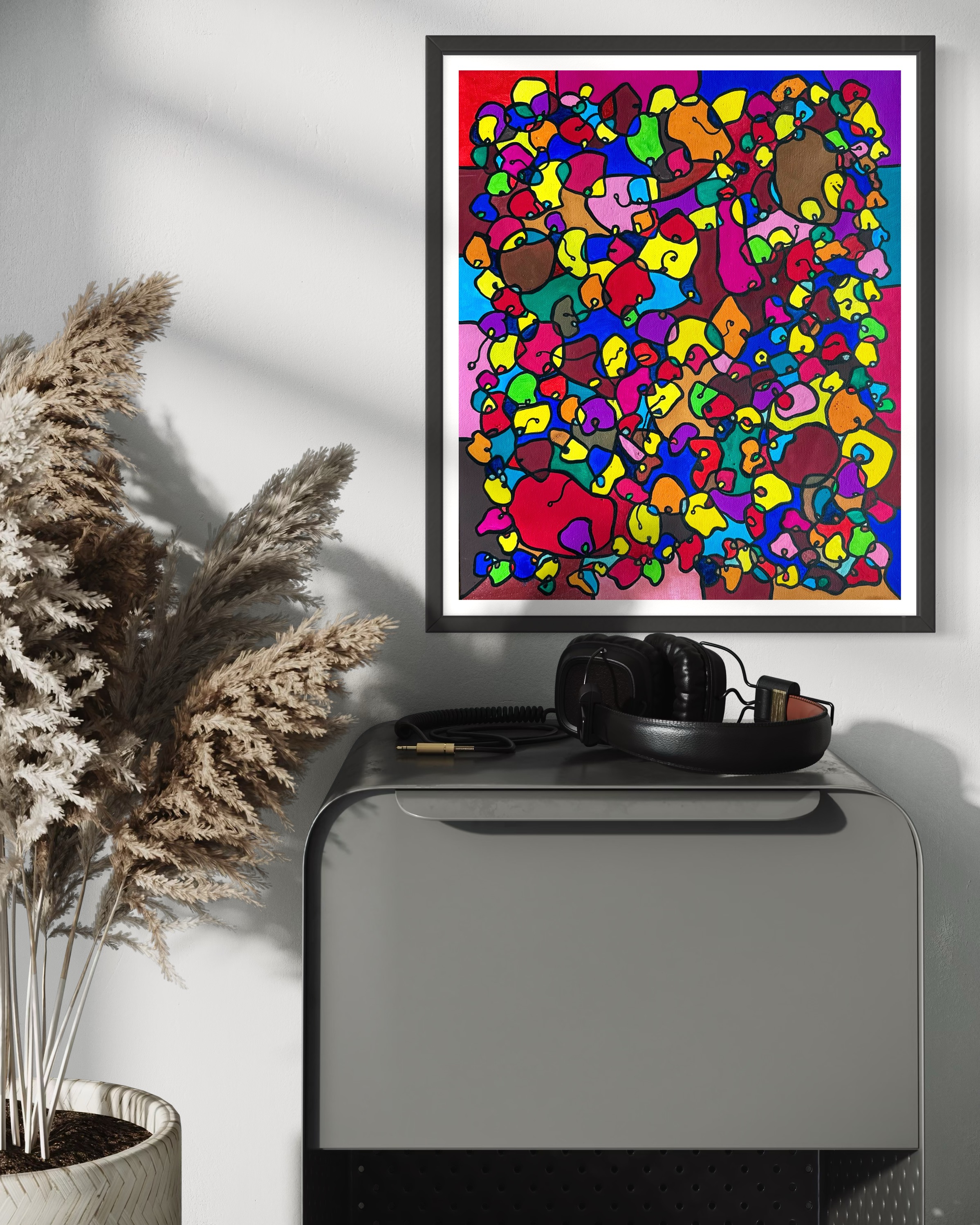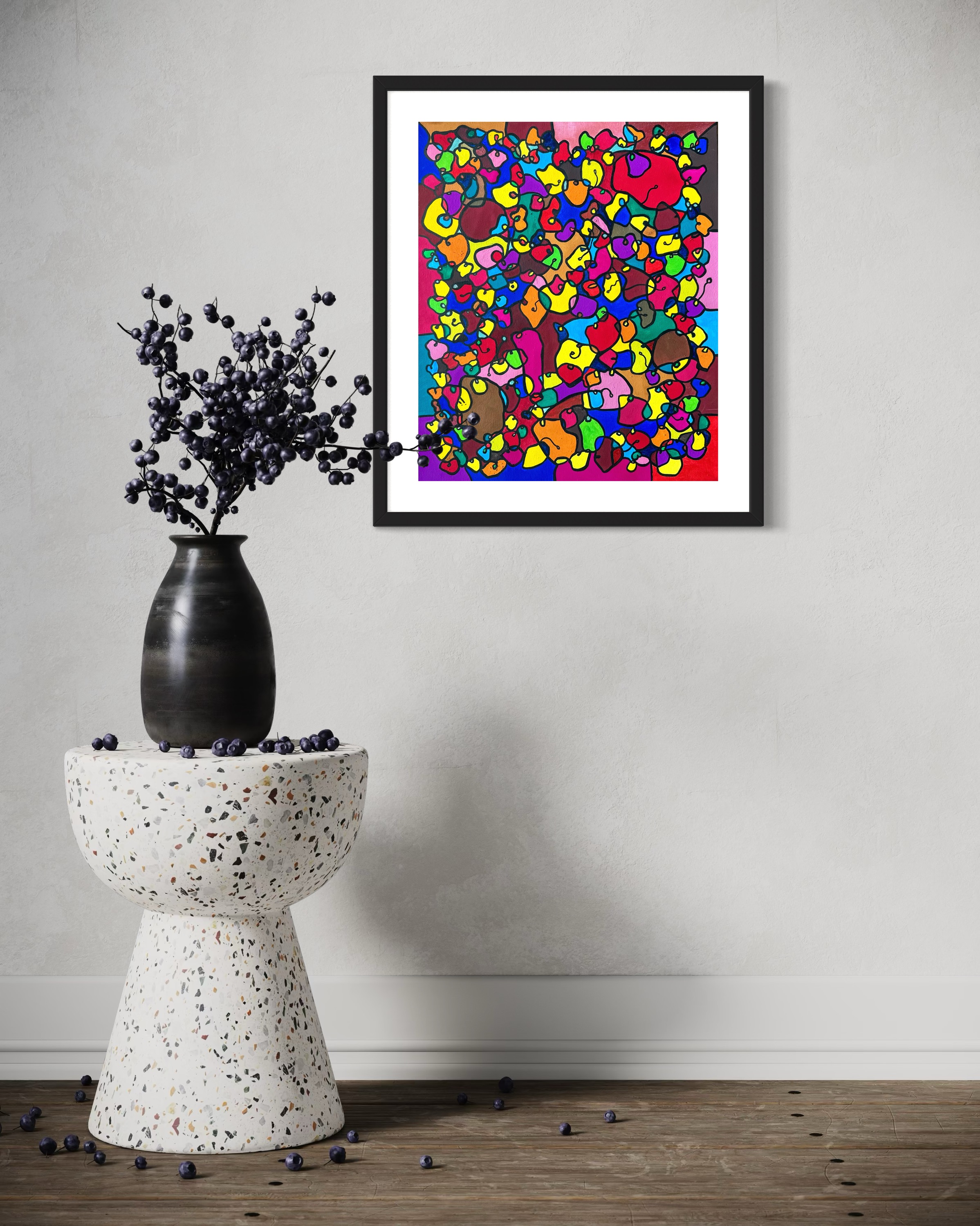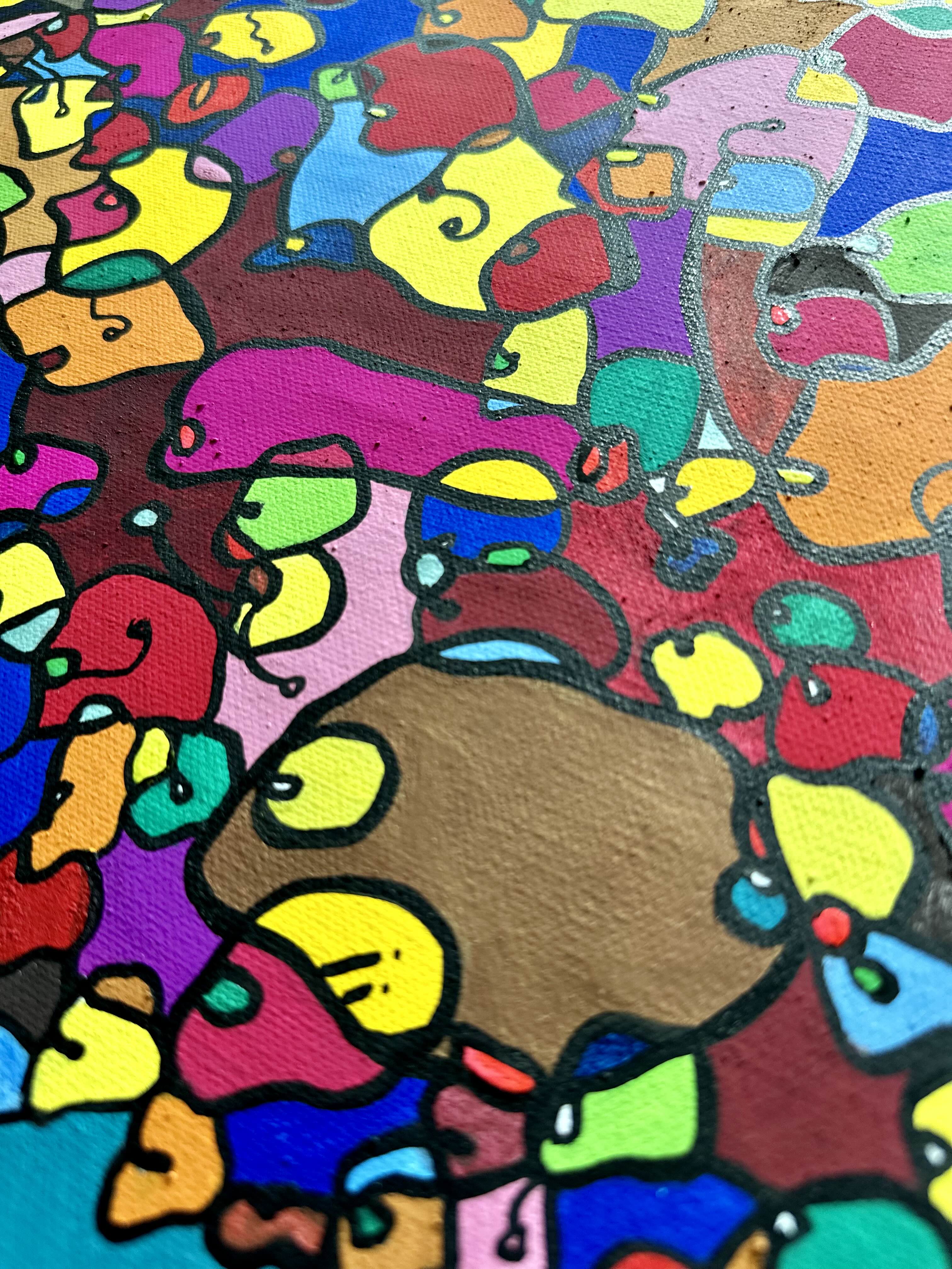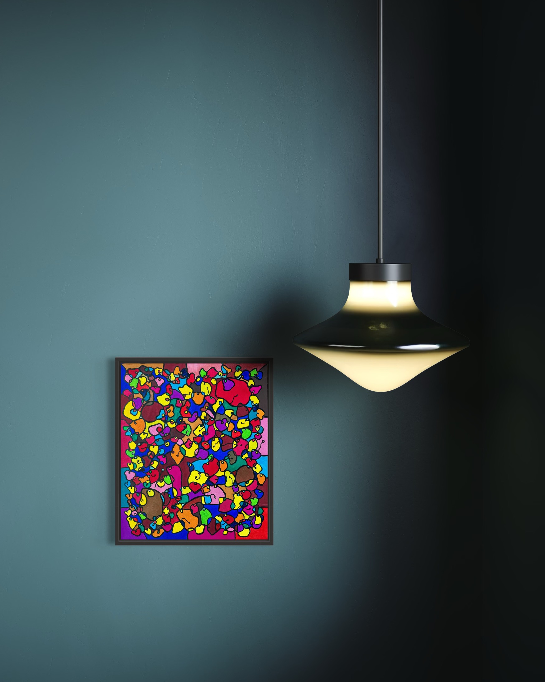 This artwork is a vivid celebration of color and organic flow, deeply inspired by oriental art. I employed organic materials to create a piece that balances the dynamic interaction of forms with serene harmony. Each shape and hue intertwines, symbolizing the interconnectedness of life and the vibrant diversity found in nature. It’s meant to bring a burst of energy and contemplative beauty to any space, engaging viewers in a visual dance of form and color.