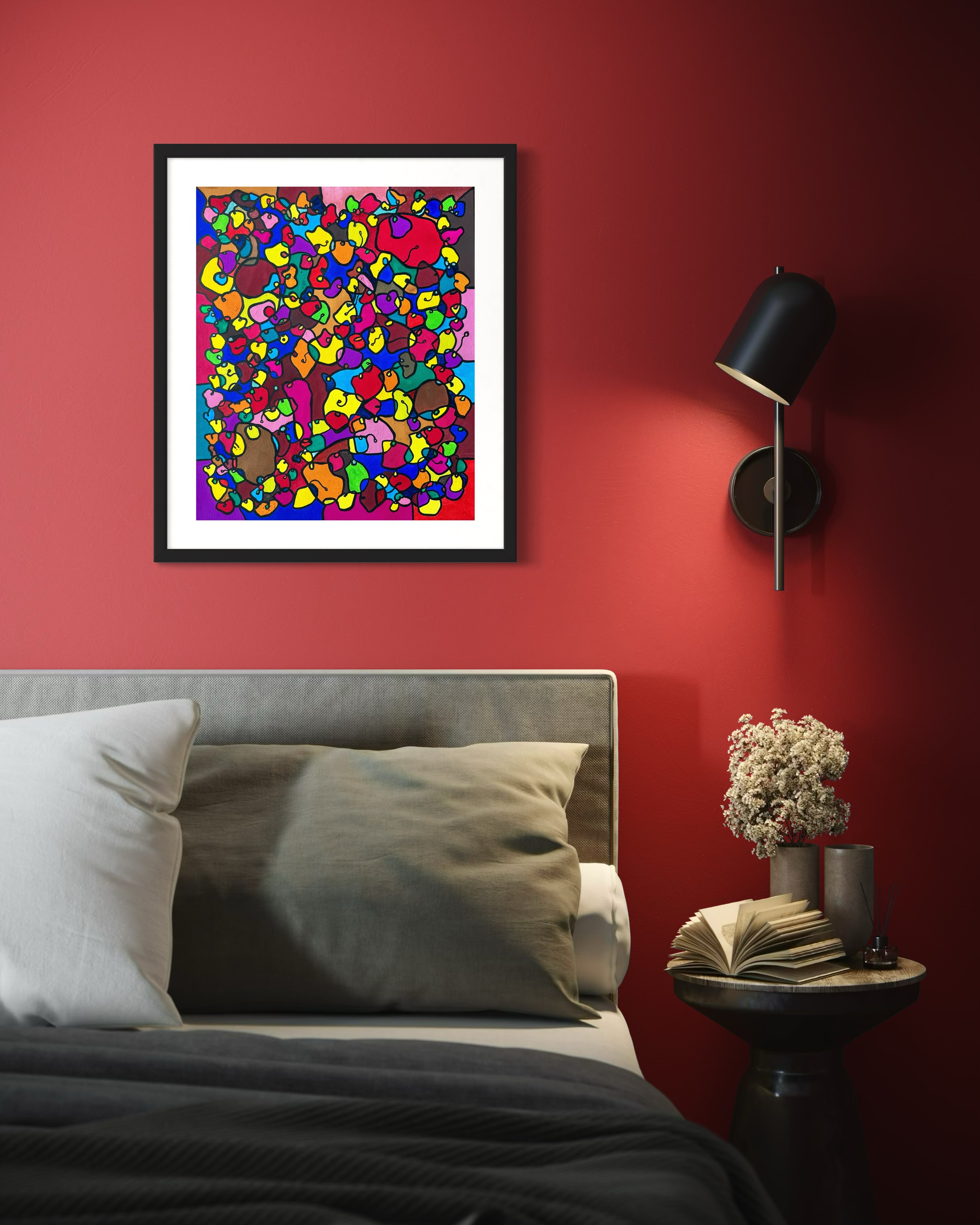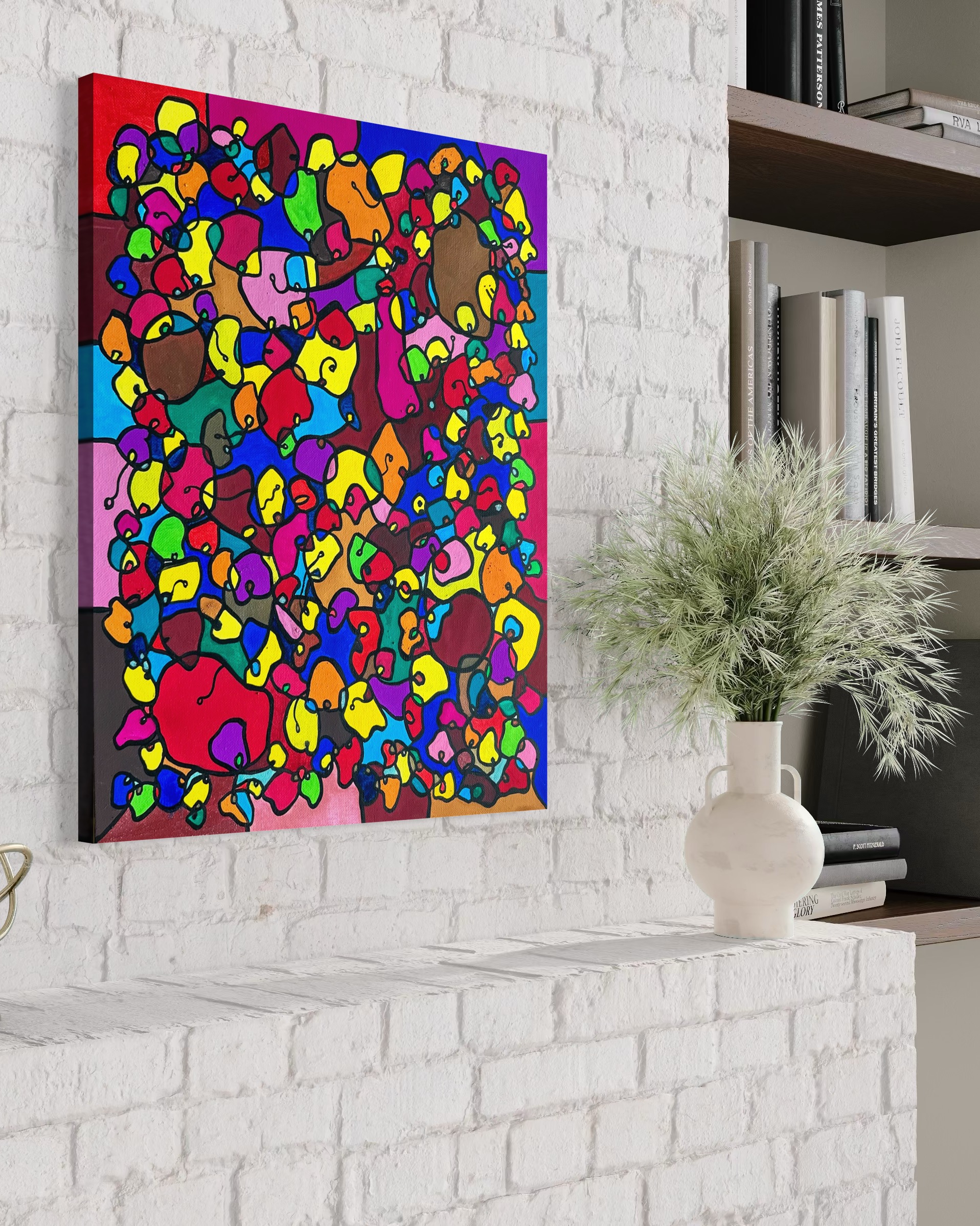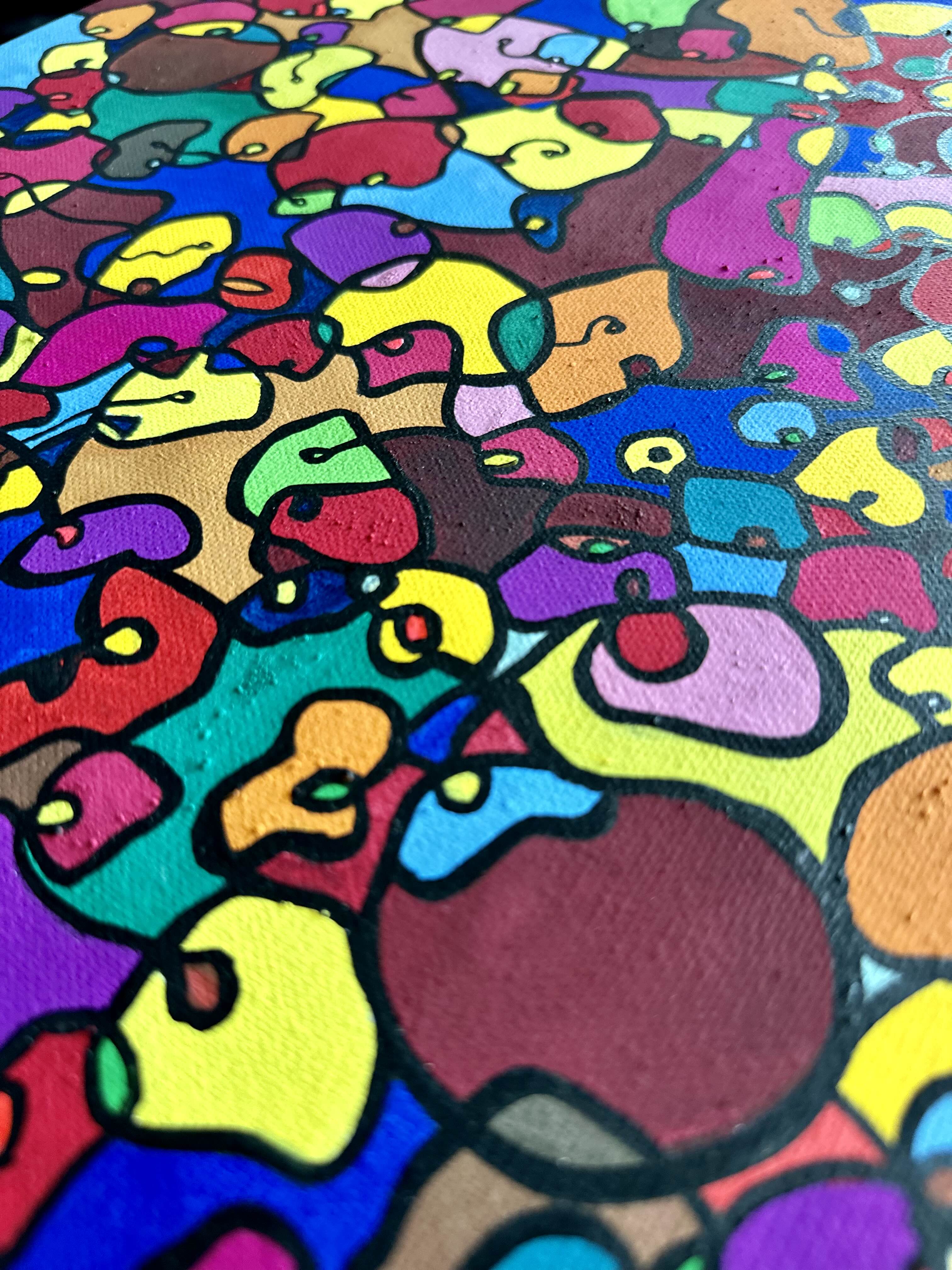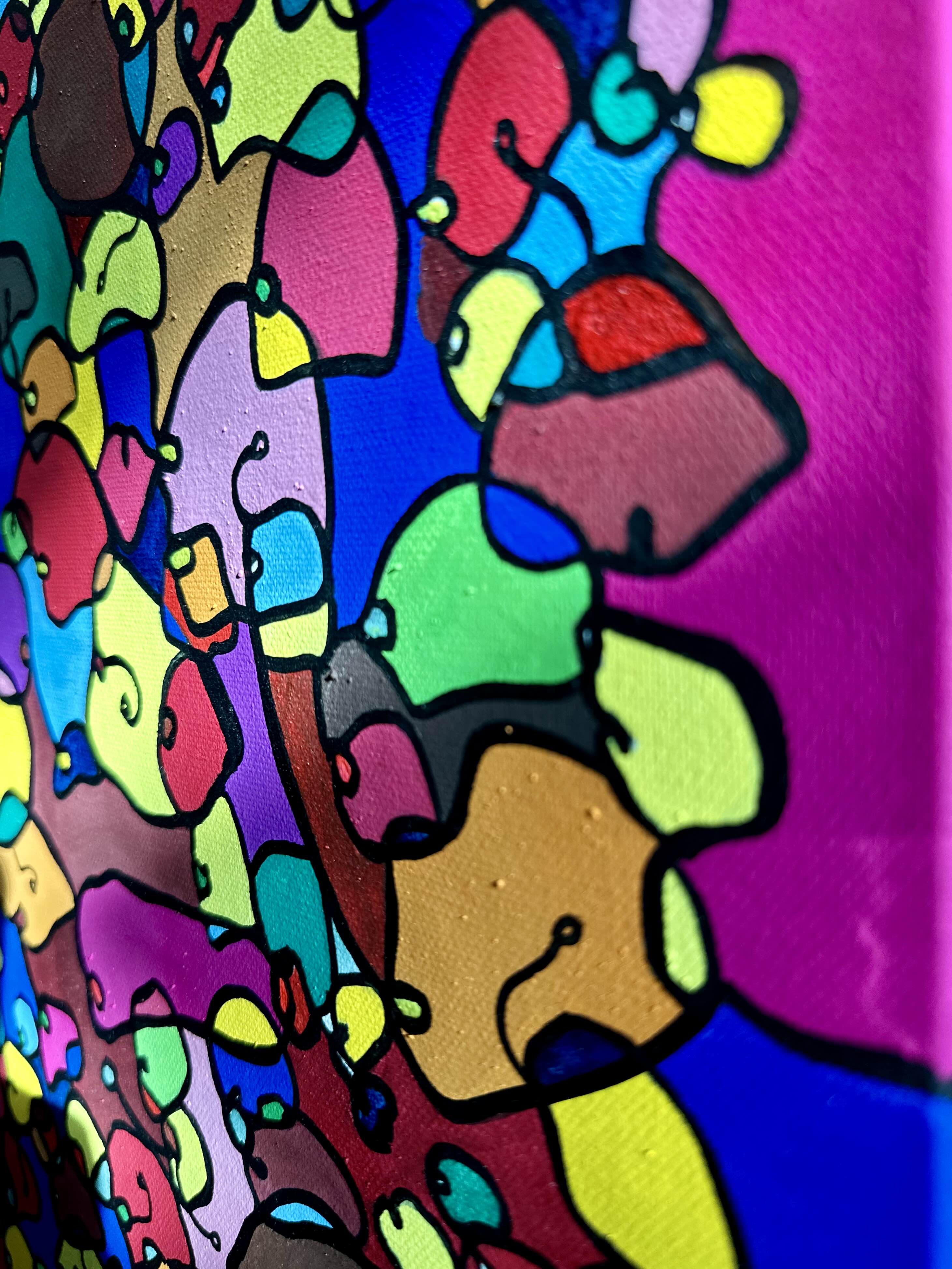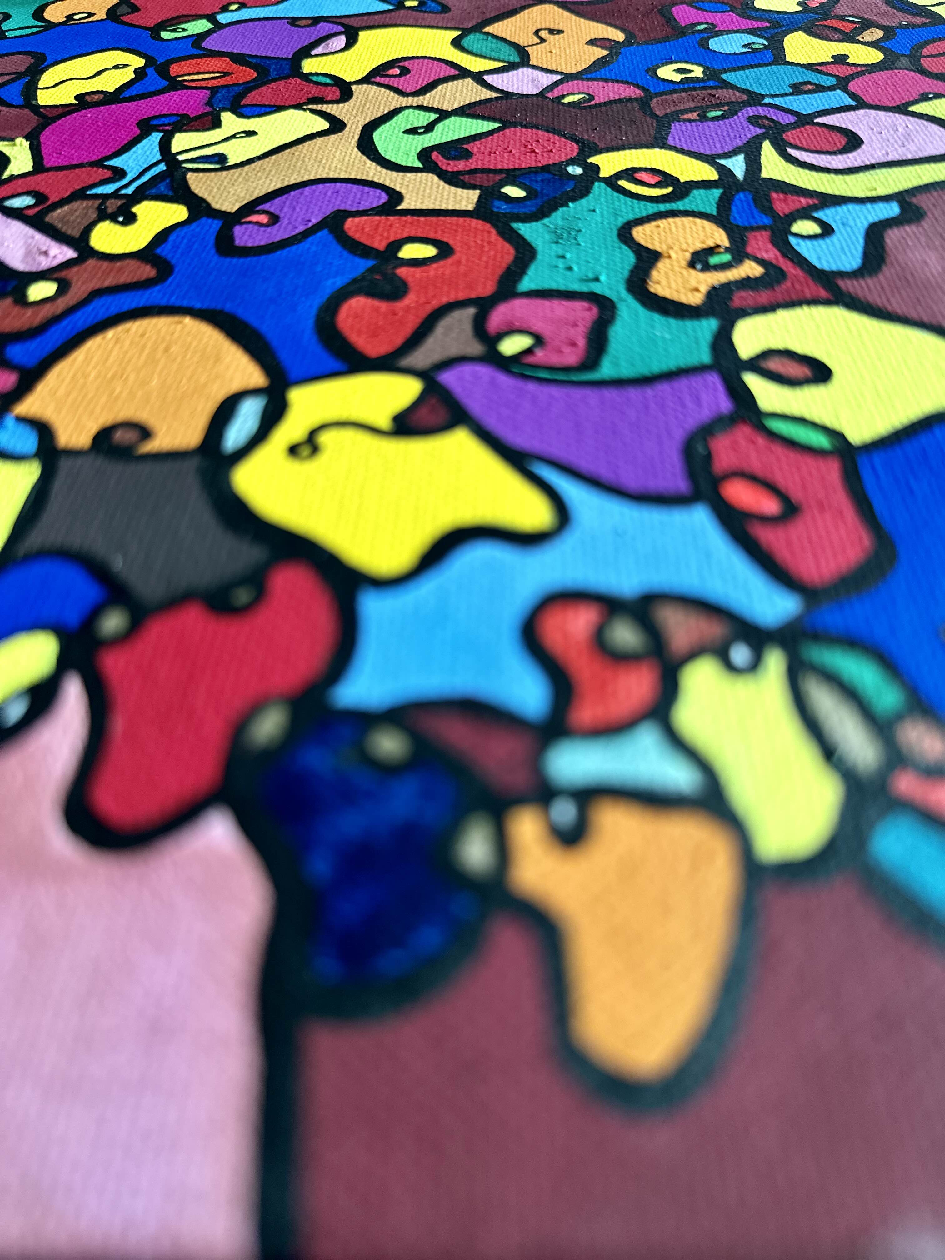 This artwork is a vivid celebration of color and organic flow, deeply inspired by oriental art. I employed organic materials to create a piece that balances the dynamic interaction of forms with serene harmony. Each shape and hue intertwines, symbolizing the interconnectedness of life and the vibrant diversity found in nature. It’s meant to bring a burst of energy and contemplative beauty to any space, engaging viewers in a visual dance of form and color.