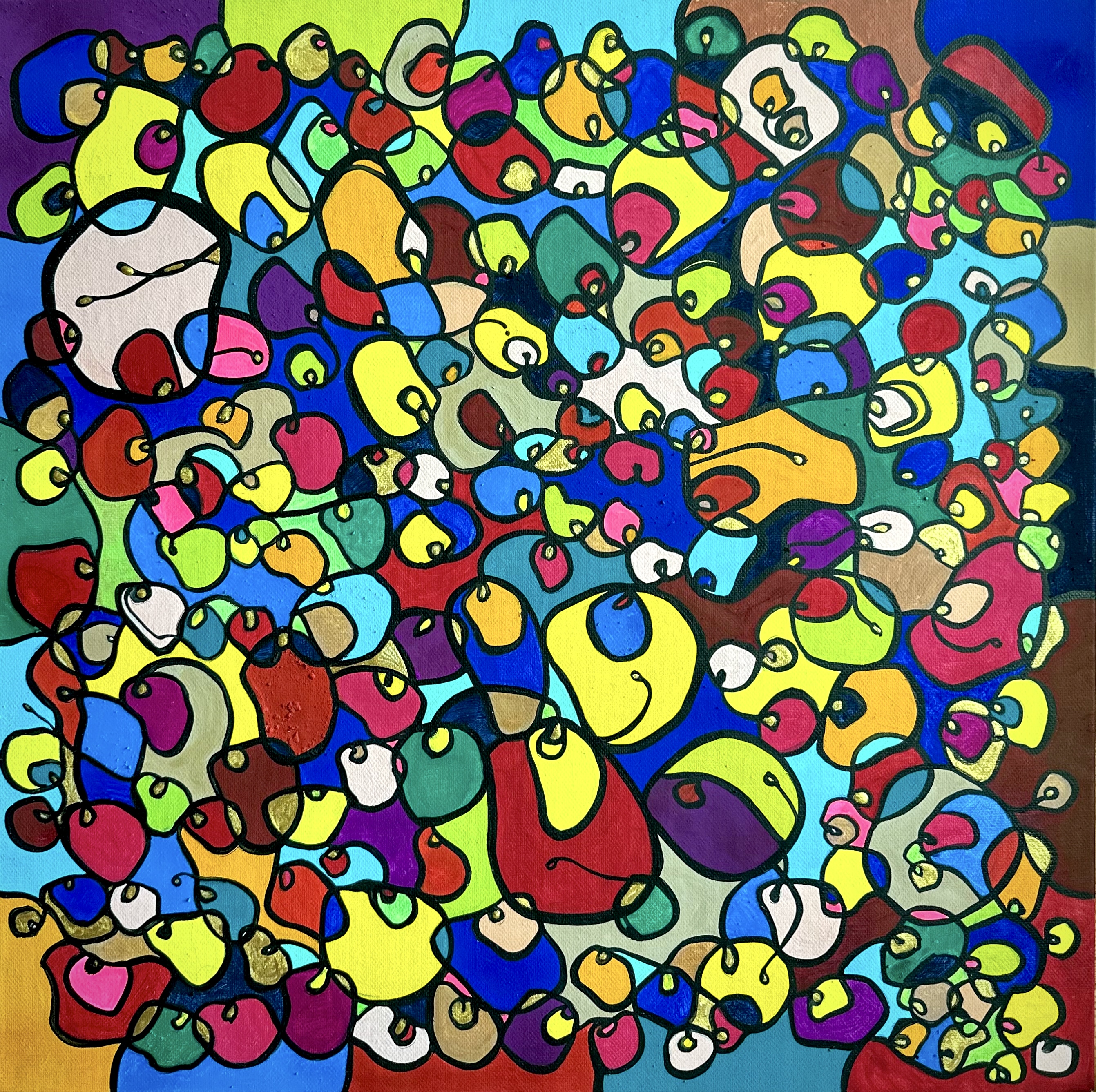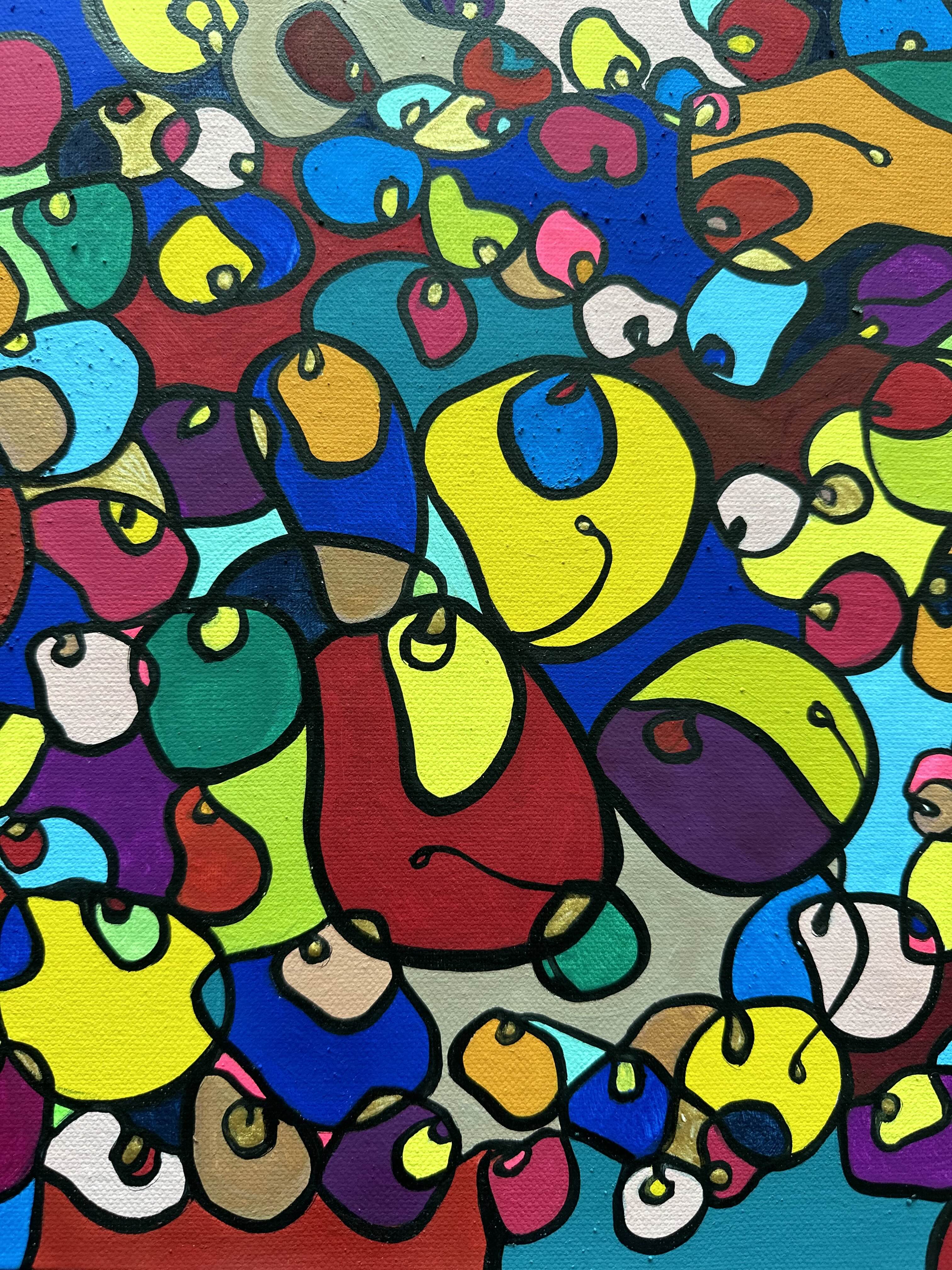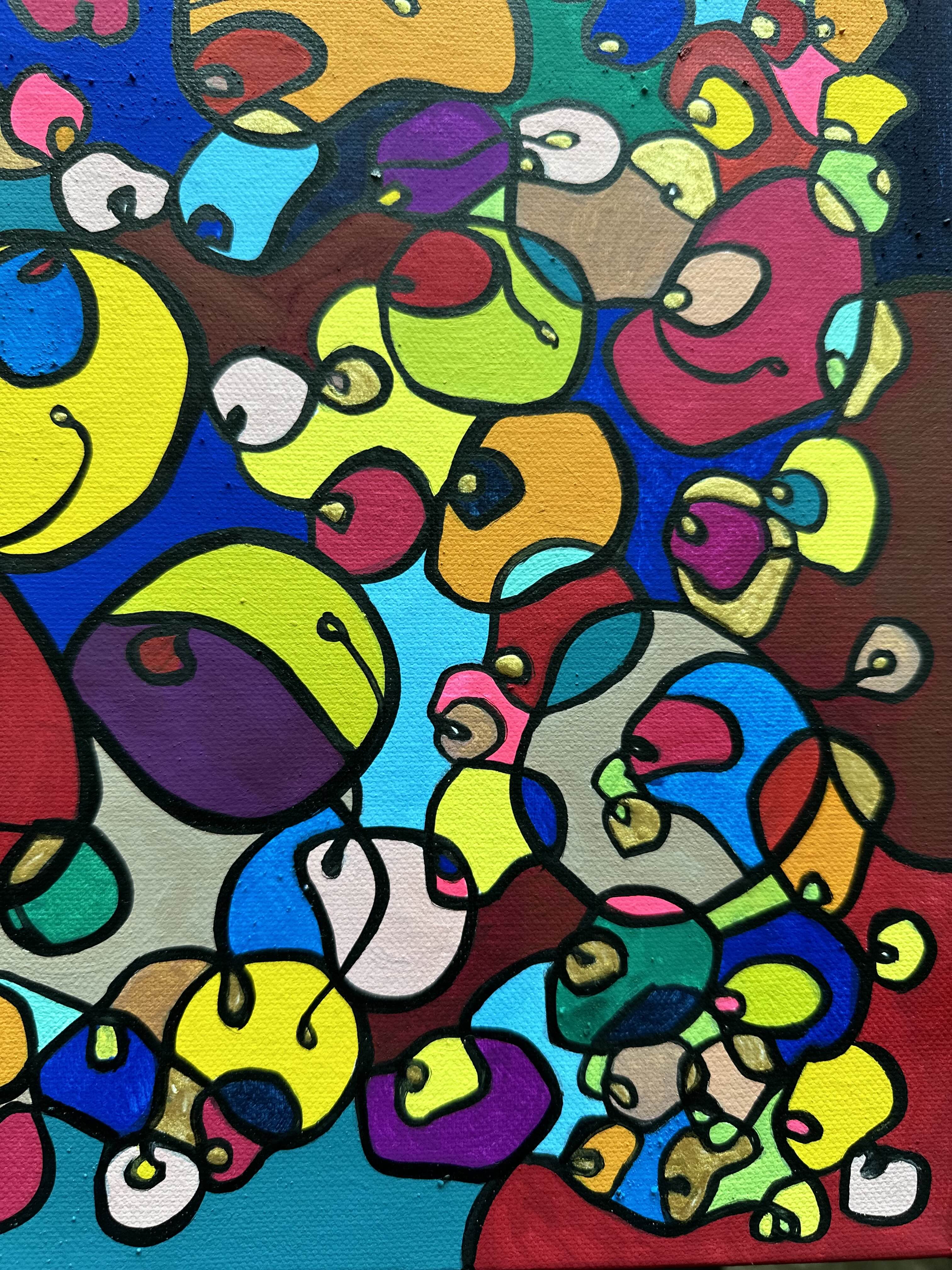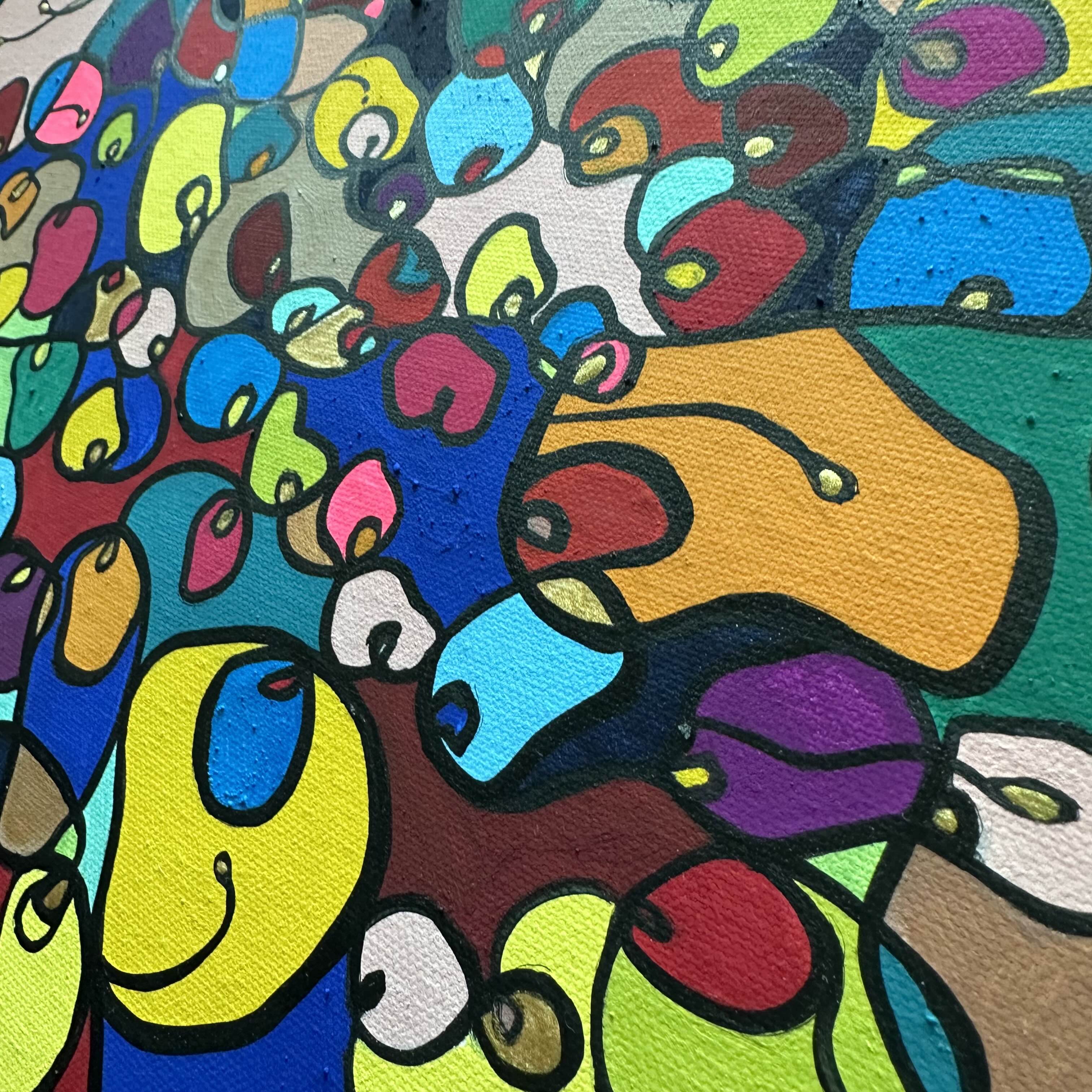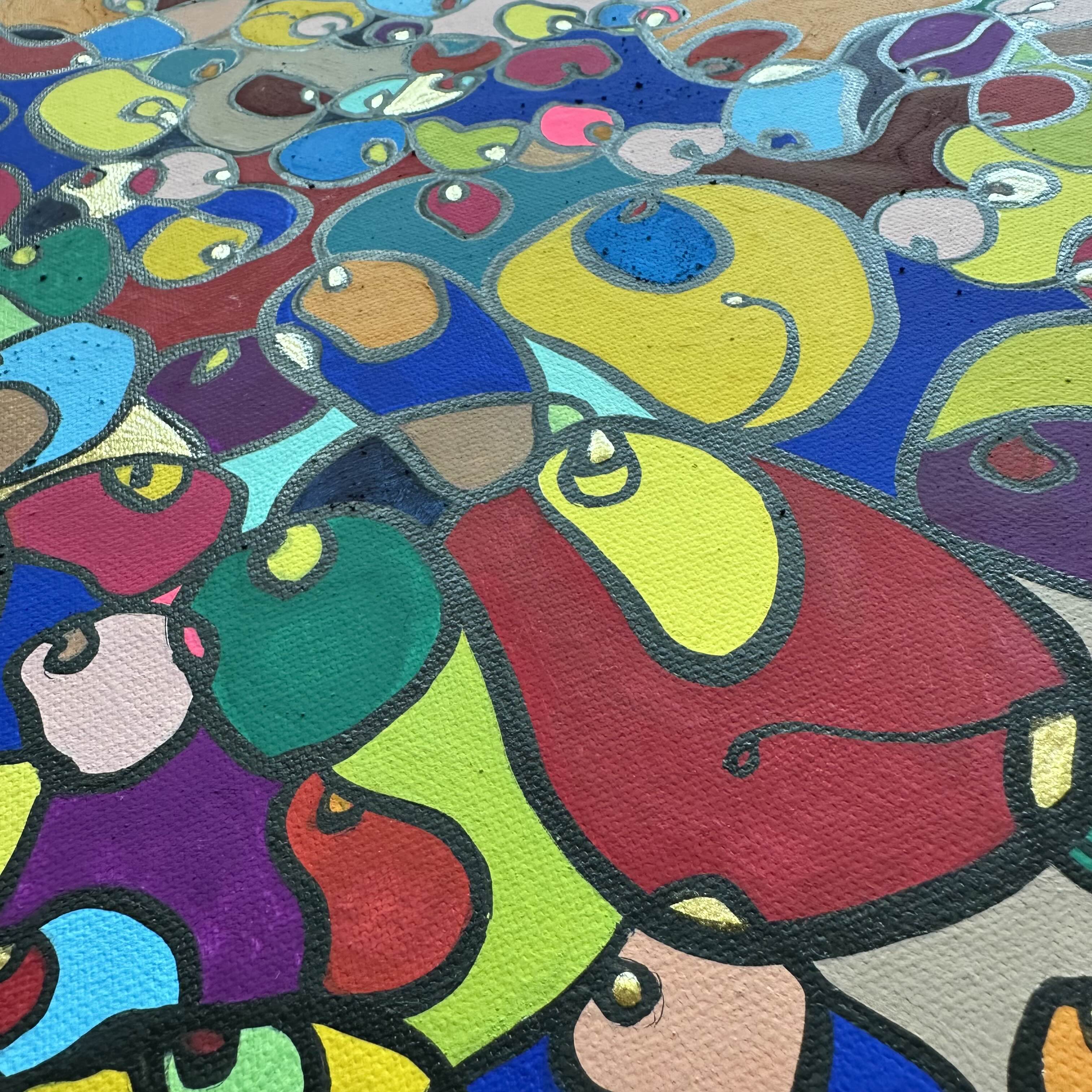 In this vibrant creation, I've painted a joyful mélange of shapes and colors that dance across the canvas in rich, organic textures. Drawing inspiration from oriental art, each element swirls harmoniously into the next, representing unity and the beauty of diversity. This artwork is meant to uplift the spirit and infuse any space with a burst of life and energy, encouraging onlookers to see the world in the optimistic hues of possibility and wonder.