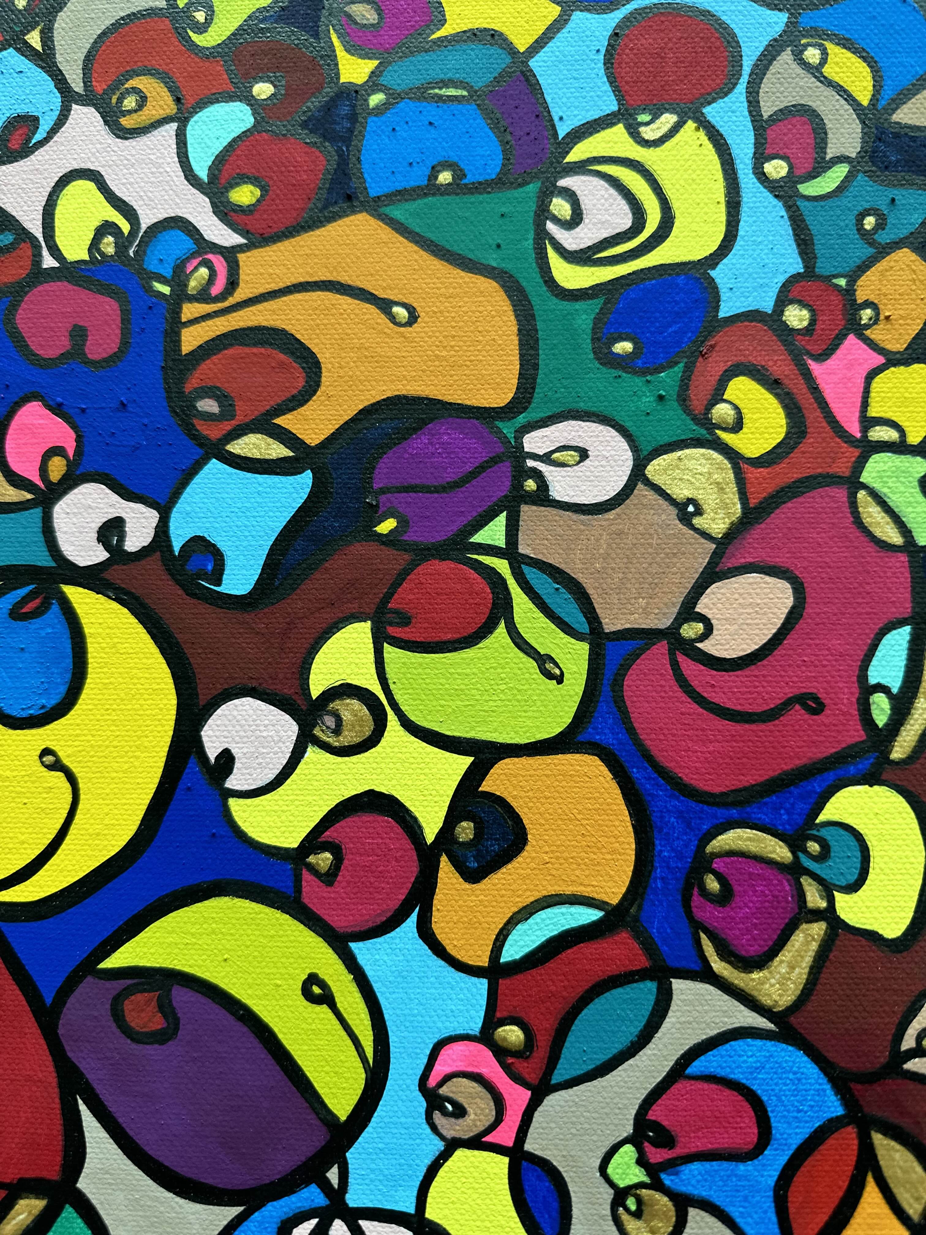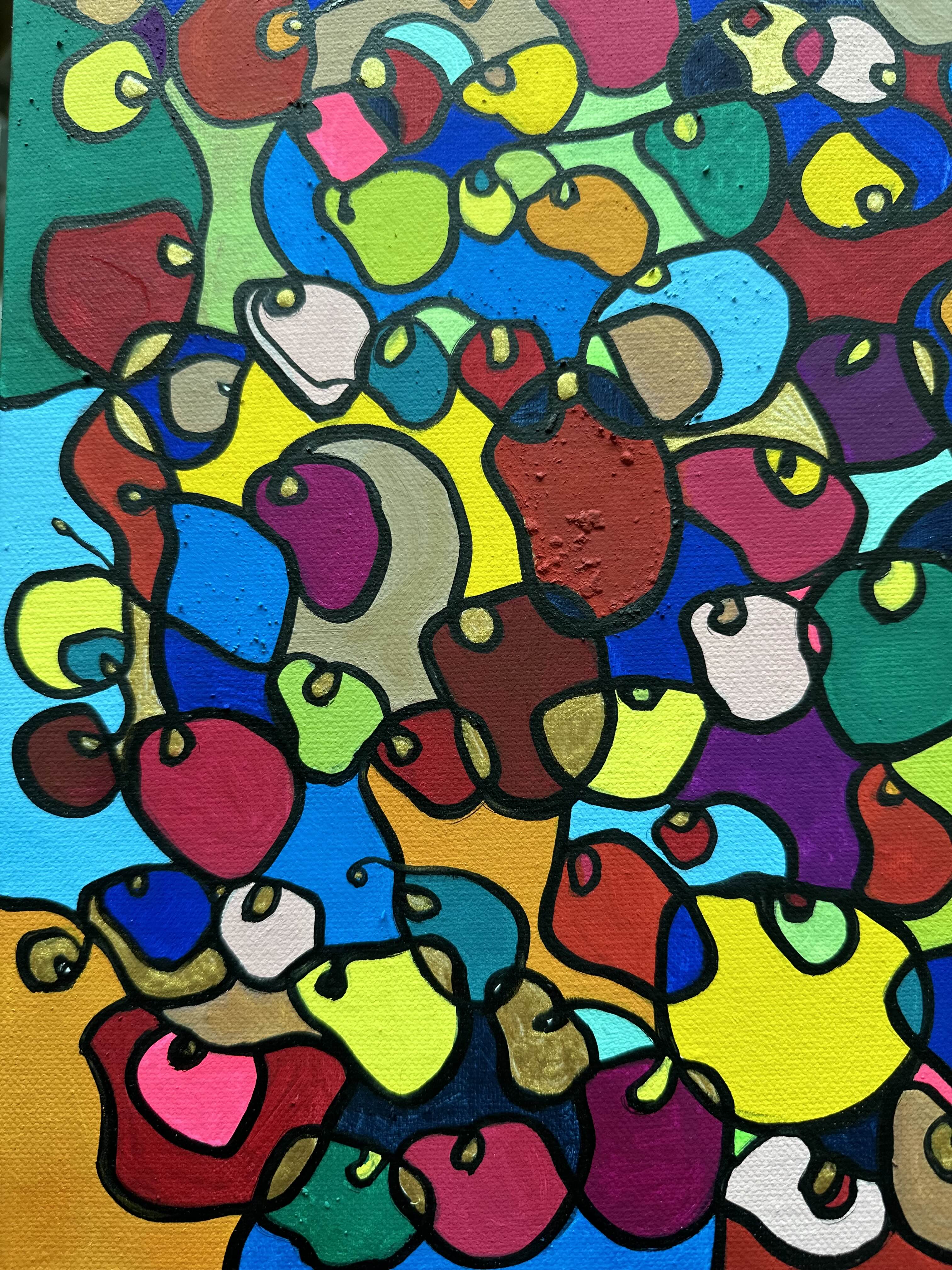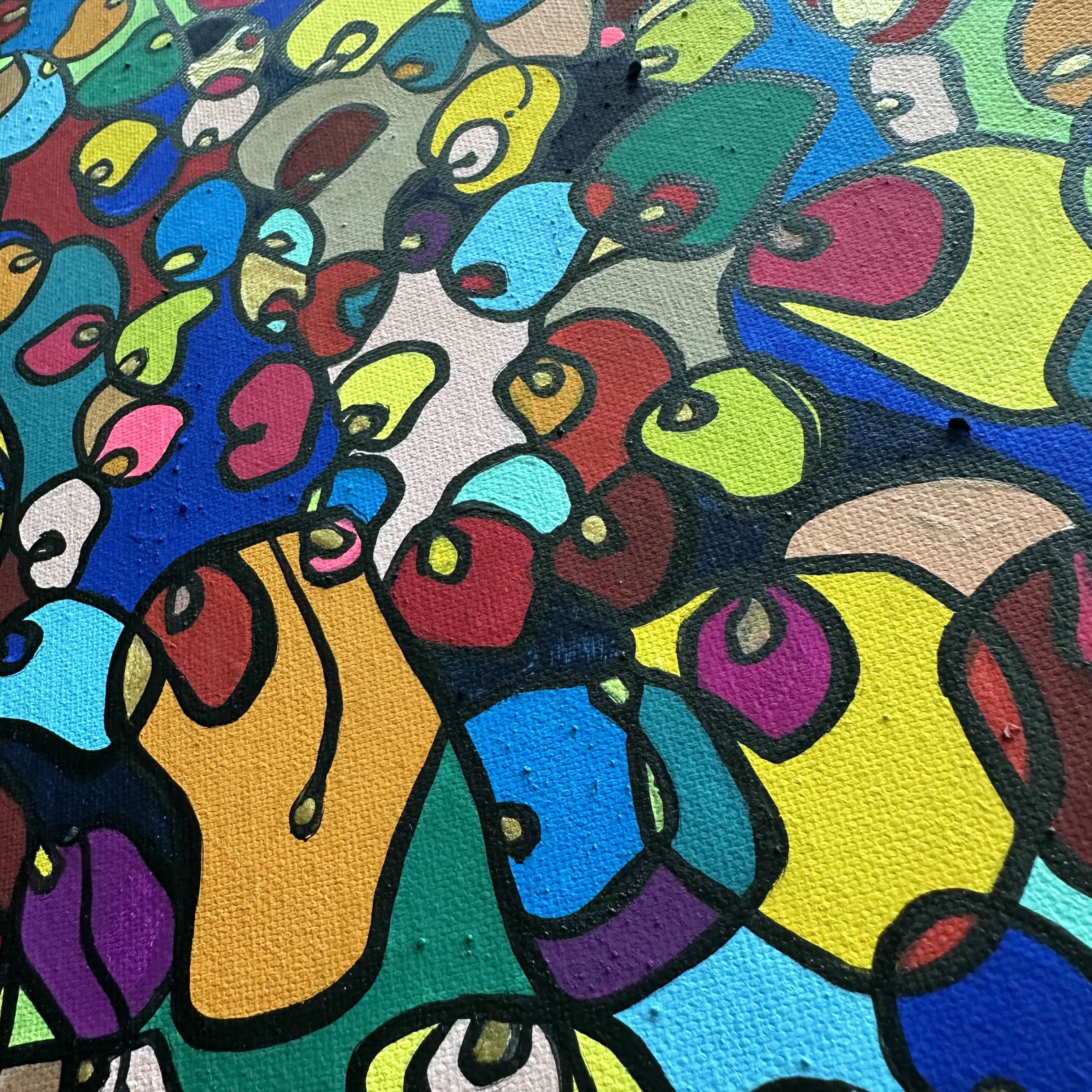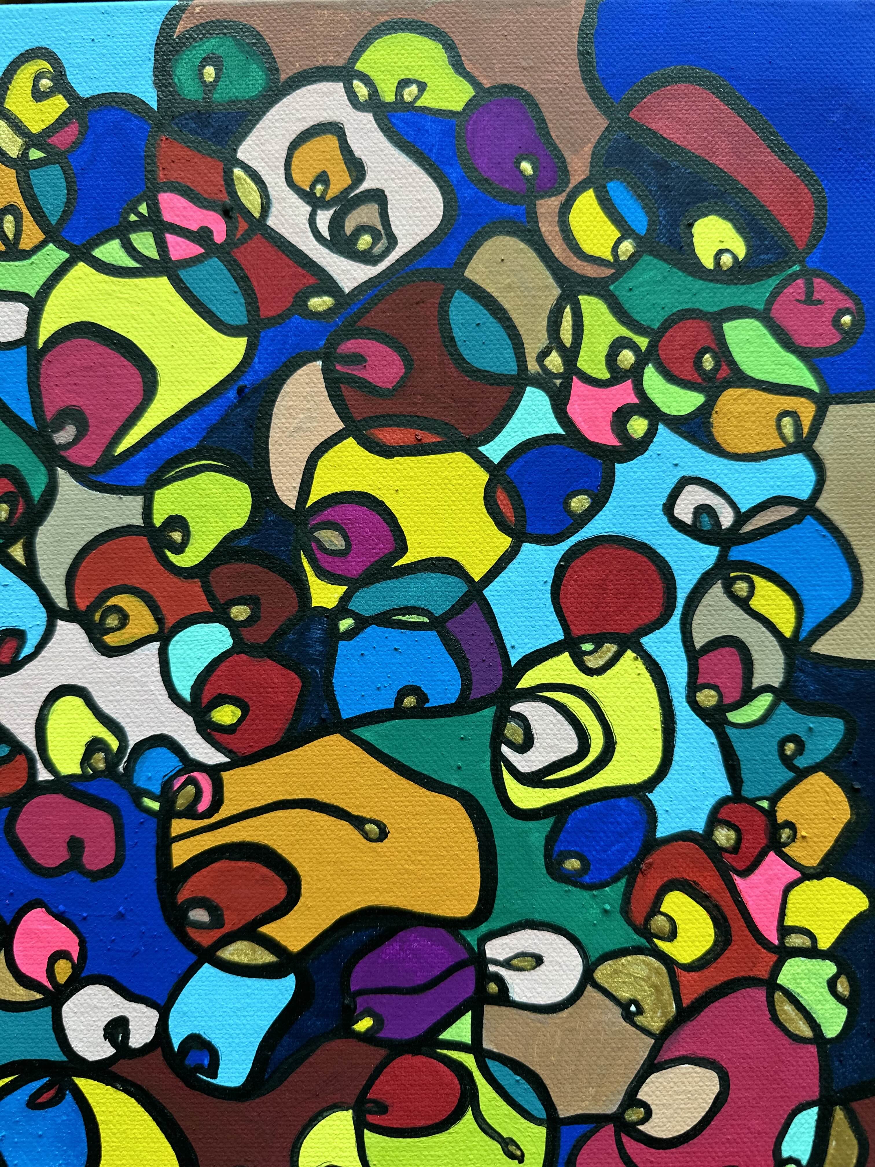 In this vibrant creation, I've painted a joyful mélange of shapes and colors that dance across the canvas in rich, organic textures. Drawing inspiration from oriental art, each element swirls harmoniously into the next, representing unity and the beauty of diversity. This artwork is meant to uplift the spirit and infuse any space with a burst of life and energy, encouraging onlookers to see the world in the optimistic hues of possibility and wonder.