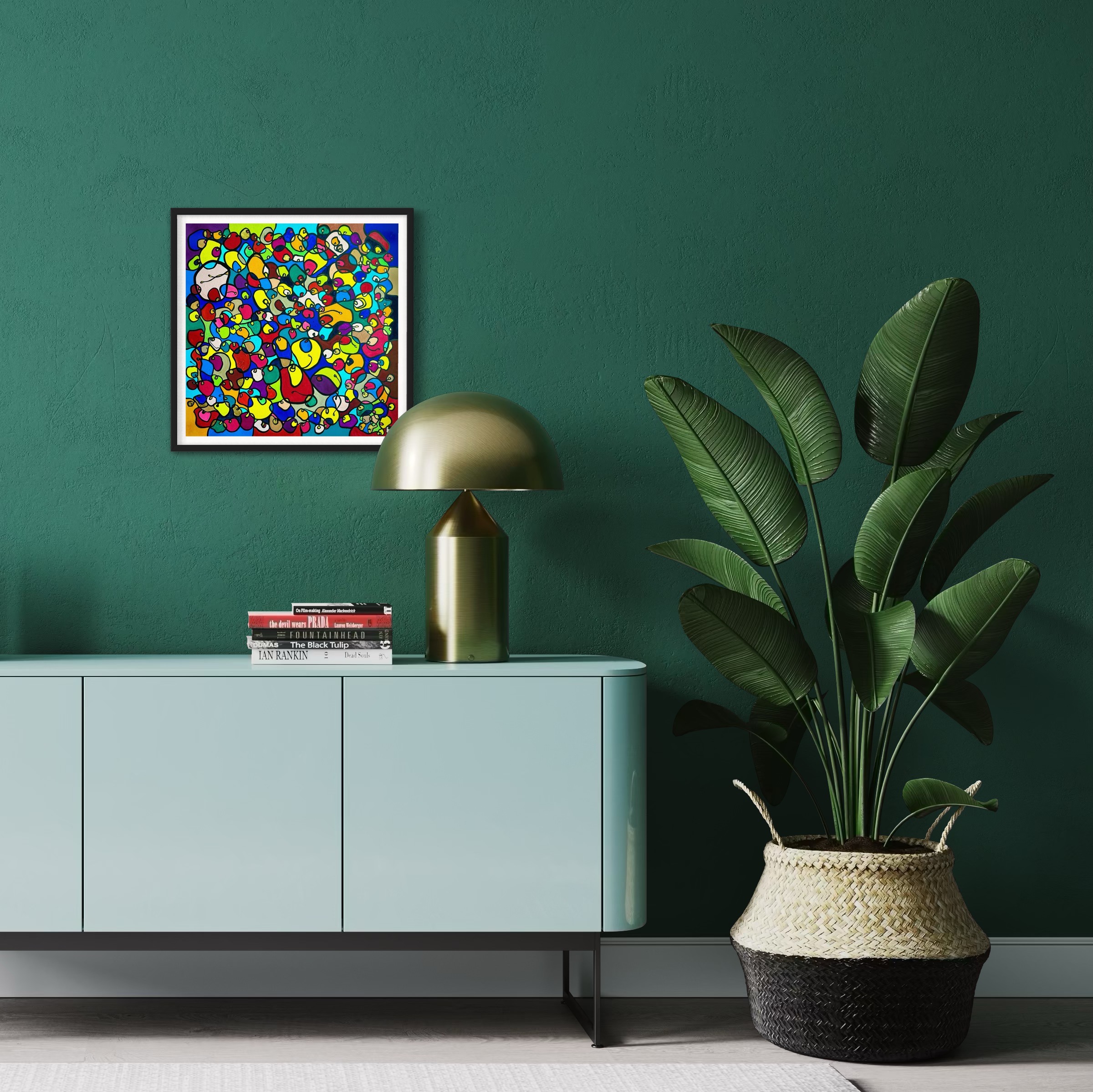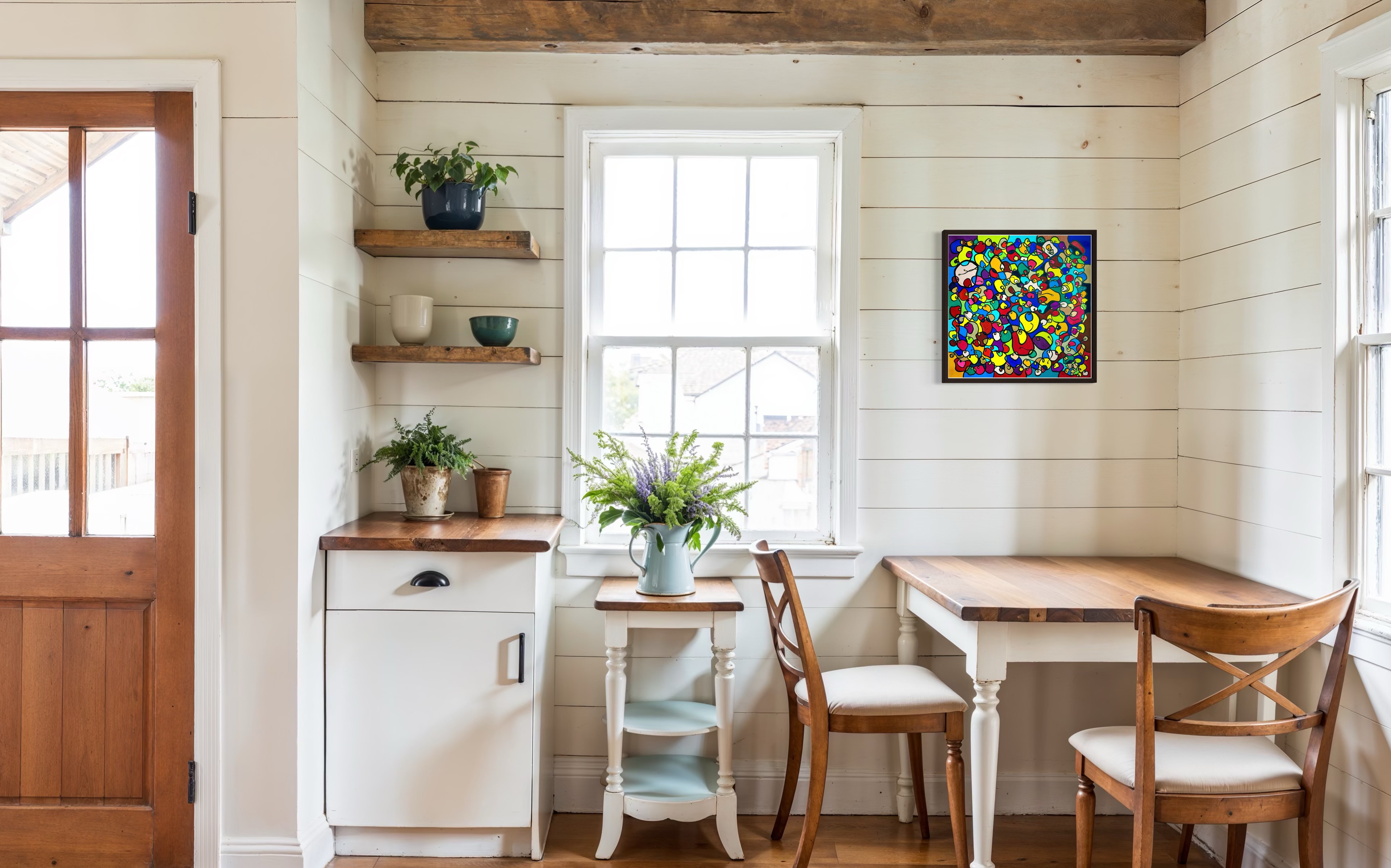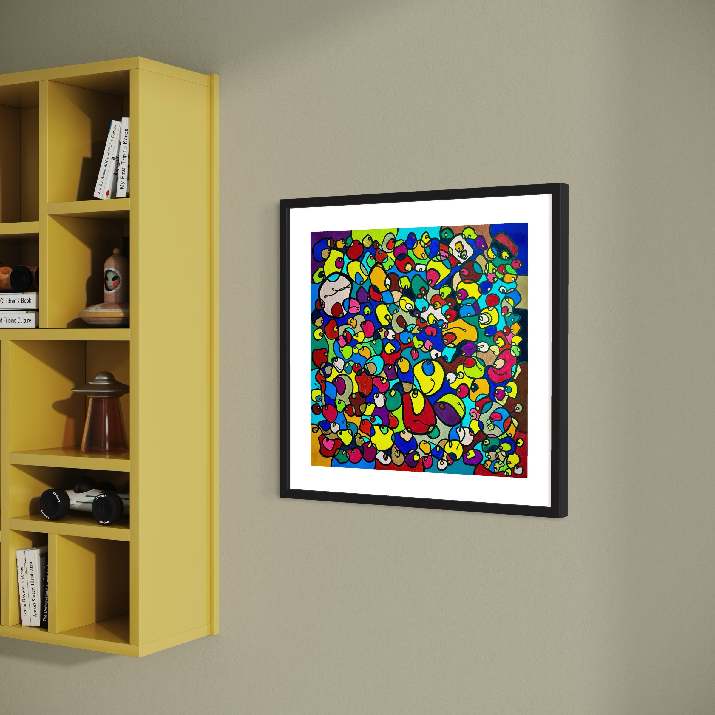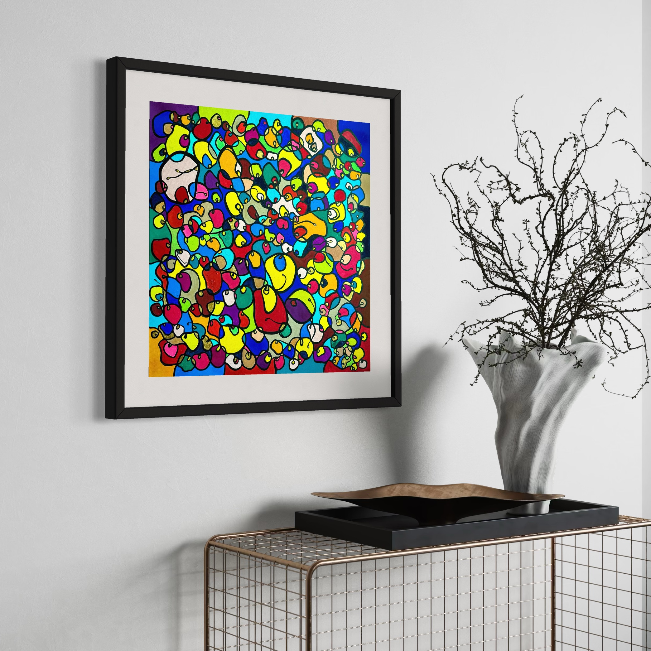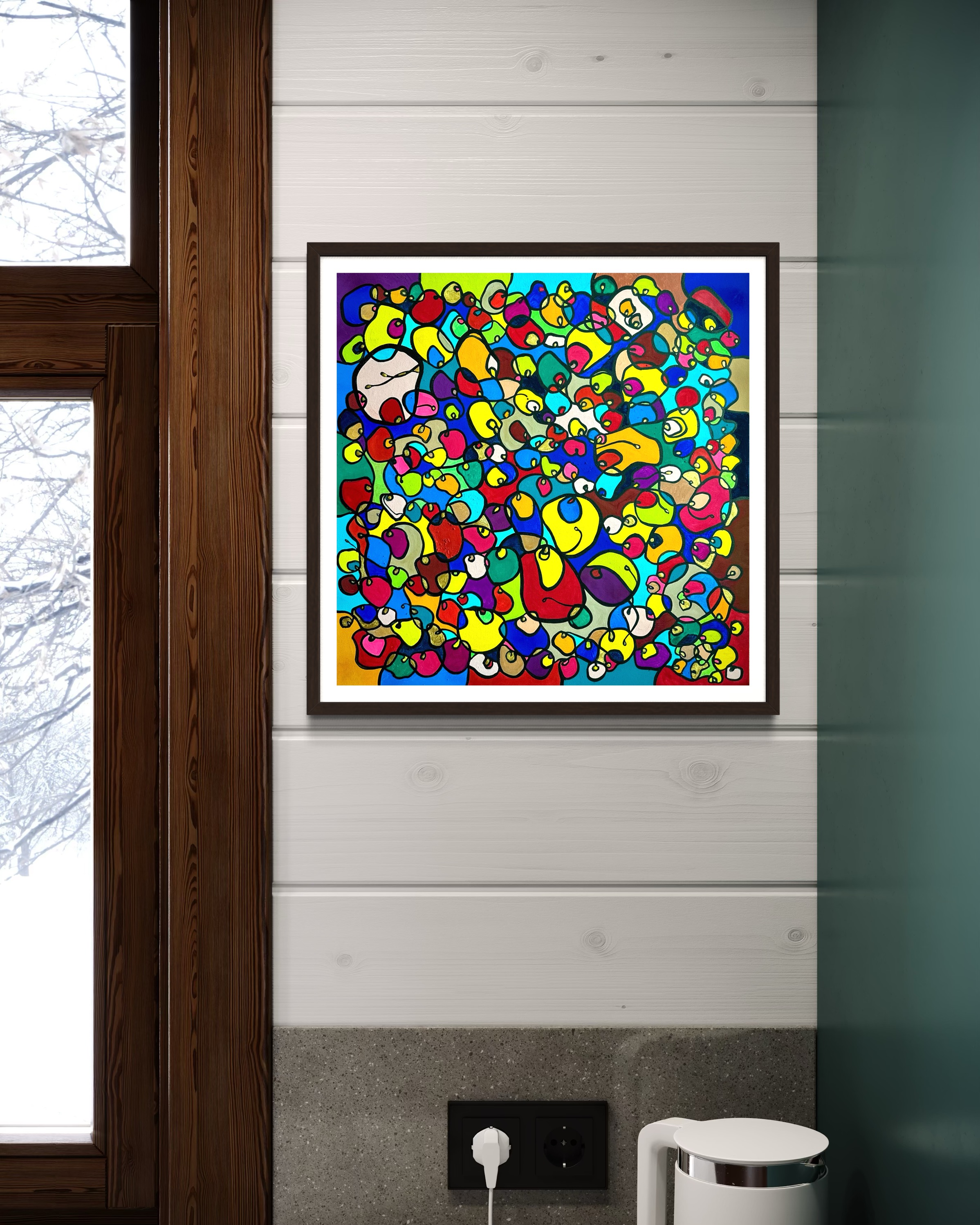 In this vibrant creation, I've painted a joyful mélange of shapes and colors that dance across the canvas in rich, organic textures. Drawing inspiration from oriental art, each element swirls harmoniously into the next, representing unity and the beauty of diversity. This artwork is meant to uplift the spirit and infuse any space with a burst of life and energy, encouraging onlookers to see the world in the optimistic hues of possibility and wonder.