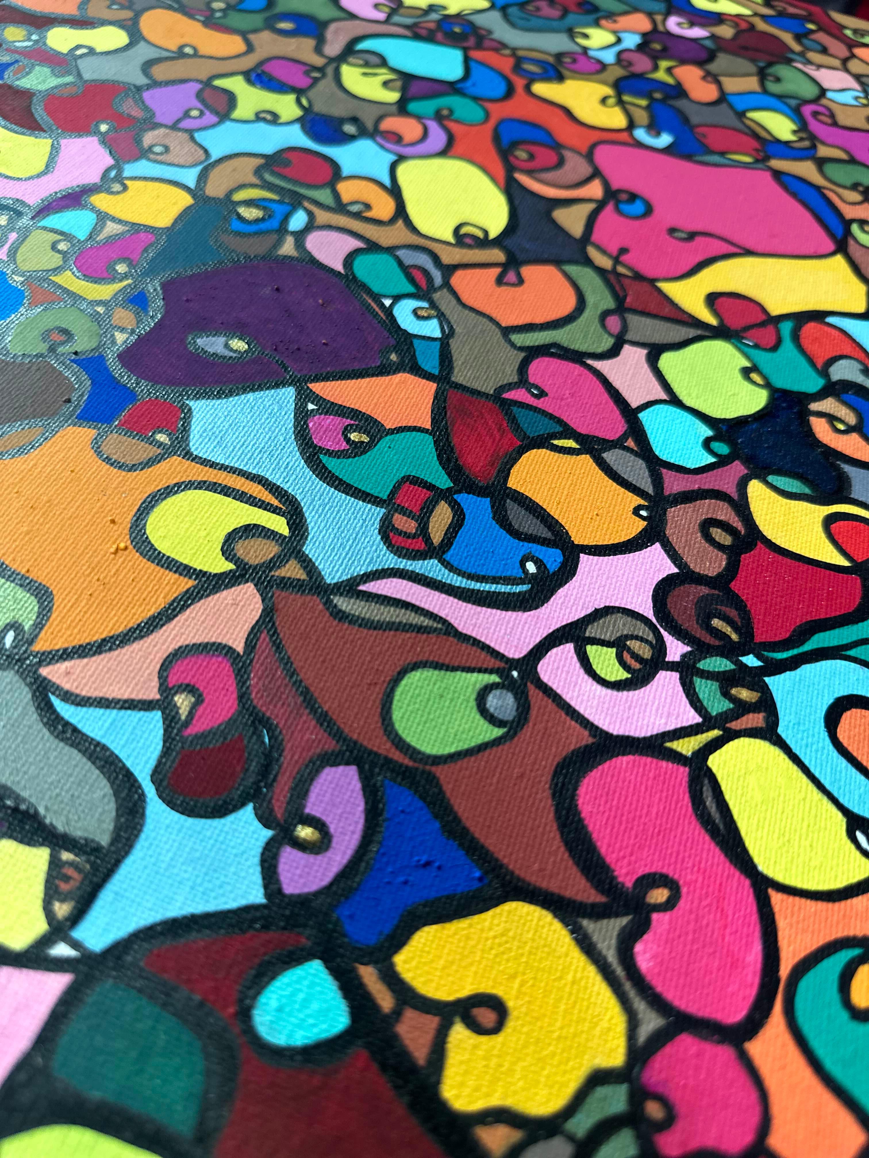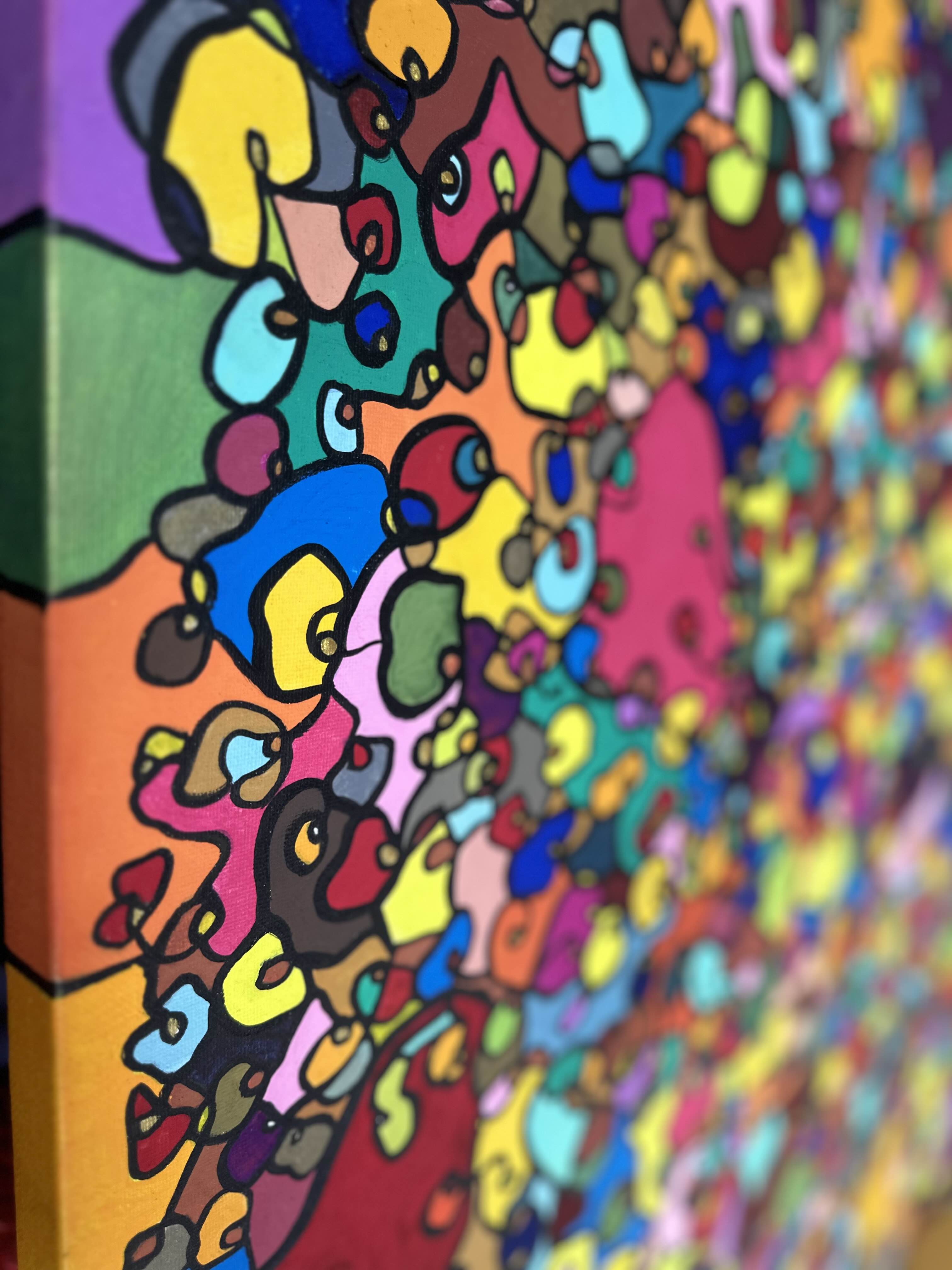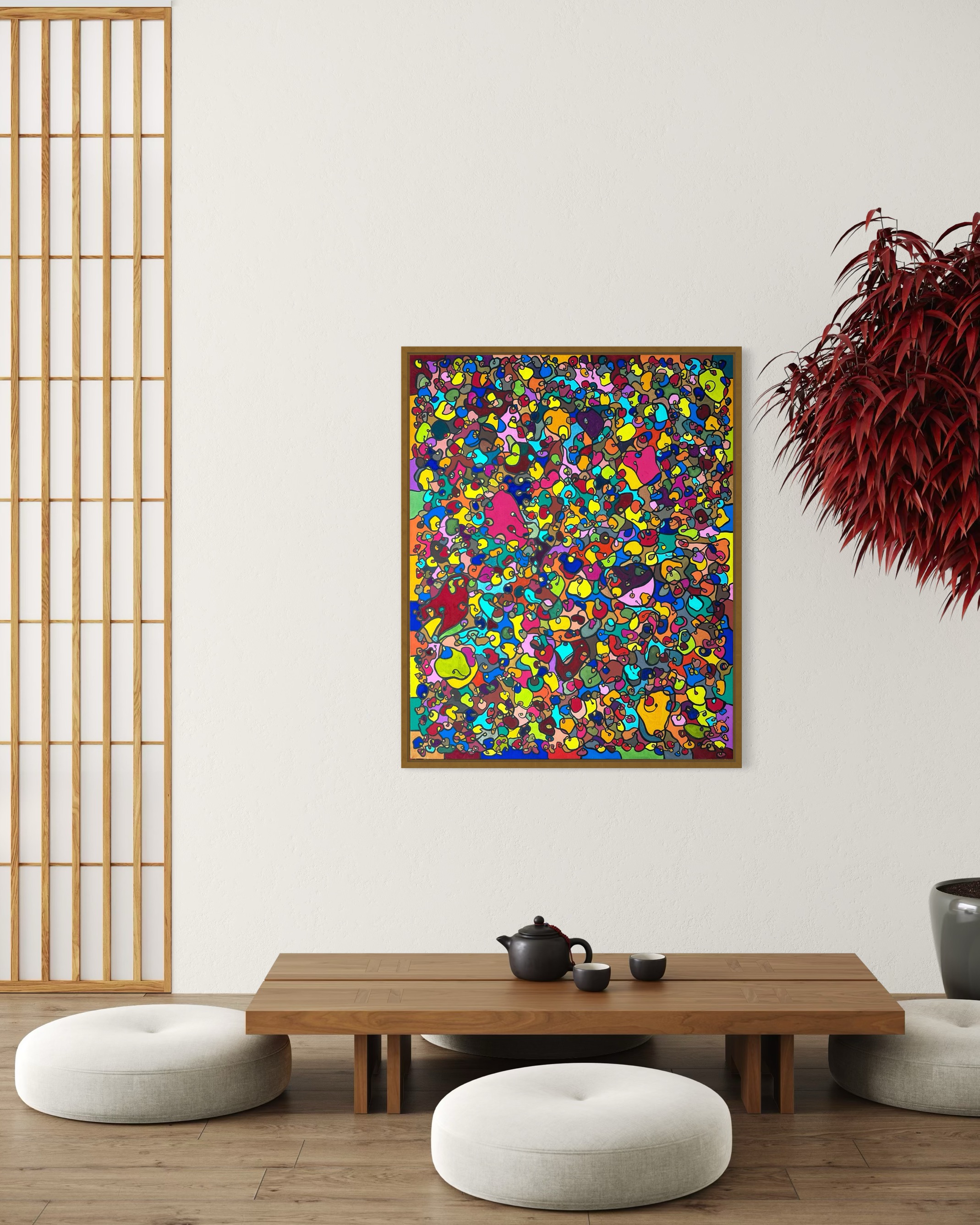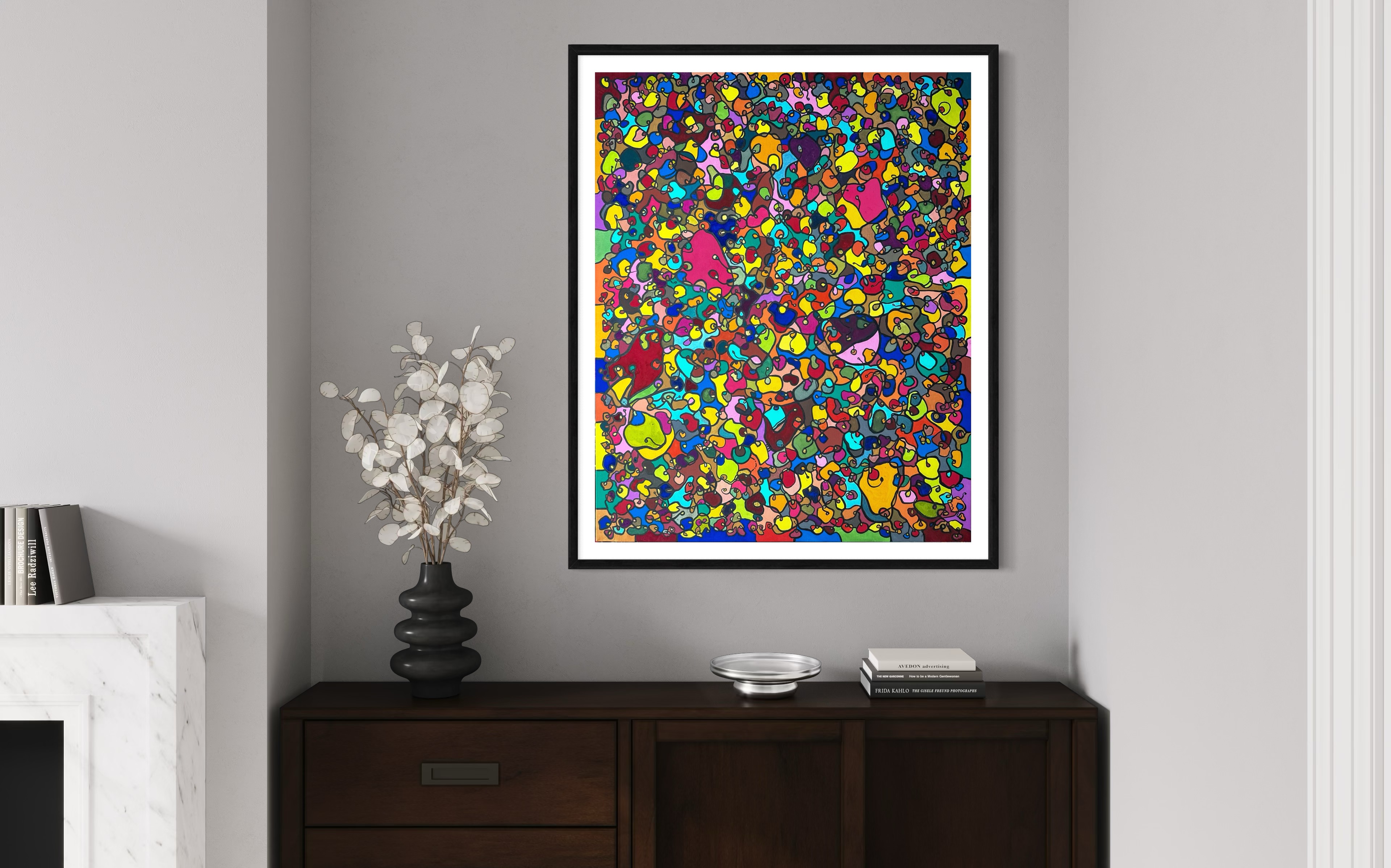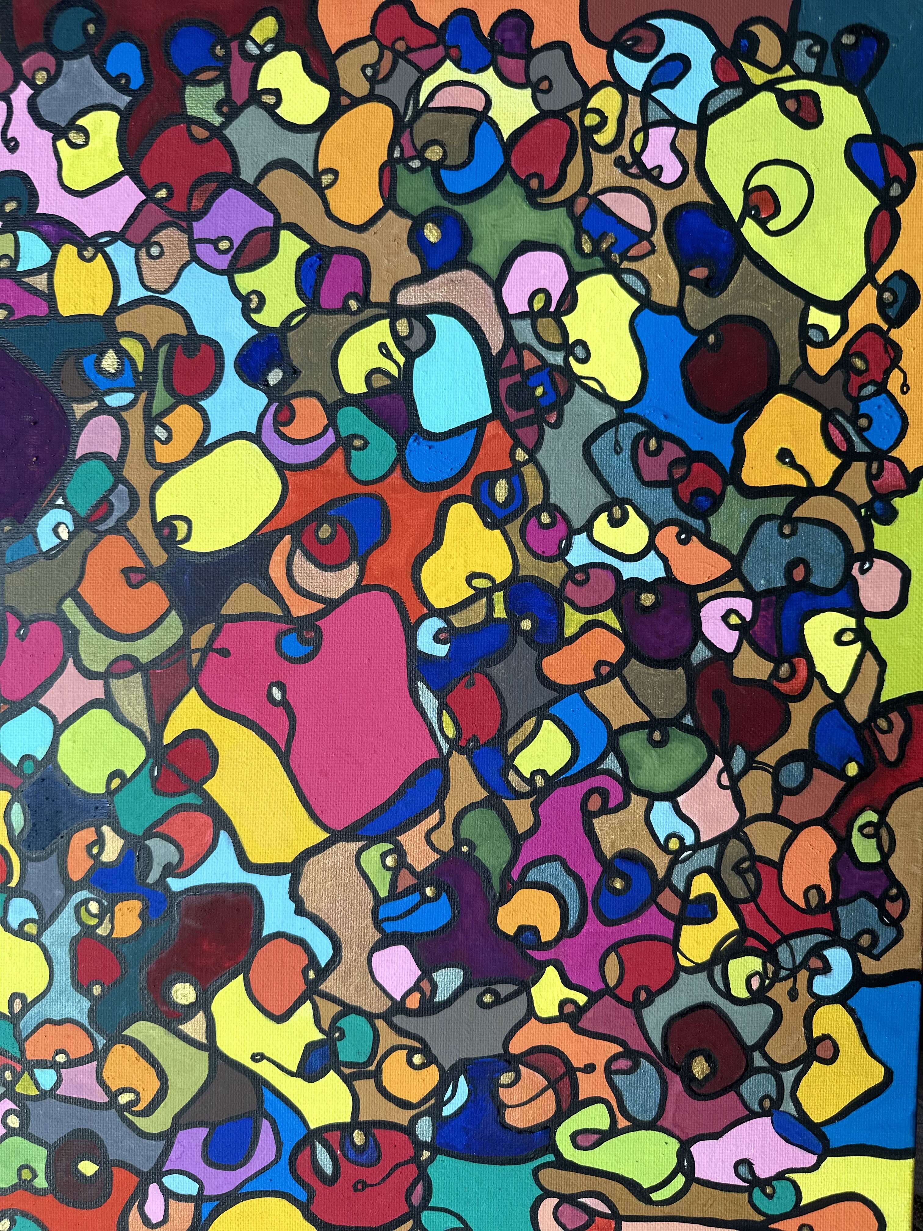 In creating this piece, I've poured vibrant emotions into an organic tapestry, embracing oriental art influences. My intent was to celebrate diversity through a mosaic of colors and shapes, each element distinct yet harmonious. This artwork embodies unity and connectivity, infusing any space with a dynamic, uplifting spirit. It's a visual feast that invites viewers to appreciate the beauty in variety and the strength in inclusiveness.