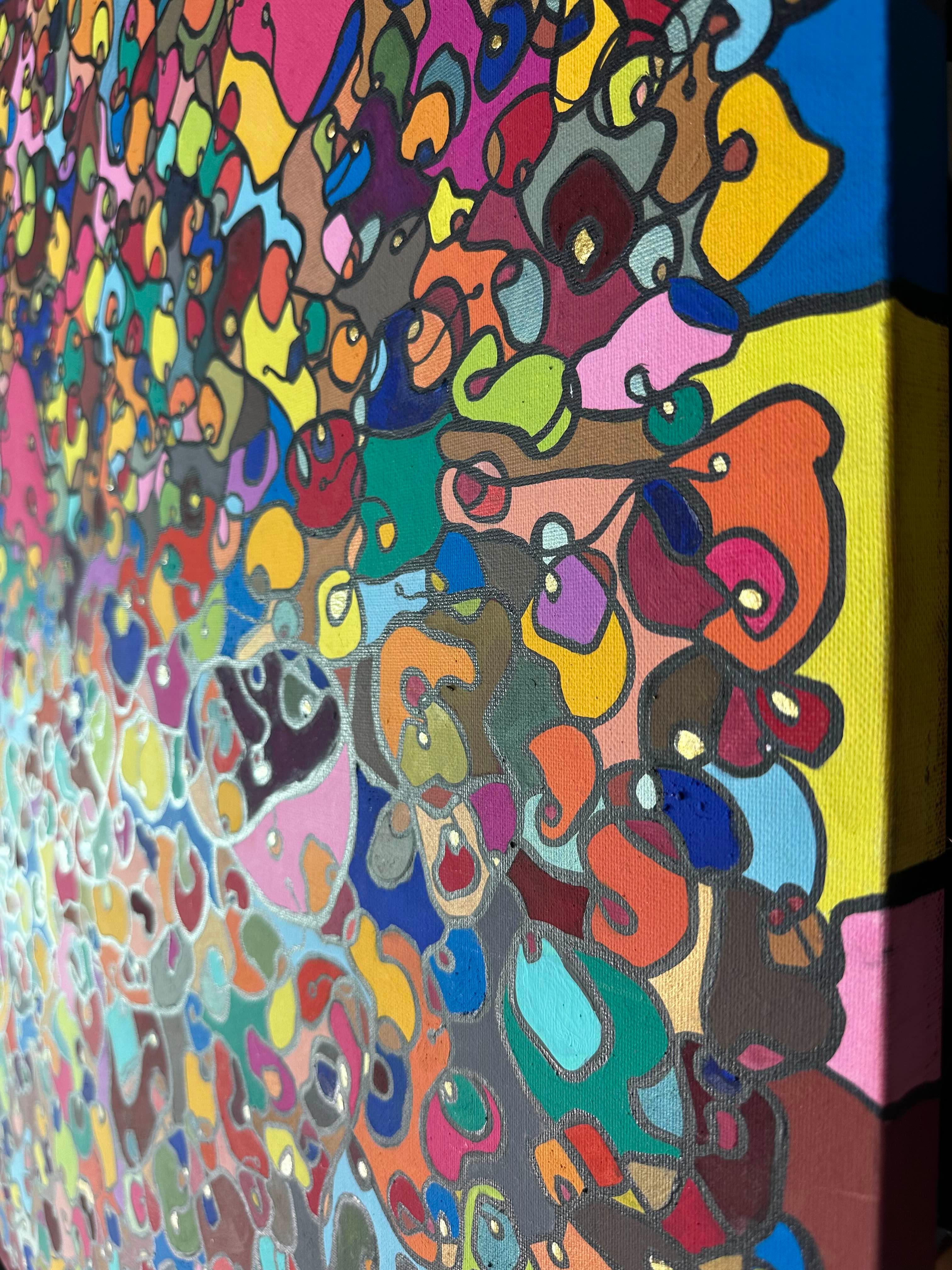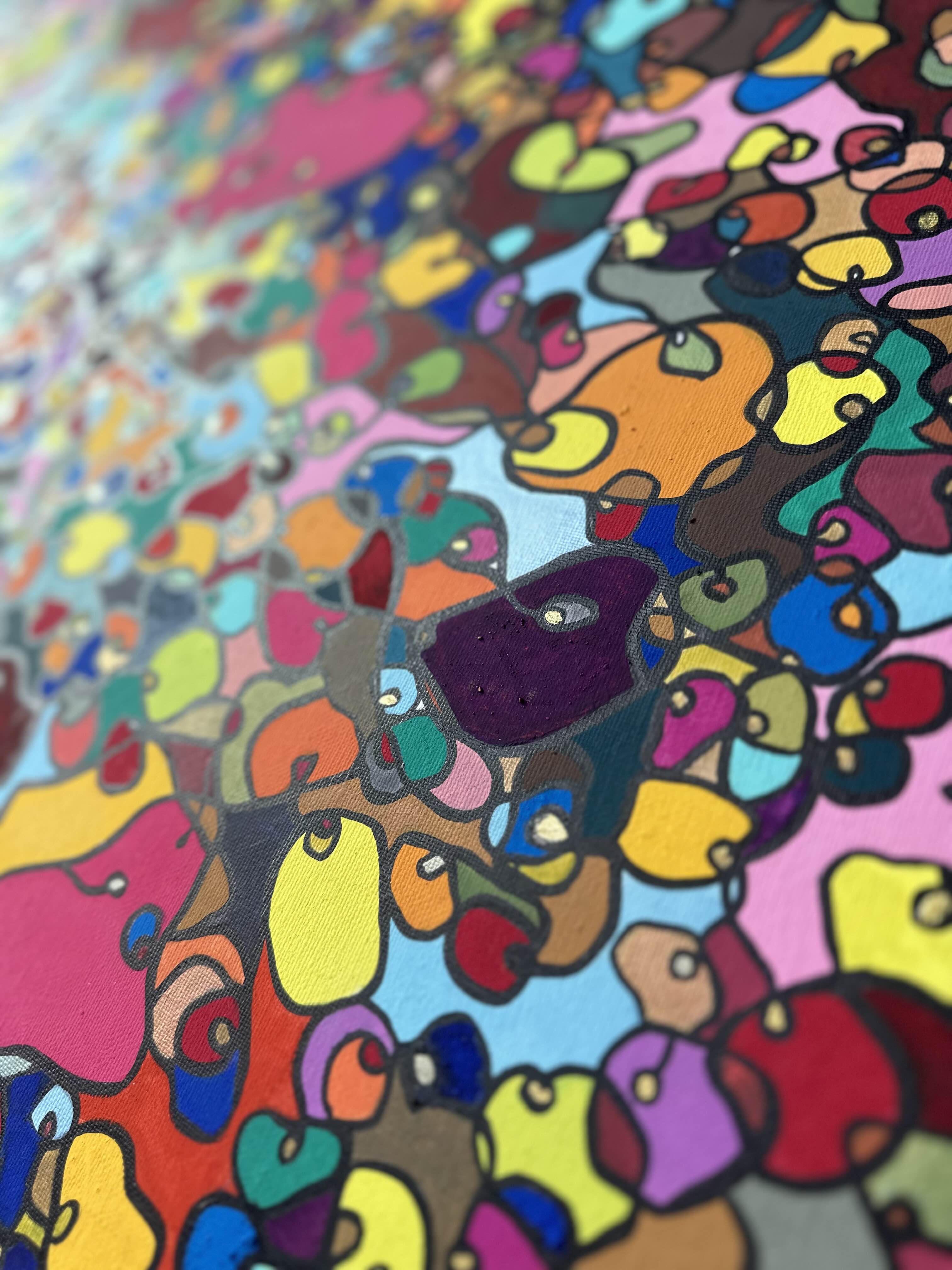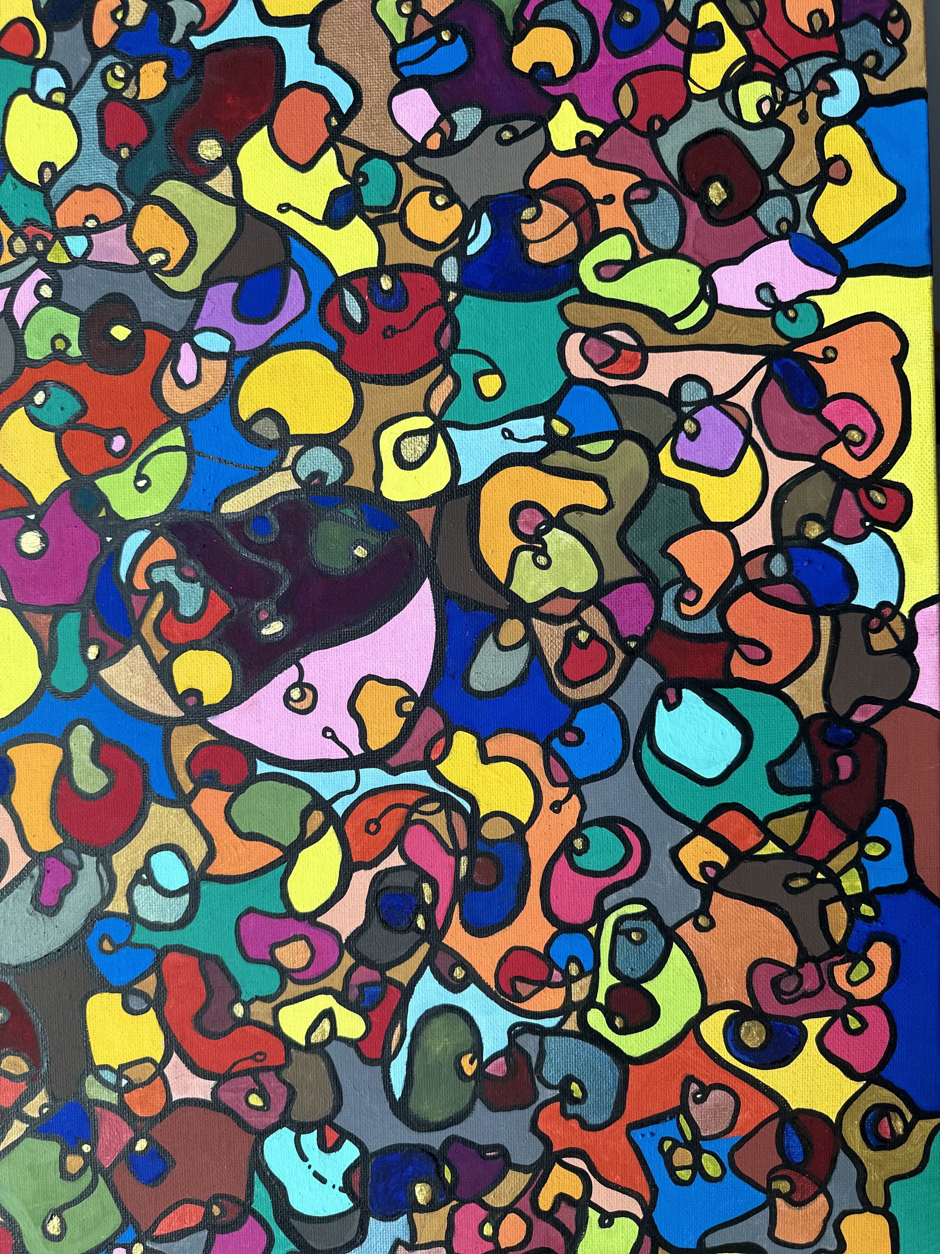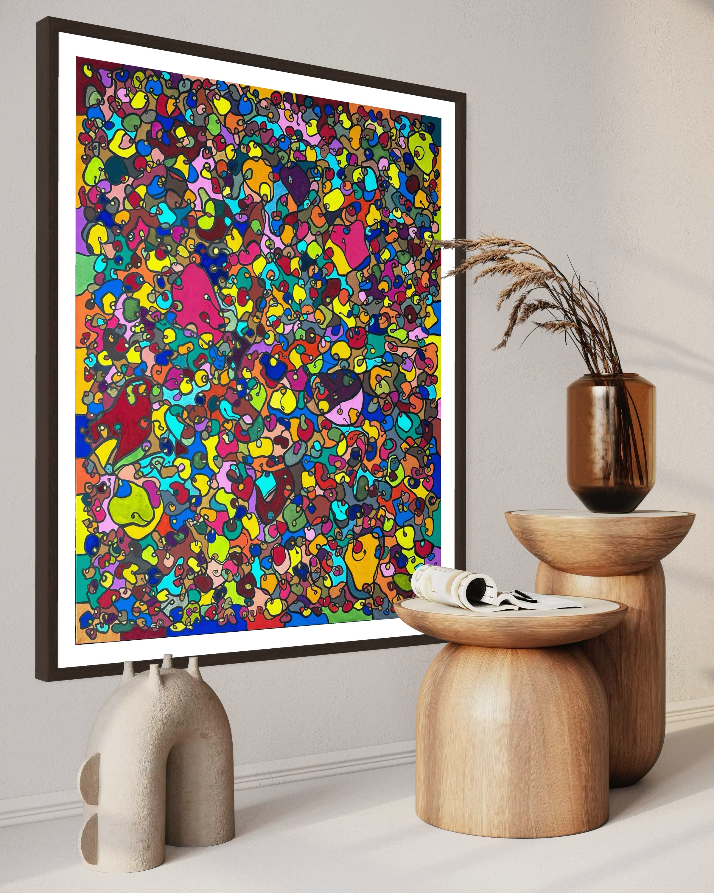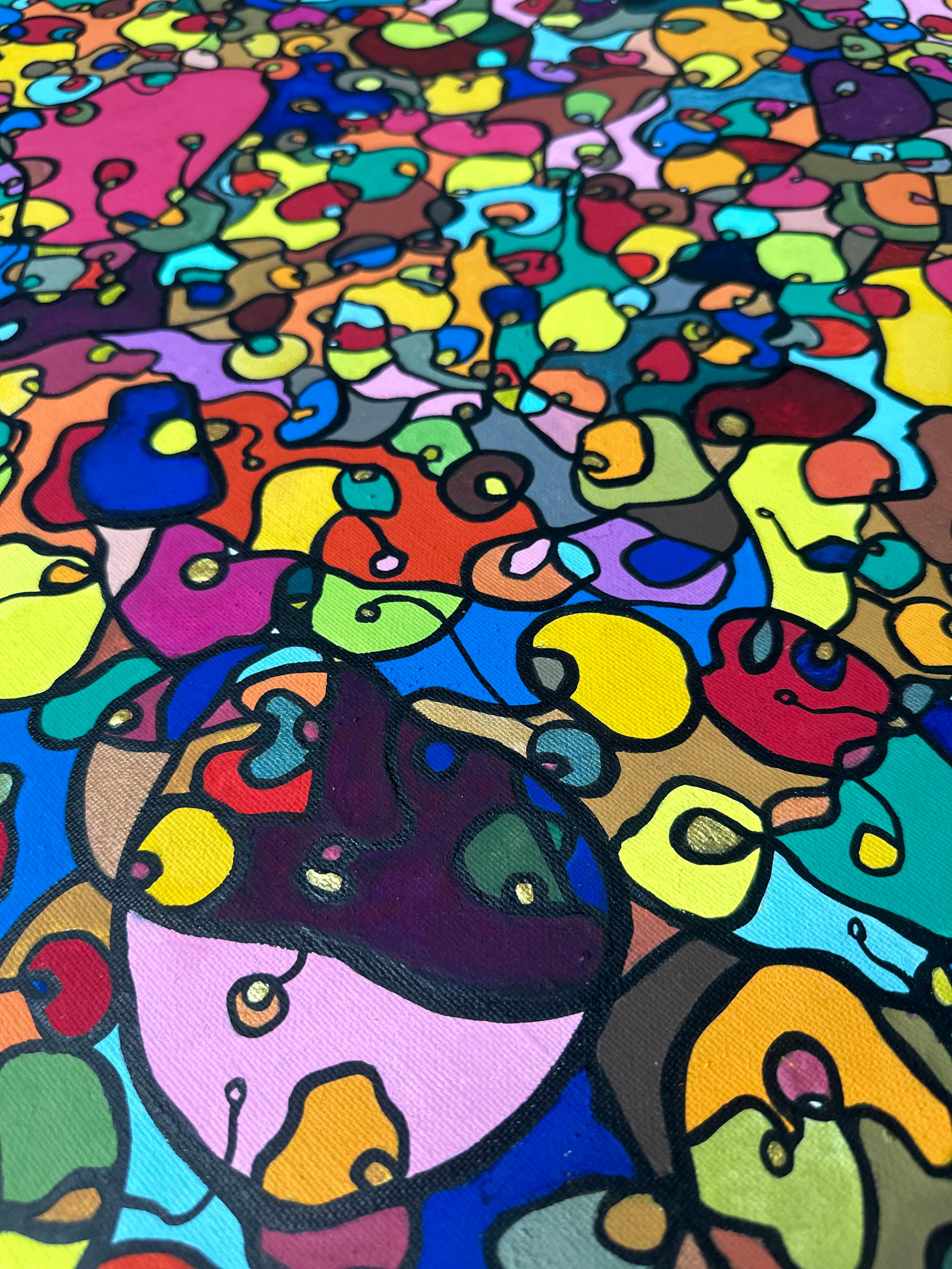In creating this piece, I've poured vibrant emotions into an organic tapestry, embracing oriental art influences. My intent was to celebrate diversity through a mosaic of colors and shapes, each element distinct yet harmonious. This artwork embodies unity and connectivity, infusing any space with a dynamic, uplifting spirit. It's a visual feast that invites viewers to appreciate the beauty in variety and the strength in inclusiveness.