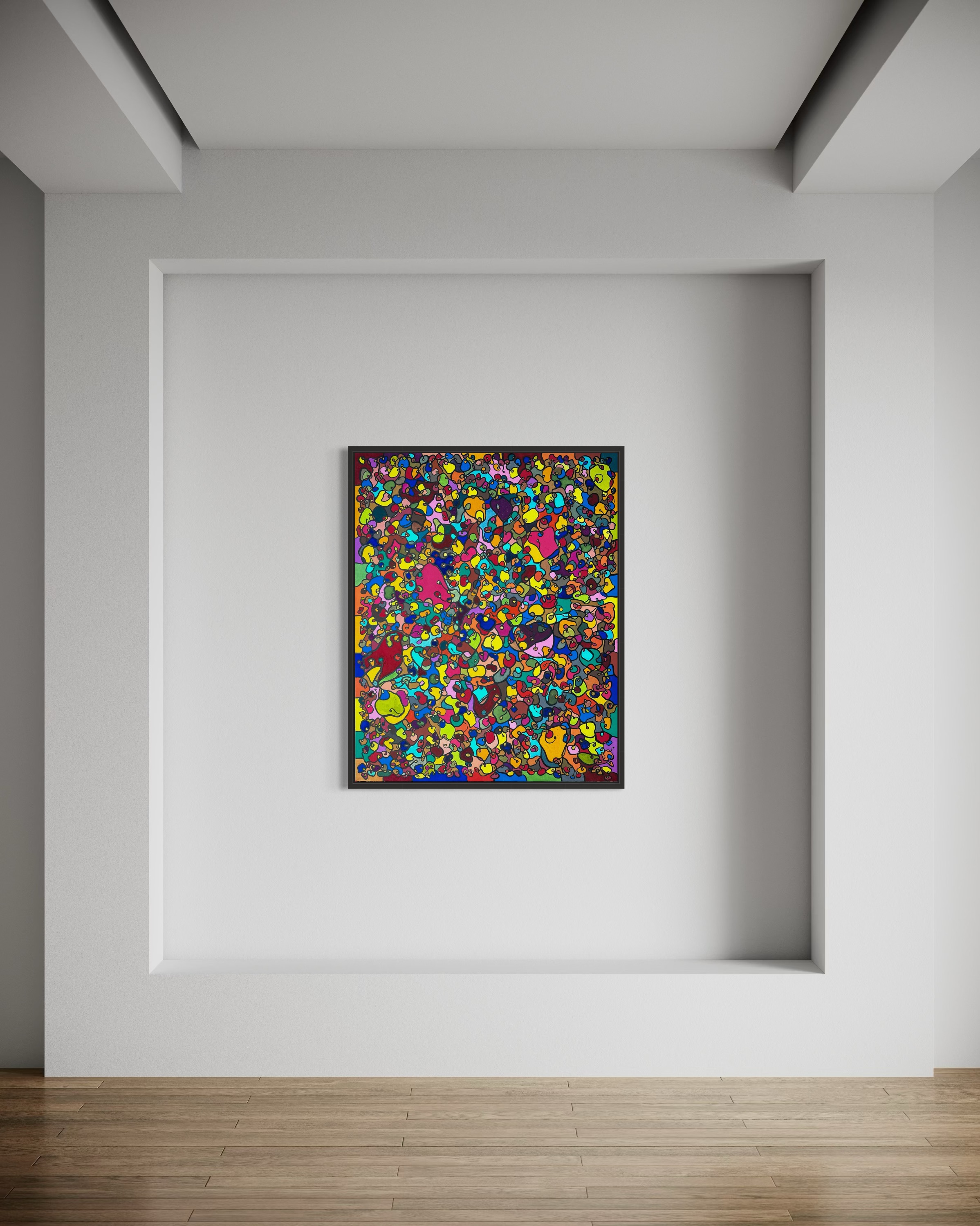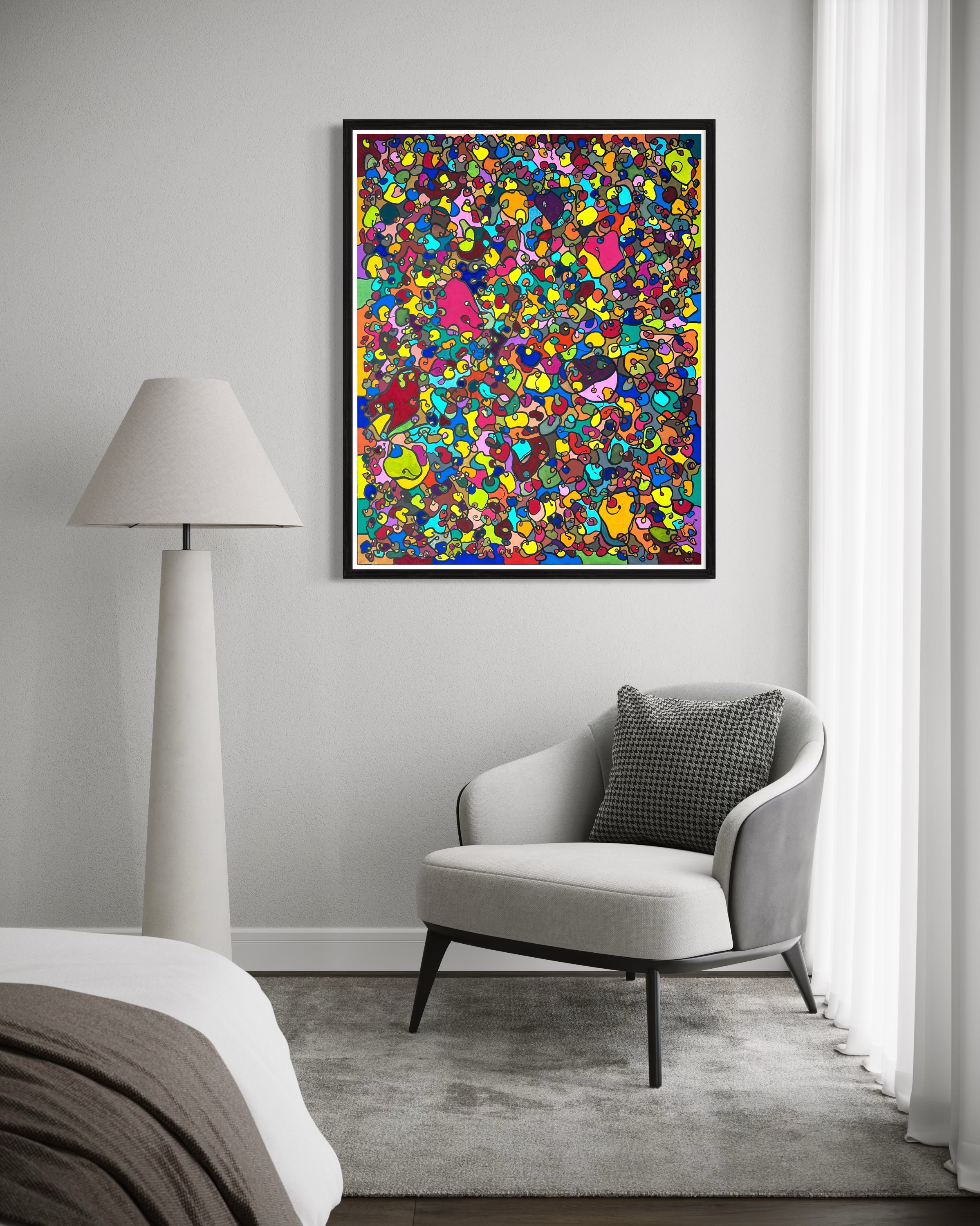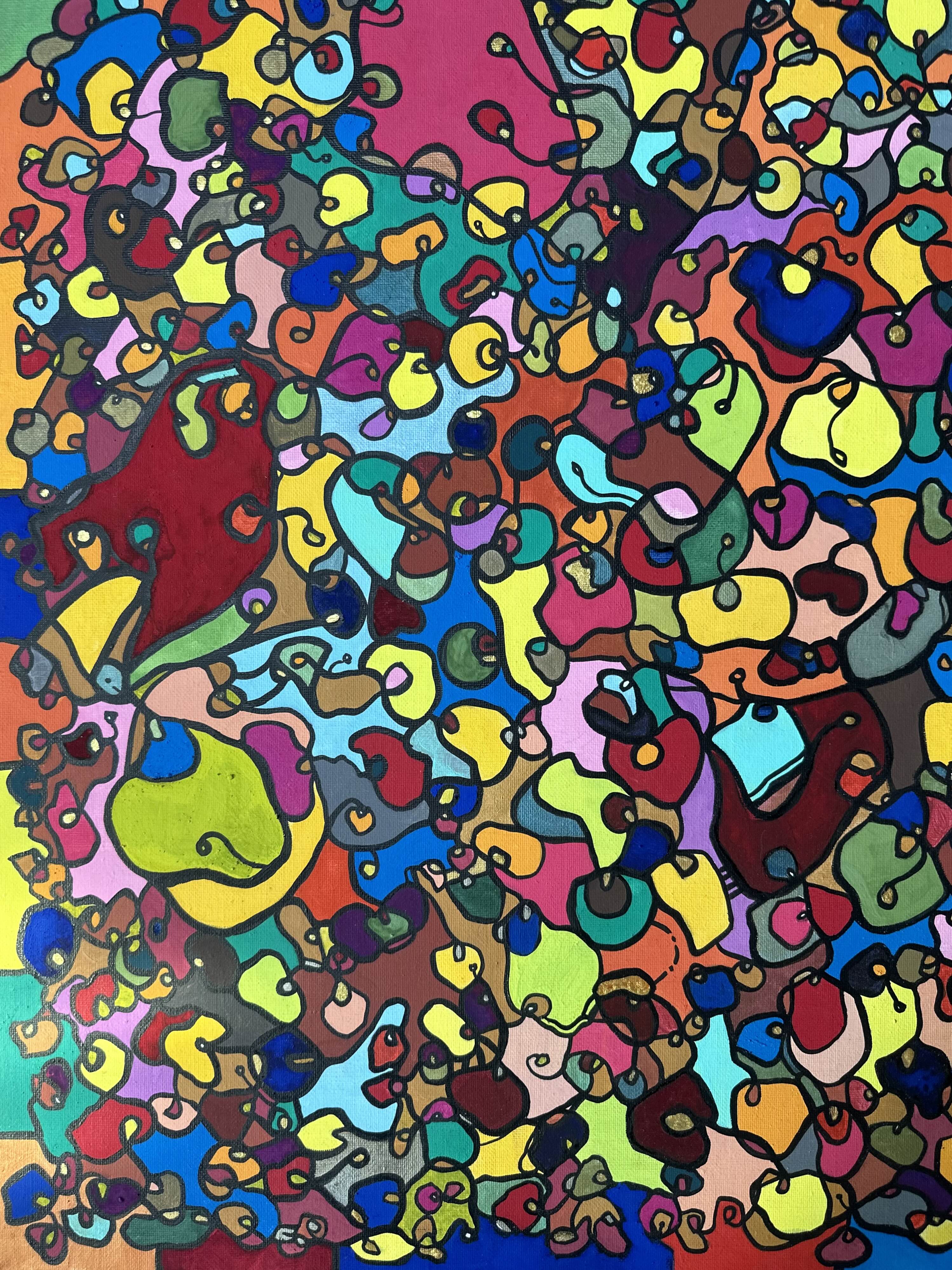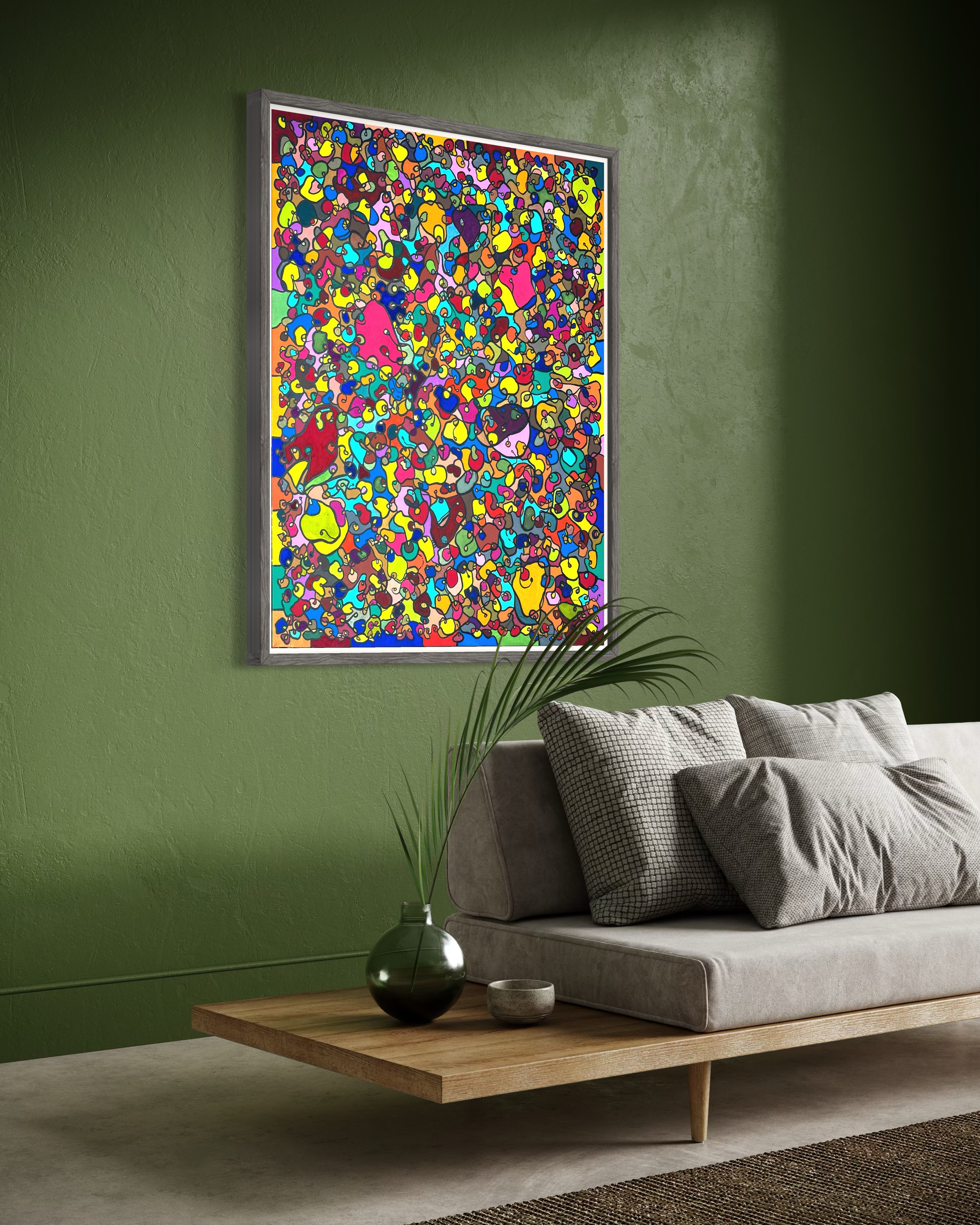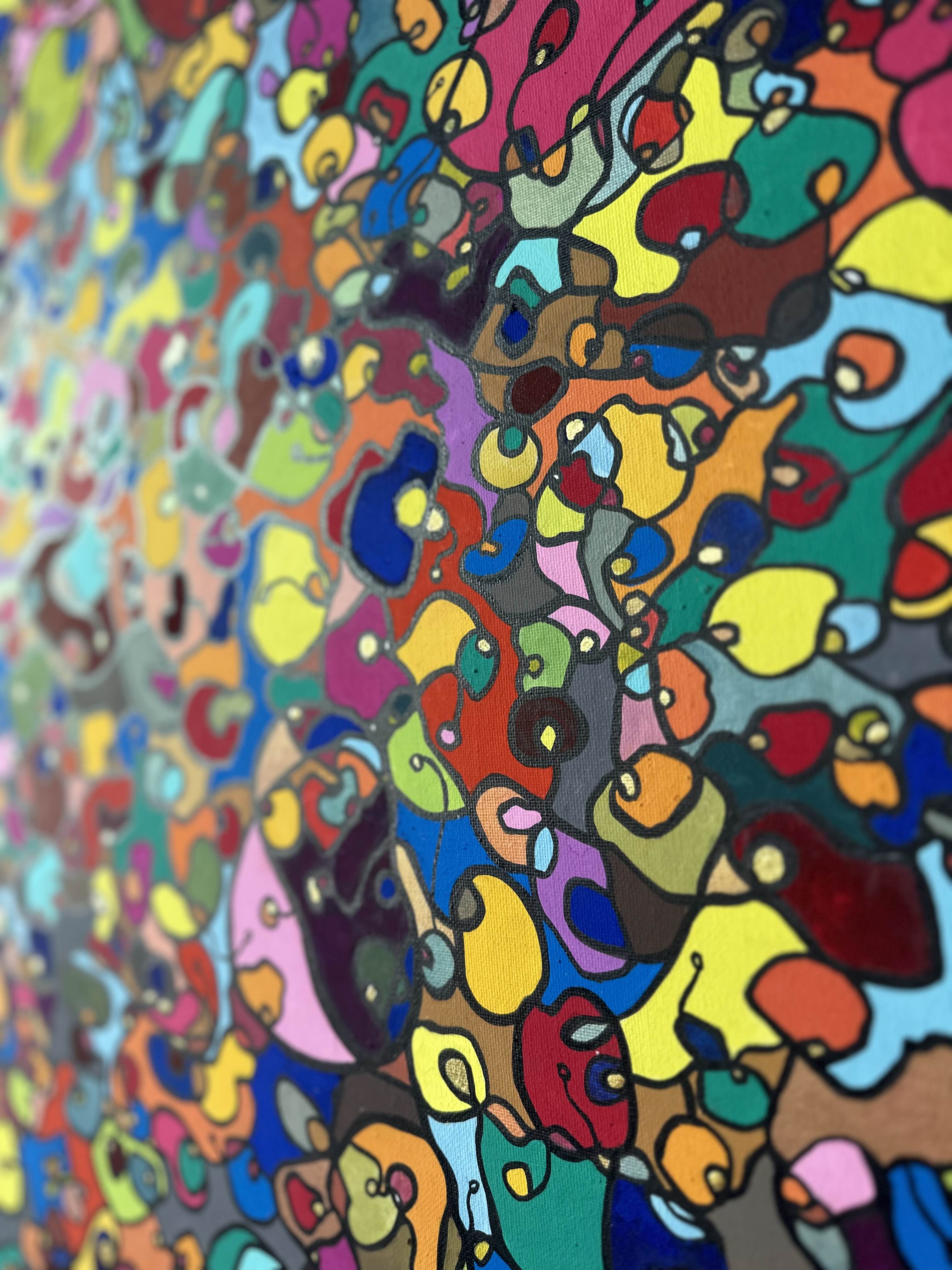 In creating this piece, I've poured vibrant emotions into an organic tapestry, embracing oriental art influences. My intent was to celebrate diversity through a mosaic of colors and shapes, each element distinct yet harmonious. This artwork embodies unity and connectivity, infusing any space with a dynamic, uplifting spirit. It's a visual feast that invites viewers to appreciate the beauty in variety and the strength in inclusiveness.
