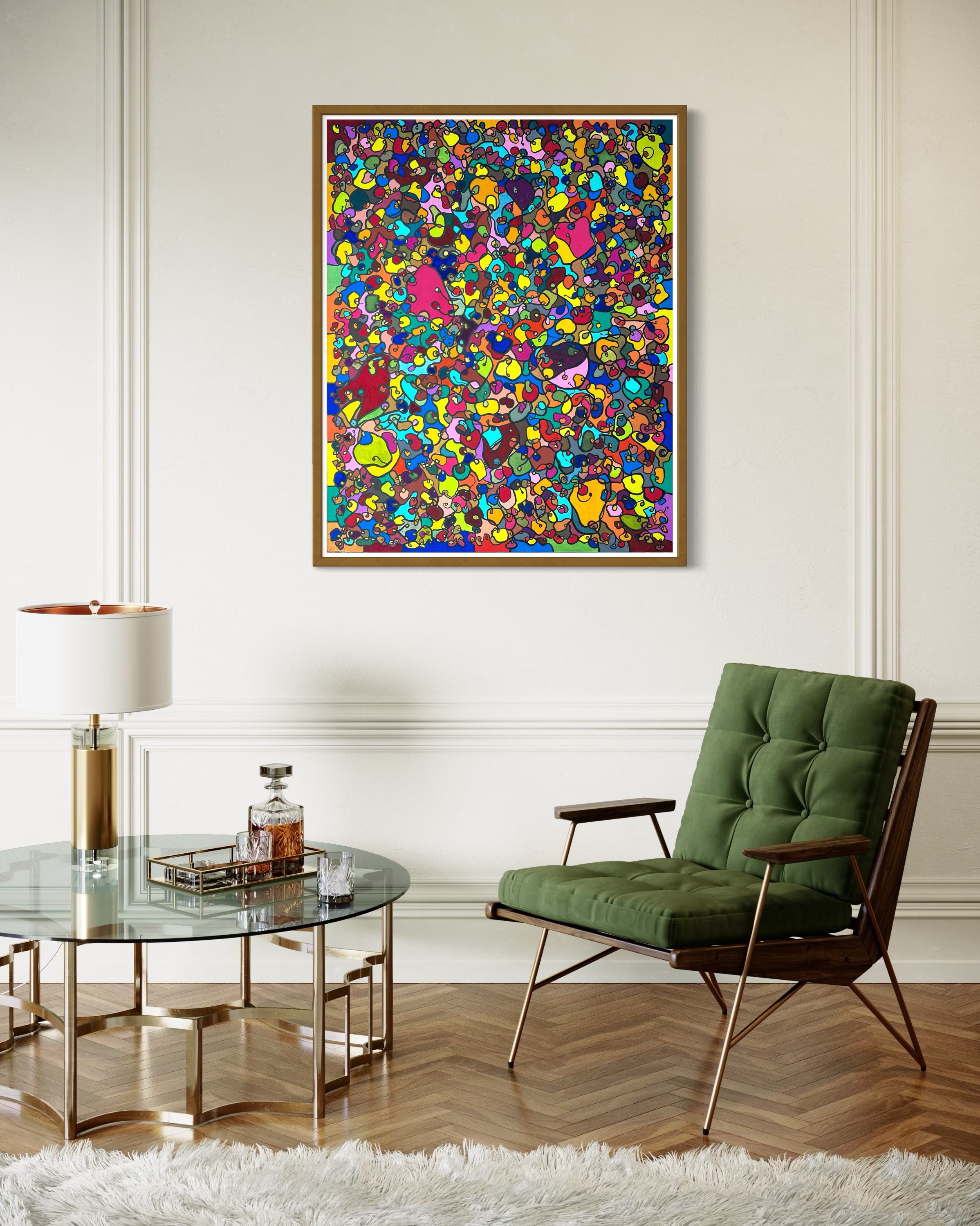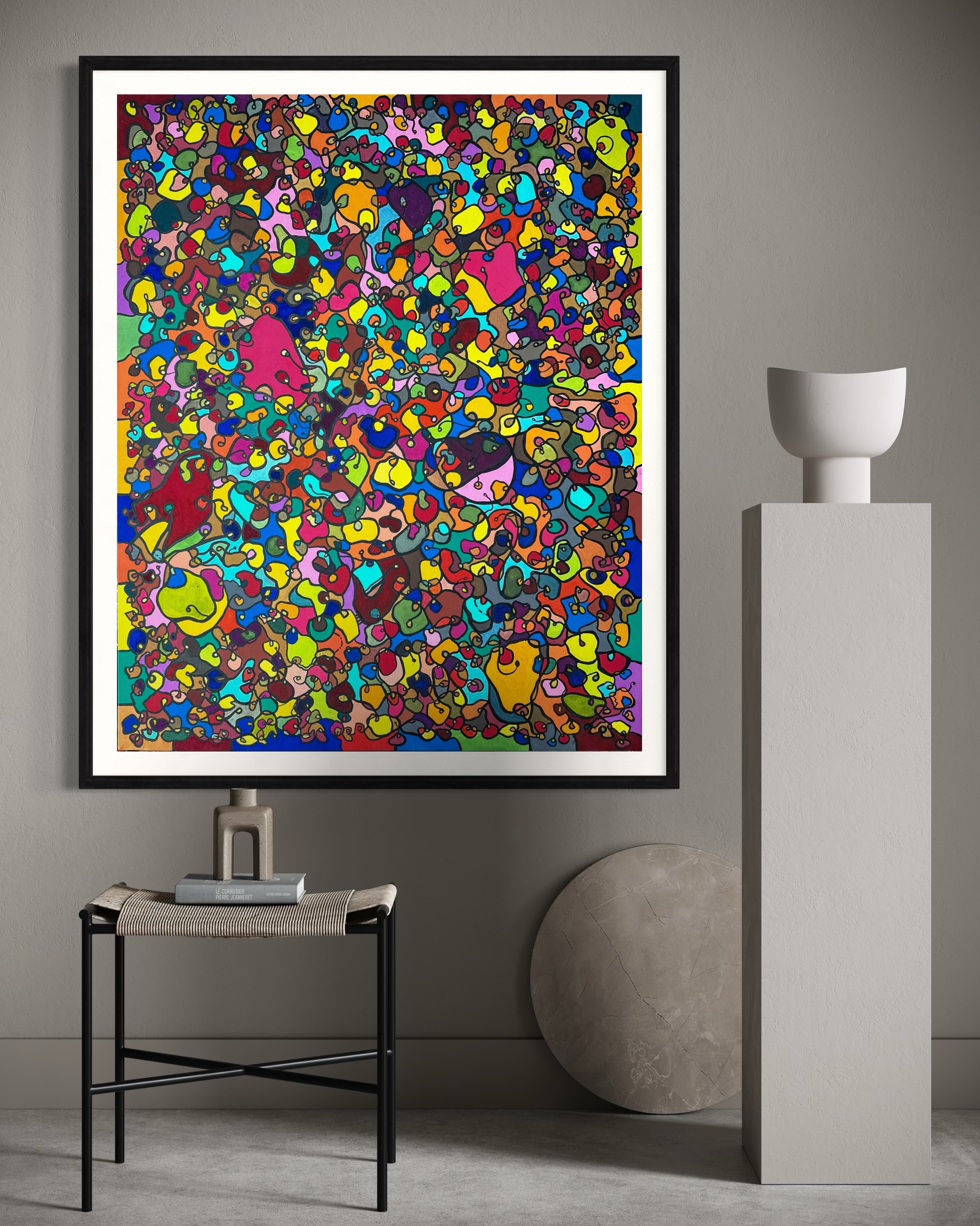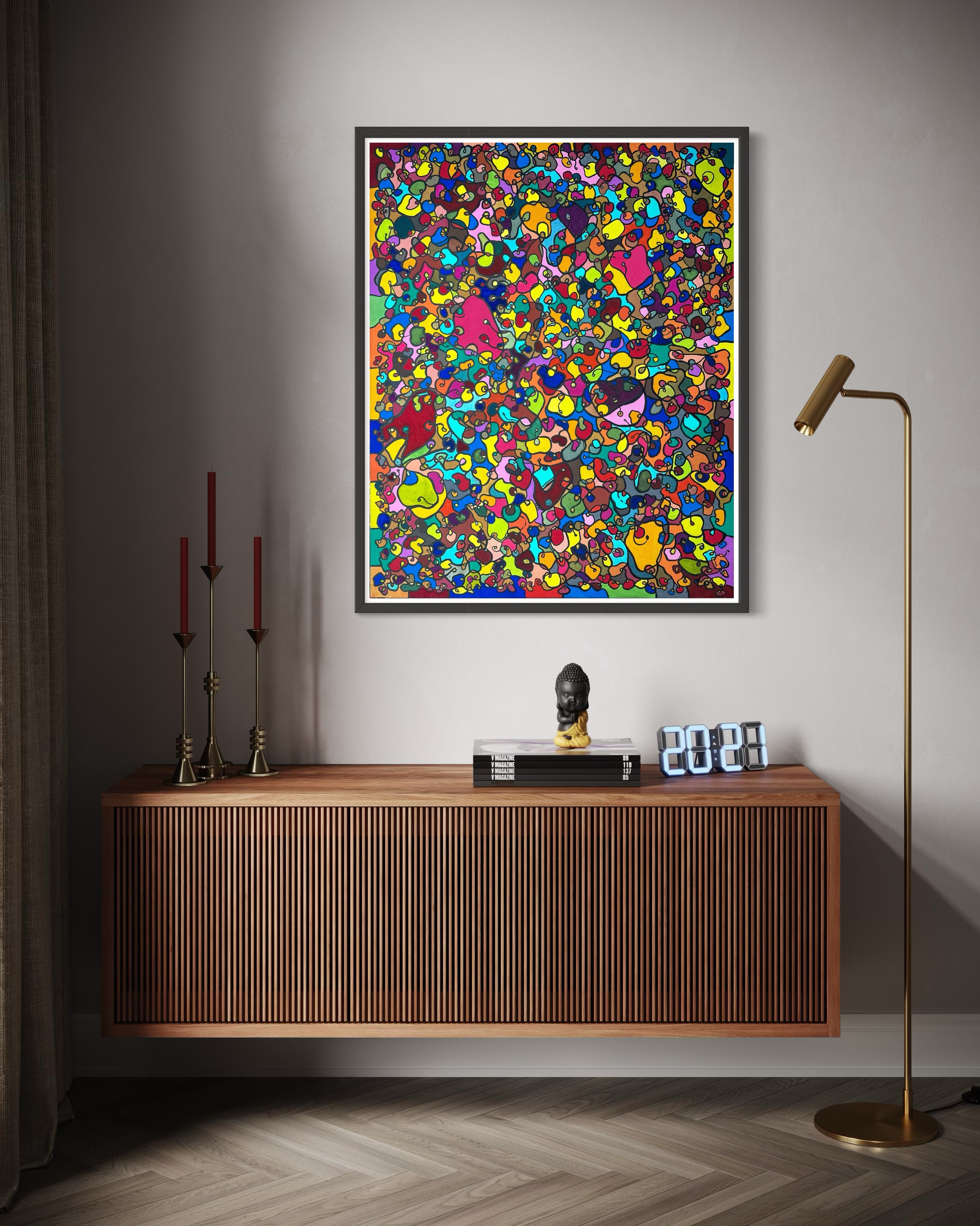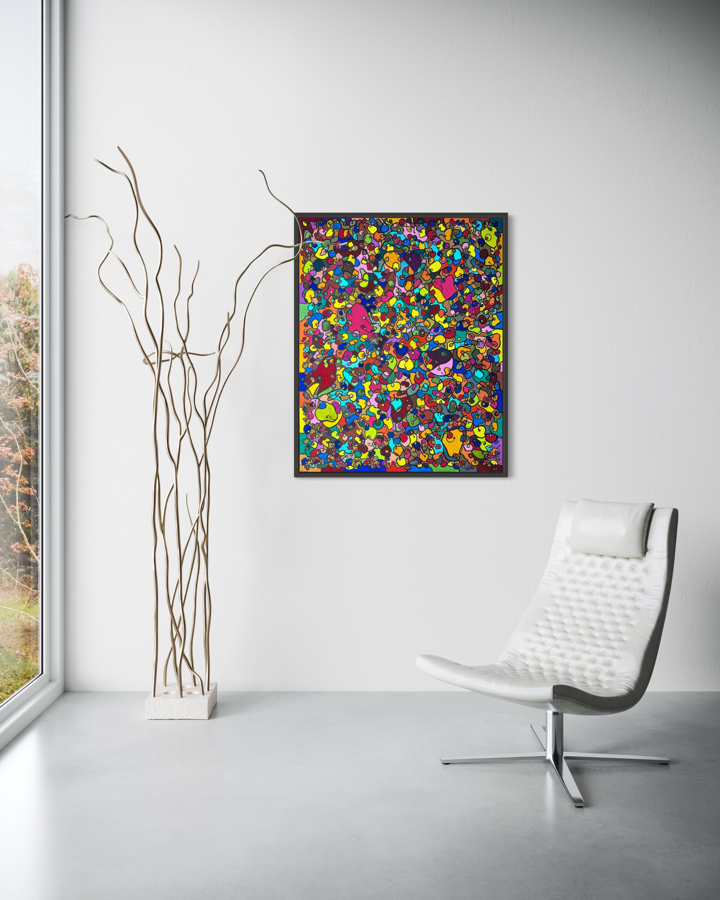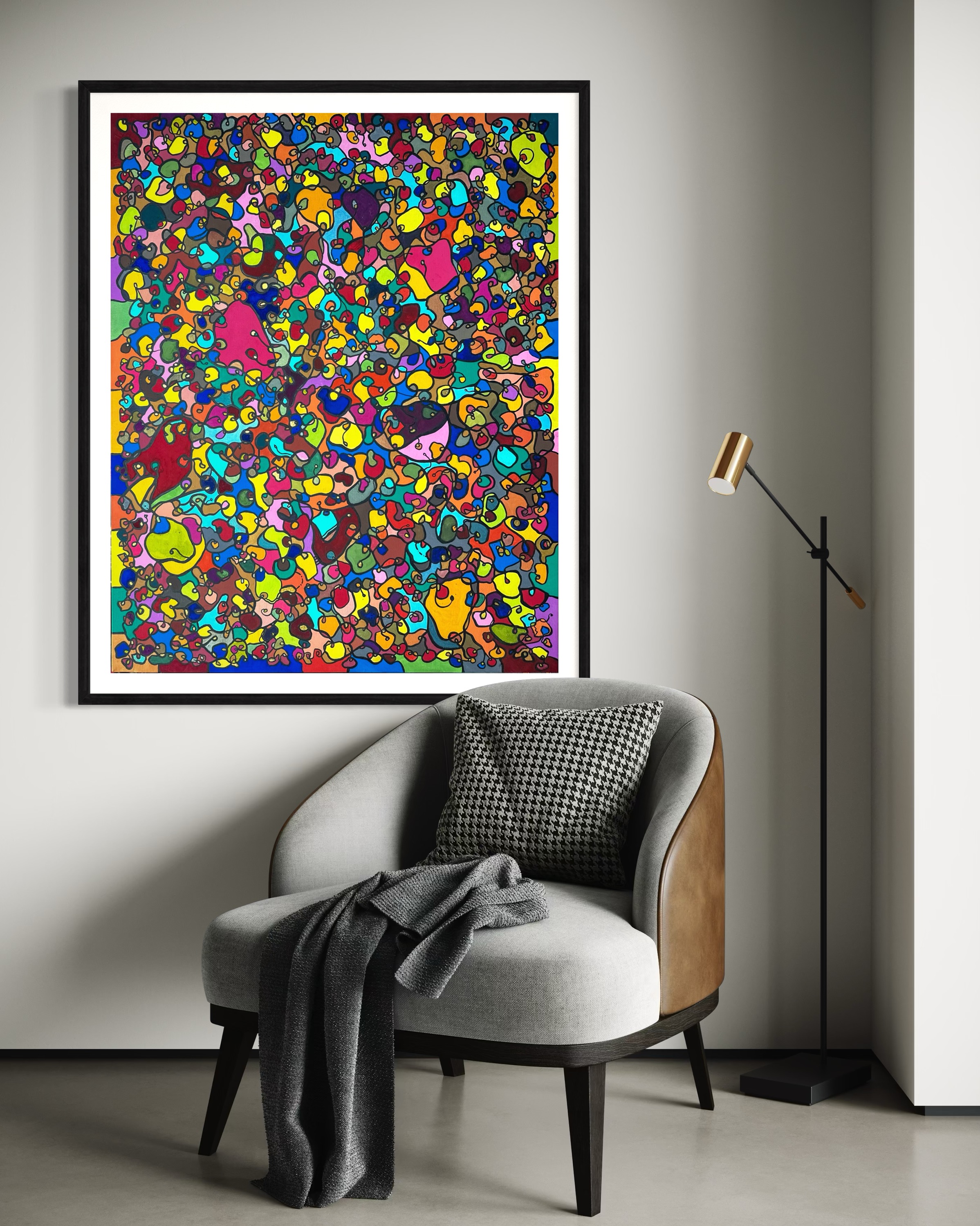 In creating this piece, I've poured vibrant emotions into an organic tapestry, embracing oriental art influences. My intent was to celebrate diversity through a mosaic of colors and shapes, each element distinct yet harmonious. This artwork embodies unity and connectivity, infusing any space with a dynamic, uplifting spirit. It's a visual feast that invites viewers to appreciate the beauty in variety and the strength in inclusiveness.