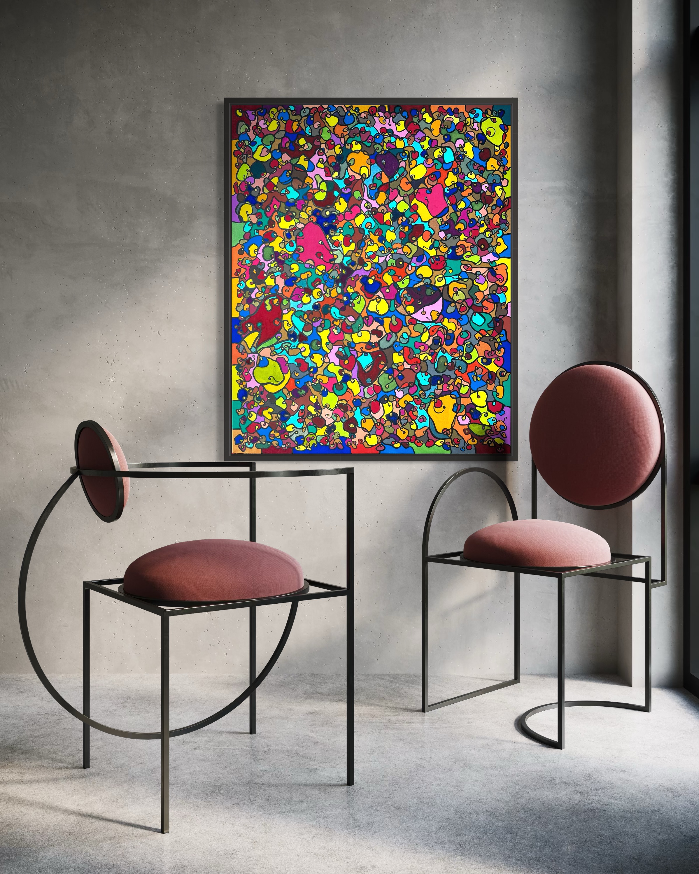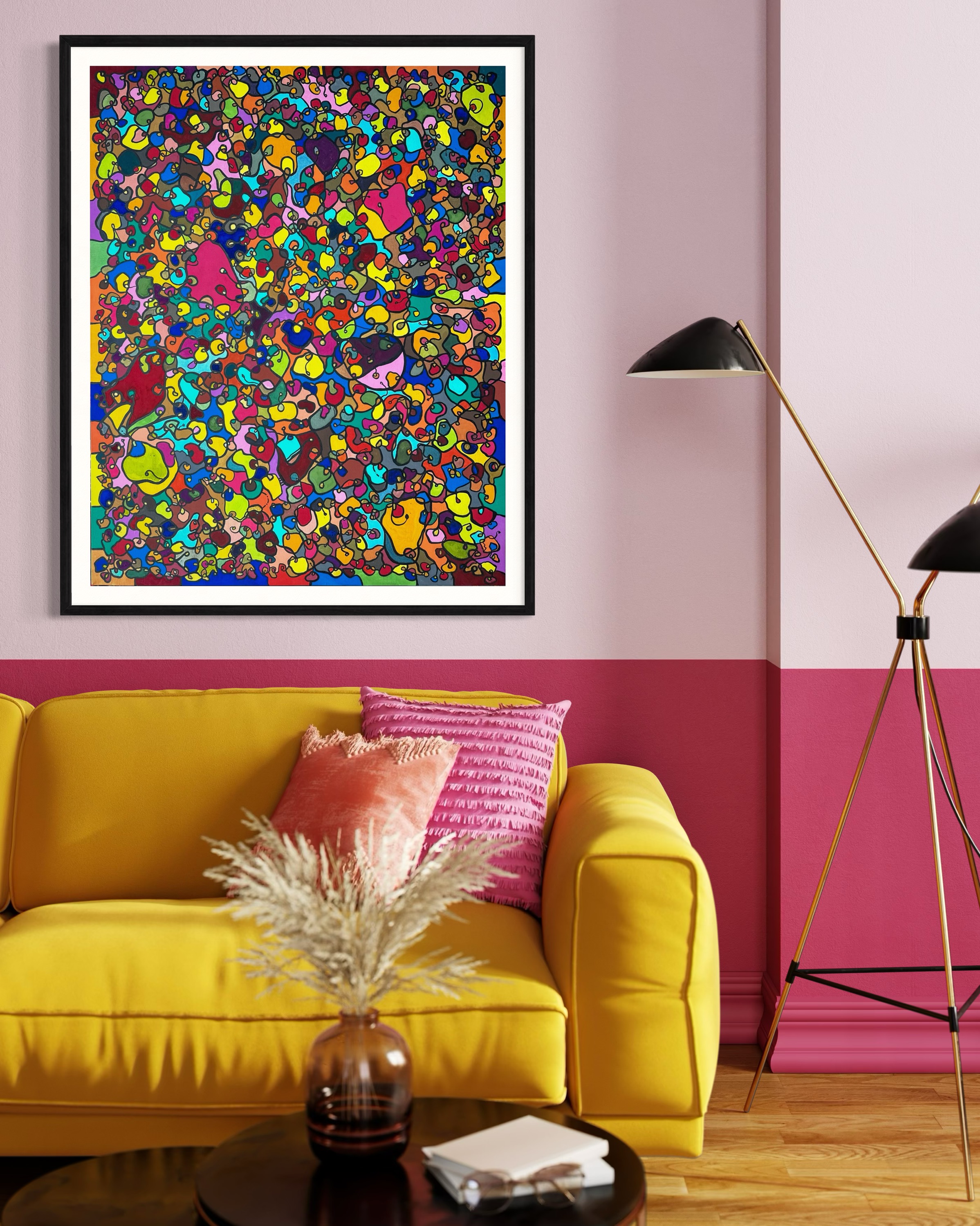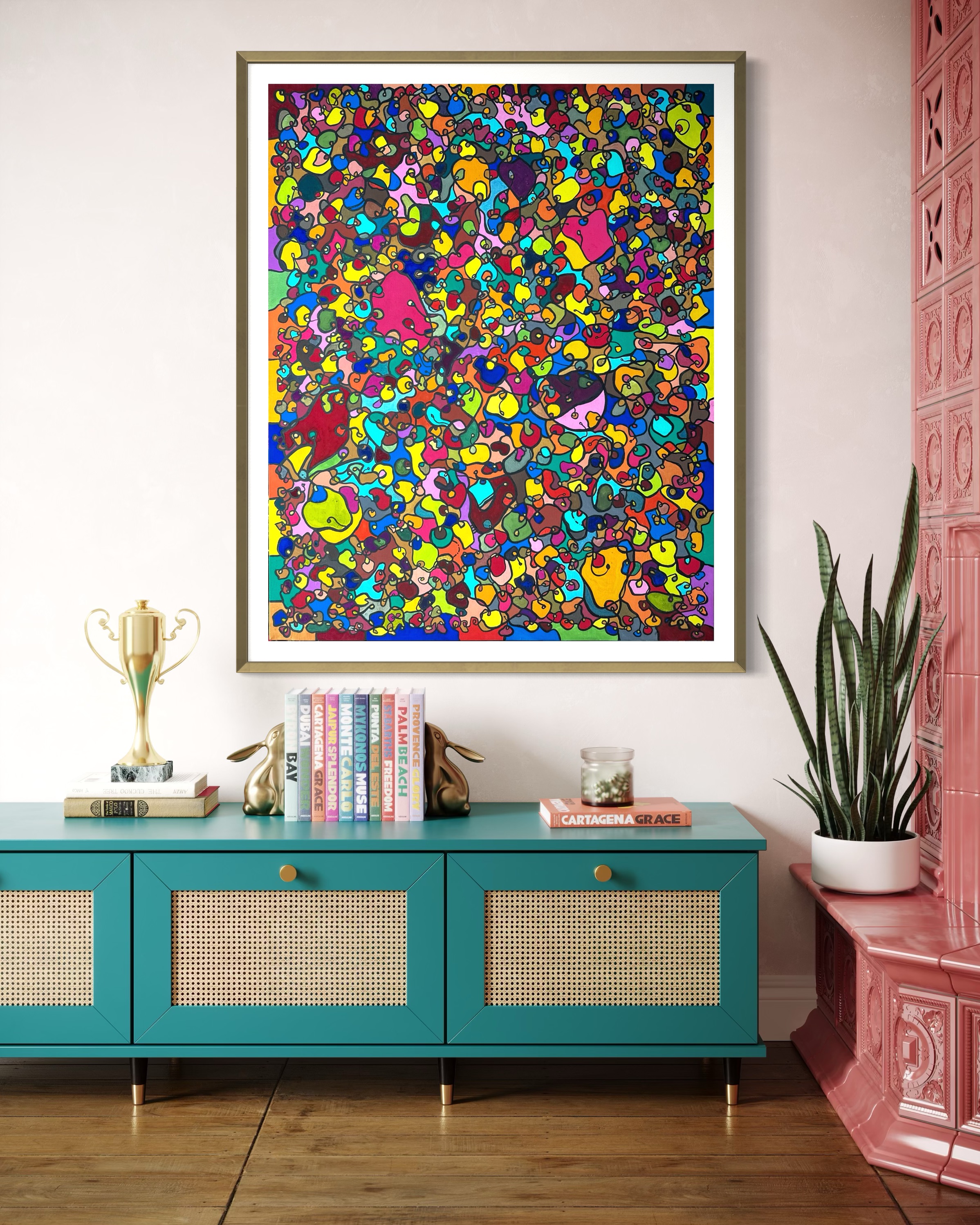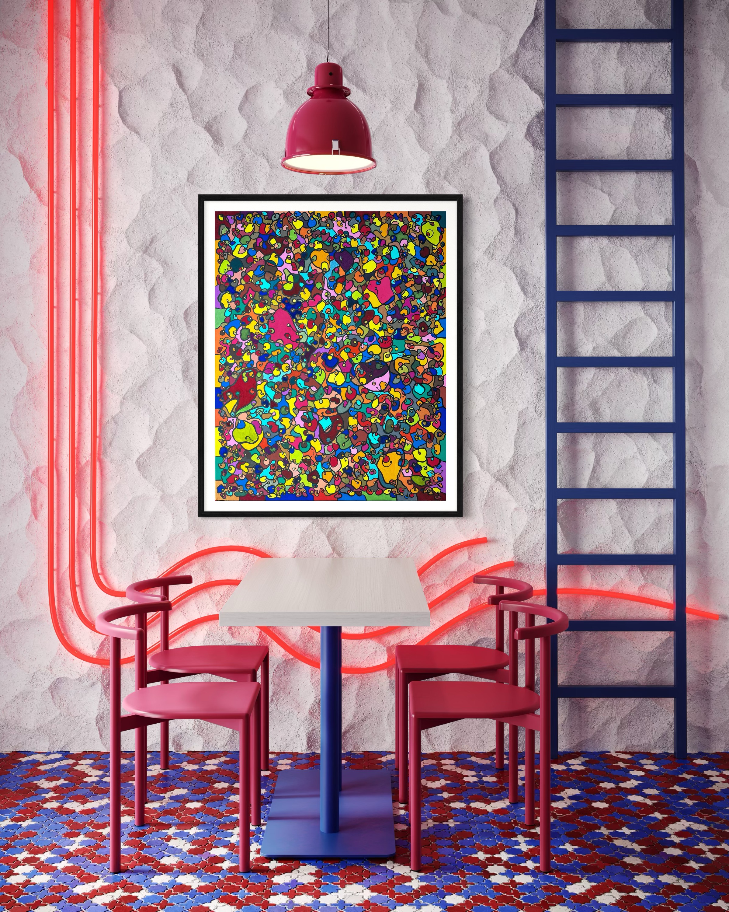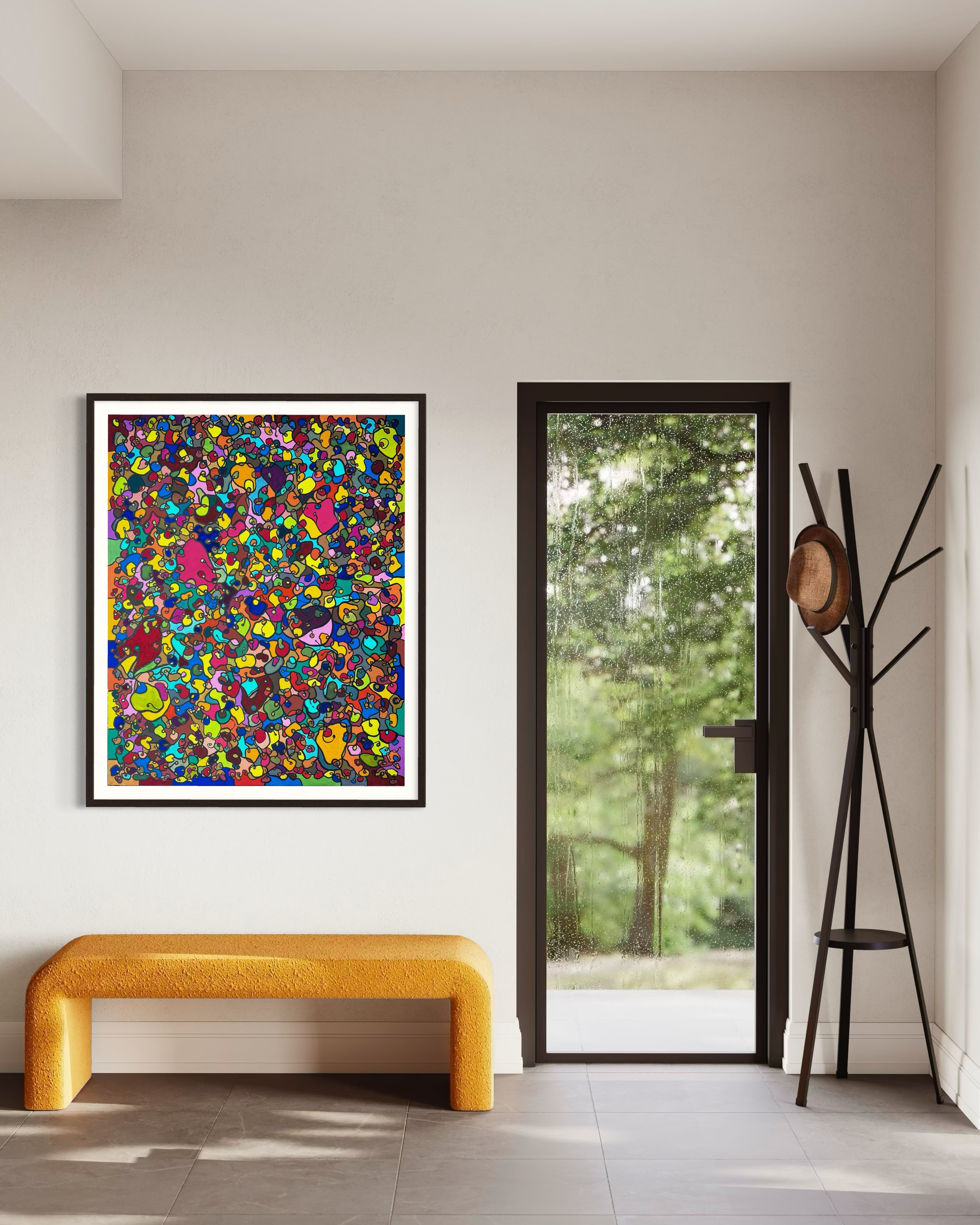 In creating this piece, I've poured vibrant emotions into an organic tapestry, embracing oriental art influences. My intent was to celebrate diversity through a mosaic of colors and shapes, each element distinct yet harmonious. This artwork embodies unity and connectivity, infusing any space with a dynamic, uplifting spirit. It's a visual feast that invites viewers to appreciate the beauty in variety and the strength in inclusiveness.