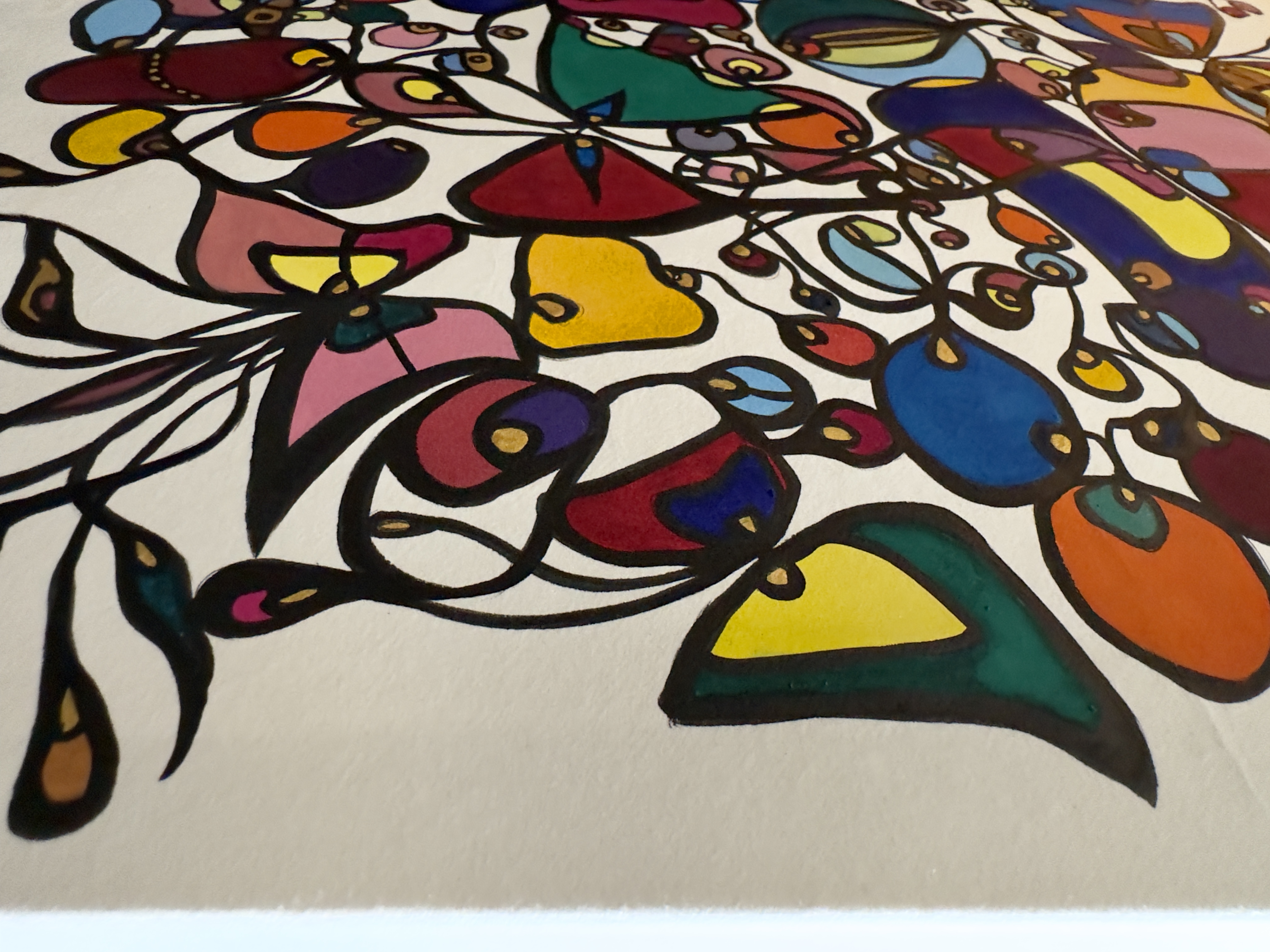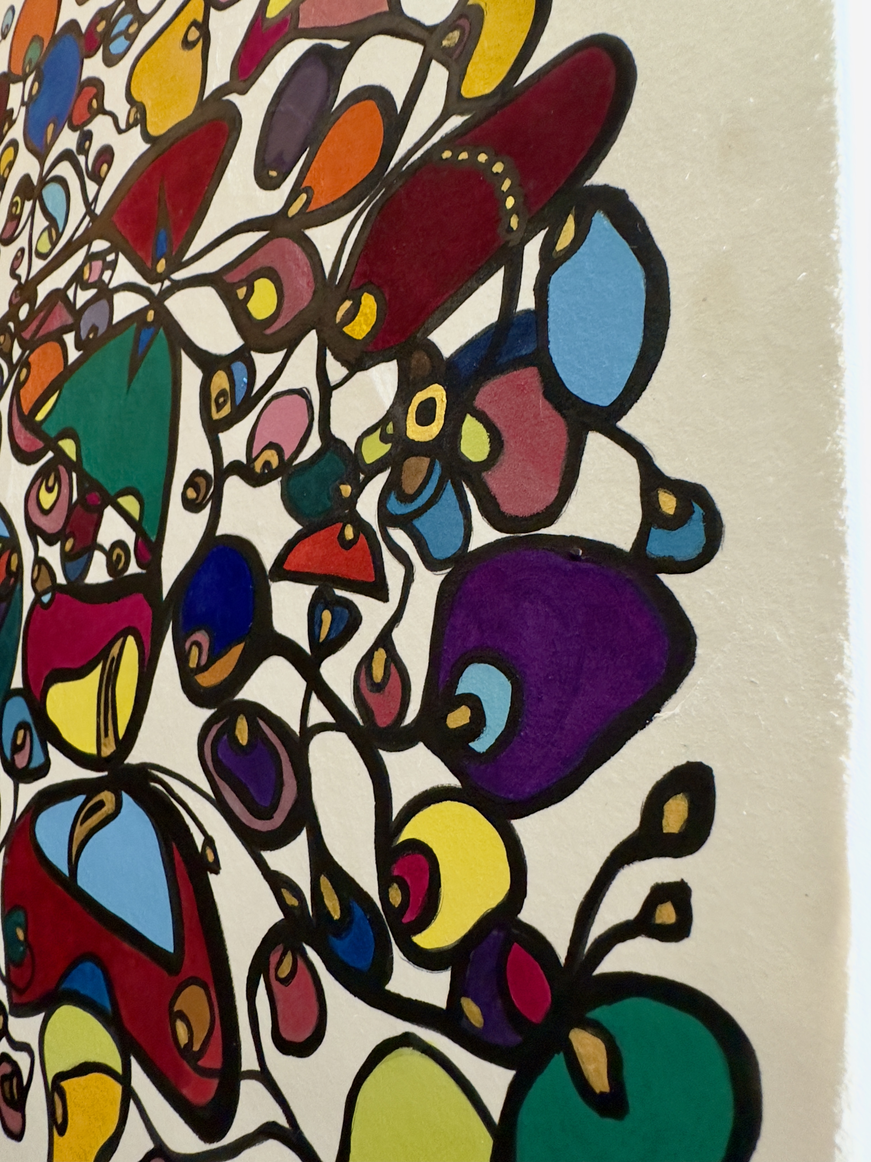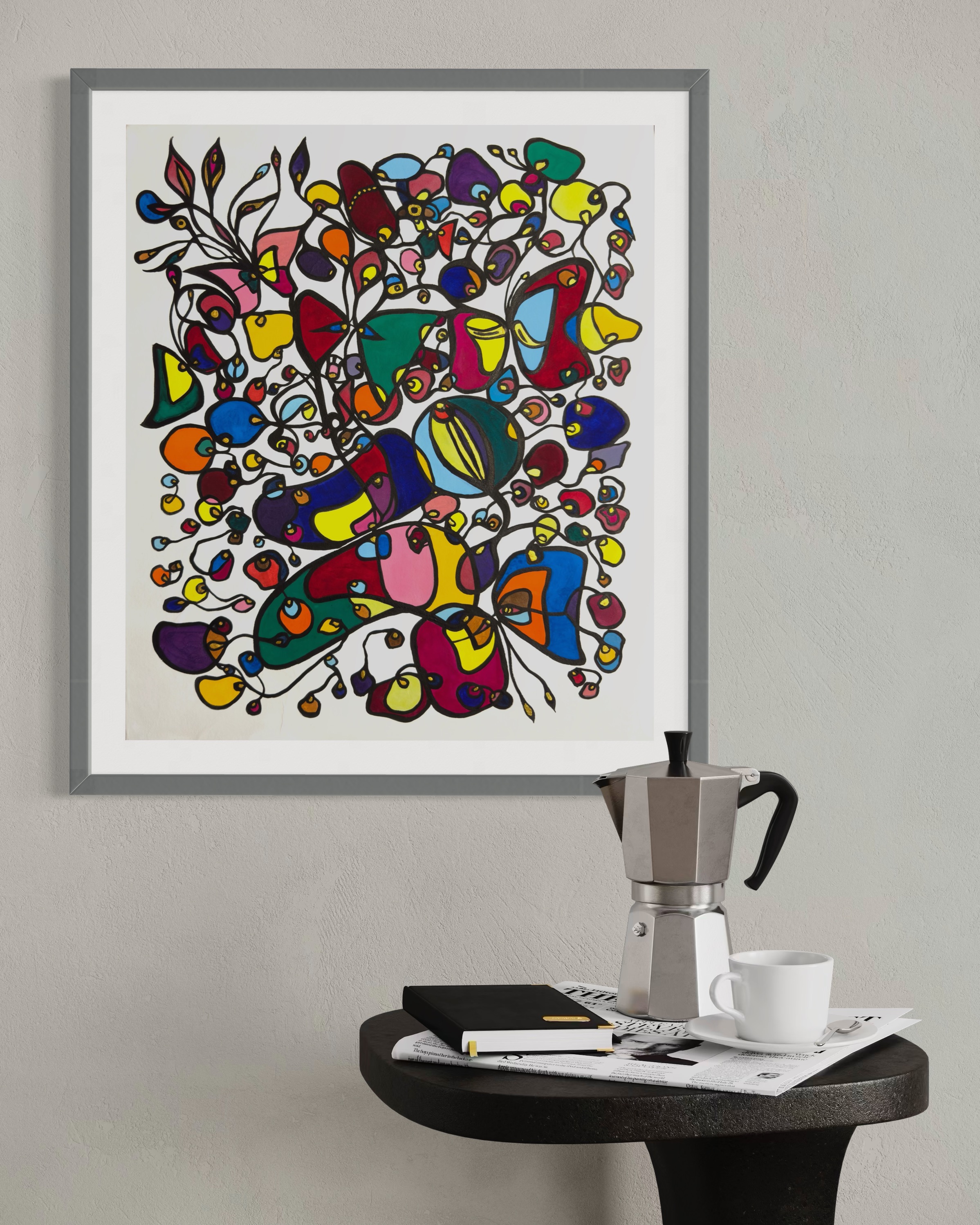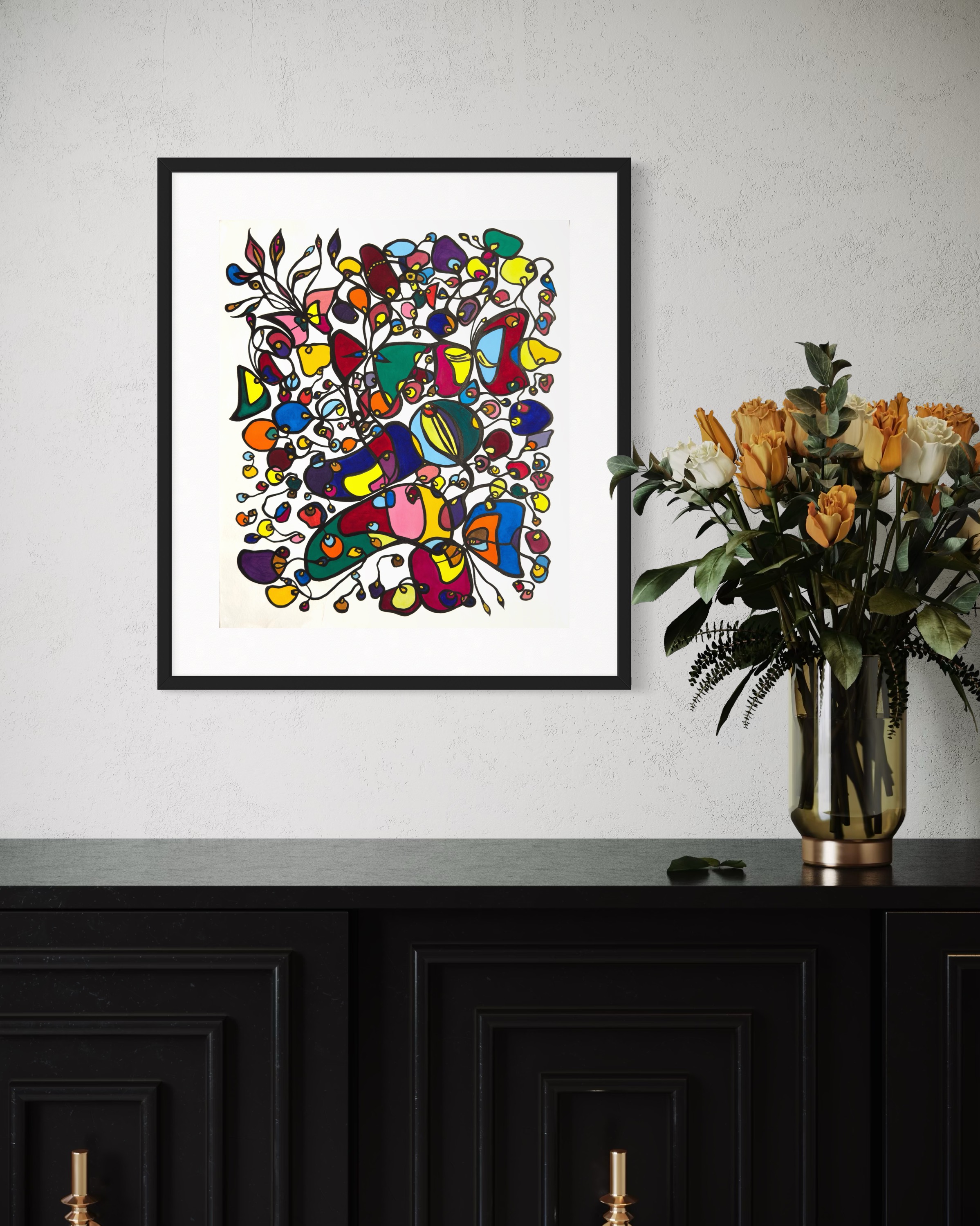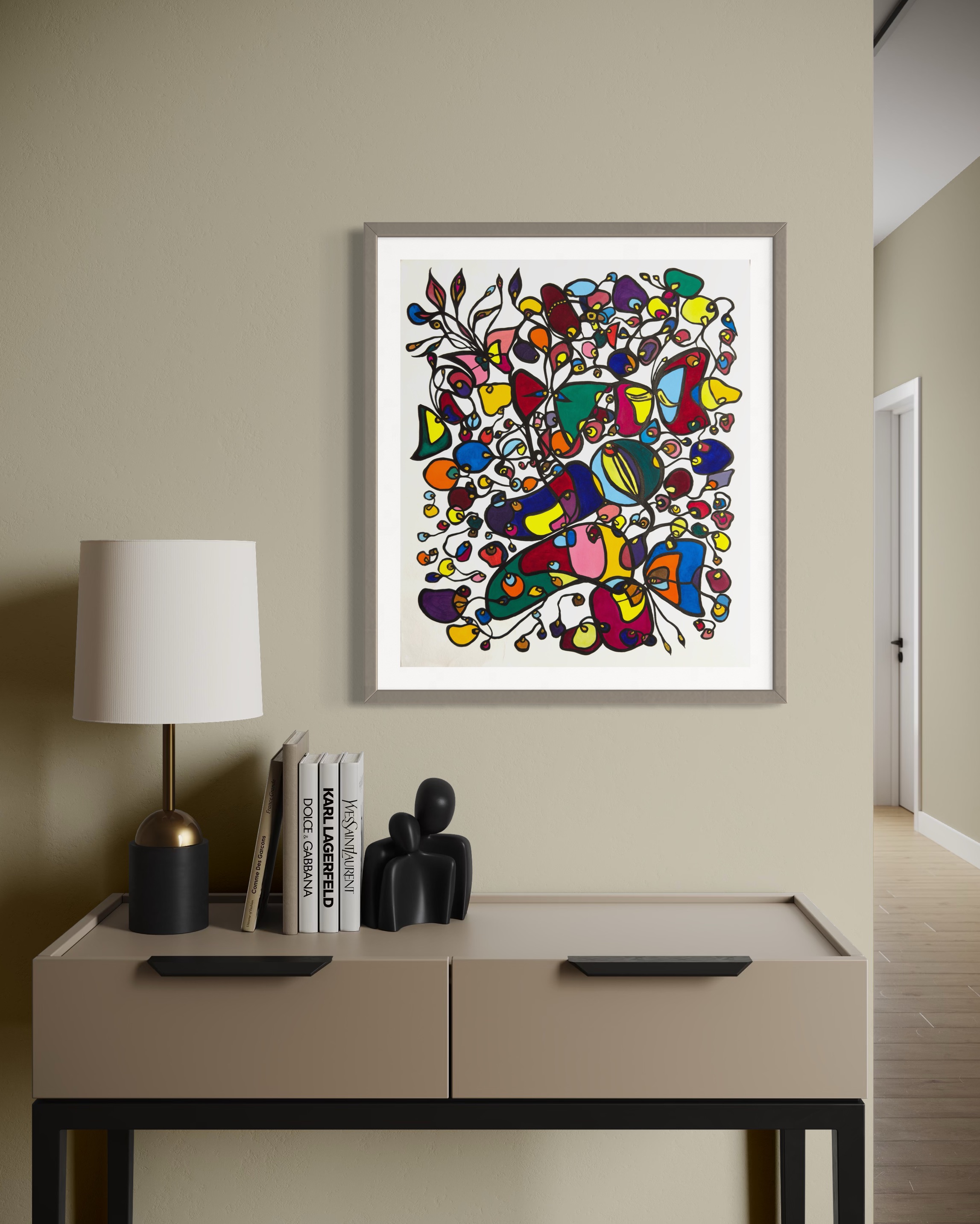 While formally abstract, this work is not empty of meaning. Within the gestures and colors, one can intuitively perceive images—leaves, petals, butterflies, fruit, eyes. This suggests that the visual language is tapping into deep reservoirs of memory, instinct, and emotion.