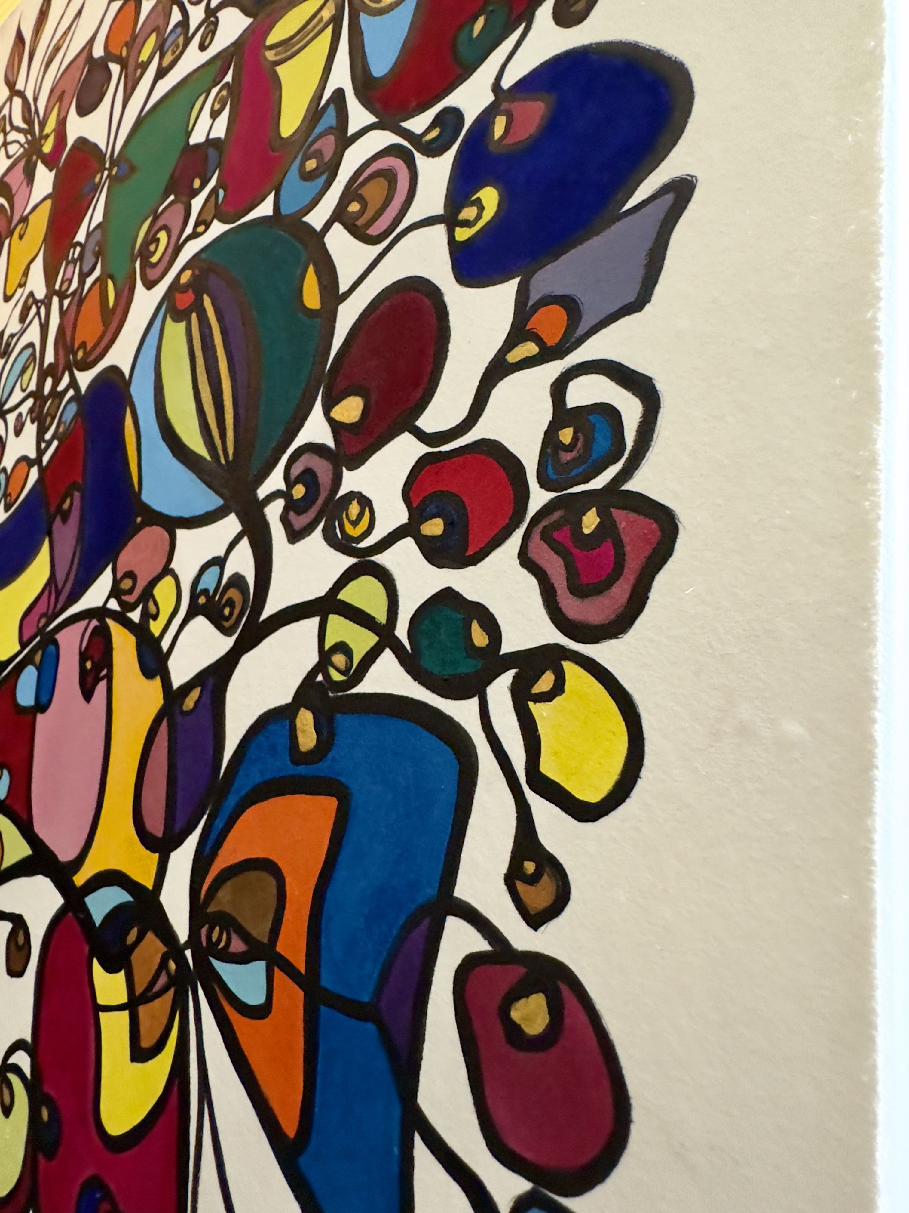 The subtle tension between absorption and resistance in the medium mirrors the emotional complexity of the piece. Each color has soaked into the paper’s memory, making the composition feel as if it were grown, not drawn.