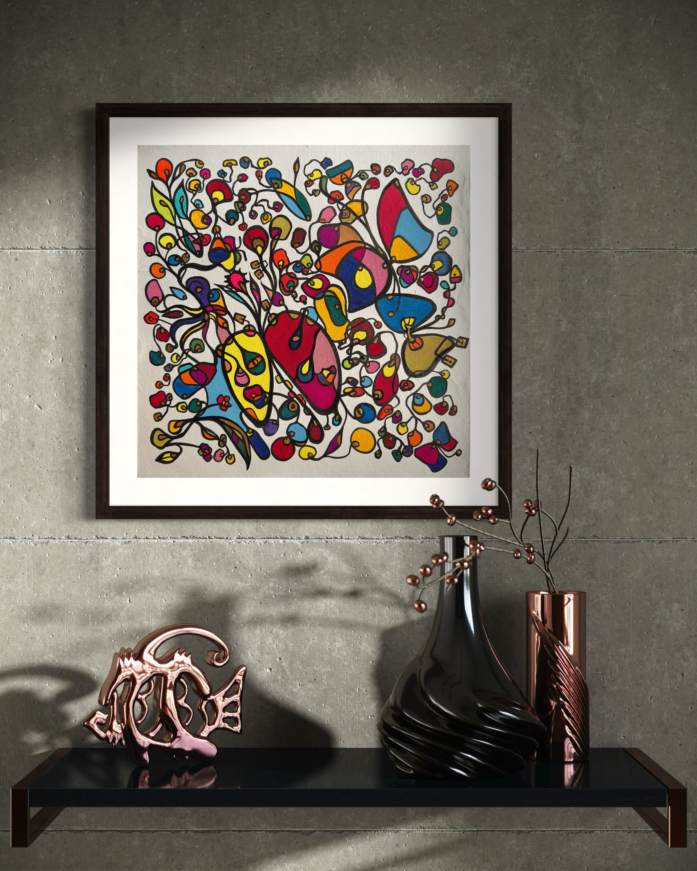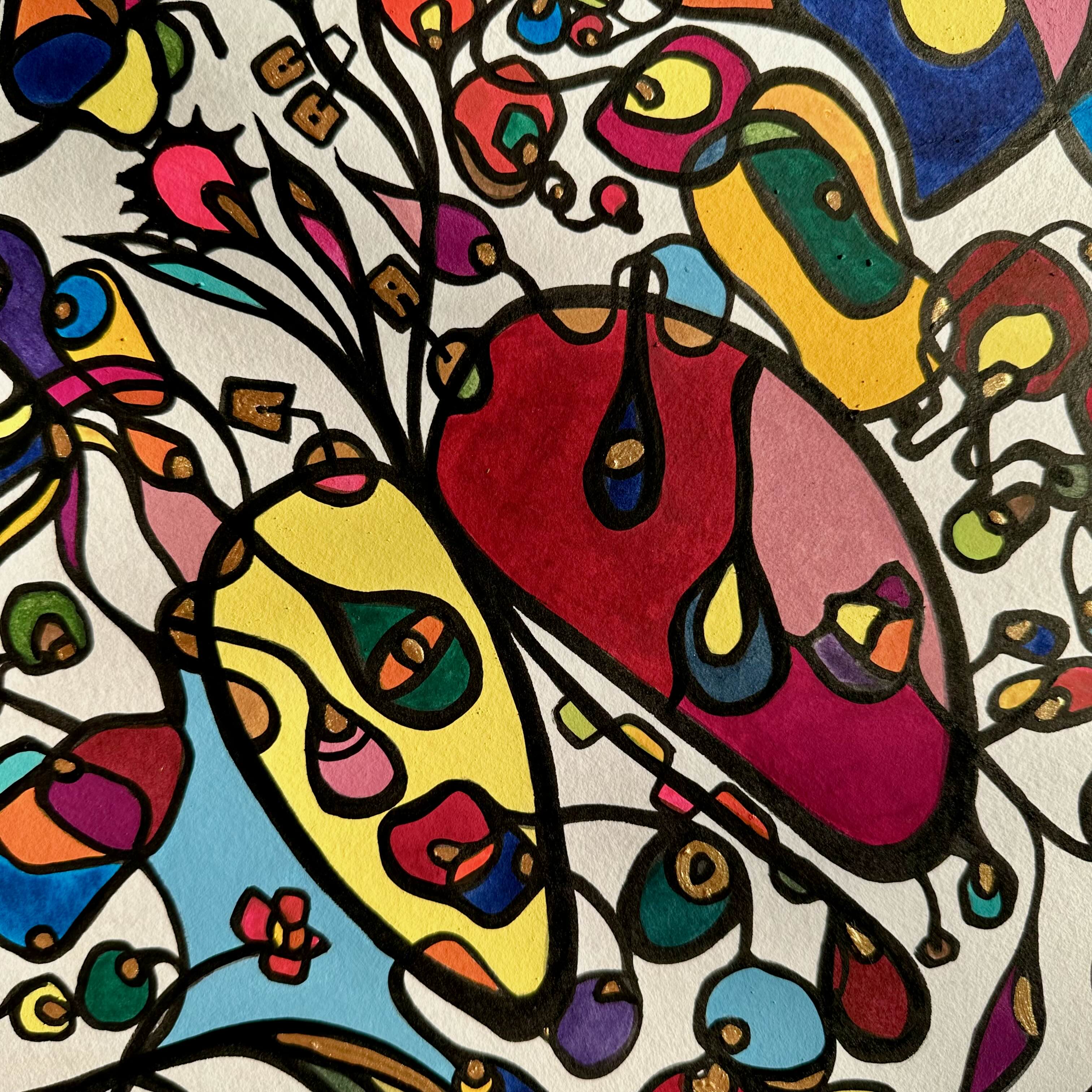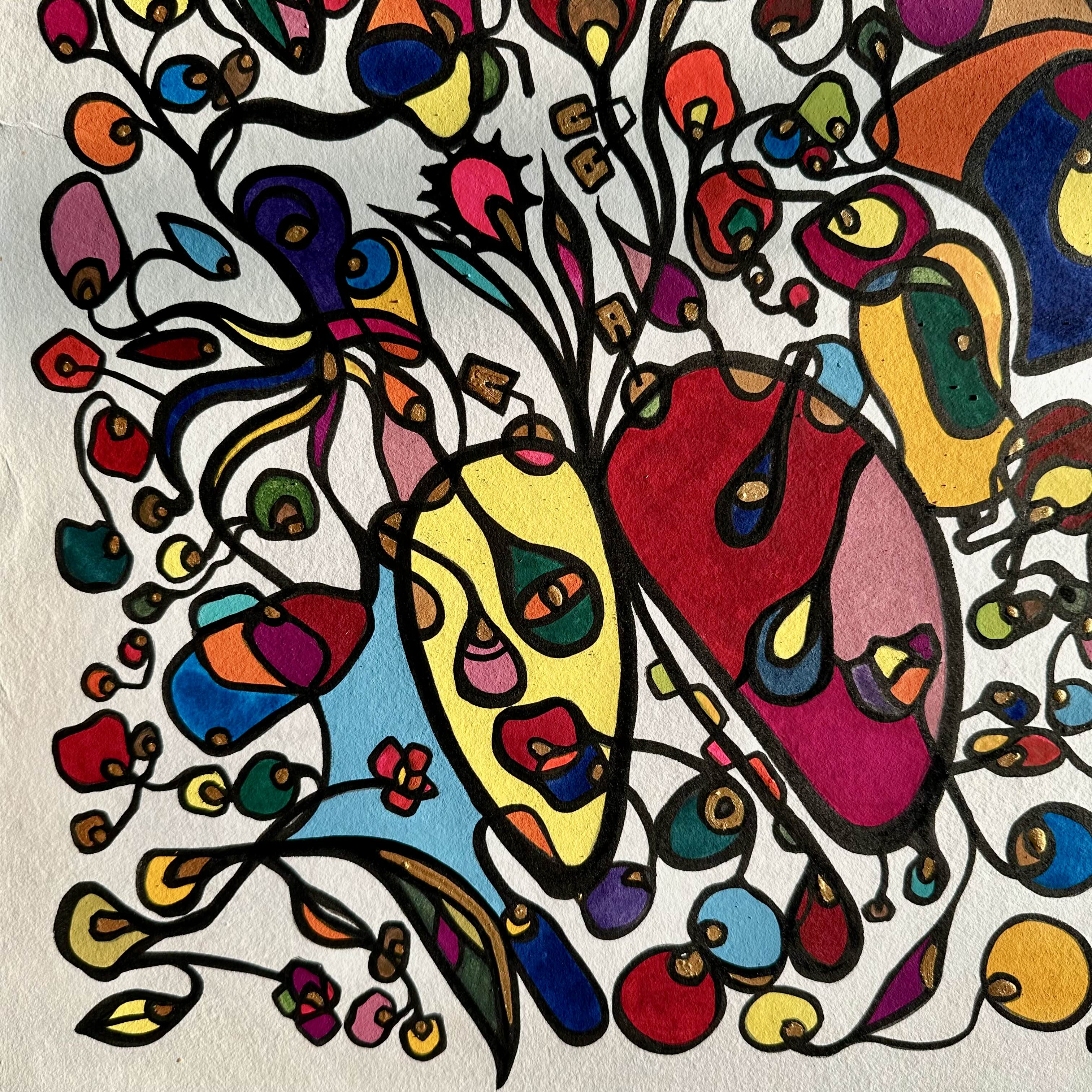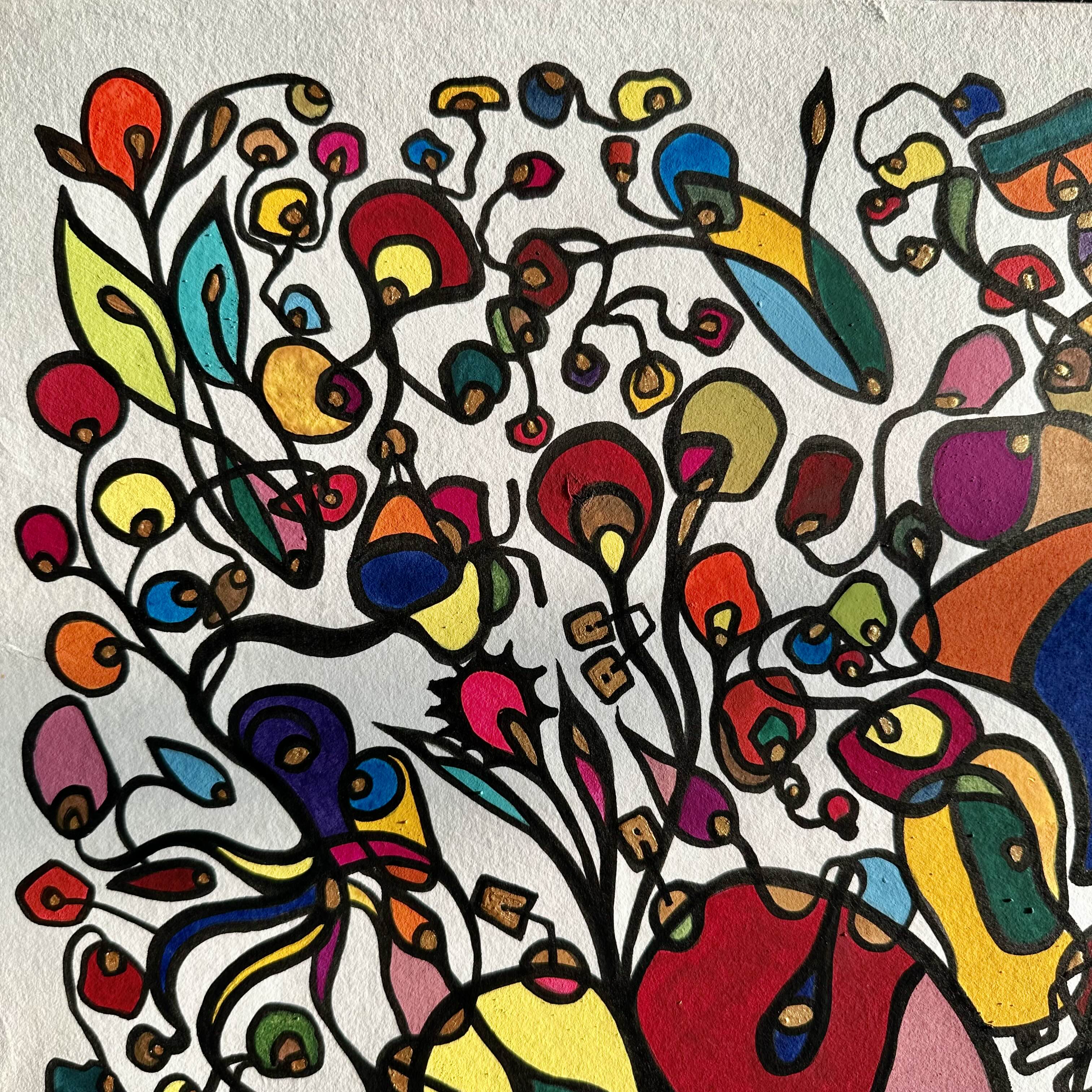 This piece bursts with vibrant energy and whimsical emotion, flowing through every organic curve and bold color. I wanted to capture the dance of life's chaotic beauty, blending expressionism with vintage symbolism to evoke joy and introspection. Its lively movement invites your space to pulse with creativity and warmth, turning any room into a sanctuary of inspired wonder.