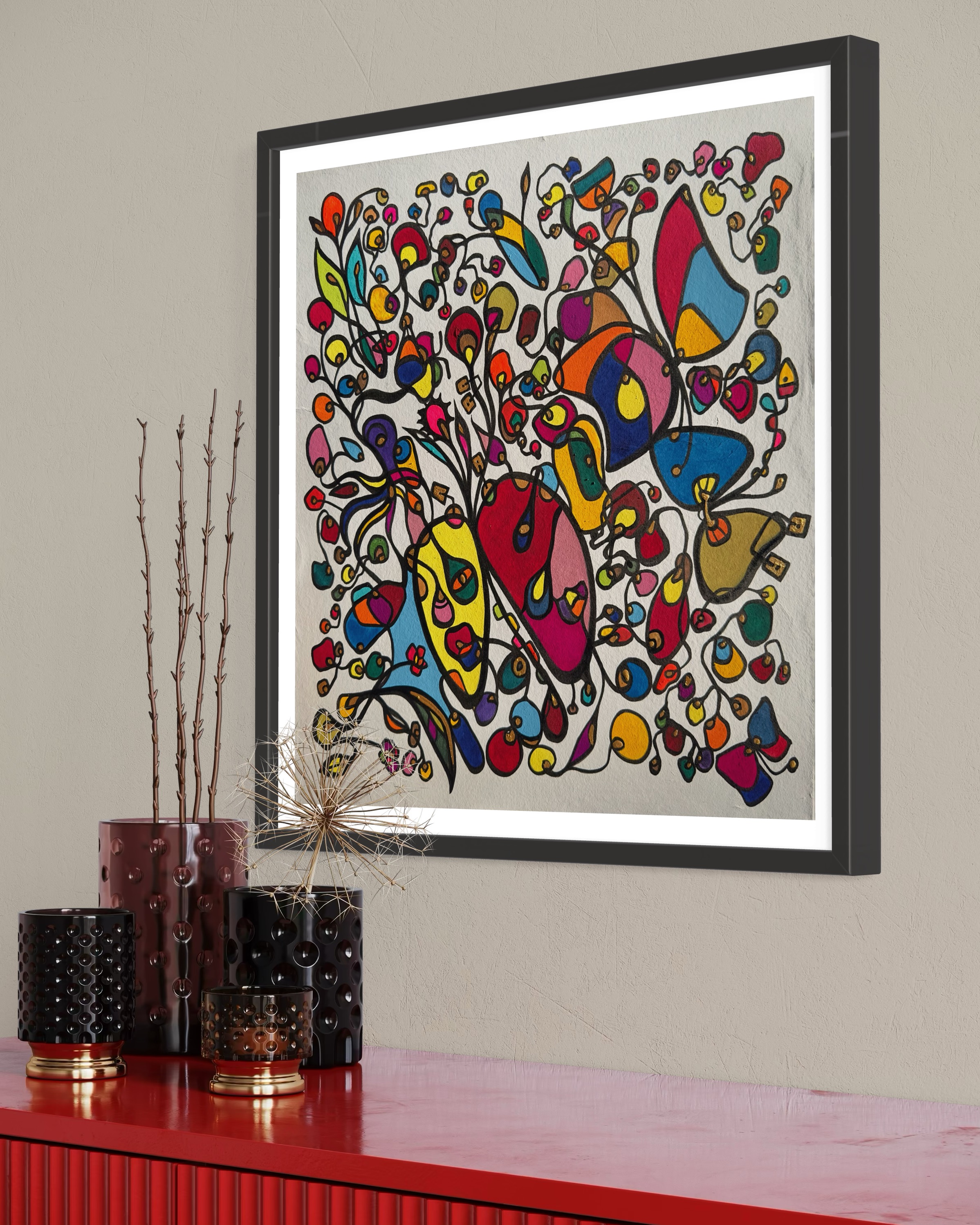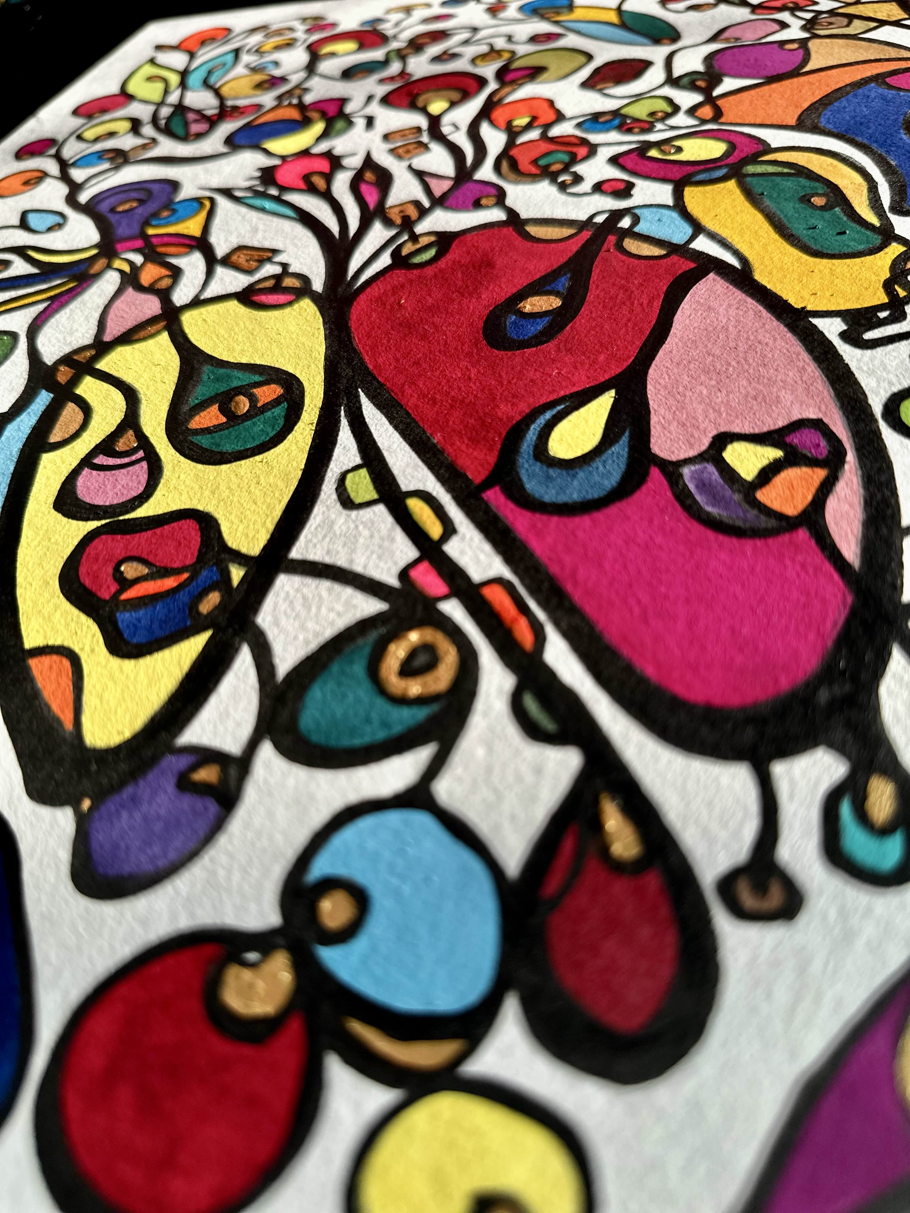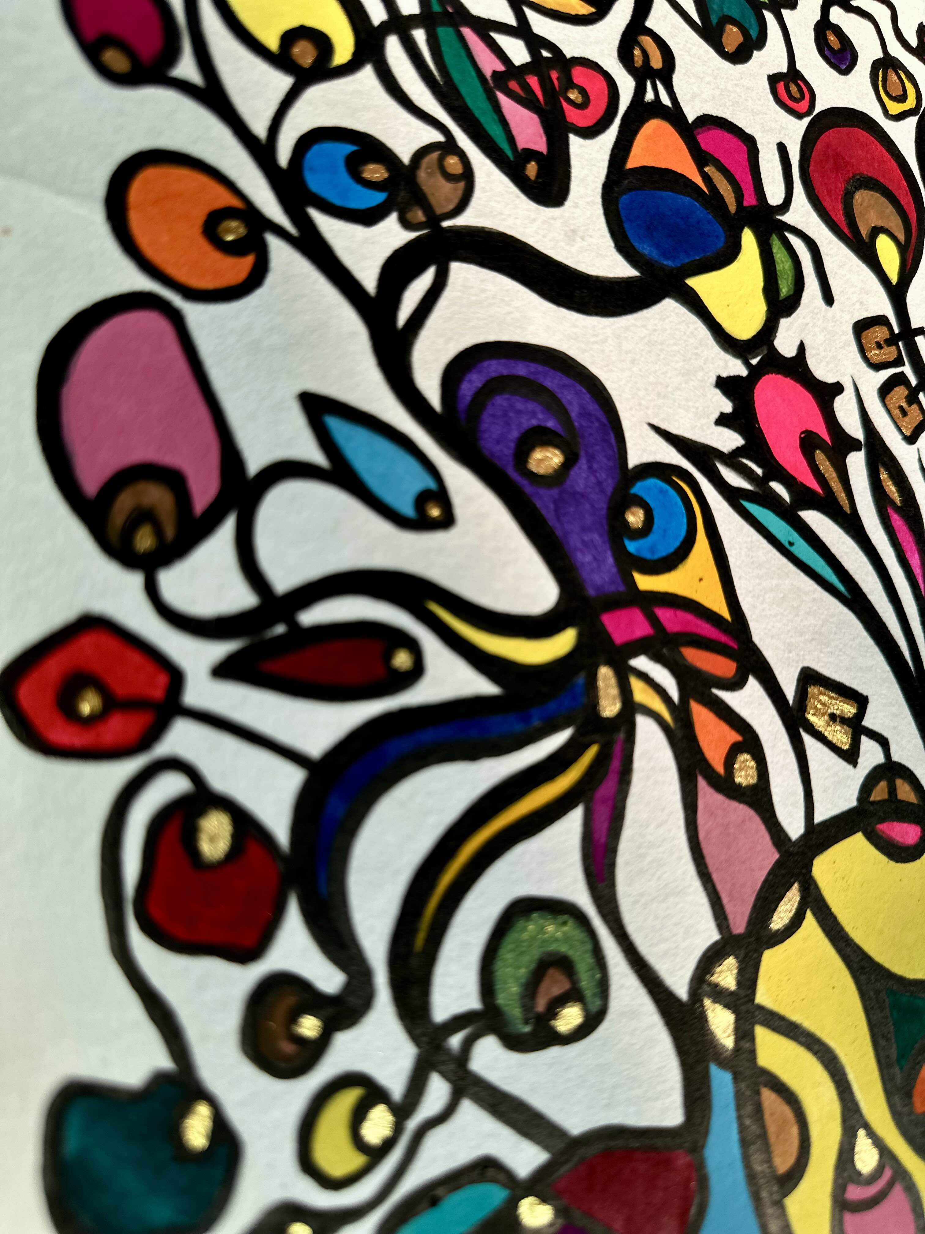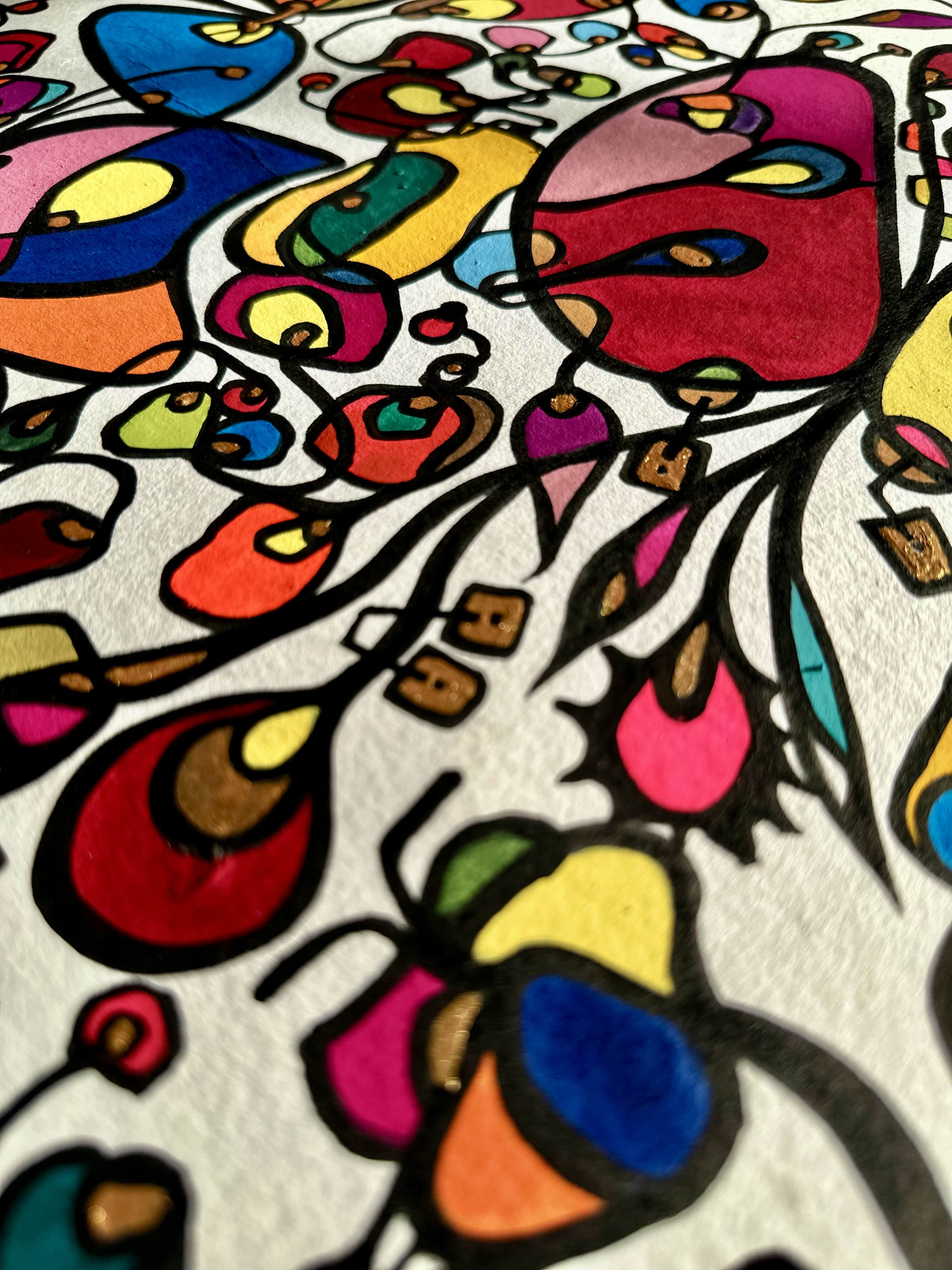 This piece bursts with vibrant energy and whimsical emotion, flowing through every organic curve and bold color. I wanted to capture the dance of life's chaotic beauty, blending expressionism with vintage symbolism to evoke joy and introspection. Its lively movement invites your space to pulse with creativity and warmth, turning any room into a sanctuary of inspired wonder.