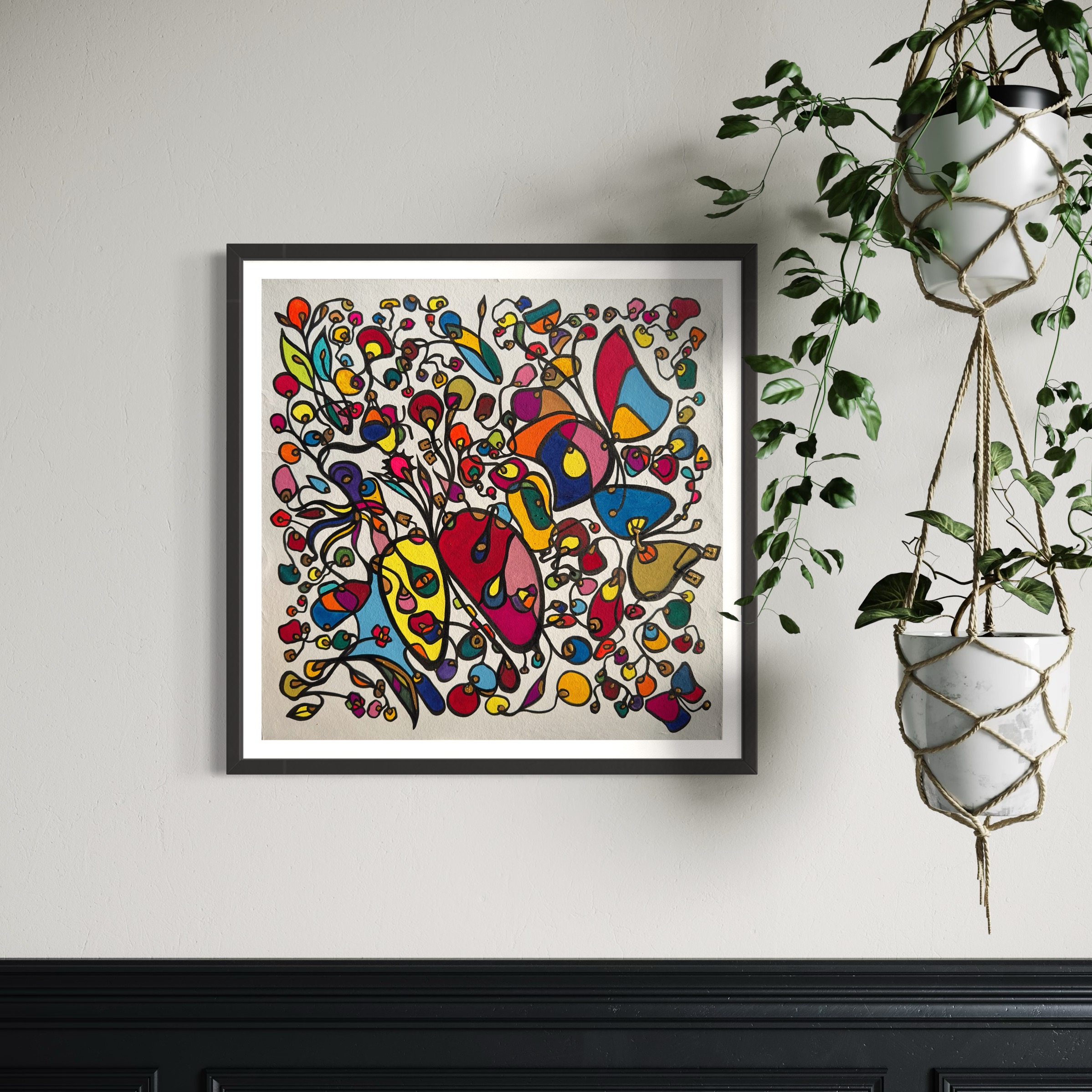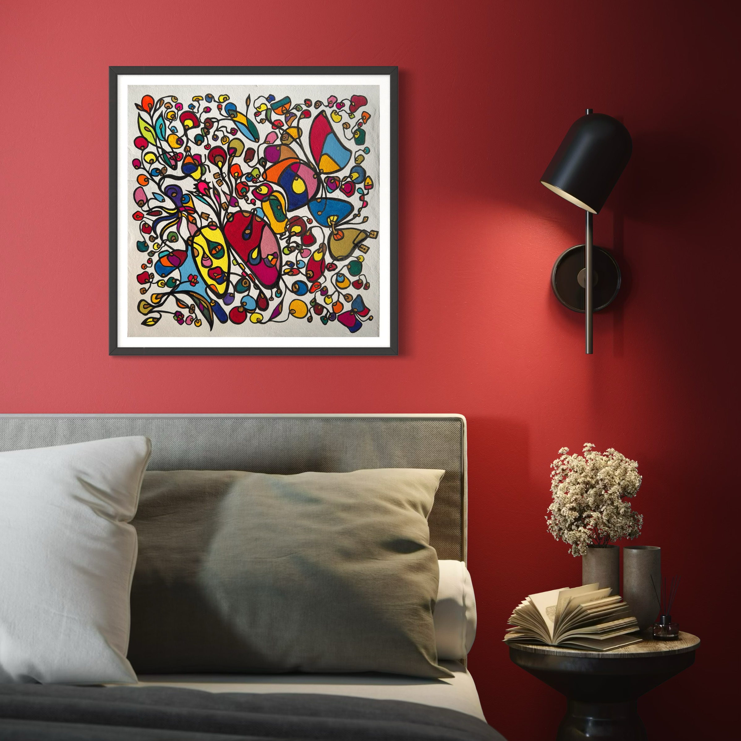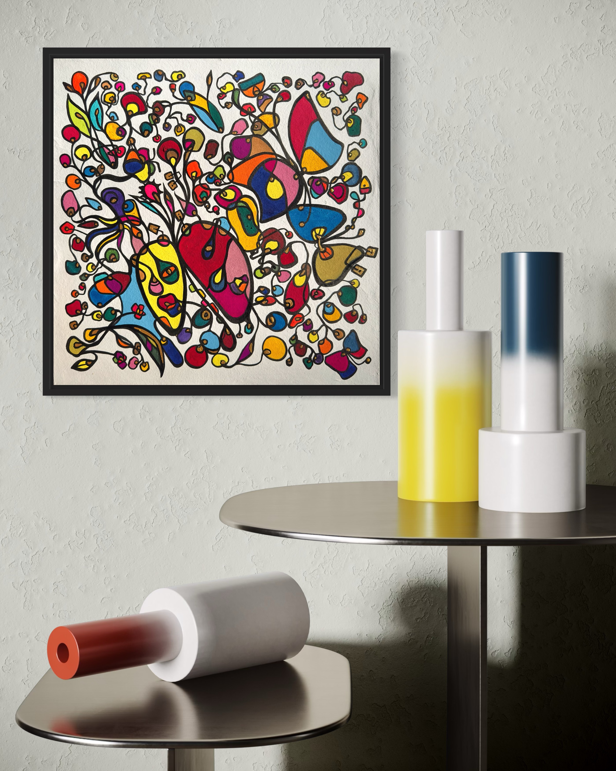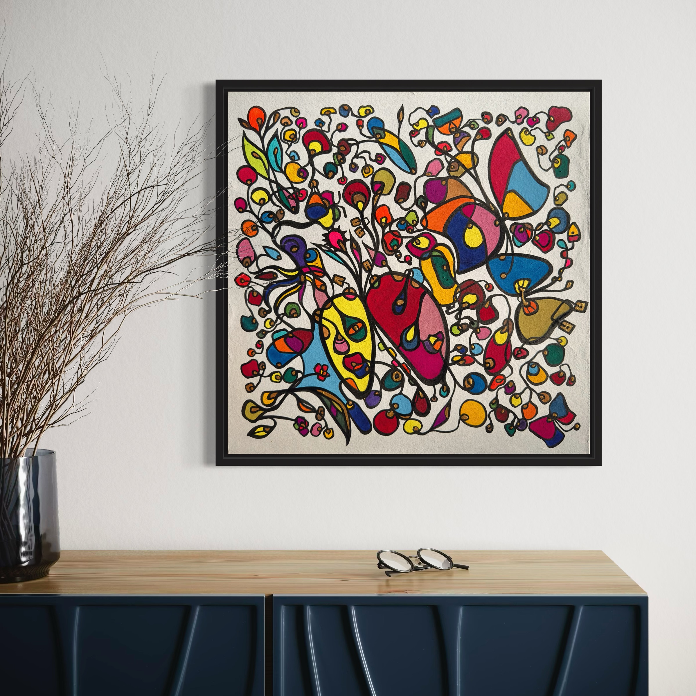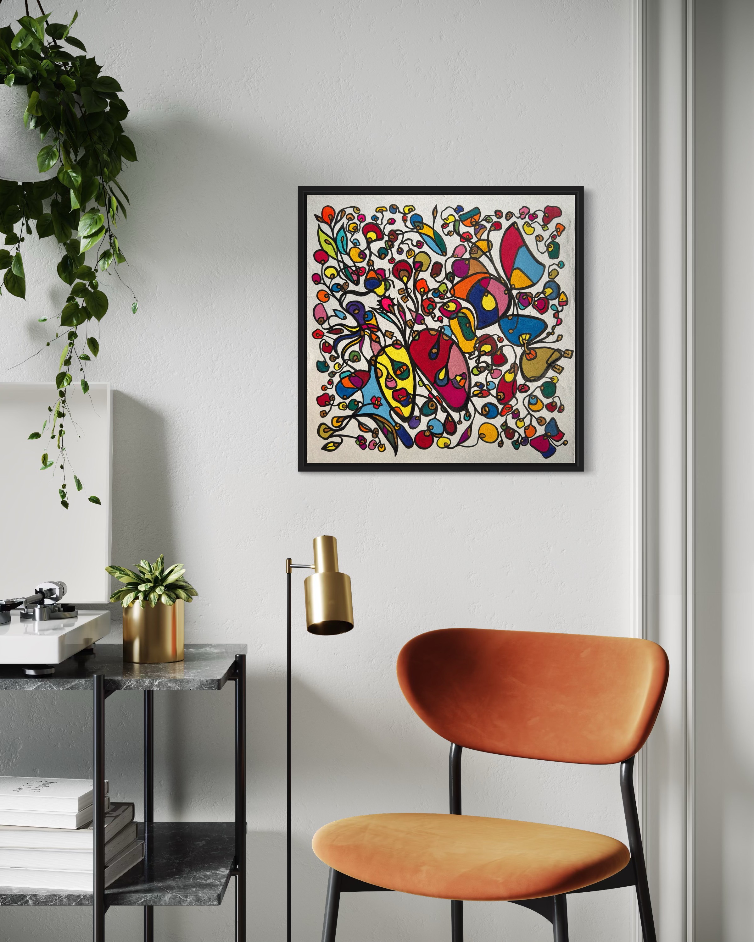This piece bursts with vibrant energy and whimsical emotion, flowing through every organic curve and bold color. I wanted to capture the dance of life's chaotic beauty, blending expressionism with vintage symbolism to evoke joy and introspection. Its lively movement invites your space to pulse with creativity and warmth, turning any room into a sanctuary of inspired wonder.