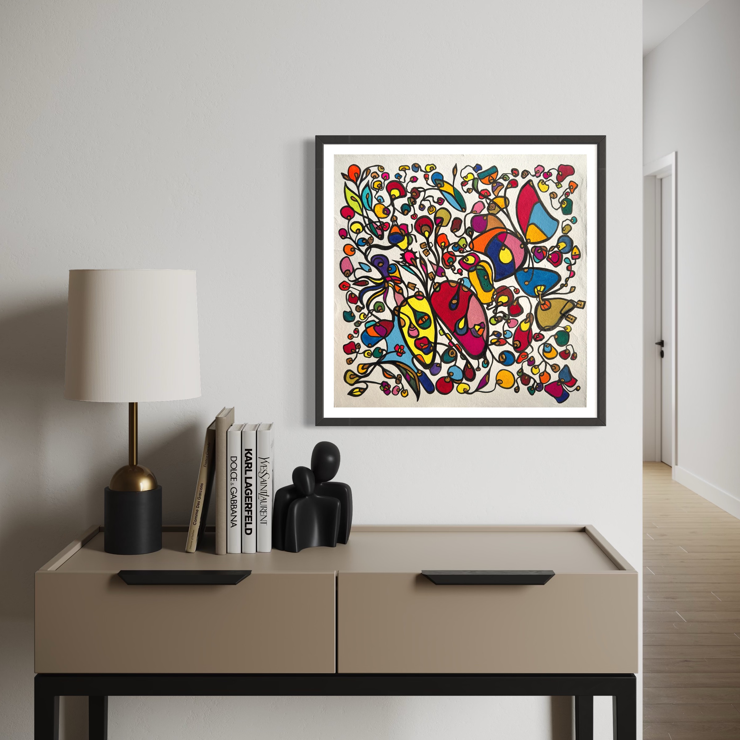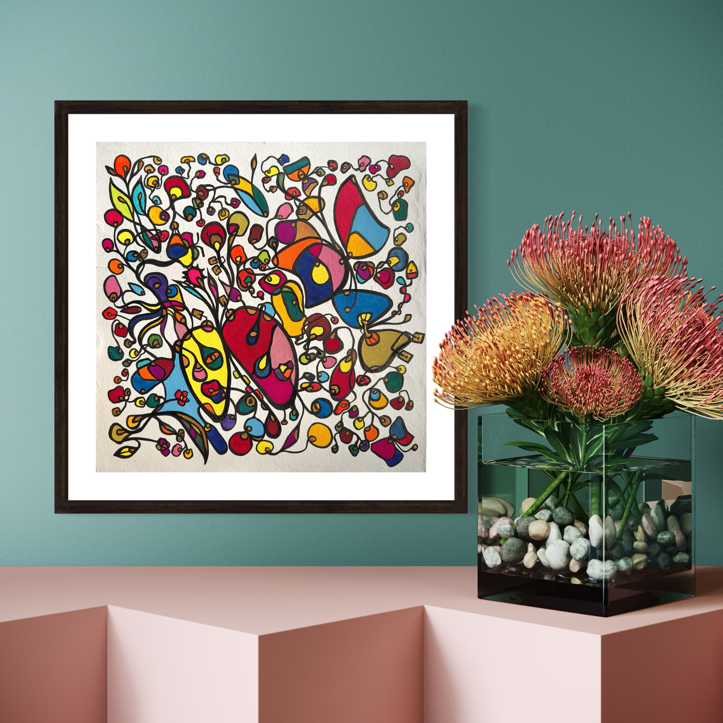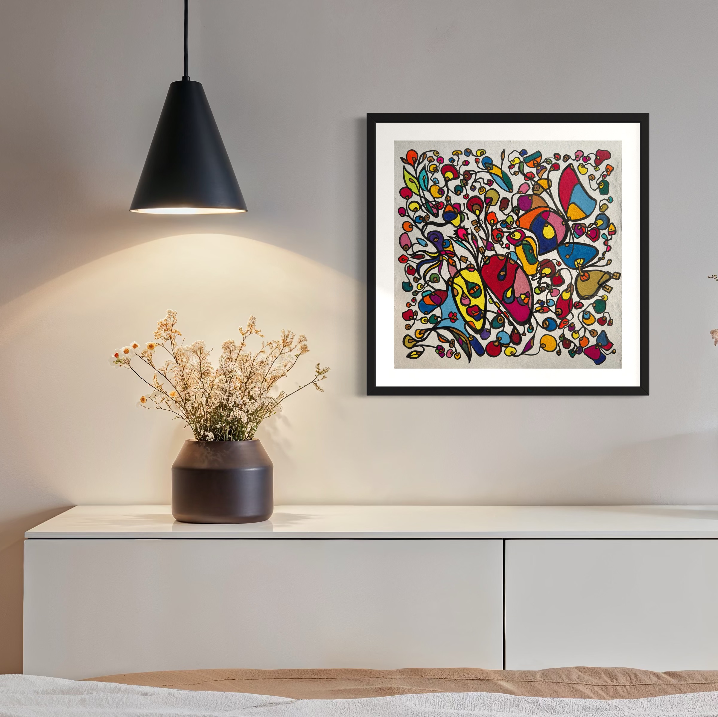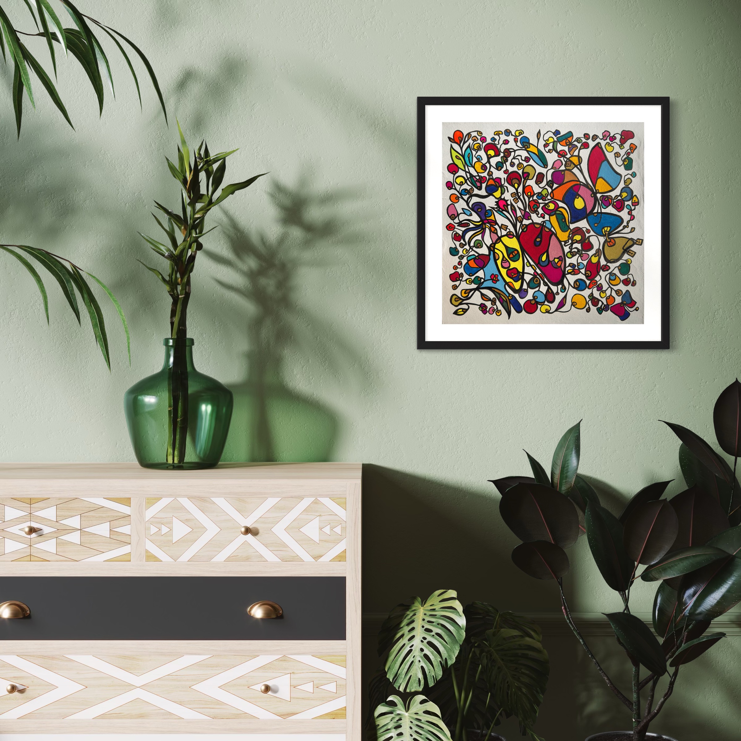 This piece bursts with vibrant energy and whimsical emotion, flowing through every organic curve and bold color. I wanted to capture the dance of life's chaotic beauty, blending expressionism with vintage symbolism to evoke joy and introspection. Its lively movement invites your space to pulse with creativity and warmth, turning any room into a sanctuary of inspired wonder.