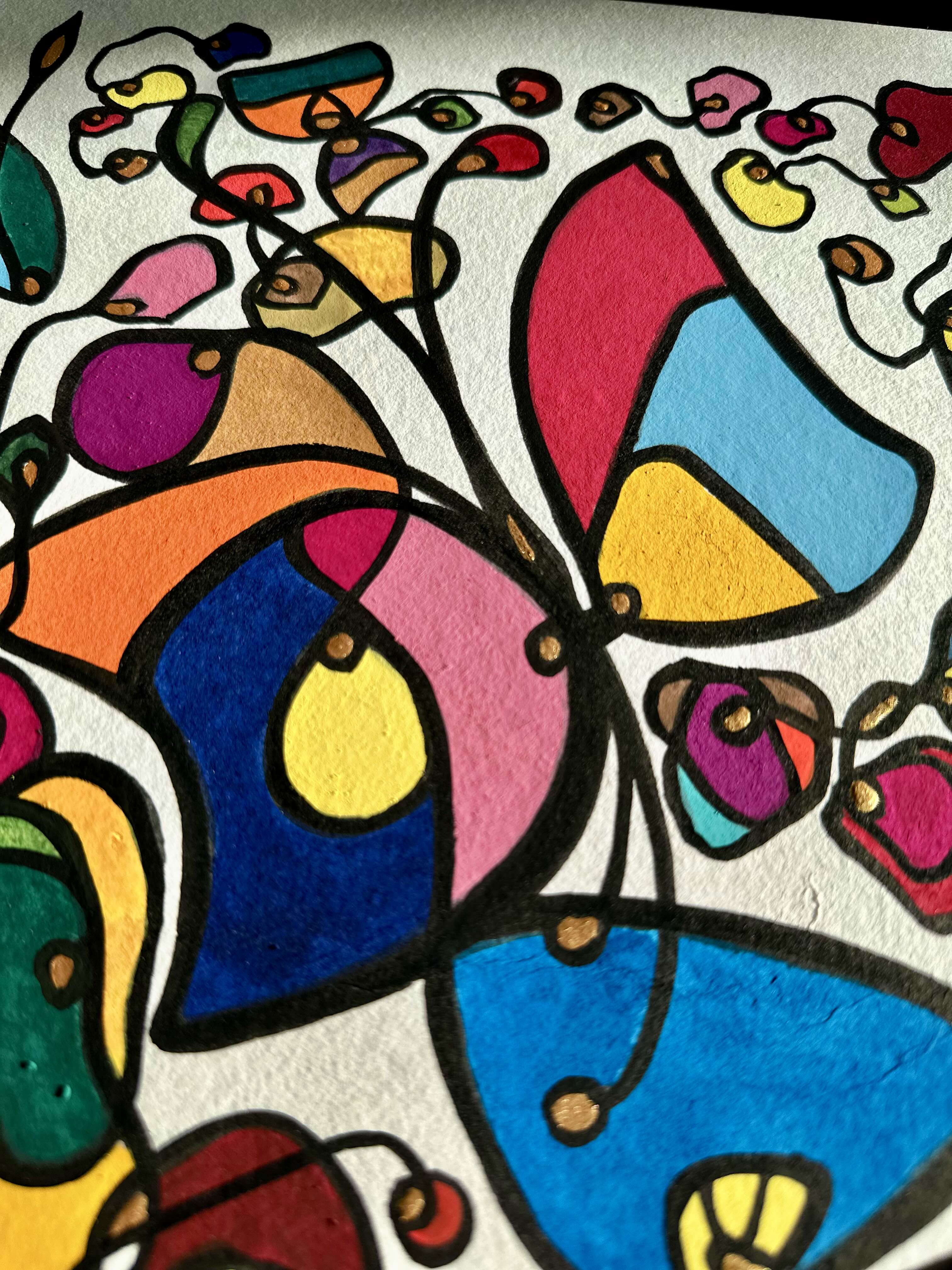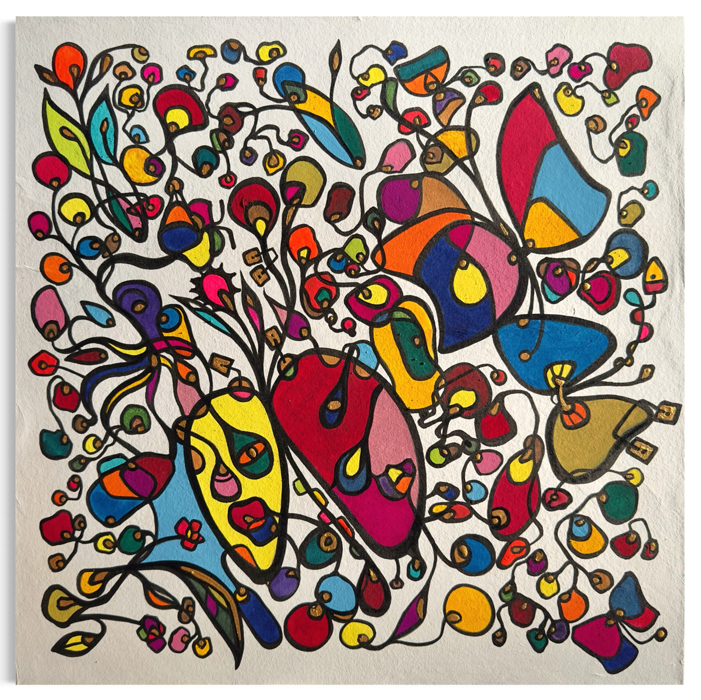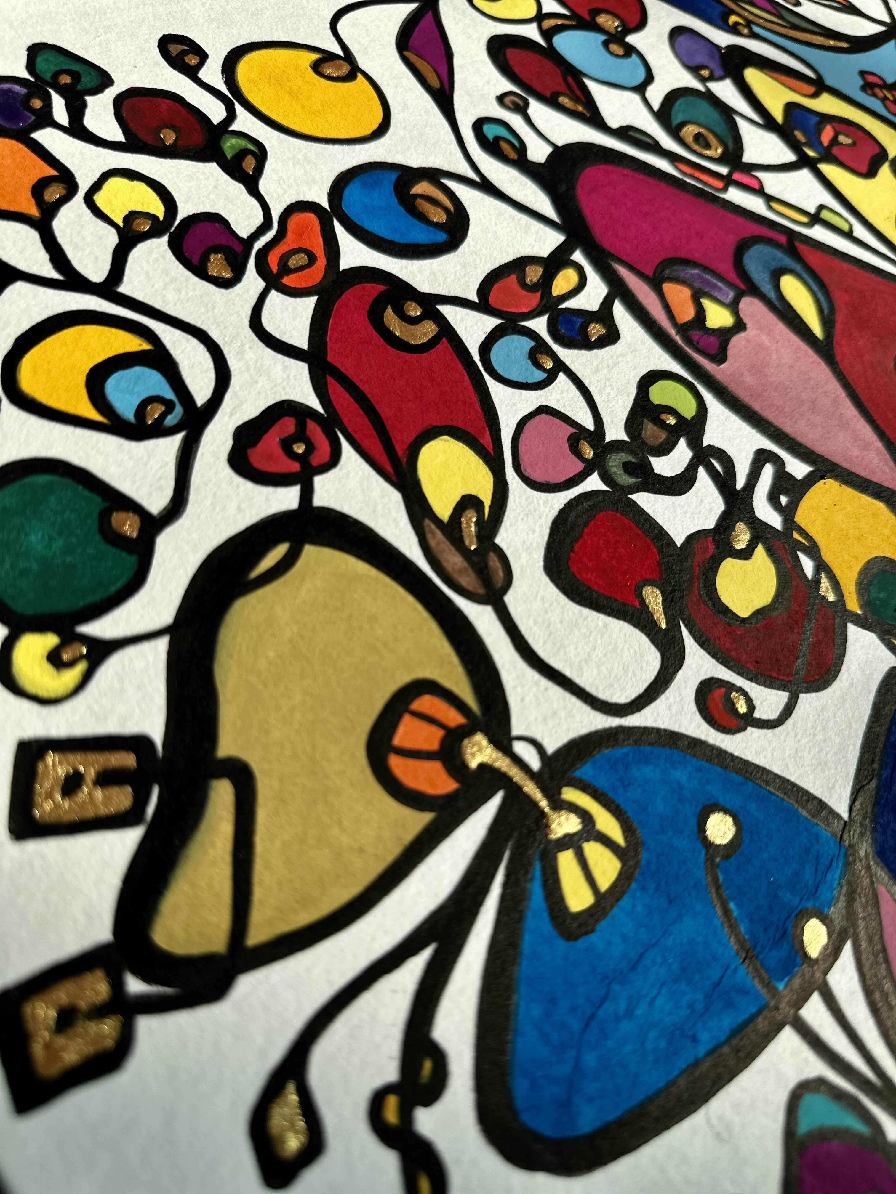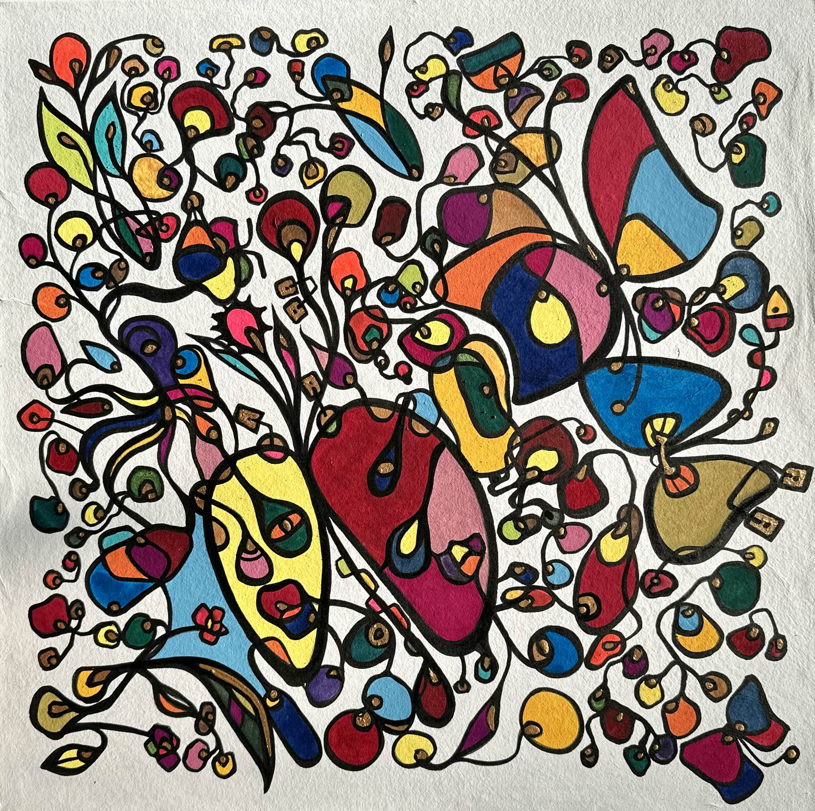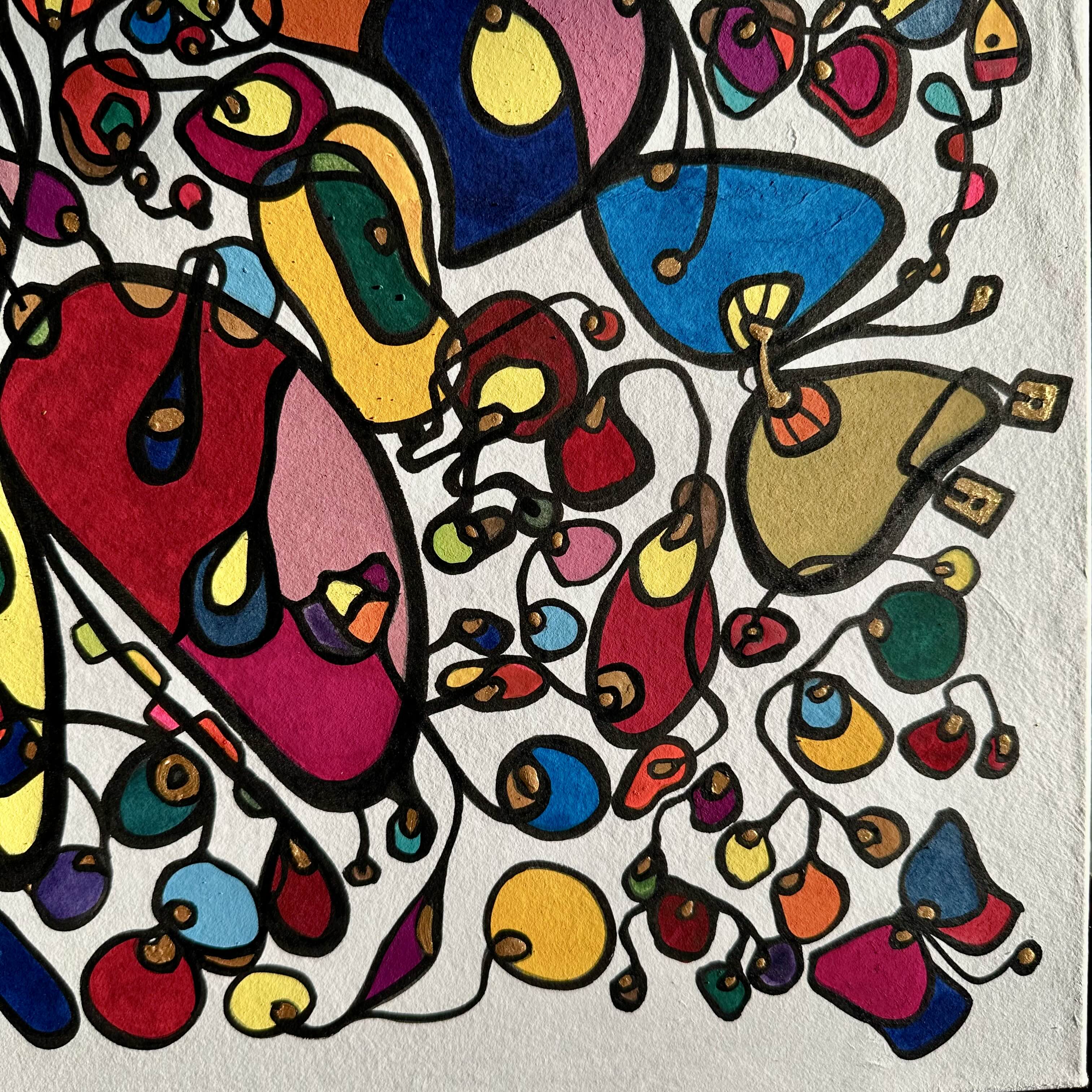 Each form in my paintings begins as an act of rebellion against the tyranny of the perfect circle. Using ink pen rather than brush, I deliberately create what I call “beautiful failures”—irregular ovals, distorted rounds, shapes that refuse geometric classification. These are not mistakes but manifestations of authenticity.
