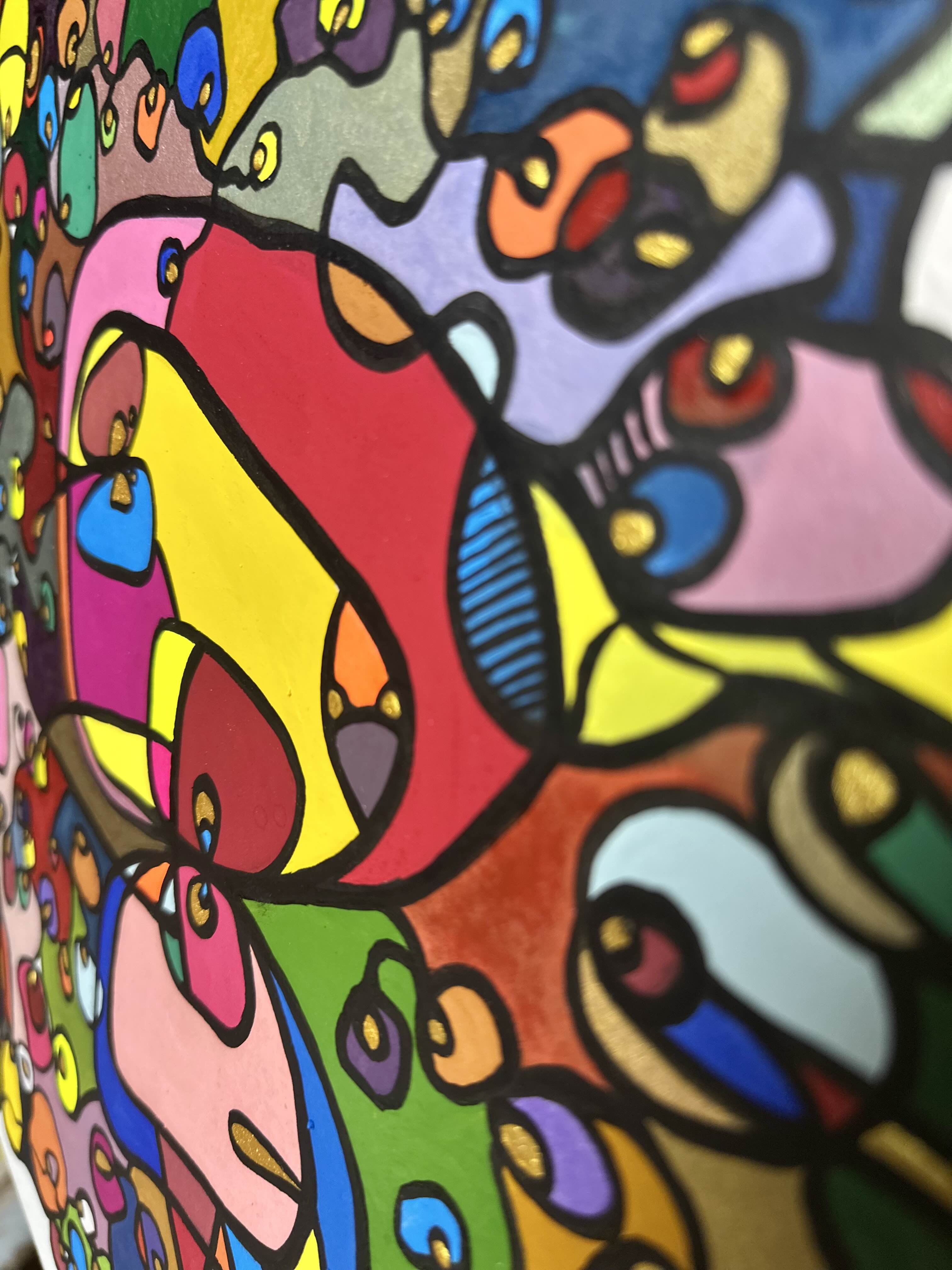 하지만 이 압박 속에서도 색들은 침묵을 거부하며 자신의 존재를 외칩니다. 이는 억압을 담은 초상이자, 우리는 선 안에 갇히기를 거부하는 색들이라는 선언입니다.