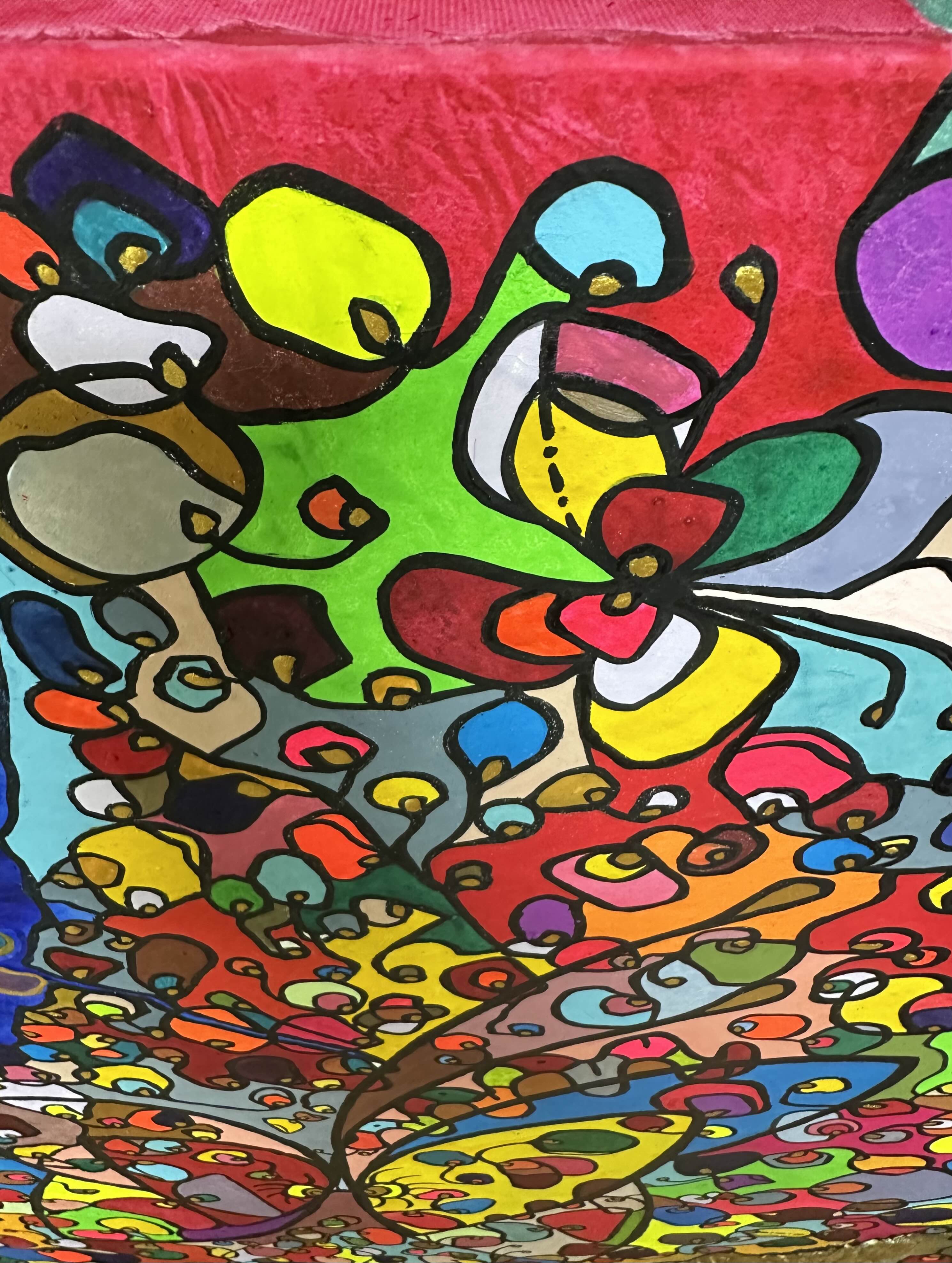 The central section captures the explosive unfolding of modern humanism, a period when individuality was recognized not as chaos but as a civilizational force. Confident ink strokes construct a vast cellular matrix, within which colors breathe in unique rhythms while preserving an organic wholeness. In this pictorial realization, technique and thought converge. When traditional mineral pigments are dripped onto thoroughly wetted hanji paper, the materials engage in spontaneous interaction, yielding unpredictable chromatic variations that mirror the emergent nature of consciousness and its metaphysical resonance. Each cell embodies the full spectrum of metamorphosis—from latent ova to awakening larvae, voracious caterpillars, and silent chrysalises.
