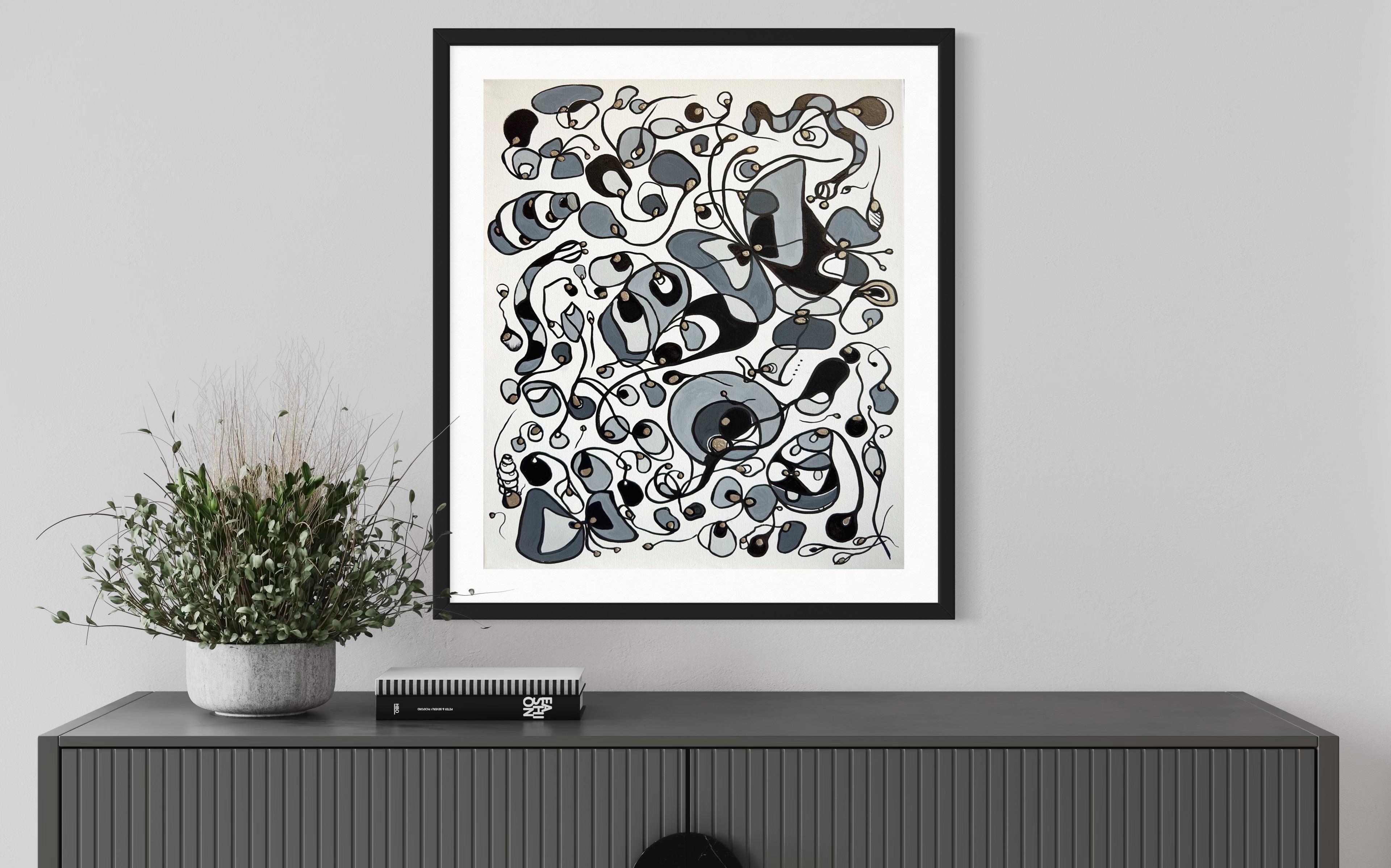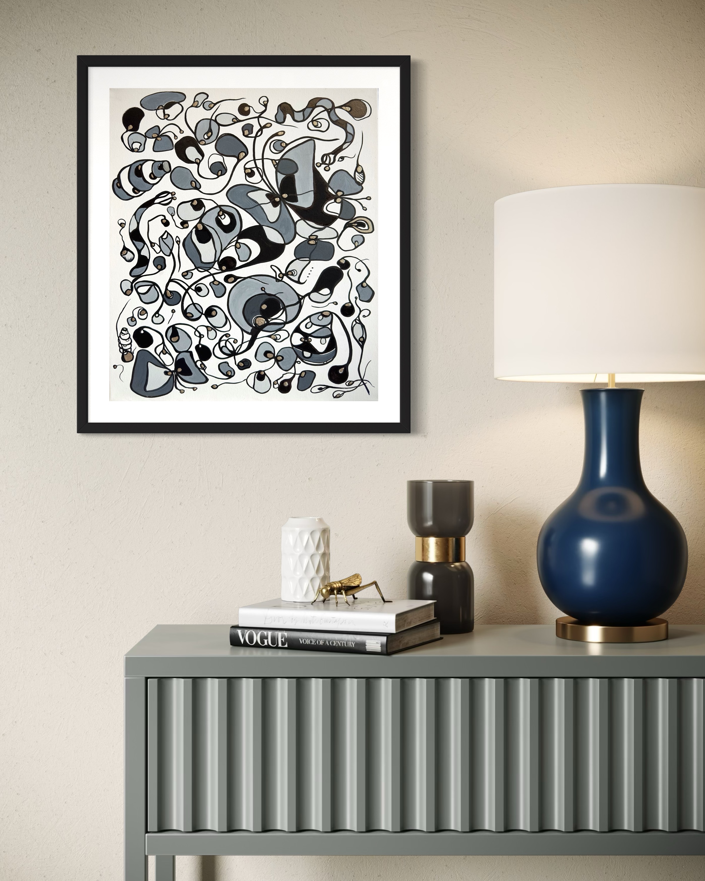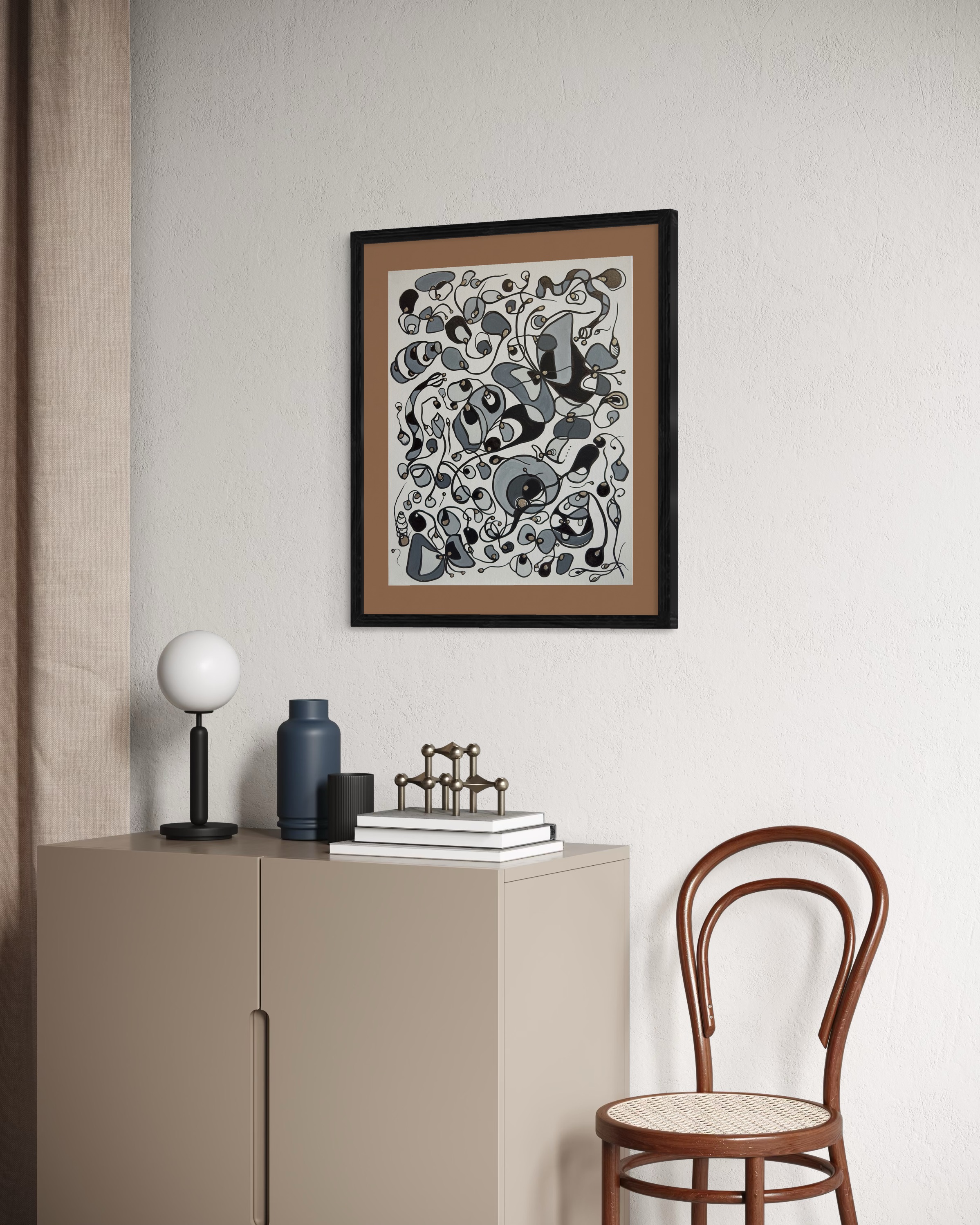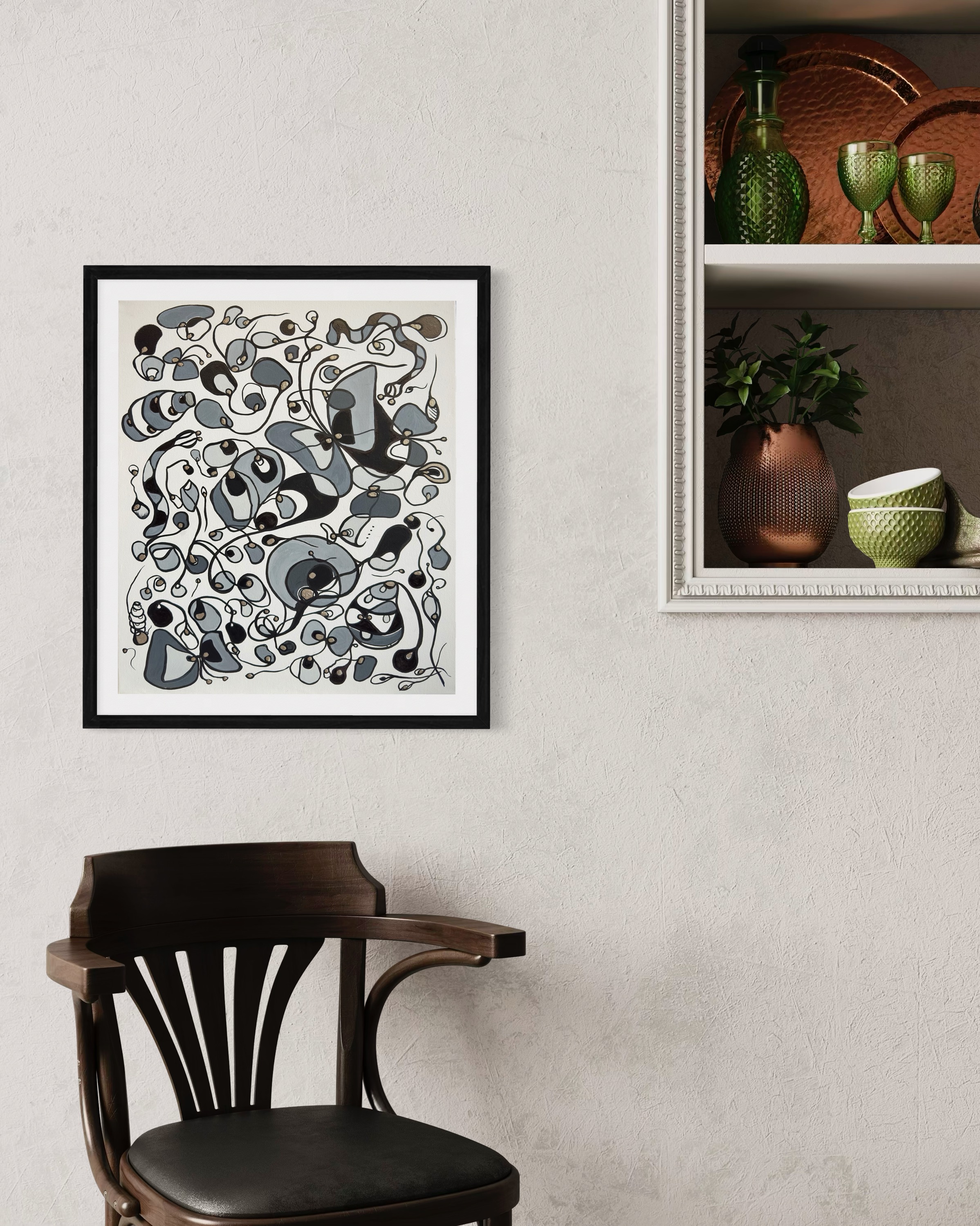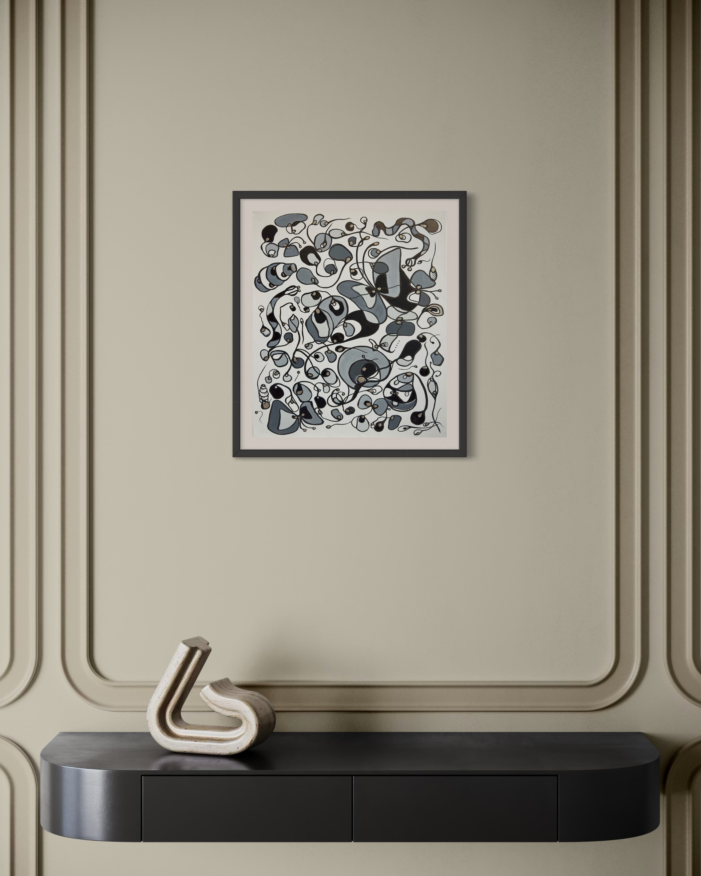 Countless beings swim in their own ways within this arena of primordial competition. From forms expanded through contemplation to traces of pure movement, spontaneous line hierarchies and ink density changes record the journey toward extinction.
