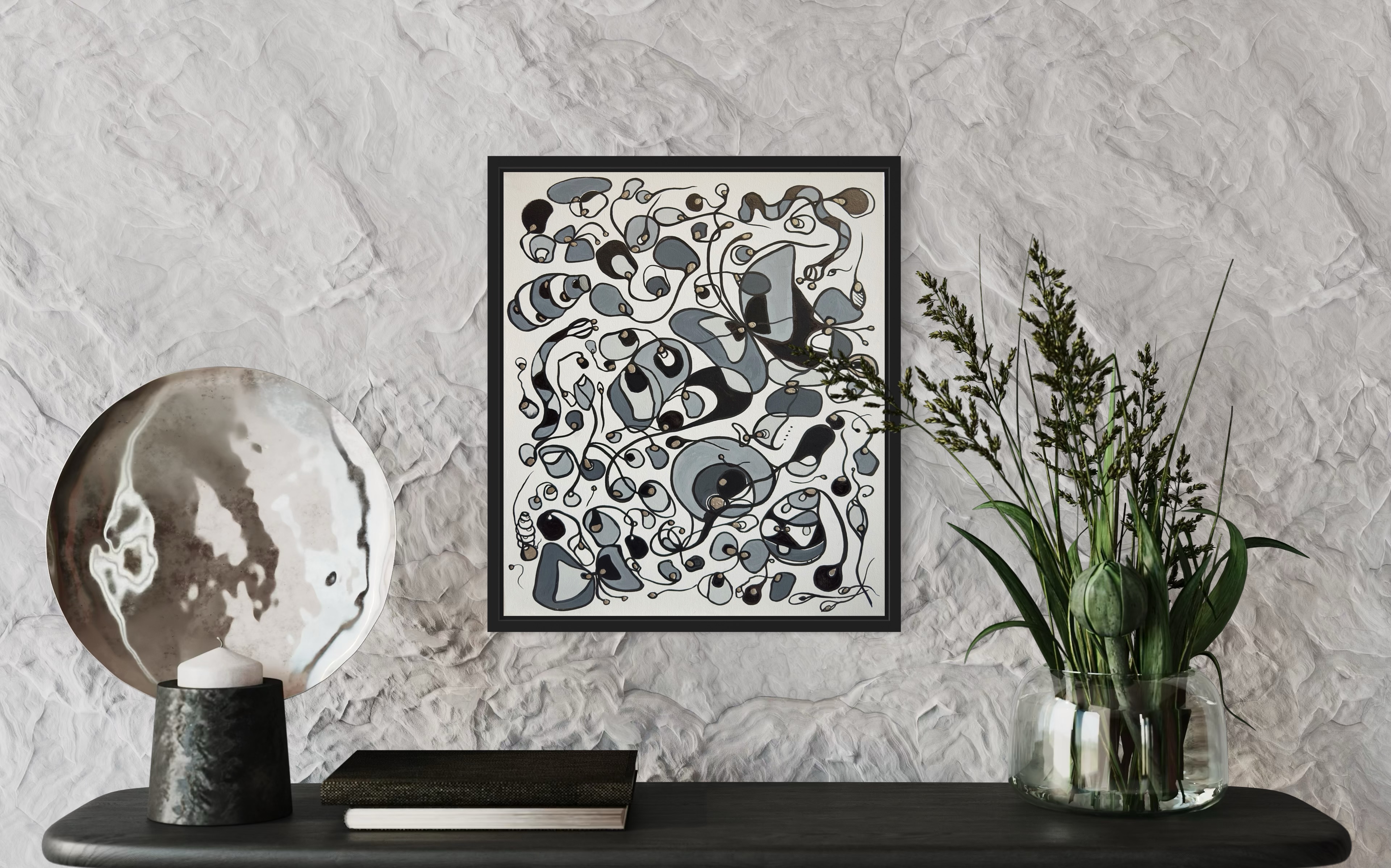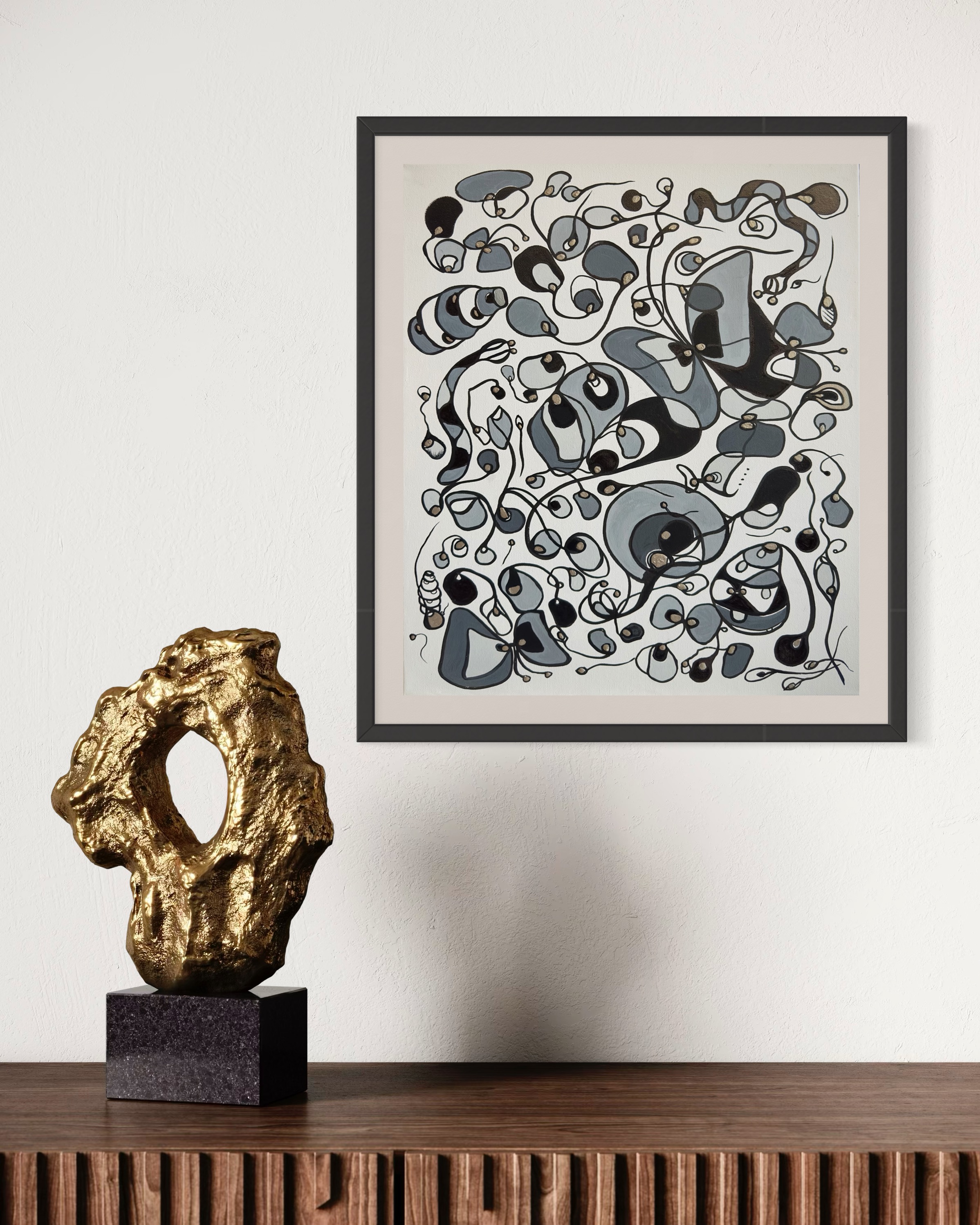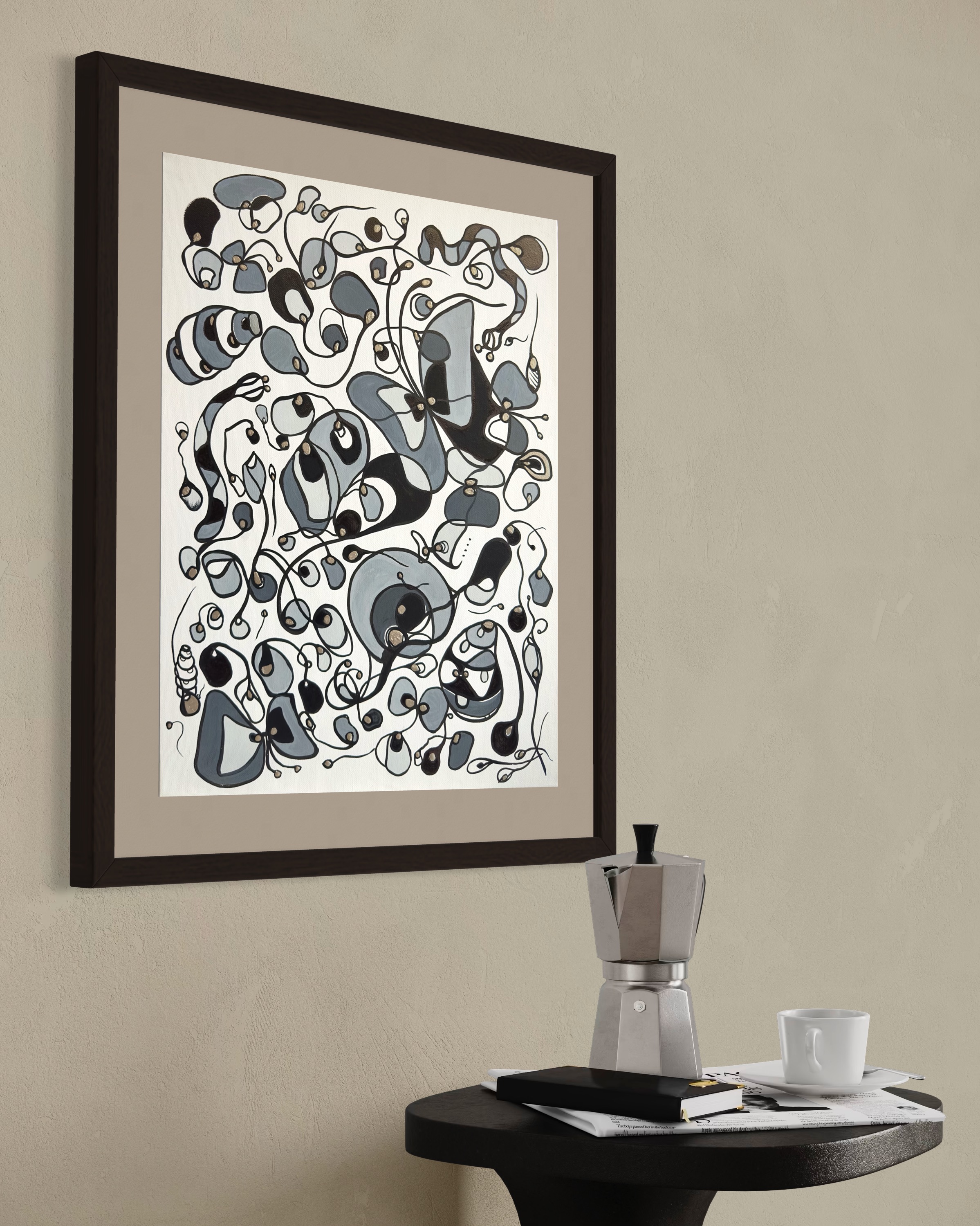 이 작품의 가장 탁월한 지점은 '각양각색'이라는 주제를 역설적으로 흑과 백, 그리고 그 사이의 무한한 회색 스펙트럼으로 풀어낸 점이다. 화려한 색채를 배제한 선택은 관람자의 시선을 형태의 미세한 차이와 먹의 농담(濃淡) 변화, 그리고 선의 에너지에 집중시킨다. 이는 생명의 본질이 외형의 다채로움이 아닌, 생존을 향한 내적 동력과 과정에 있음을 암시한다.