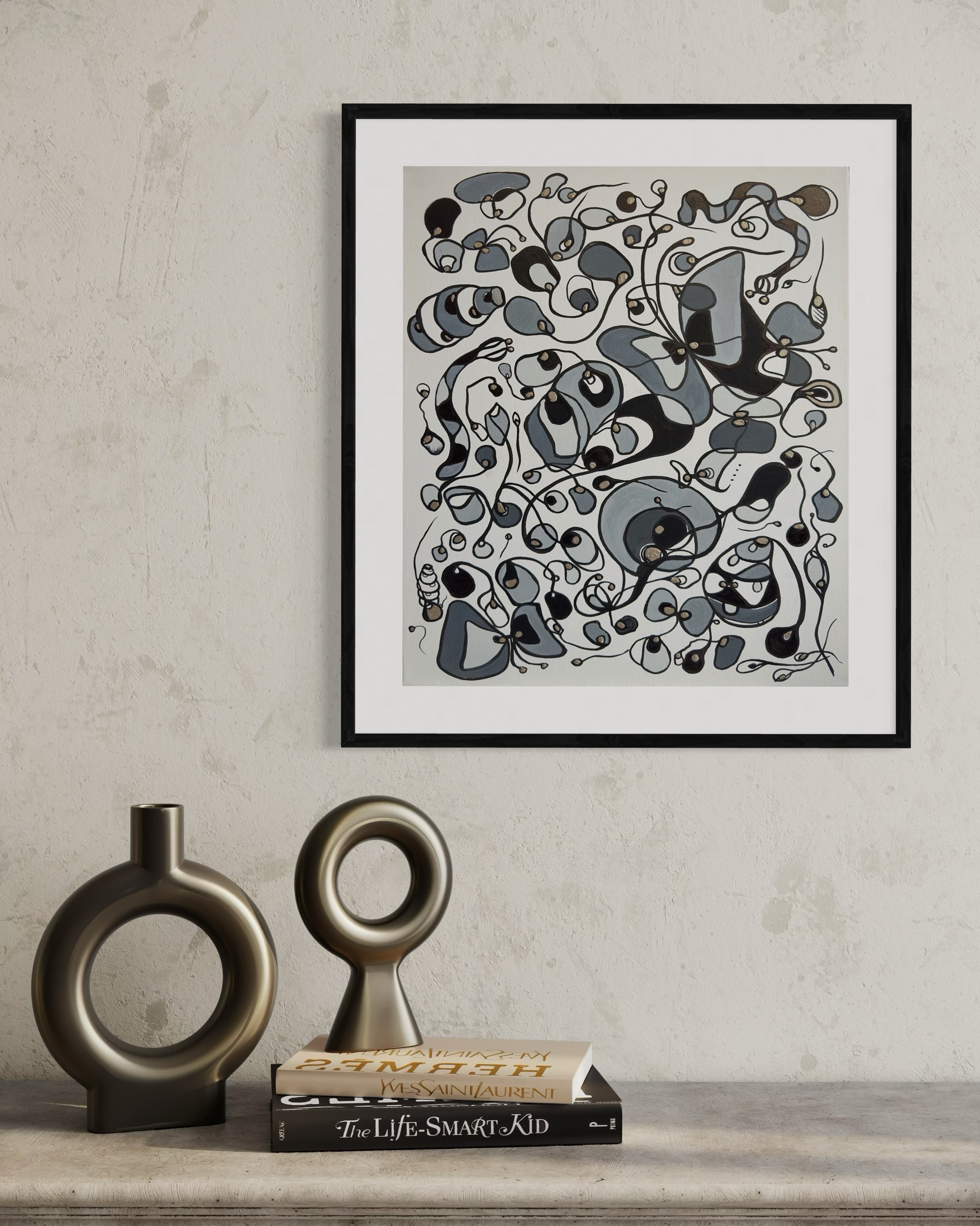 Rendering life's starting point in achromatic tones contains deep paradox. Though we live with fervent longing for varieties, this gray canvas reveals how most lives ultimately trace similar trajectories. Here lies the eternal tension between aspirations for individuality and universal destiny.