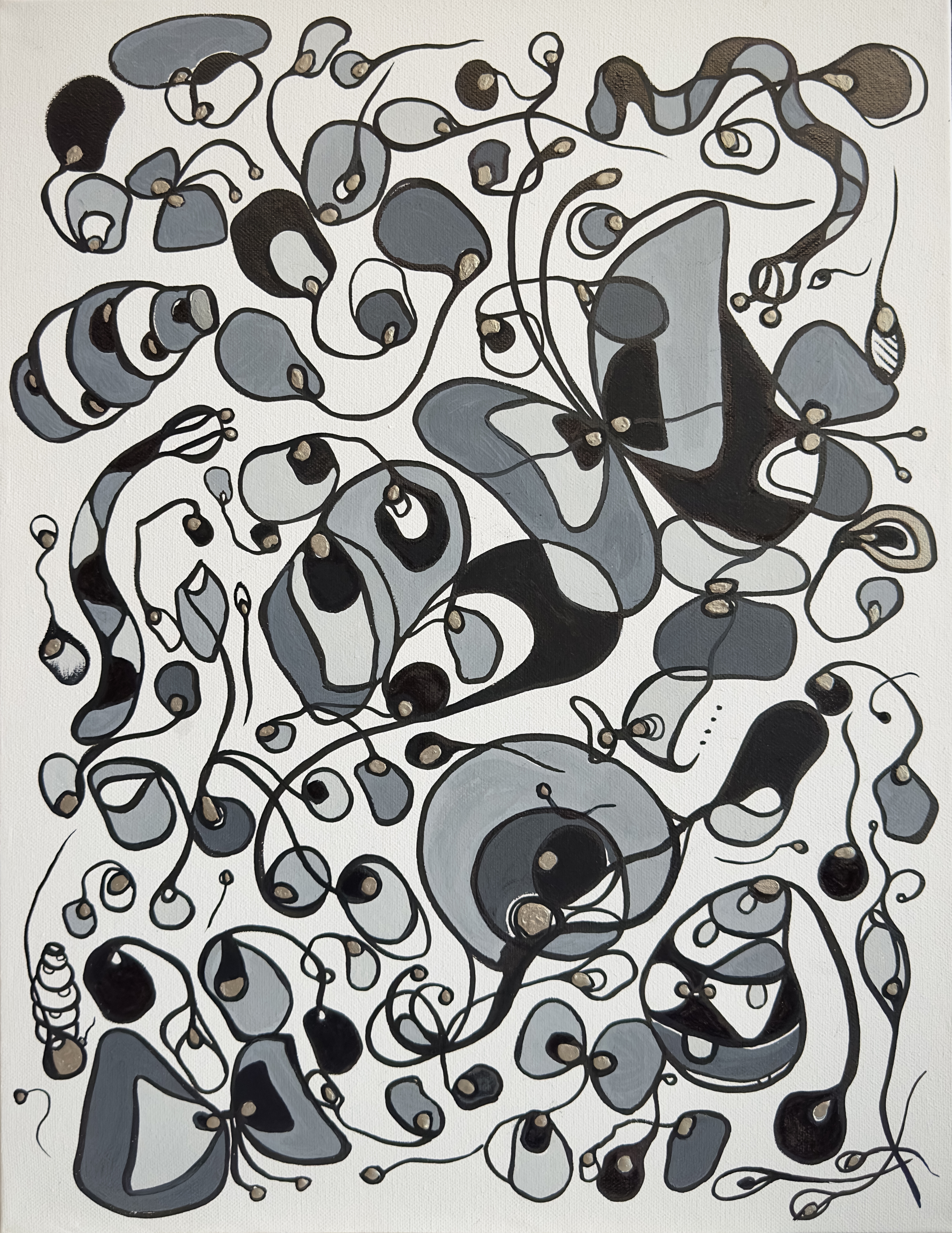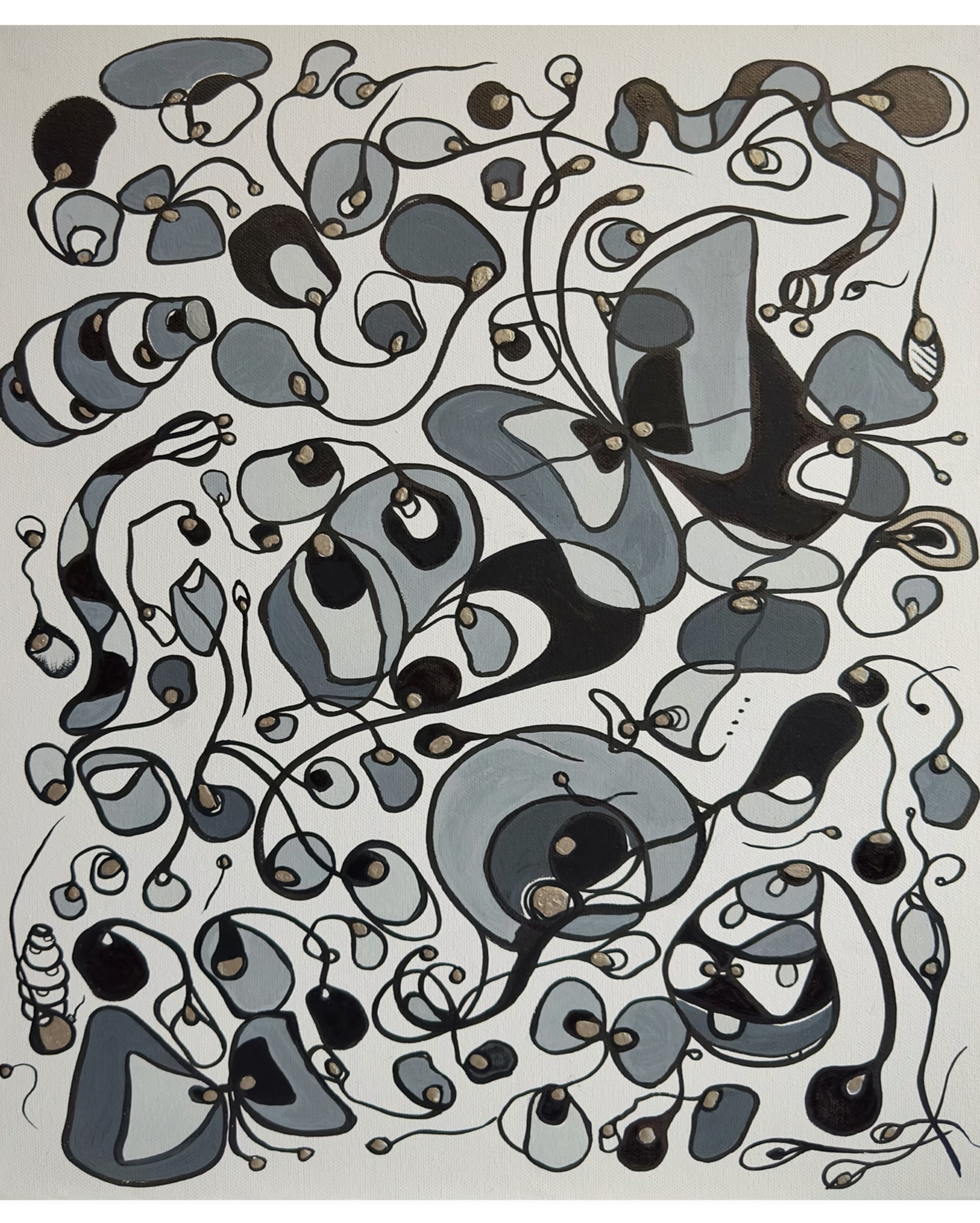 I painted existence's most primordial arena of competition. The countless forms spread across the canvas explore their unique modes of being within the finite time granted to each. Some beings expand with the weight of contemplation, others leave only traces of pure movement. Variations in size, differences in direction, and formal modulations continue endlessly.