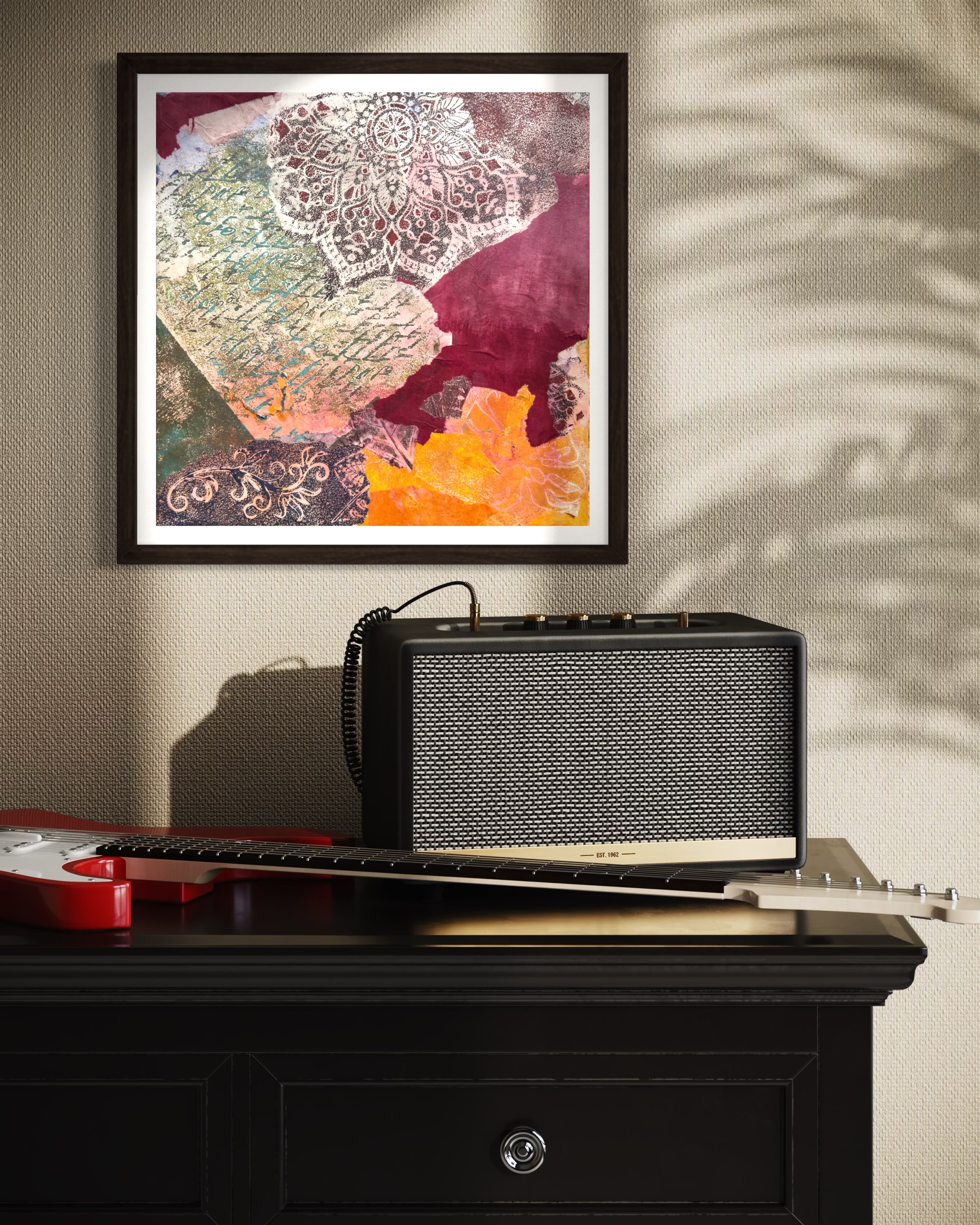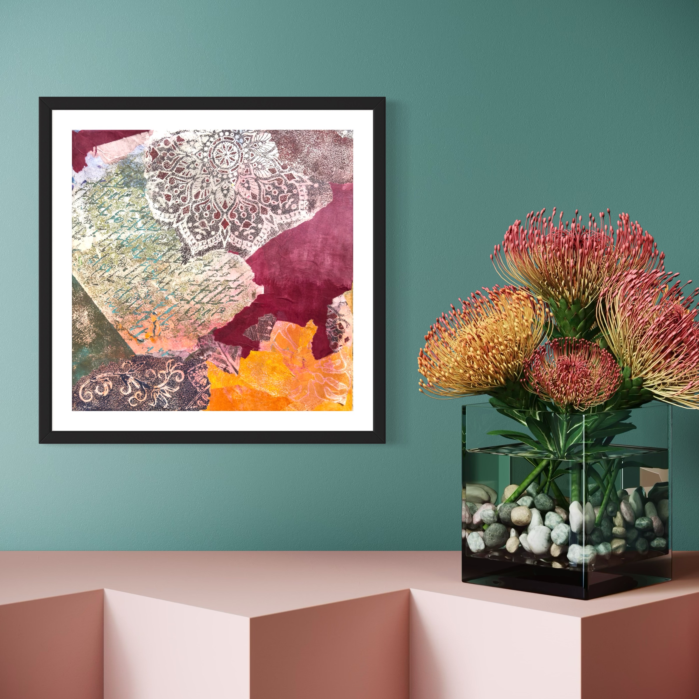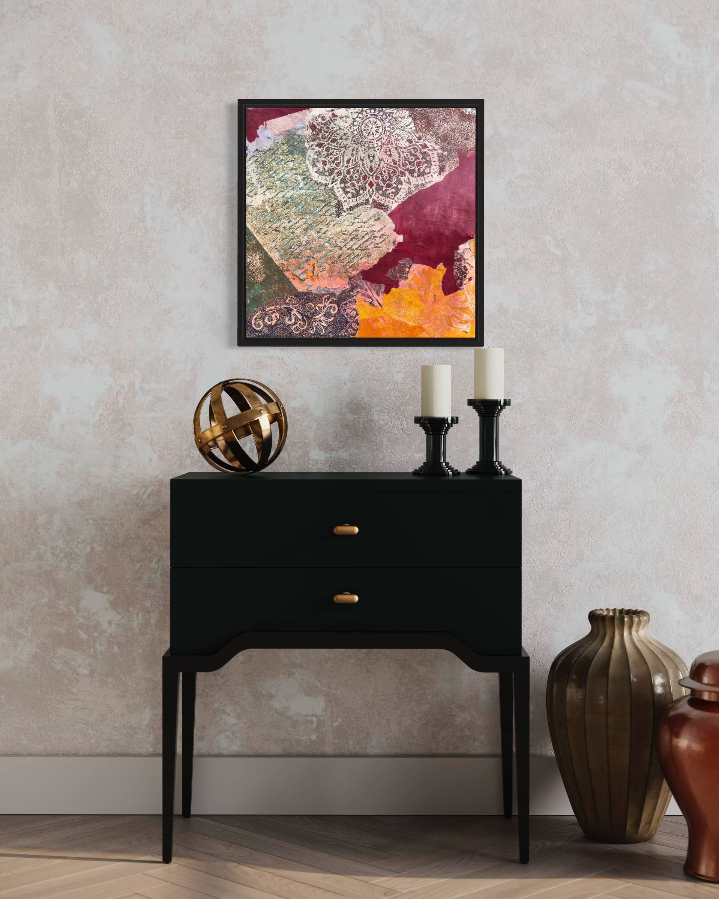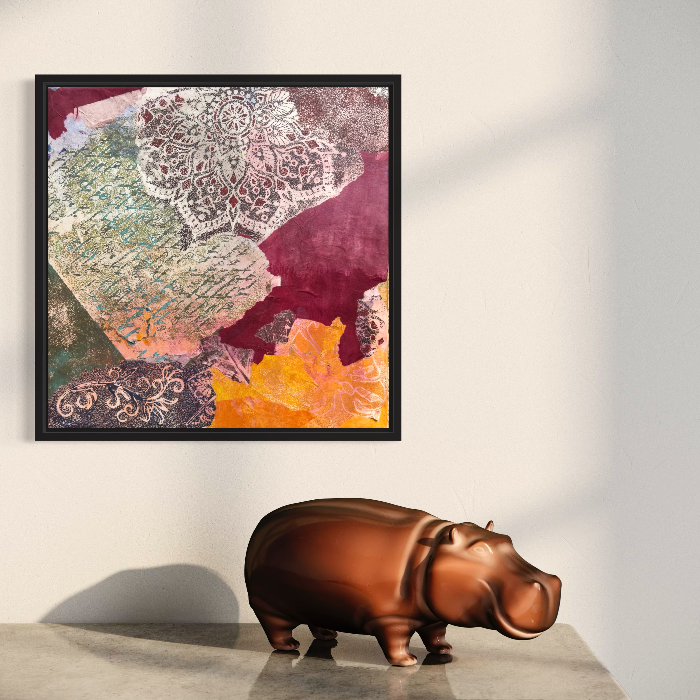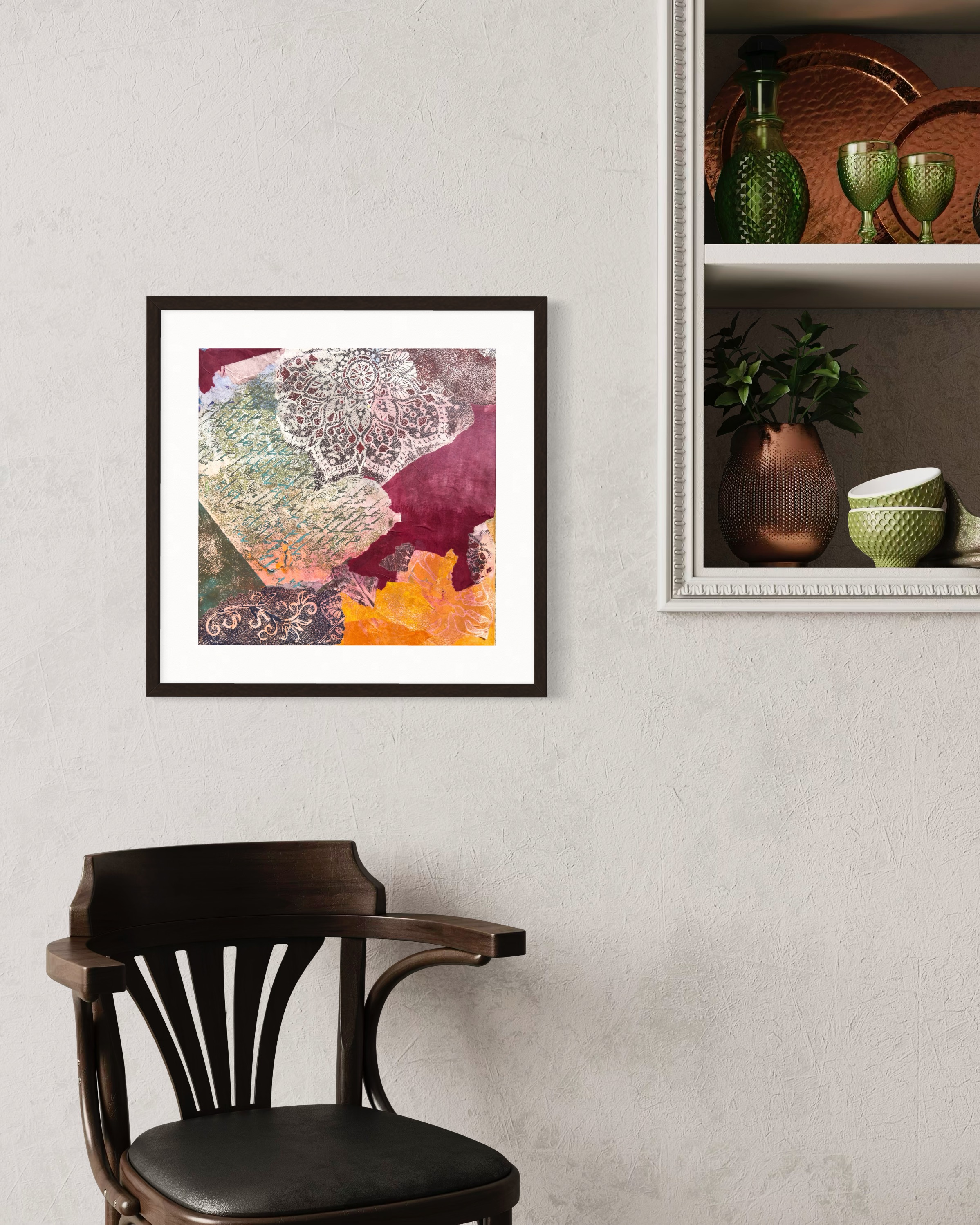 This work is a conversation between materials, a space where fragments remain free. It does not follow a fixed plan, but instead invites a different kind of perception. Layers of hanji, pigment, and print exist together, each with its own memory and texture. A bold shape asserts itself against a subtle pattern, and a torn edge reveals an unexpected layer. The eye can wander, connecting traces and sensations. What is seen and felt is enough.