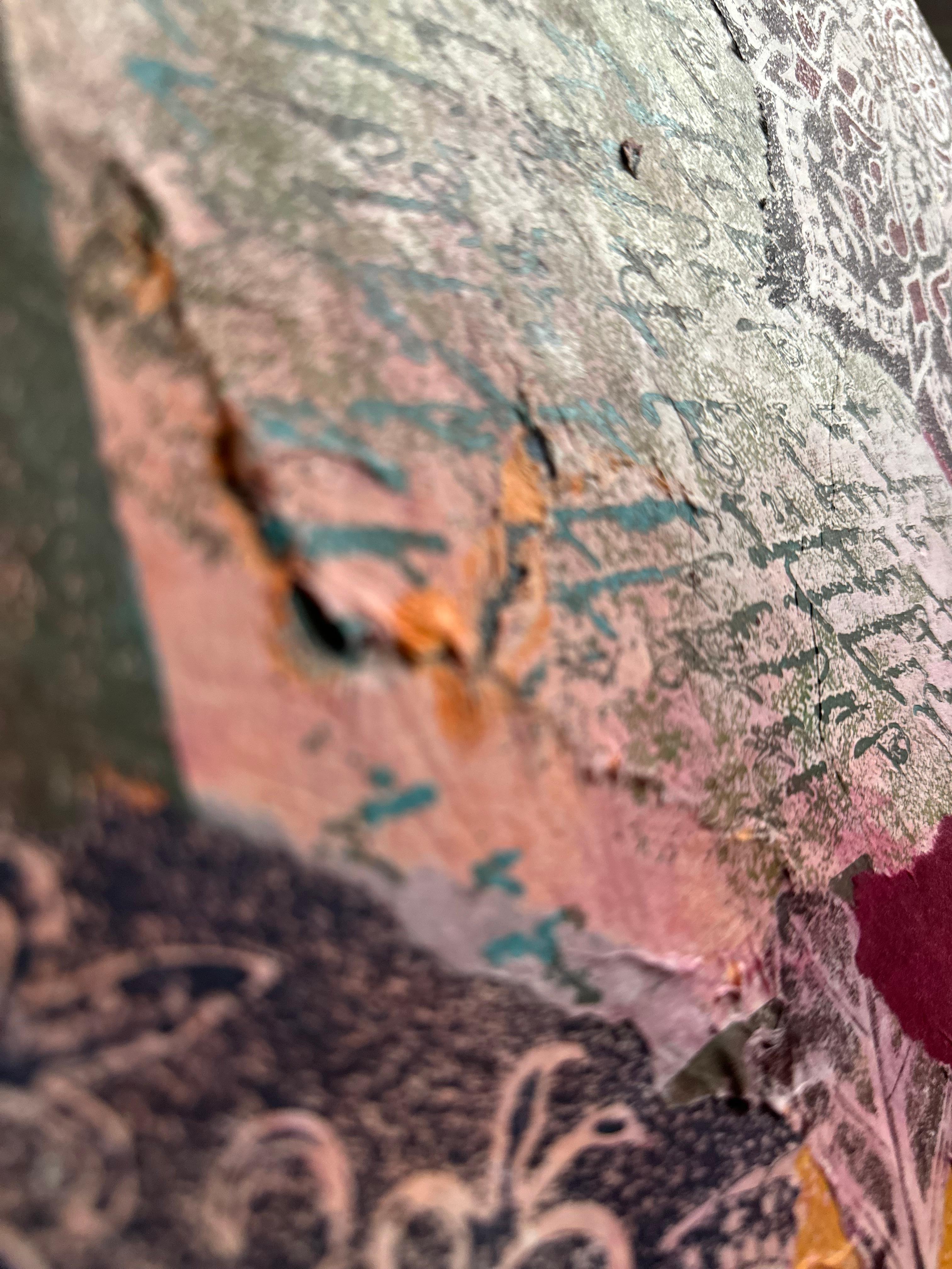 이 작품은 다른 종류의 인식을 요청한다. 고정된 구도 대신, 눈이 자유롭게 유영하며 흔적과 질감을 연결하는 가능성의 장이 있다. 반투명한 층은 이전 색의 속삭임을 전하고, 대담한 형태는 미묘한 패턴에 맞서며, 찢긴 가장자리는 예상치 못한 안료의 층을 드러낸다. 각 파편은 그 자체로 하나의 세계를 품고 있으며, 이는 나의 손과 물질이 나누었던 교감의 작은 순간들이다.