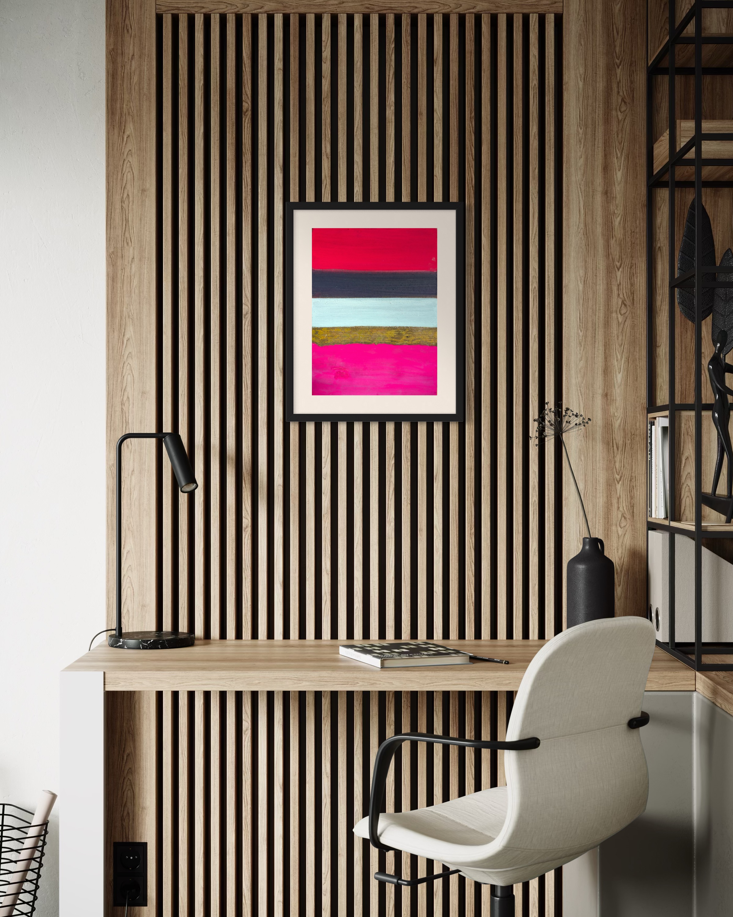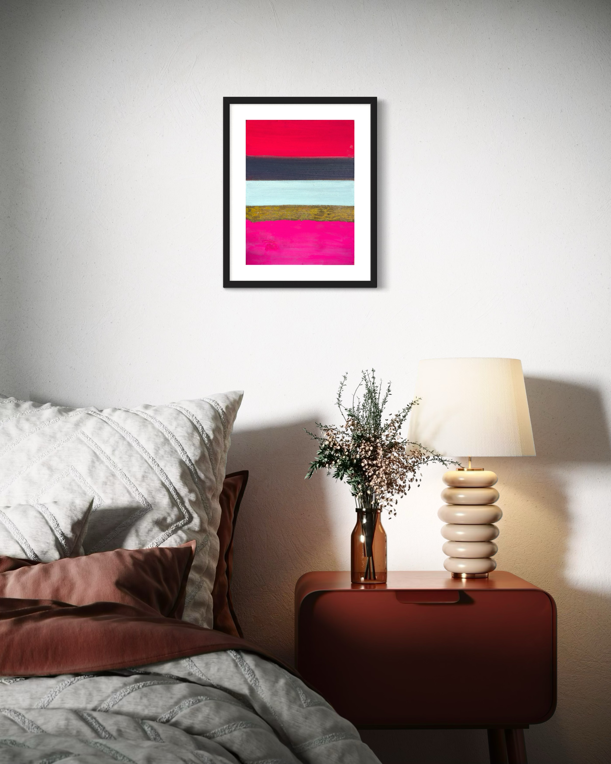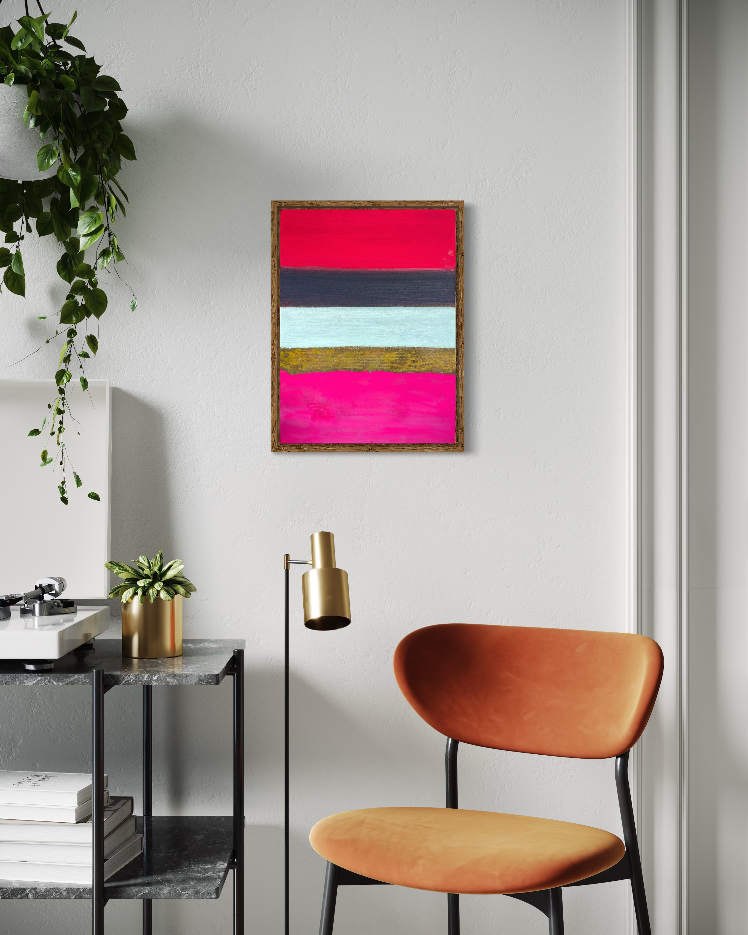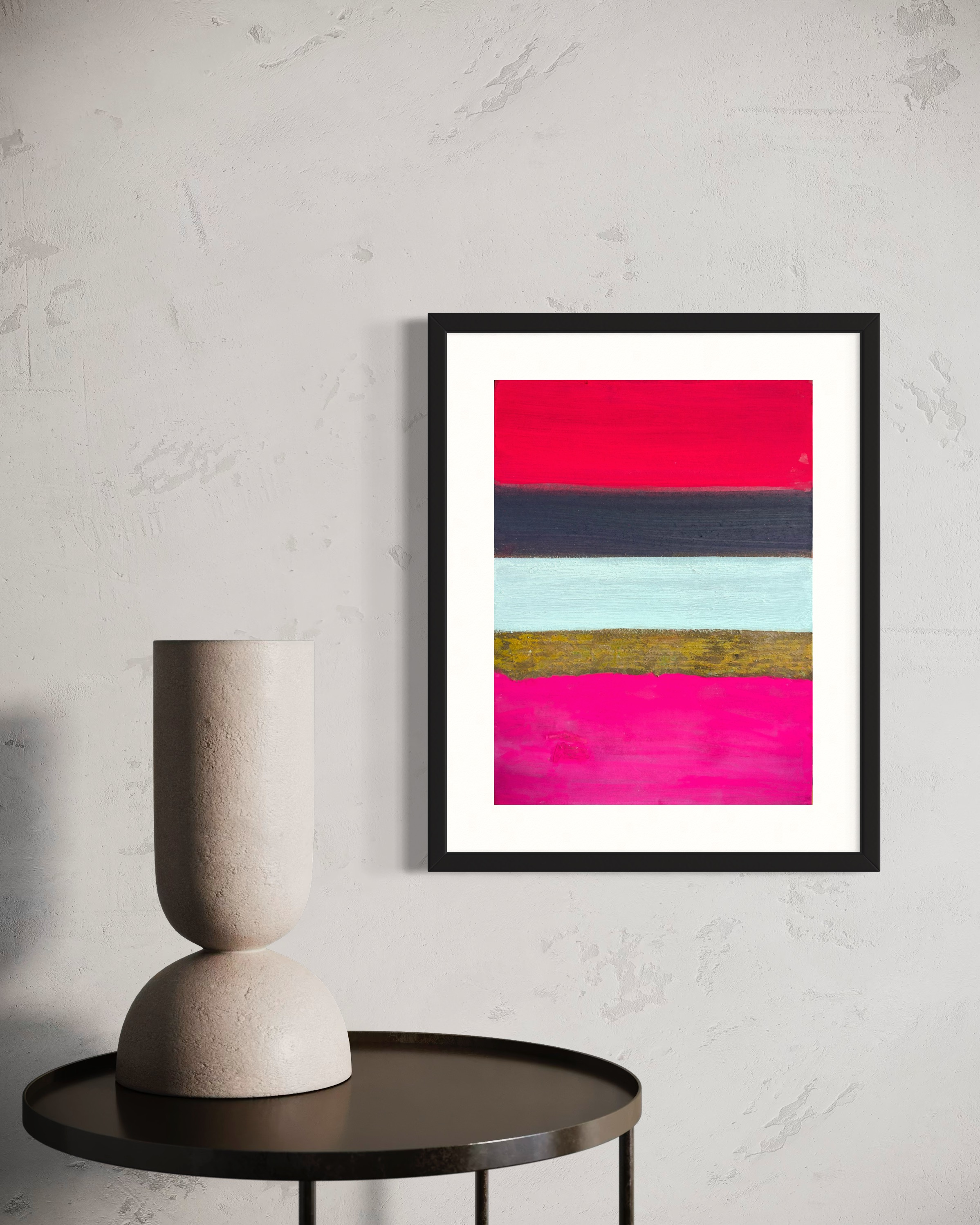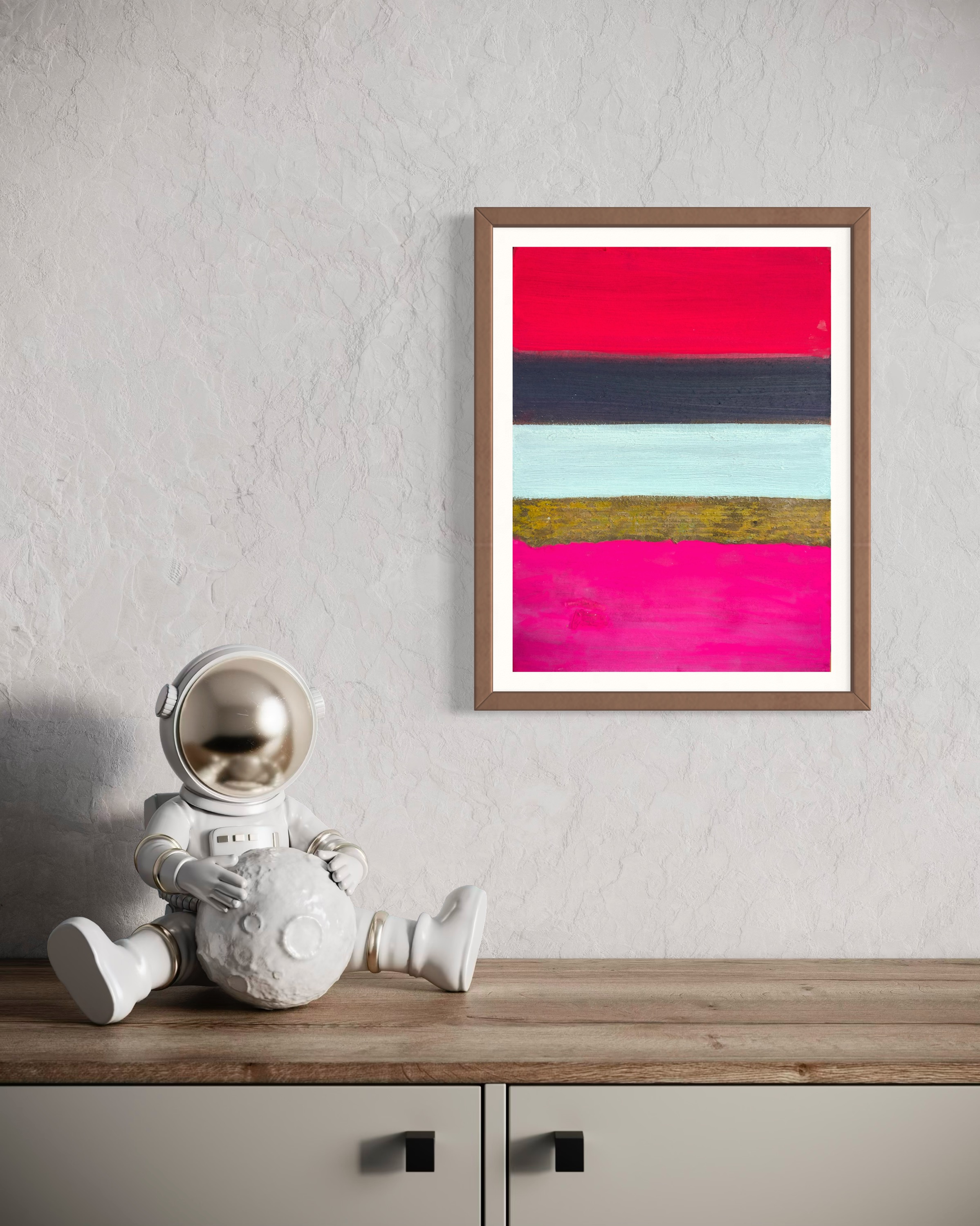 Experience "Strata," where painting defies its boundaries. This unique work challenges dimension, featuring five horizontal bands on Hanji. At its core, iron rust paint, chemically activated, creates unpredictable, three-dimensional textures that protrude from the surface. A captivating dialogue between control and chance, traditional and industrial. Light dances on oxidized forms, casting shifting shadows. Own a piece where material autonomy transforms into tangible art—a dynamic convergence of chemistry, time, and artistic inquiry.