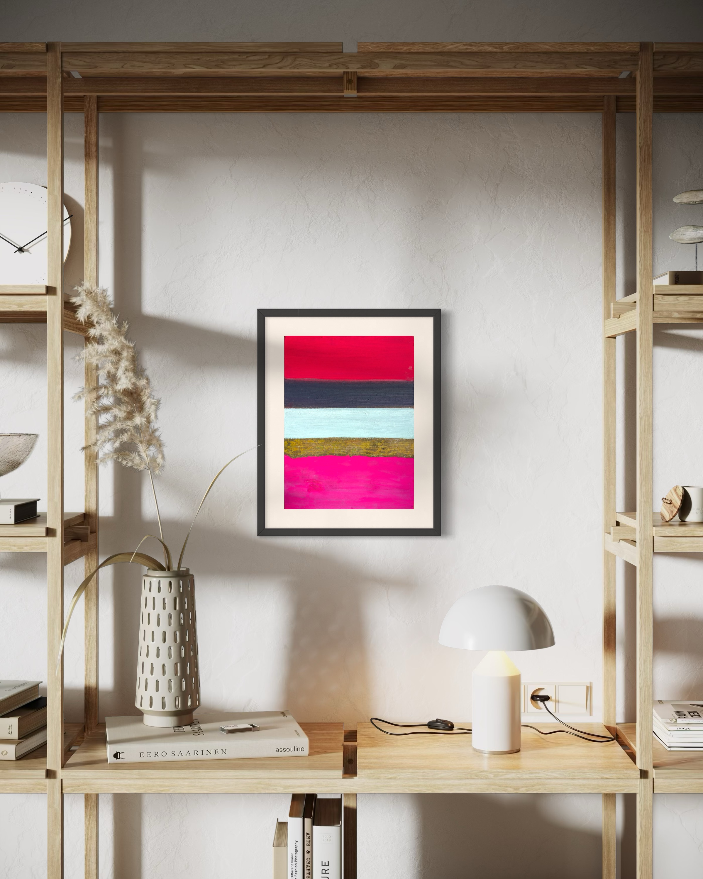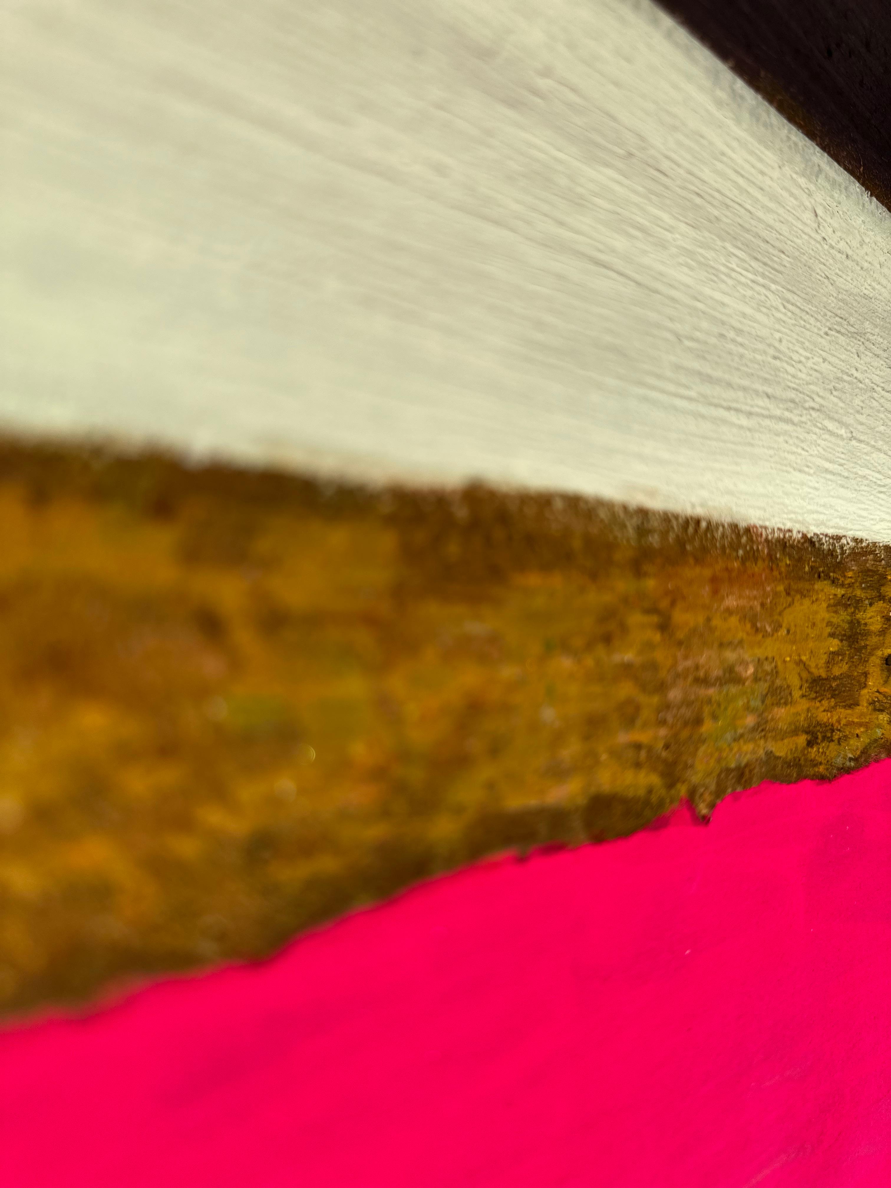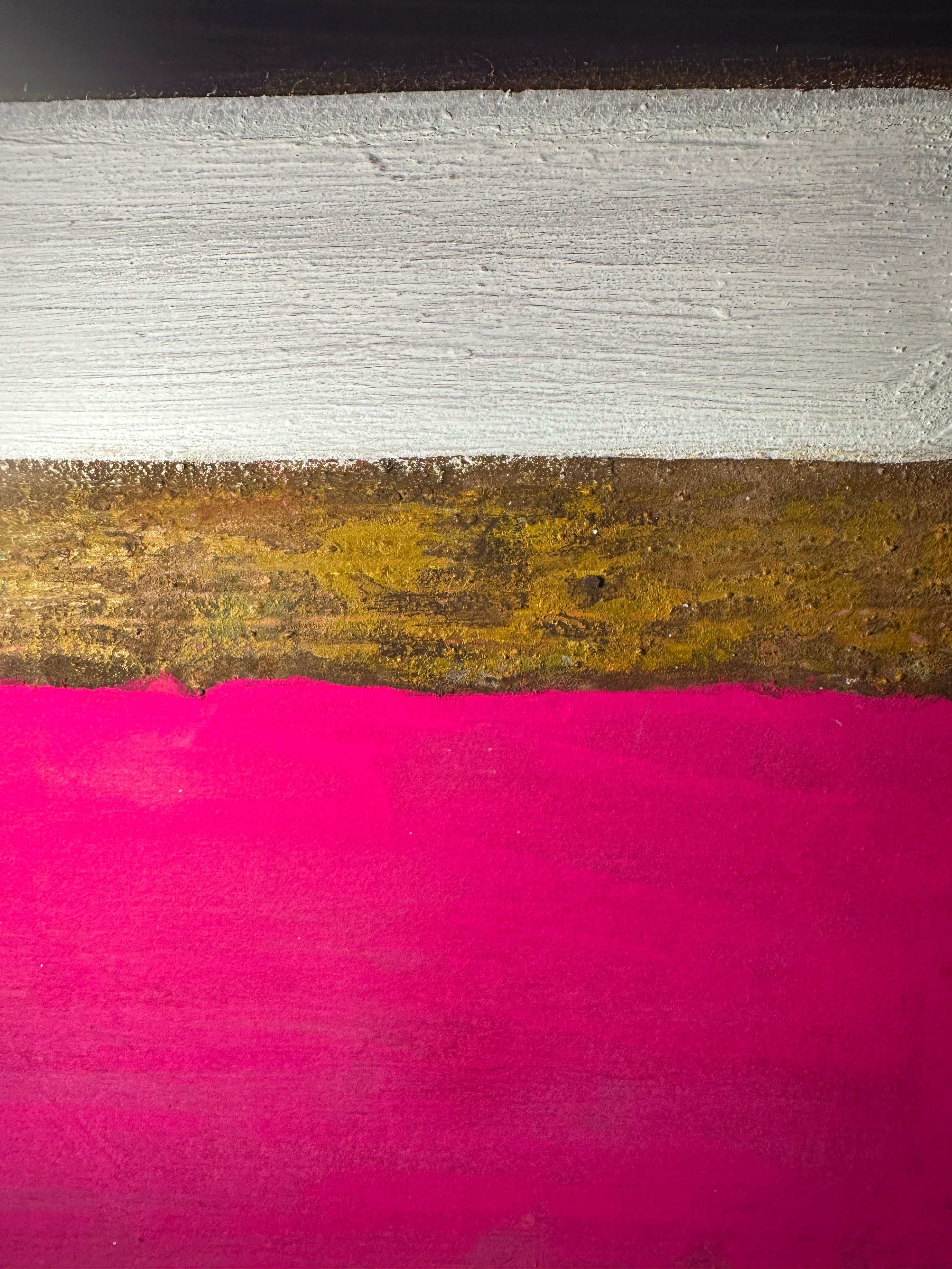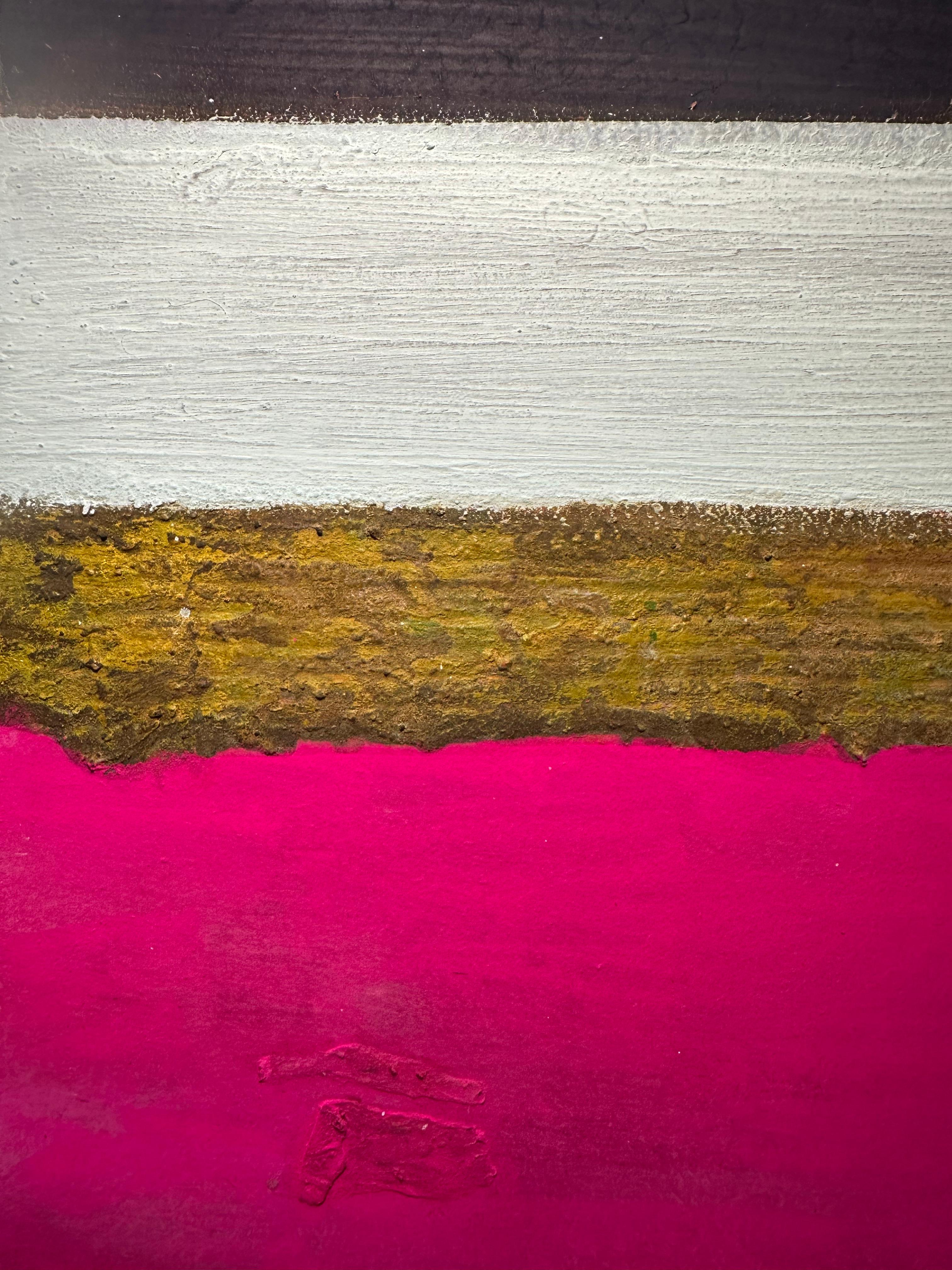 40×30cm 한지 보드 위의 이 작업은 2차원 회화와 3차원 물질성 간의 의도적 충돌을 제시한다. 다섯 개의 수평 띠가 화면을 가로지르며, 각각은 고유한 물리적 존재감을 주장하는 동시에 인접 요소들과 시각적 대화를 벌인다.