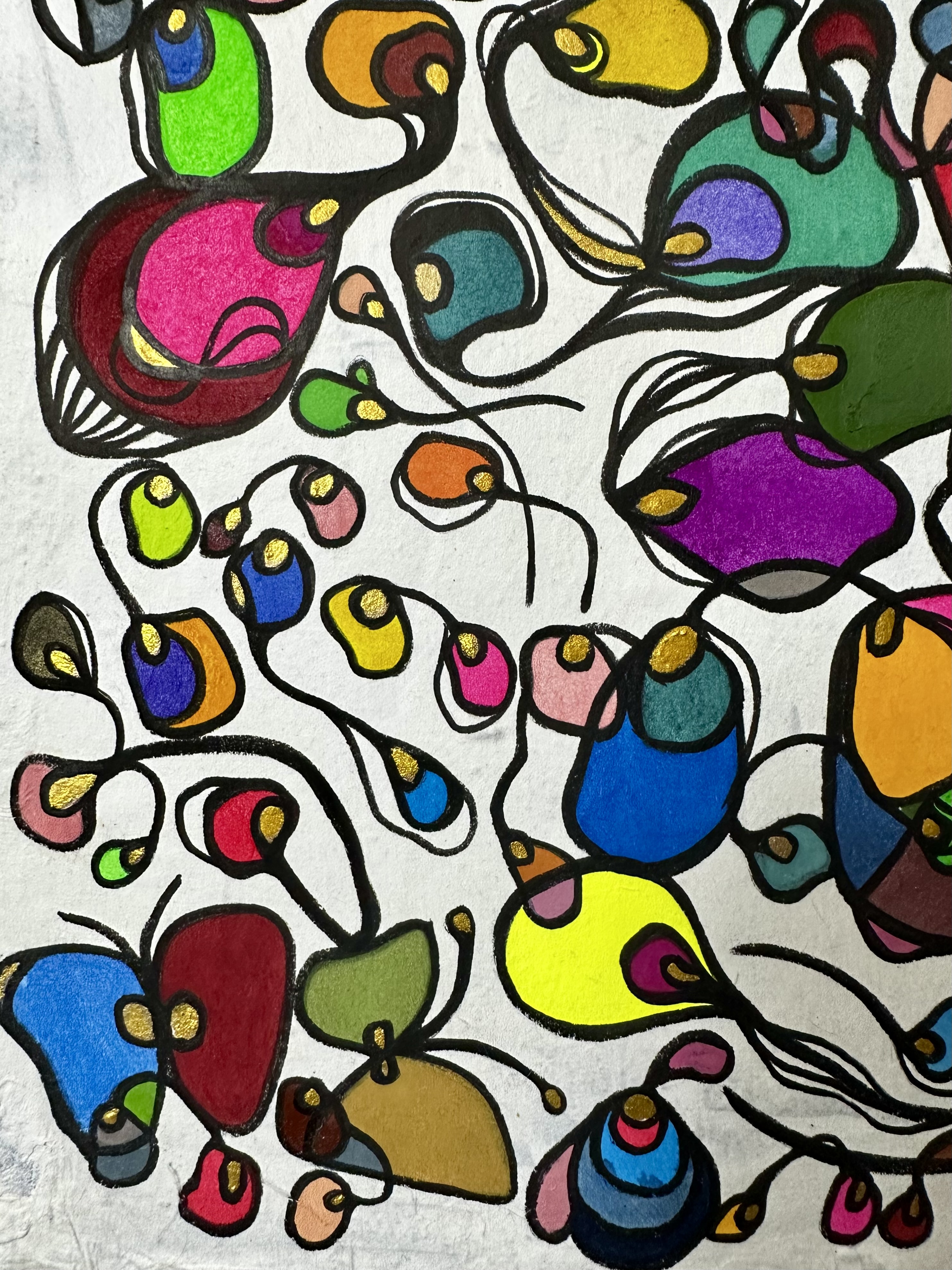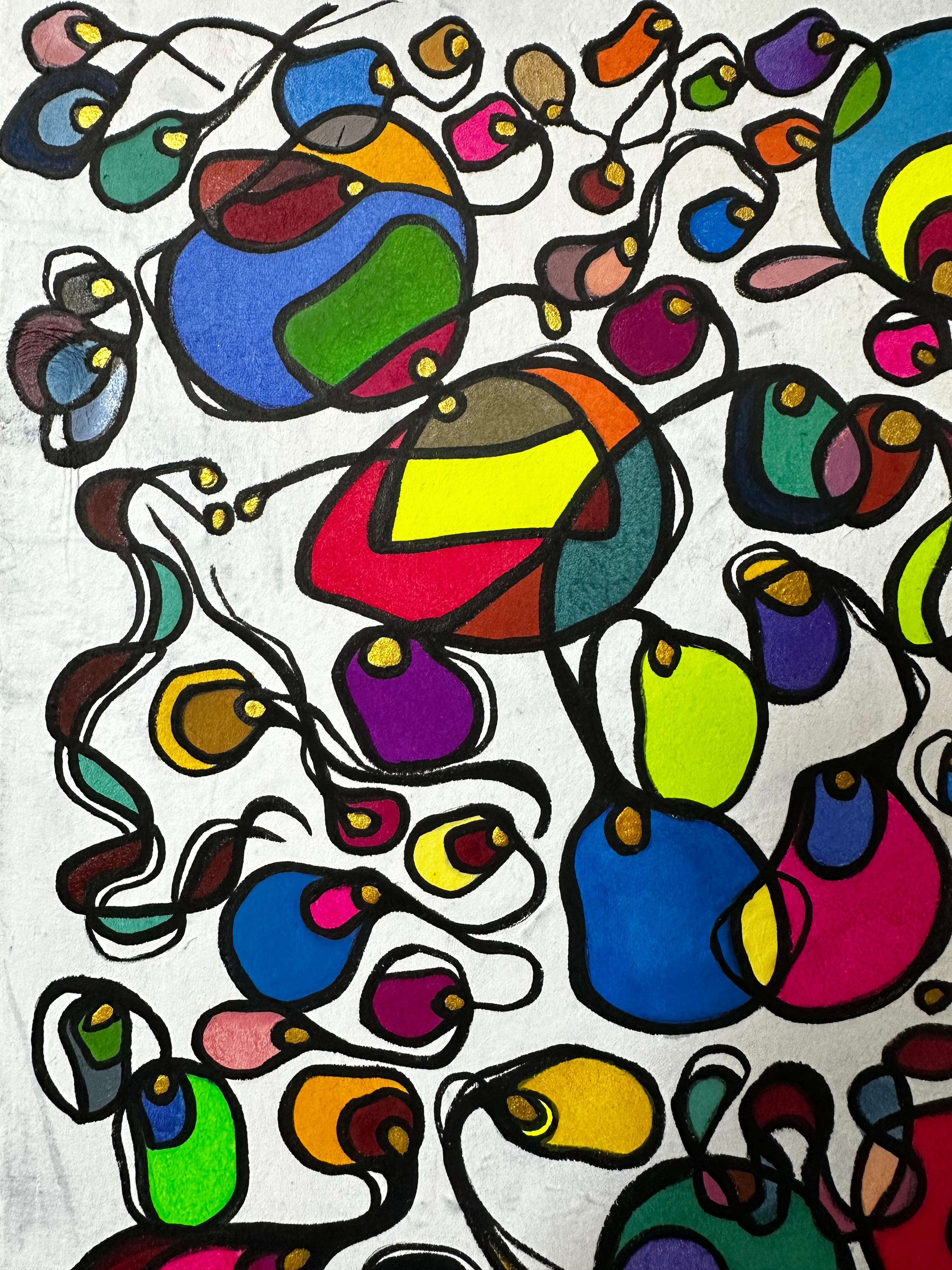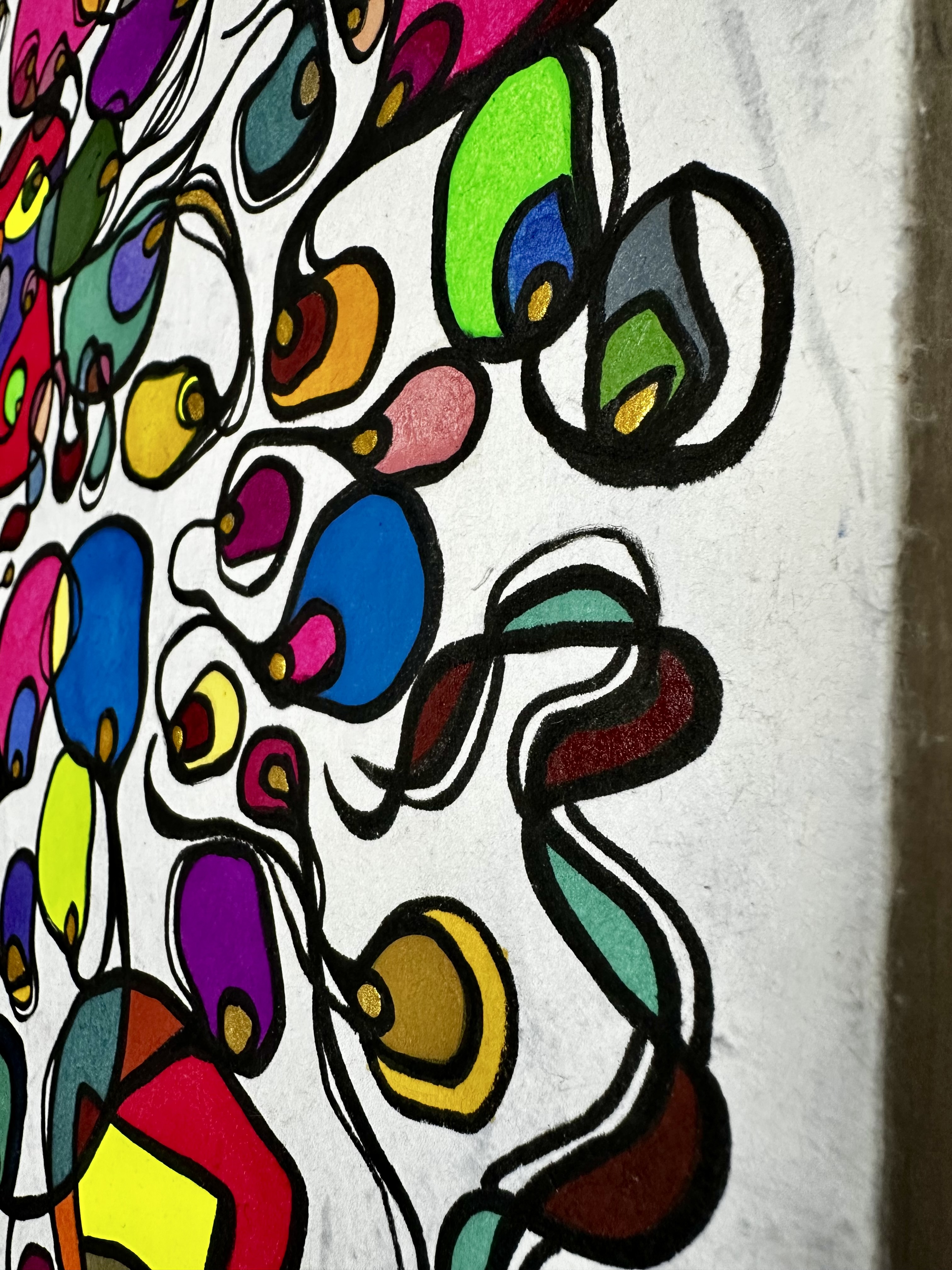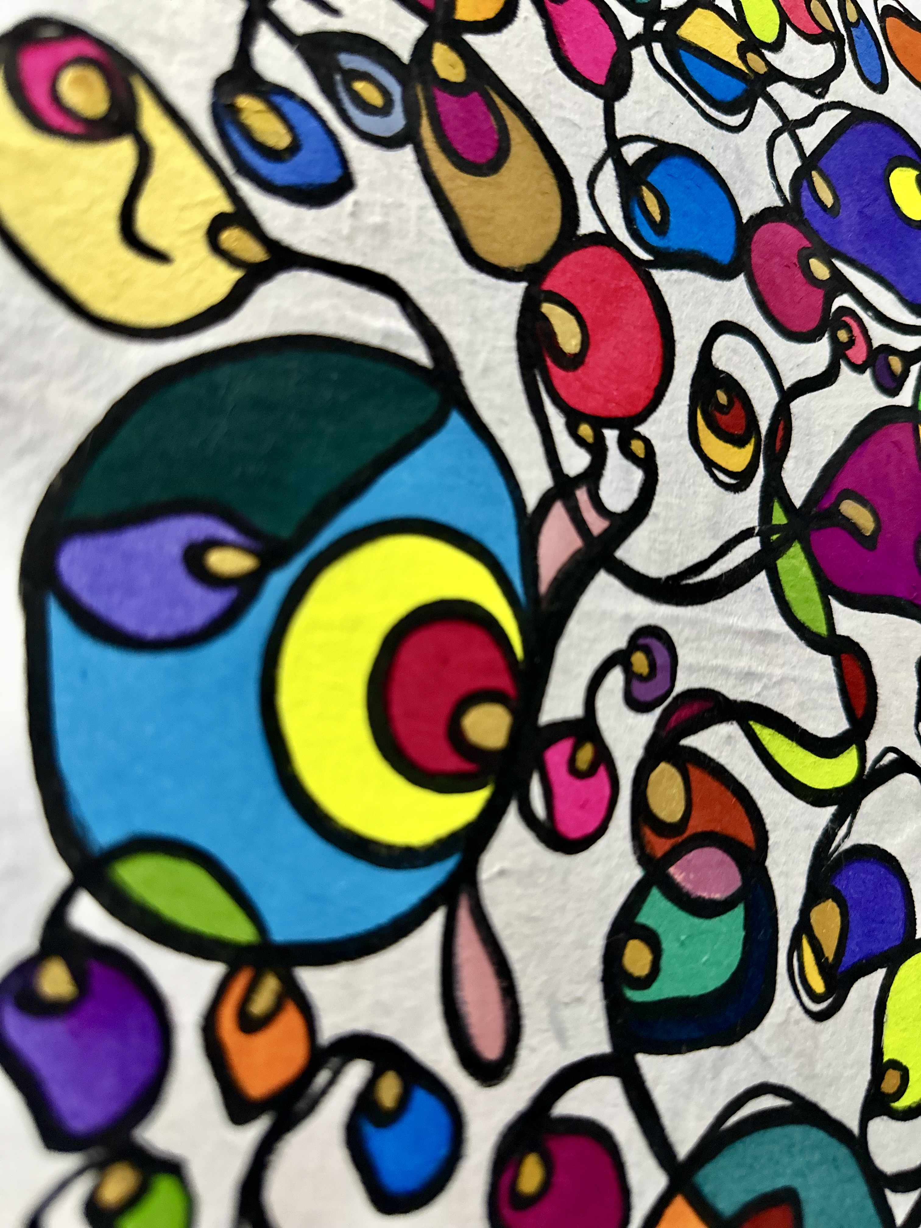 It is amidst this suffocating news cycle that I find a way to maintain my sanity. The act of painting this seemingly chaotic, densely packed world is my personal sanctuary. It is a path to finding equilibrium. On this canvas, I grant every form and color the freedom to be exactly what it wants to be. The forms, though small, distorted, or crowded, are allowed to stand out and clamor for their space. Each one maintains its own center, its own inherent dignity, despite the pressure. This is a deliberate aesthetic of defiance, reflecting our own reality where we constantly struggle for space and self-determination.