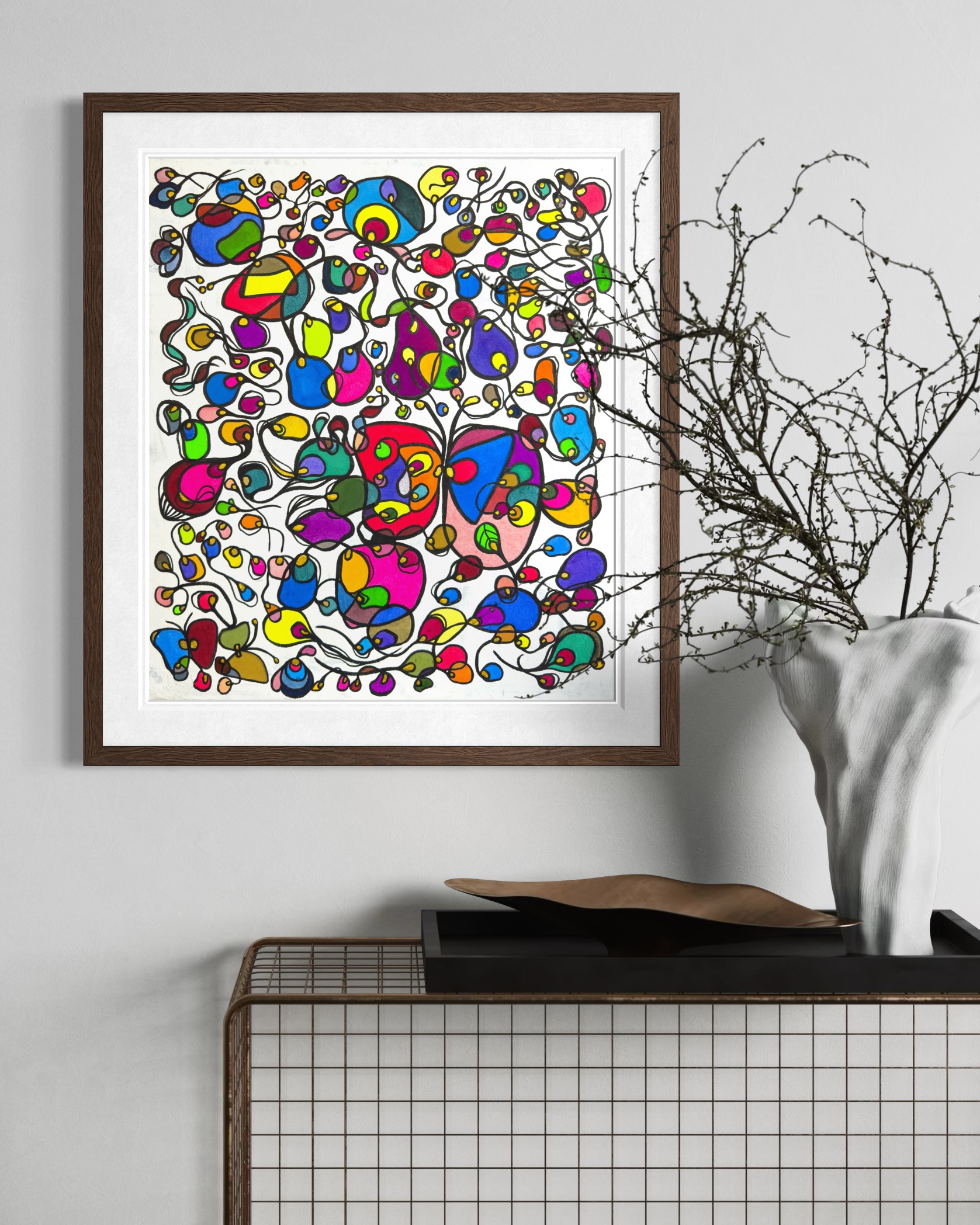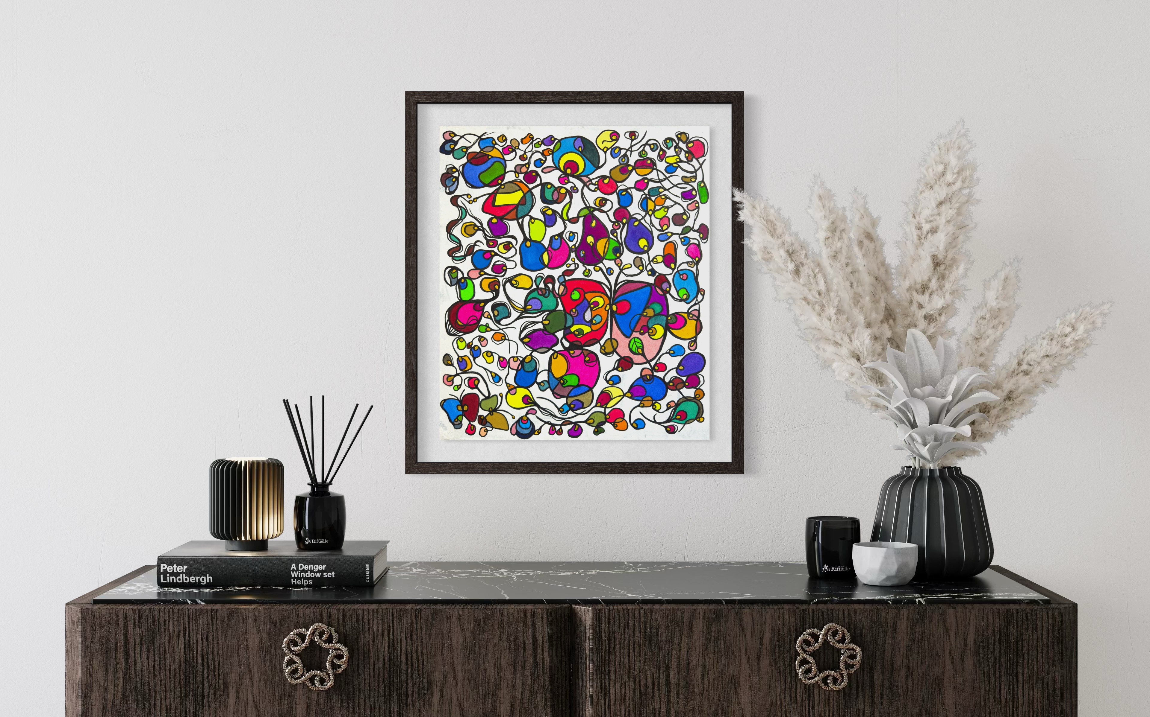 Observe the pluralized lines: a complex survival network where every small, distorted form is permitted to clamor and assert its existence. The intense fluorescence is the unapologetic scream of the self. Crucially, the white space is not empty air, but the aggressively minimized last bastion of dignity—the hard-fought minimal gap required for self-sovereignty. Owning this piece means holding a fragment of that essential, unique energy. This is your permanent affirmation against the chaos.
