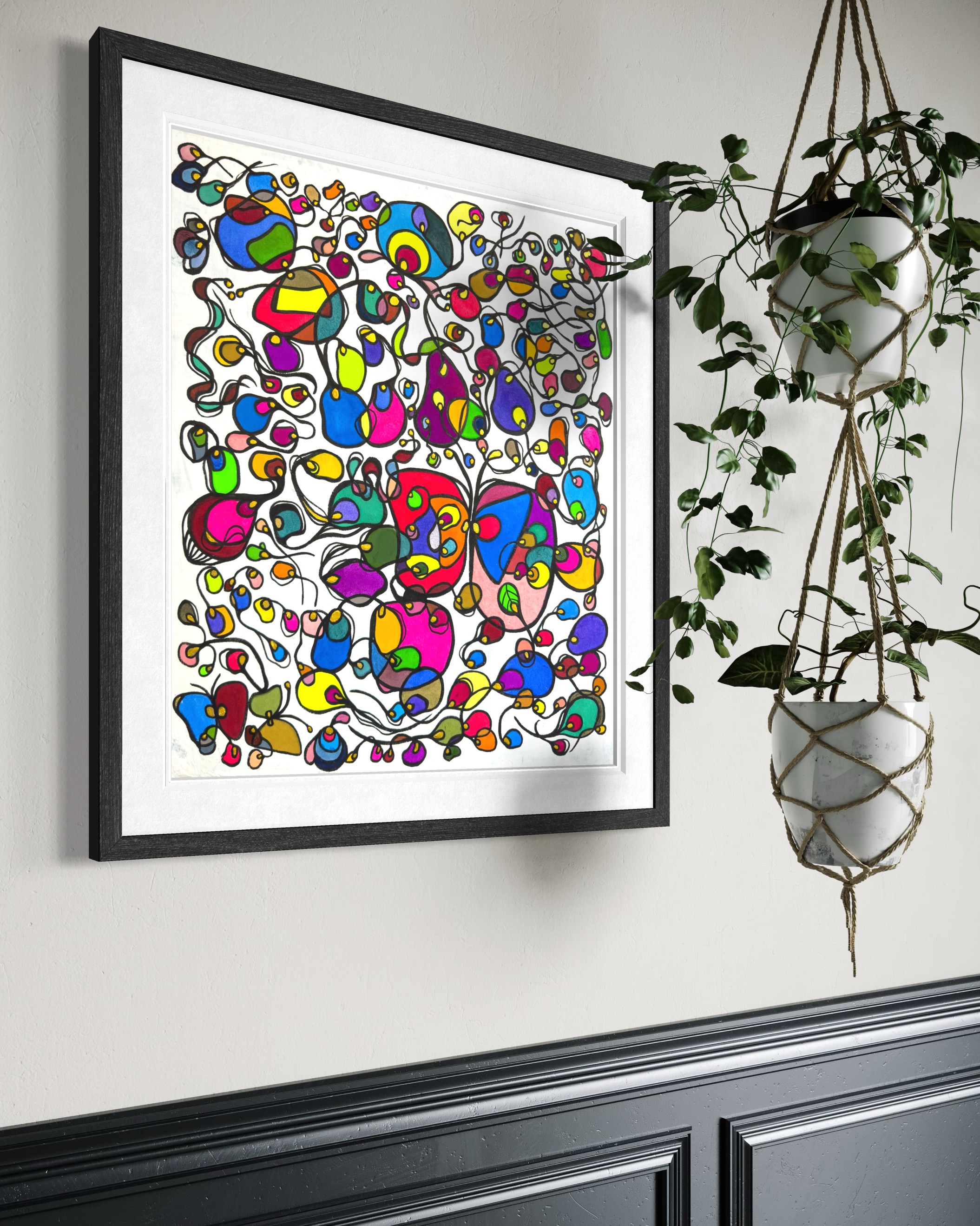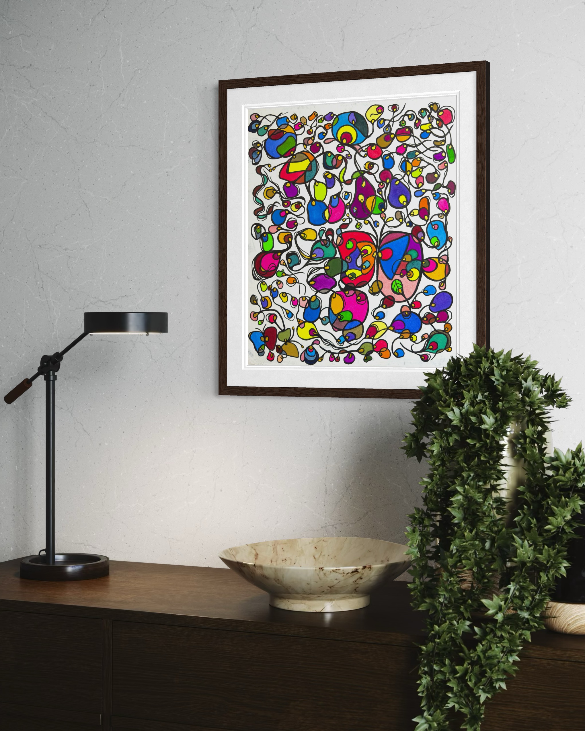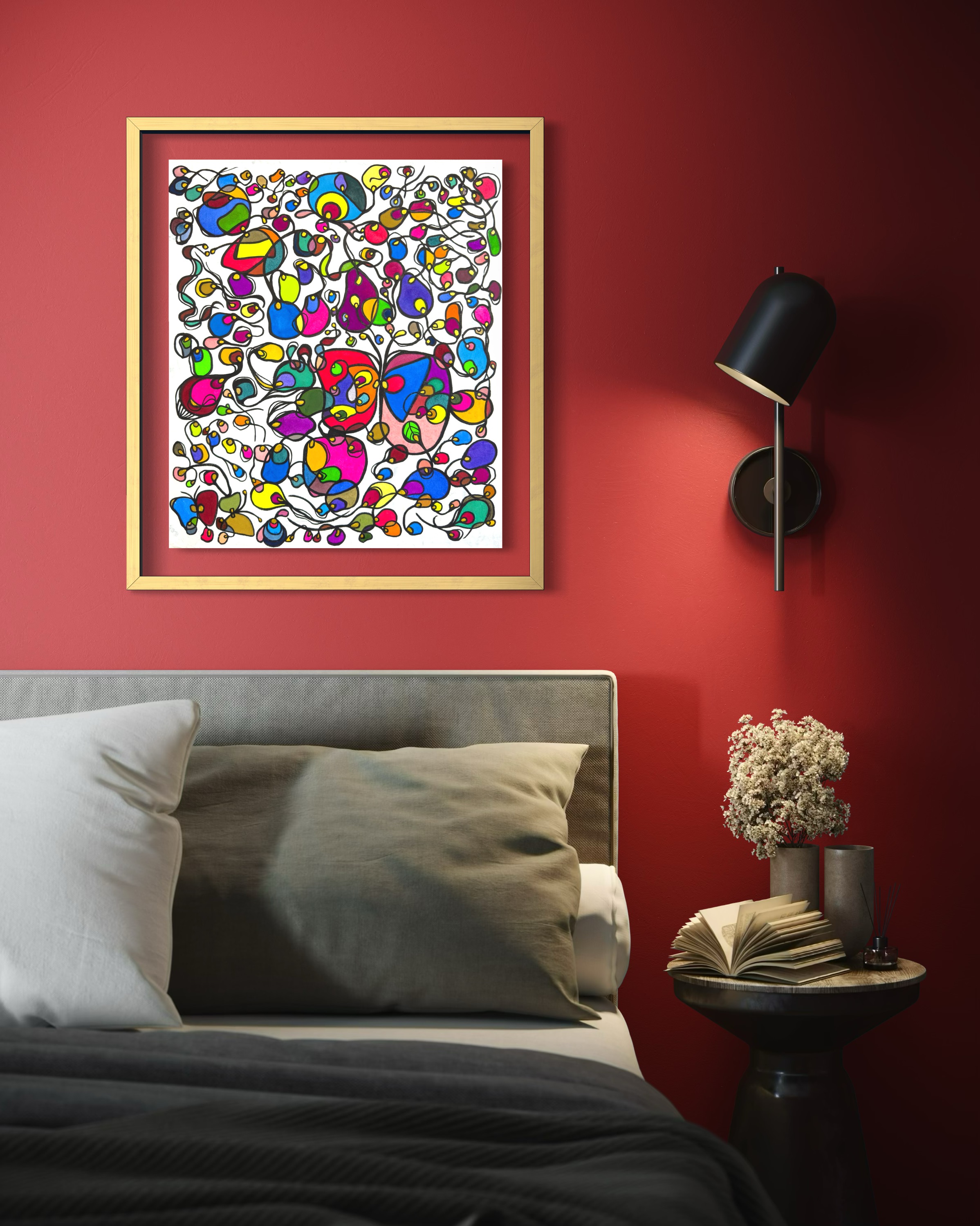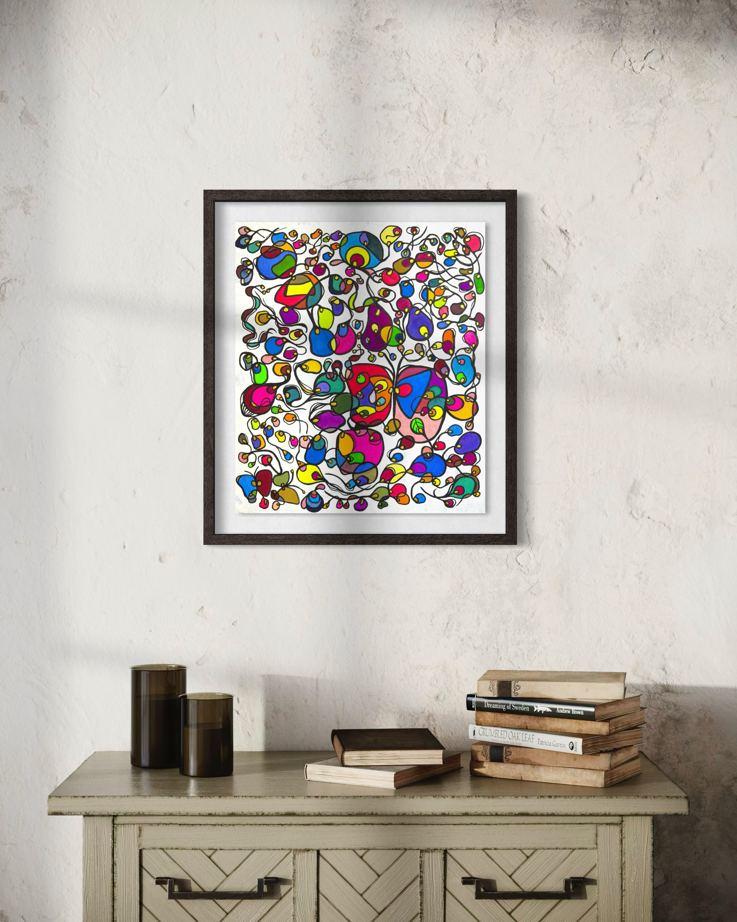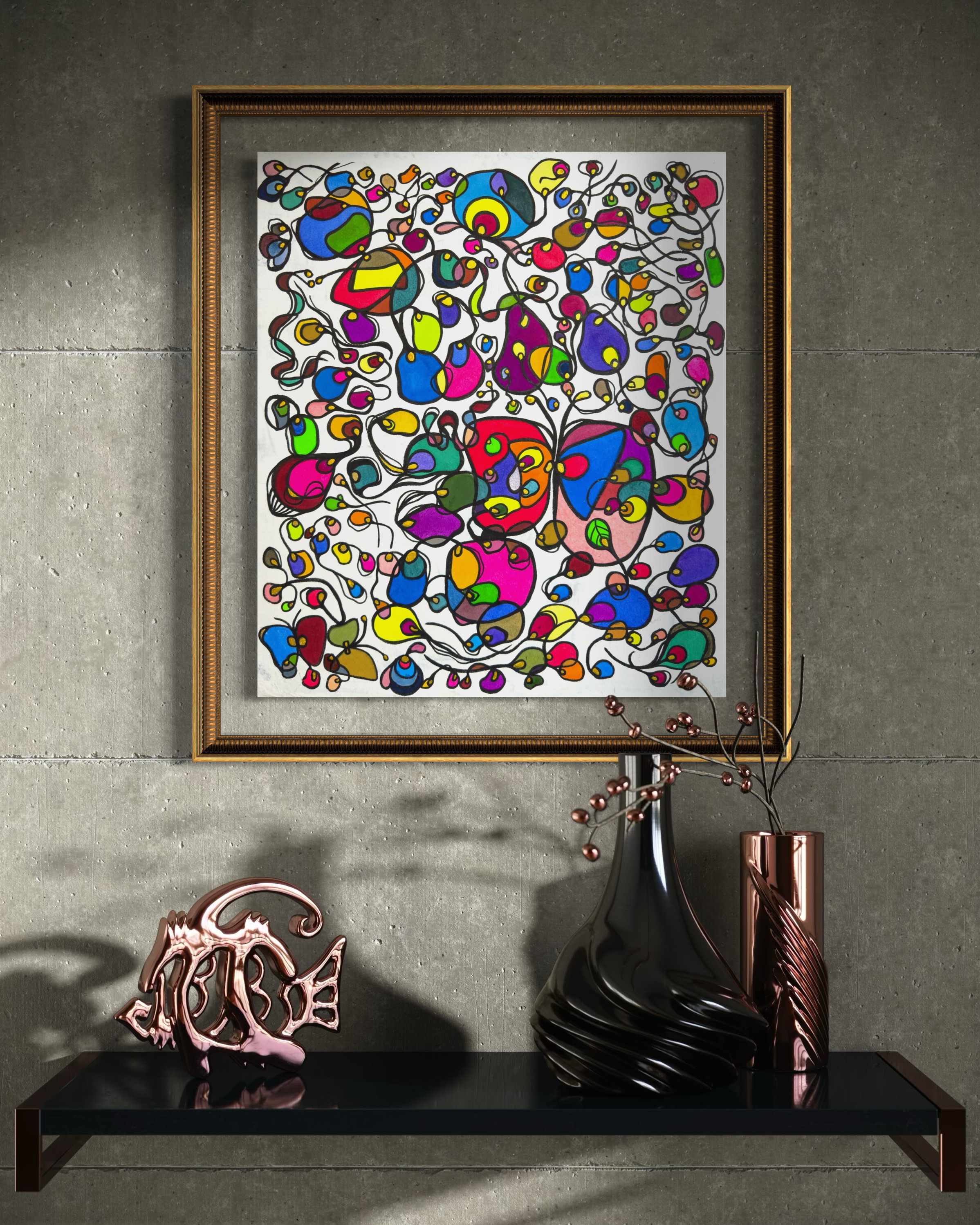 복수화된 선들을 보라. 이는 모든 작고 왜곡된 형태가 자신의 존재를 주장하도록 허락된 복잡한 생존 네트워크이다. 강렬한 형광색은 자기 존재의 거리낌 없는 외침이다. 특히 흰 여백은 단순히 비어있는 공간이 아니다. 그것은 맹렬히 최소화된 자존의 마지막 보루, 즉 자기 주권을 지키기 위해 필사적으로 확보해야 하는 최소한의 간격이다. 이 작품을 소유하는 것은 그 필수적인 고유 에너지의 파편을 갖는 것이다. 이것은 혼돈에 맞서는 당신의 영원한 긍정이다.