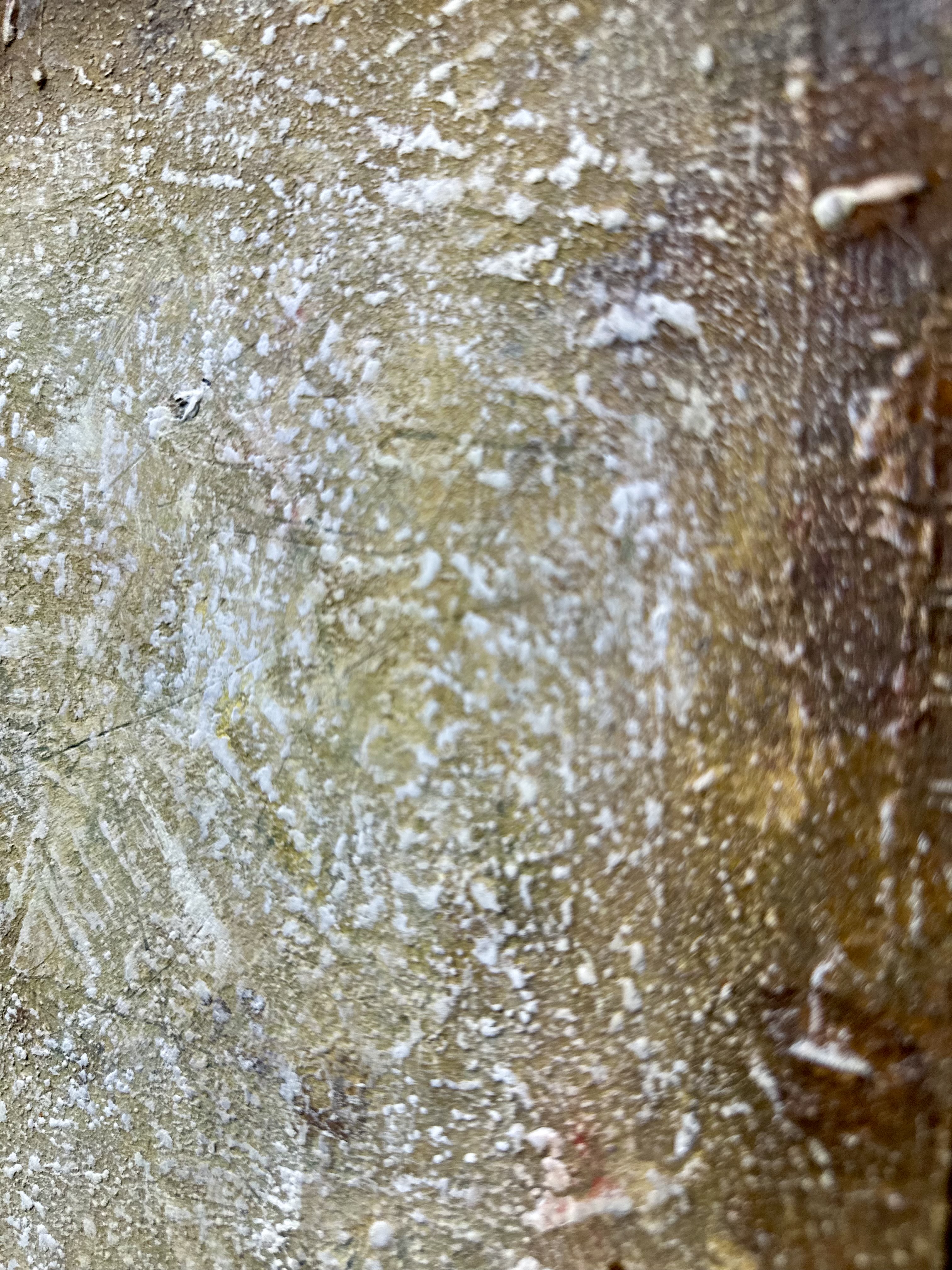 Look closely at the painting and you see this history. Previous layers peek through where upper ones have worn thin or cracked. Colors I applied weeks ago interact with today's additions. Decisions made early constrain and enable what becomes possible later. The painting has accumulated its own life, its own time.