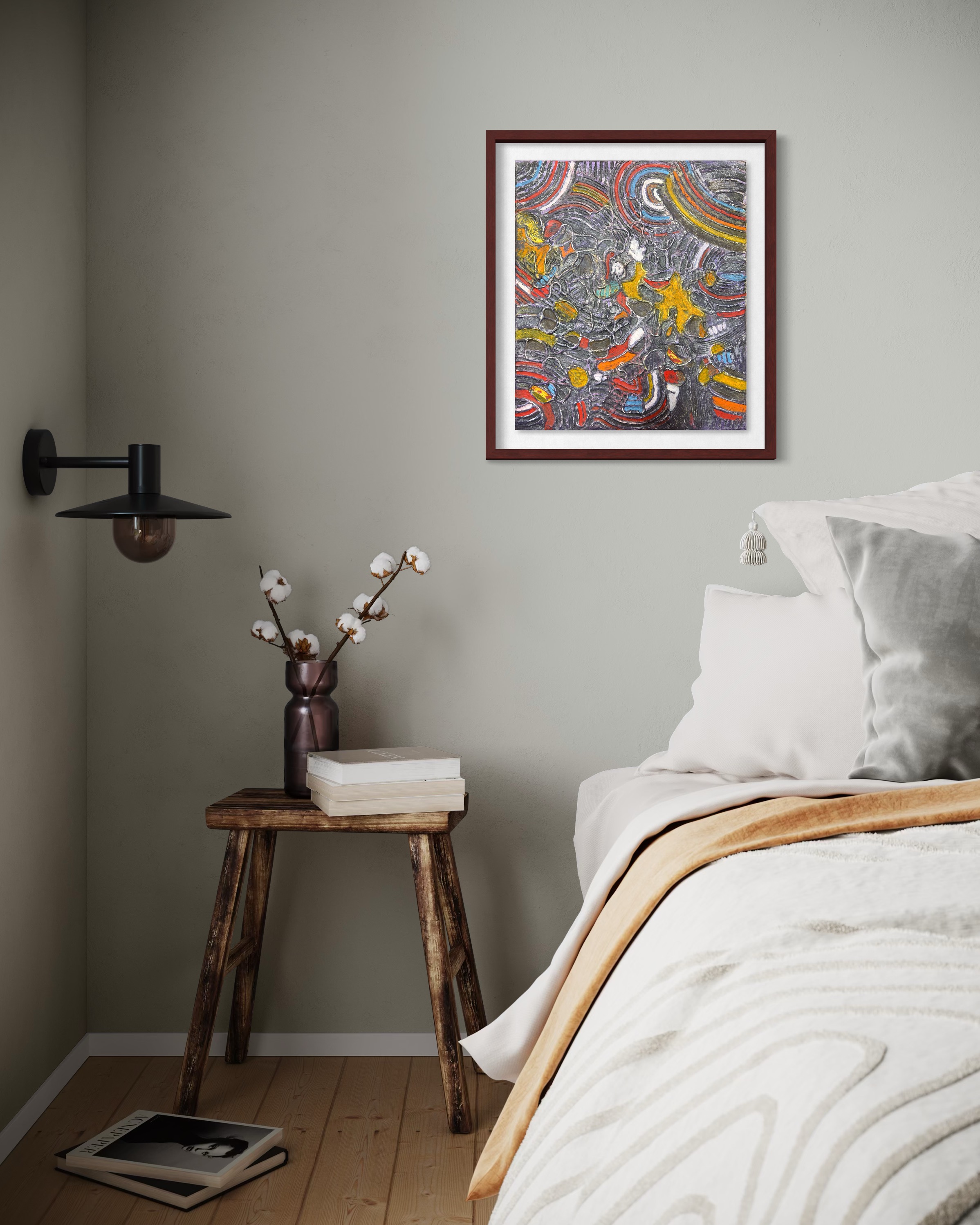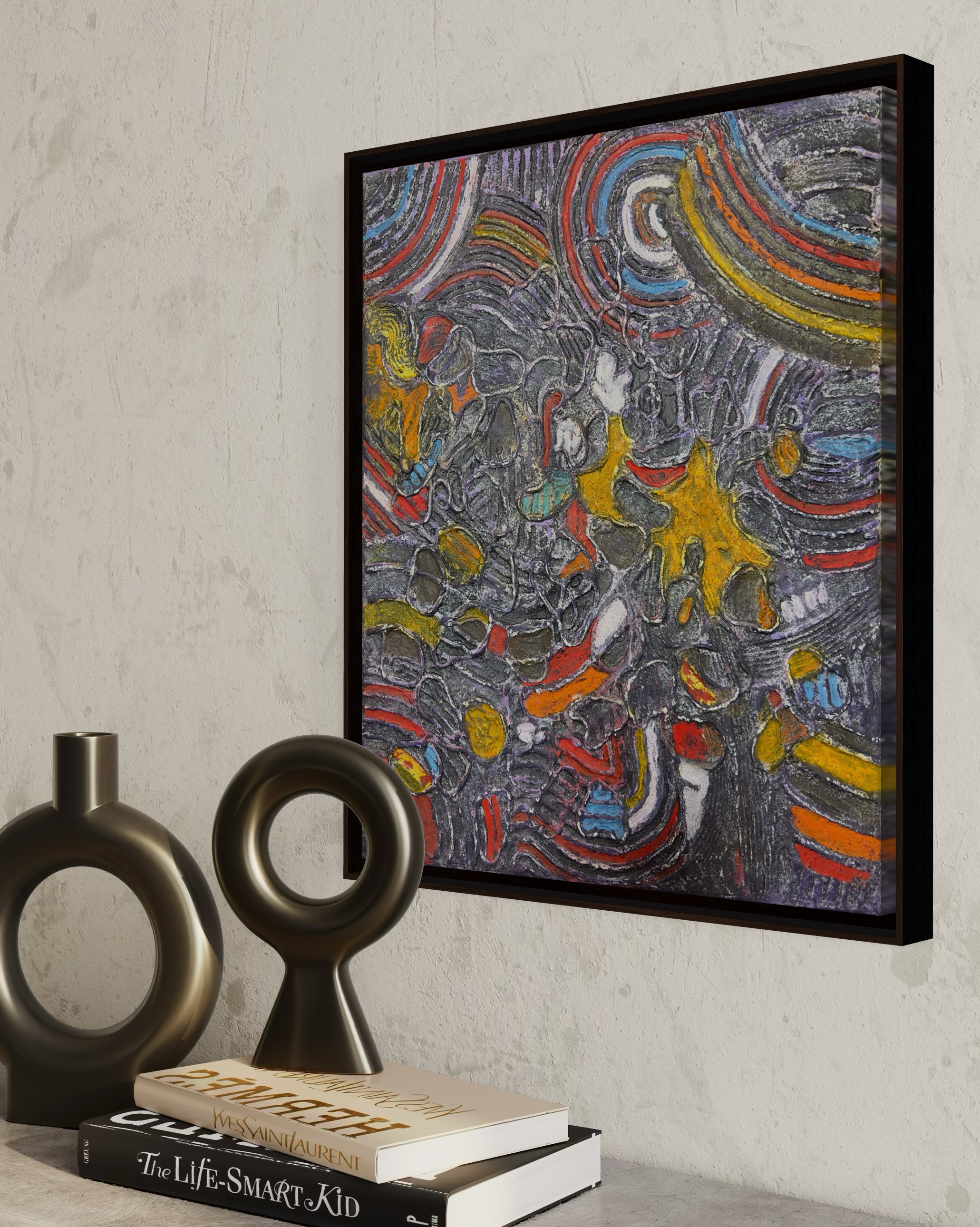그런데 바로 그 솔직함 속에서 의외의 생명감이 솟아난다. 어두운 장 속에서 색들은 스스로 빛을 낸다. 방향을 잃은 홈들은 여전히 어딘가로 향하려 한다. 표면은 끊임없이 진동한다. 의도와 장애, 반응이 한 화면 안에서 부딪치며, 통합되지 않은 세계의 긴장을 드러낸다.