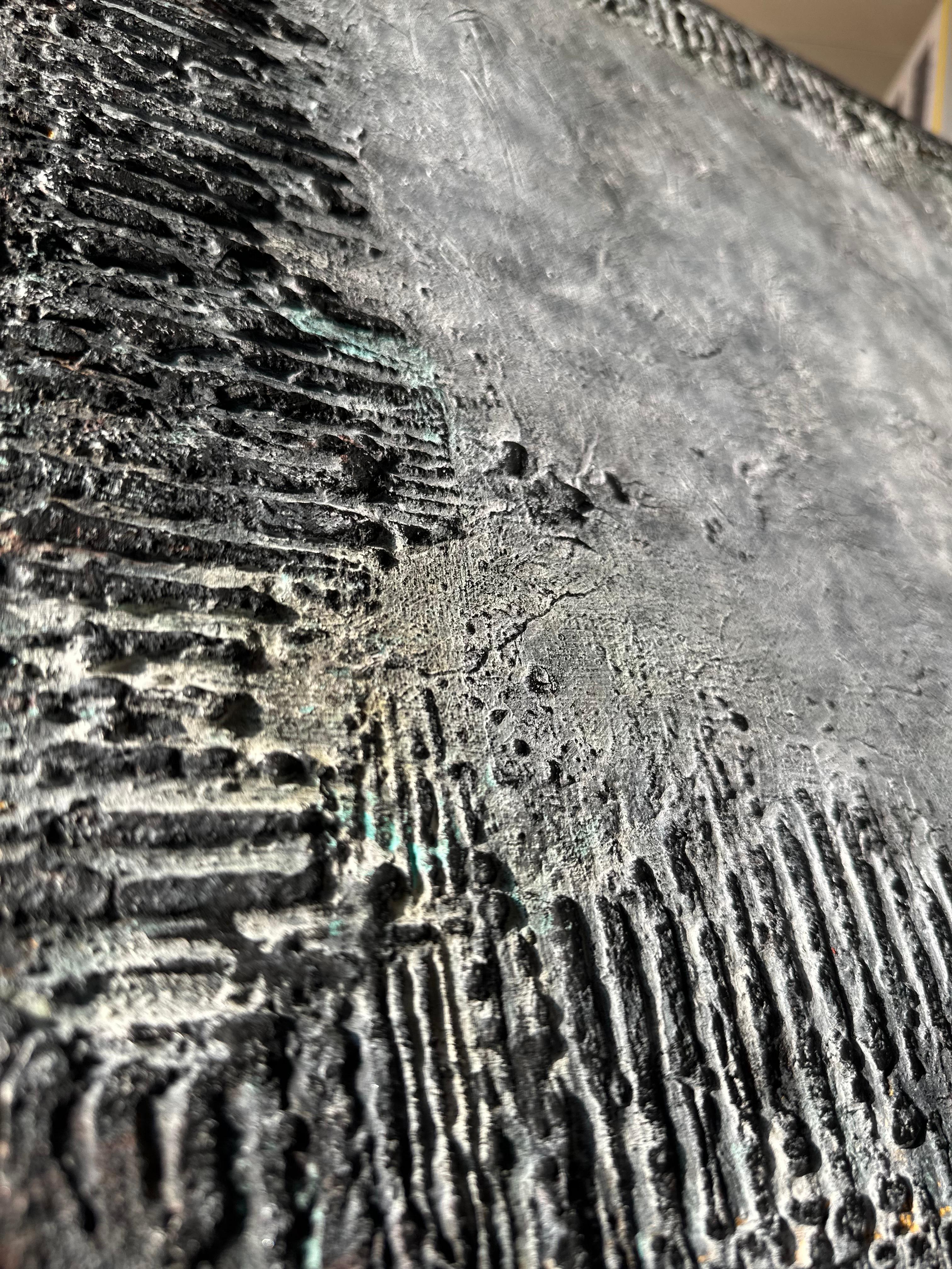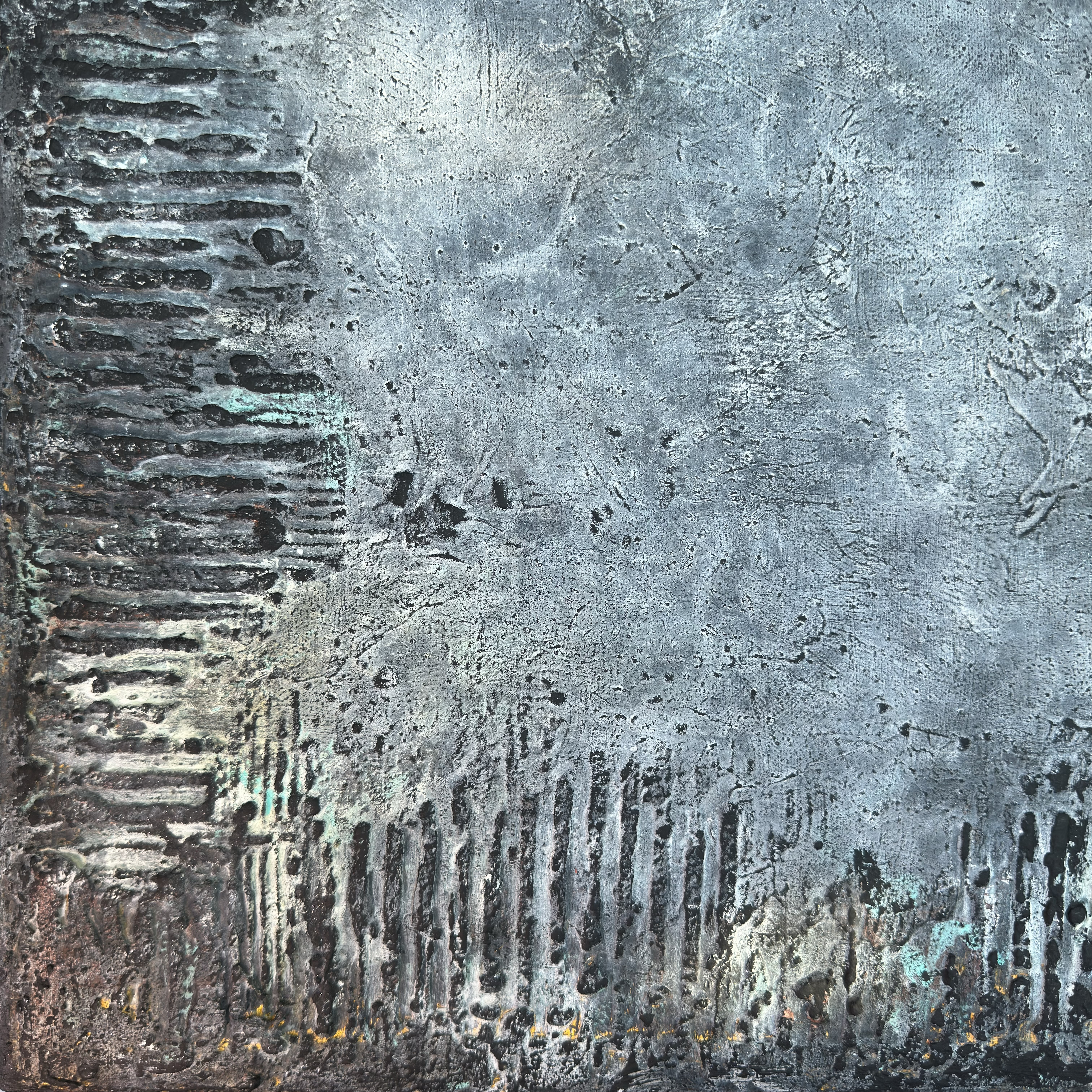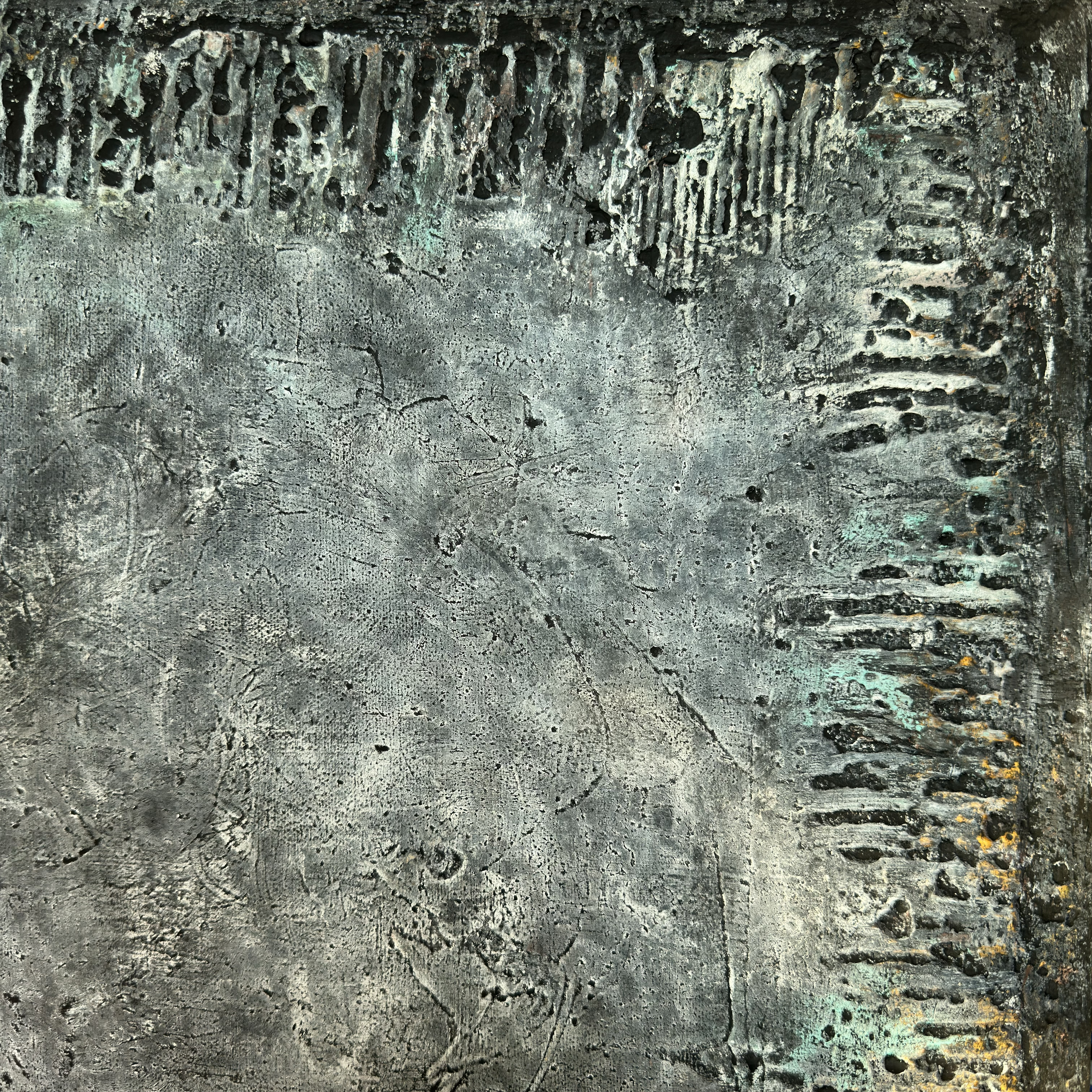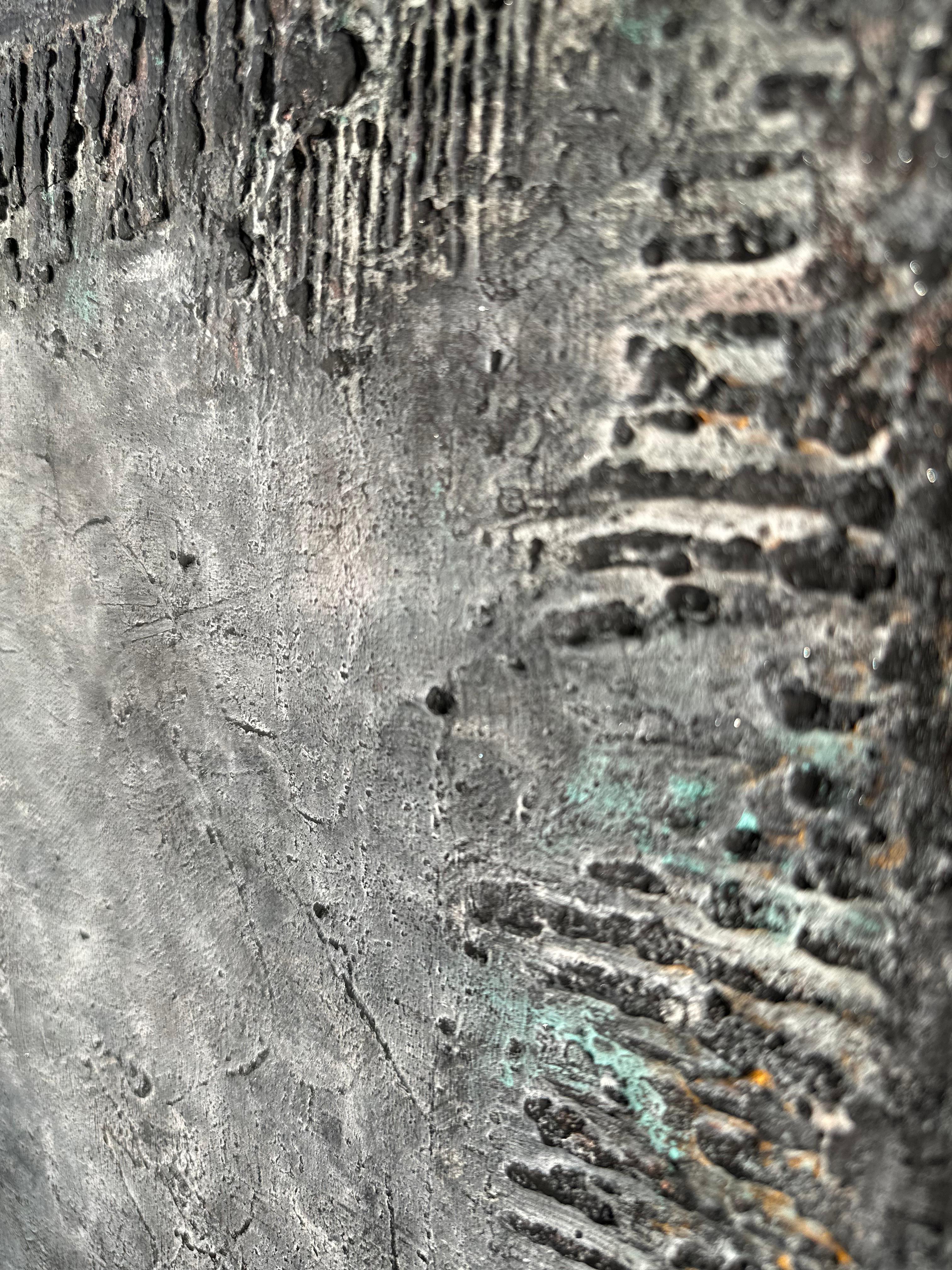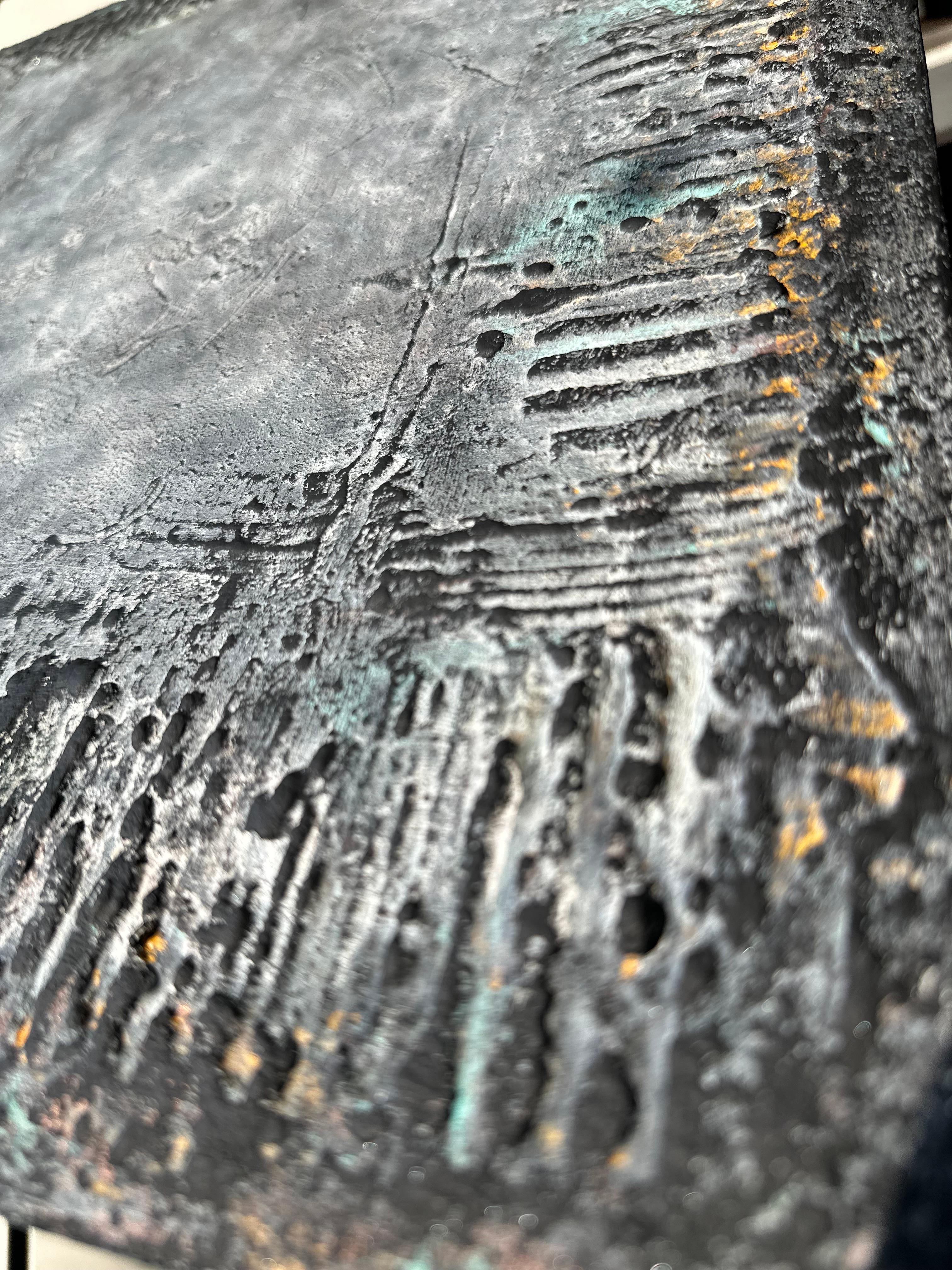 Mixed media on canvas (modeling paste, acrylics, layered oxidation)