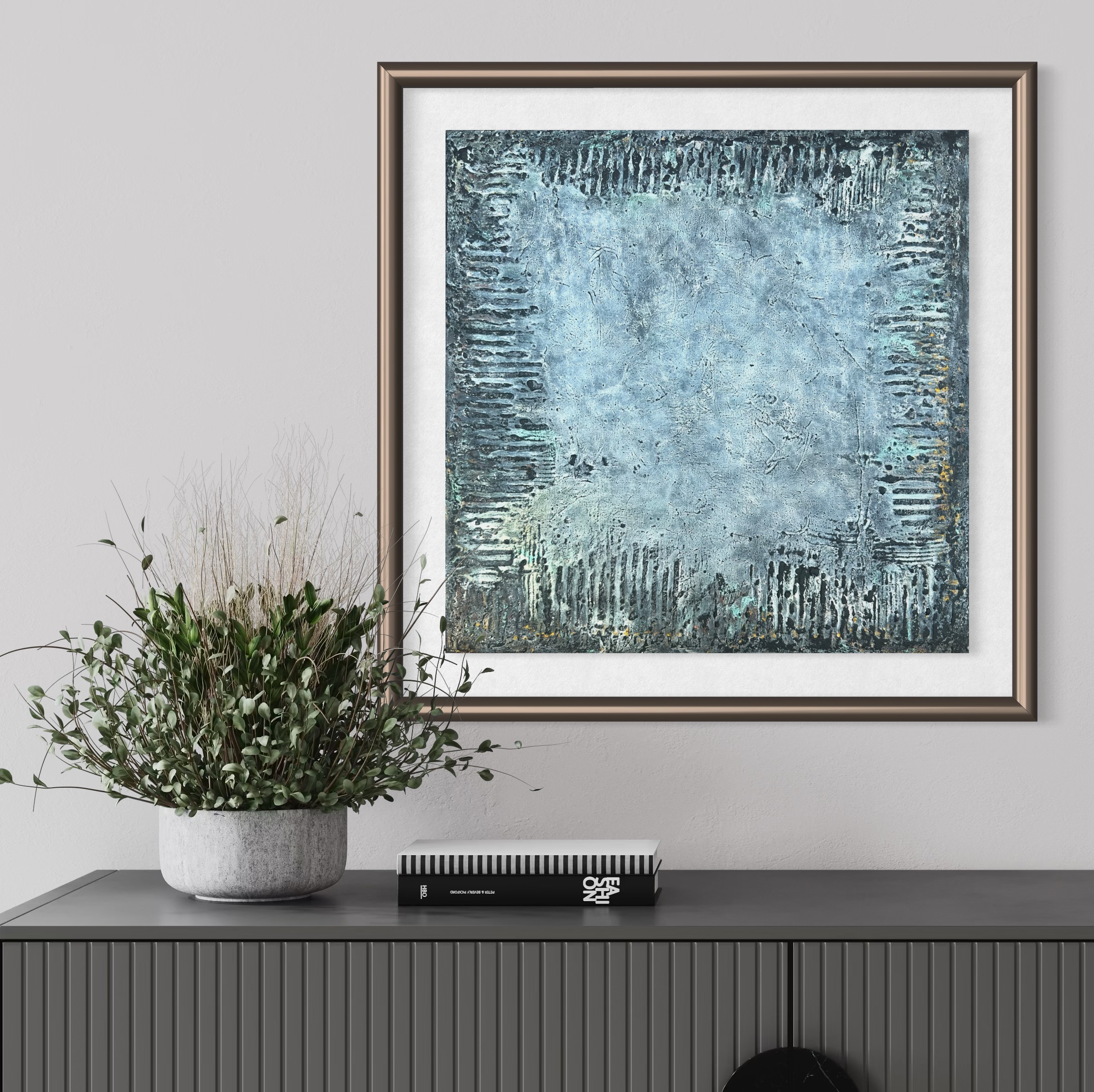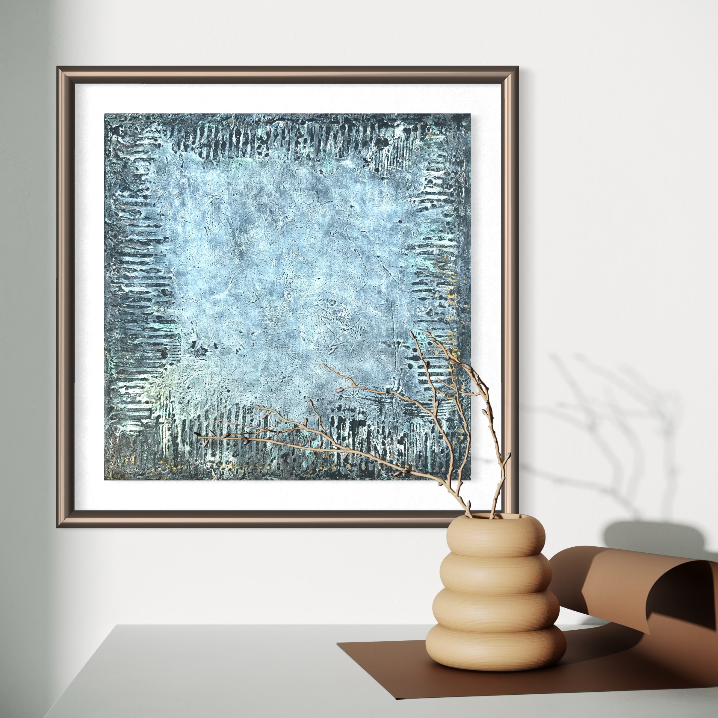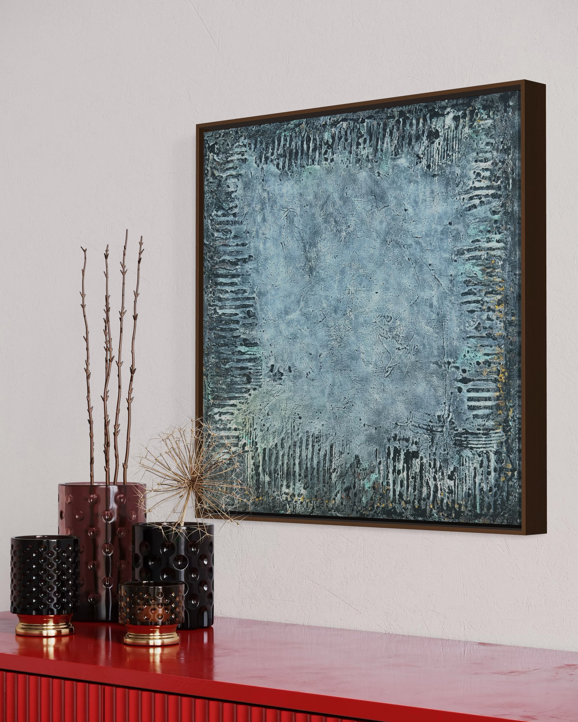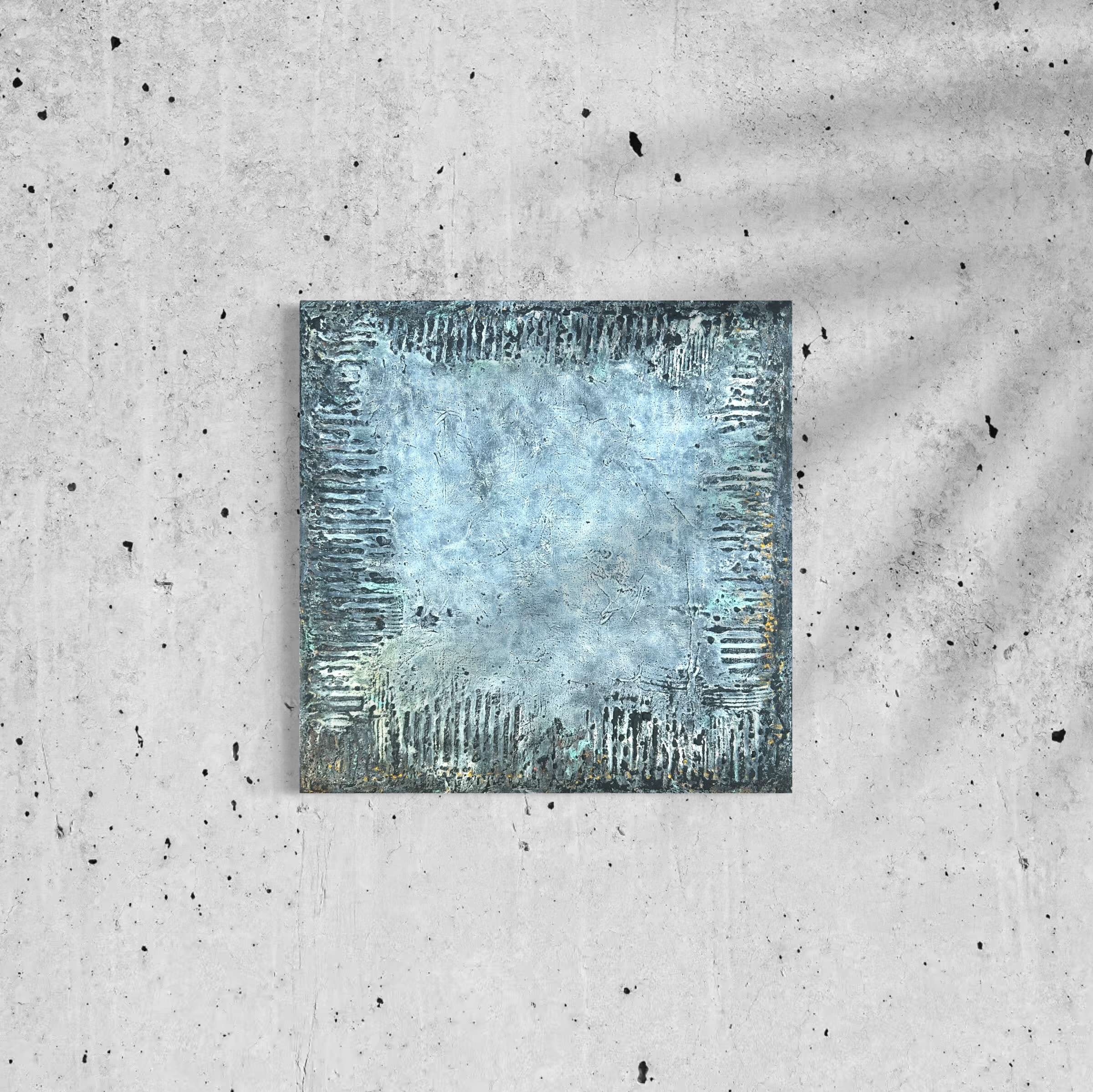The work does not symbolize aging; it undergoes it. The blue-green oxidation emerges from actual chemical processes rather than applied pigment. Time acts as an active collaborator. Fine cracks spider across the surface, not as flaws, but as "involuntary honesty"—fissures where the buried warmth of the underlayer reasserts itself. The painting creates a foundation of trust: it does not pretend, it simply is what its making made it become.